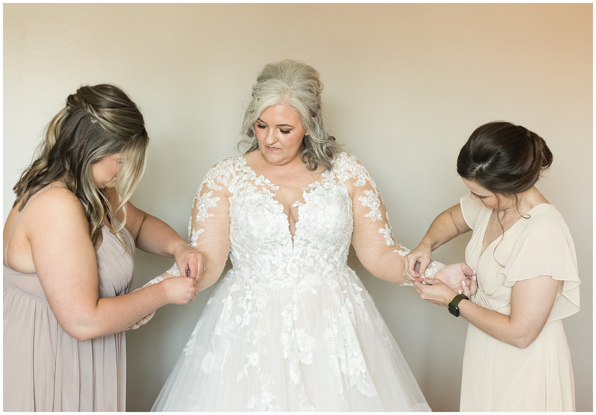 Jessica and Merrill met years ago when their son’s began playing soccer together. They took their time enjoying one another’s company as their relationship grew. When I first chatted with them about their engagement and upcoming wedding, Jessica told me they have technically been engaged for 7 years! Merrill proposed and then life just got in the way with raising kids and running around to soccer games and such so they kept putting it off. Merrill talked about simply going to the courthouse, but Jessica wanted to have a celebration with their family and friends. Although they kept their nuptials intimate, their spring wedding at Arlington’s in Downtown Springfield, IL was gorgeous! And the most special part for me was Jessica and Merrill blending their two families together in this beautiful way.