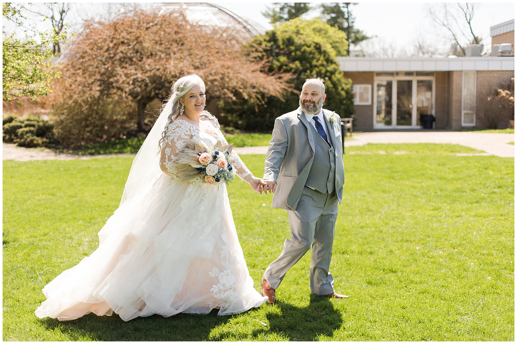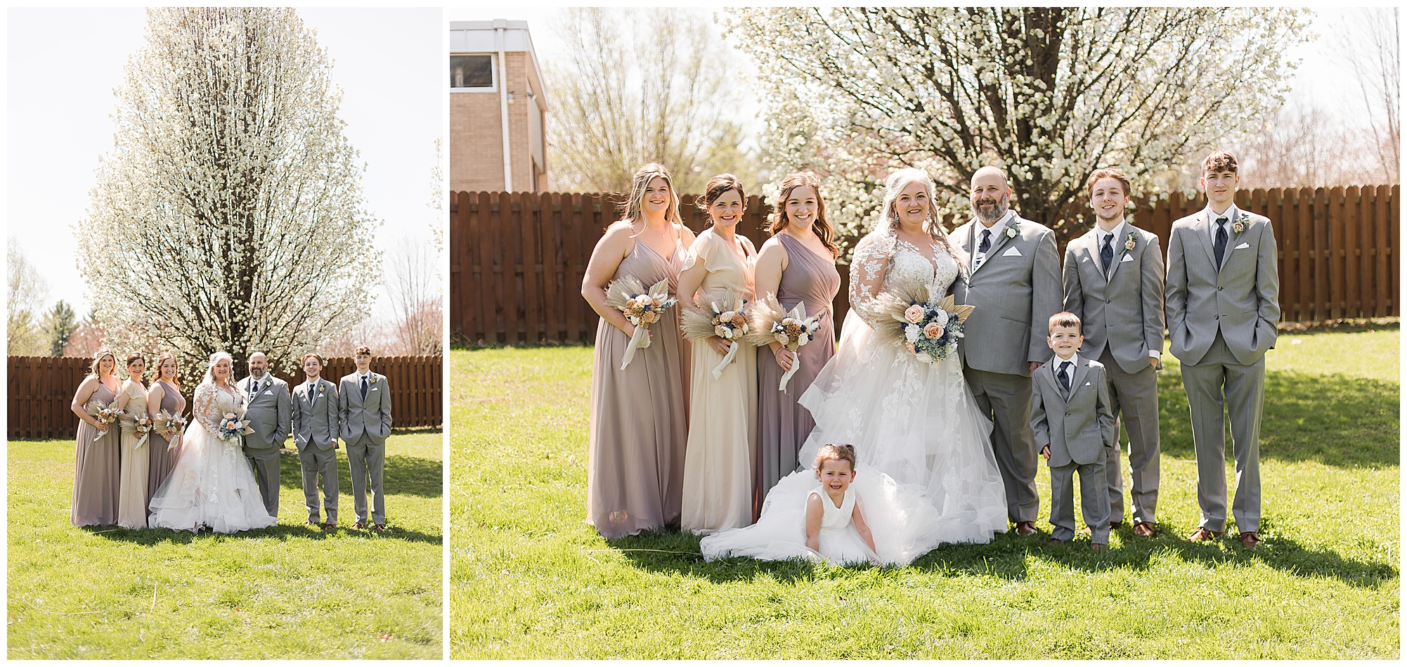 Before they officially became husband and wife, Merrill and Jessica, along with their bridal party, all headed out to Washington Park for photos. It was a little chilly but the sun was out and the blooms were popping so everyone was ready to go! Well…we had to coax little flower girl, Makenna a bit, but sweet ring bearer, Grant did his best to make her happy! Either way, they were too cute and completed the bridal party. The ladies all looked amazing in their various colors and styles of champagne, taupe, and hazelnut dresses. Plus the pop of navy in the florals and in the guys accessories just brought everything together. Jessica and Merrill took in every moment with each other as we took photos in the park and even took a time out to read letters they wrote to one another, which was so sweet. I loved every minute with these guys throughout their entire day.