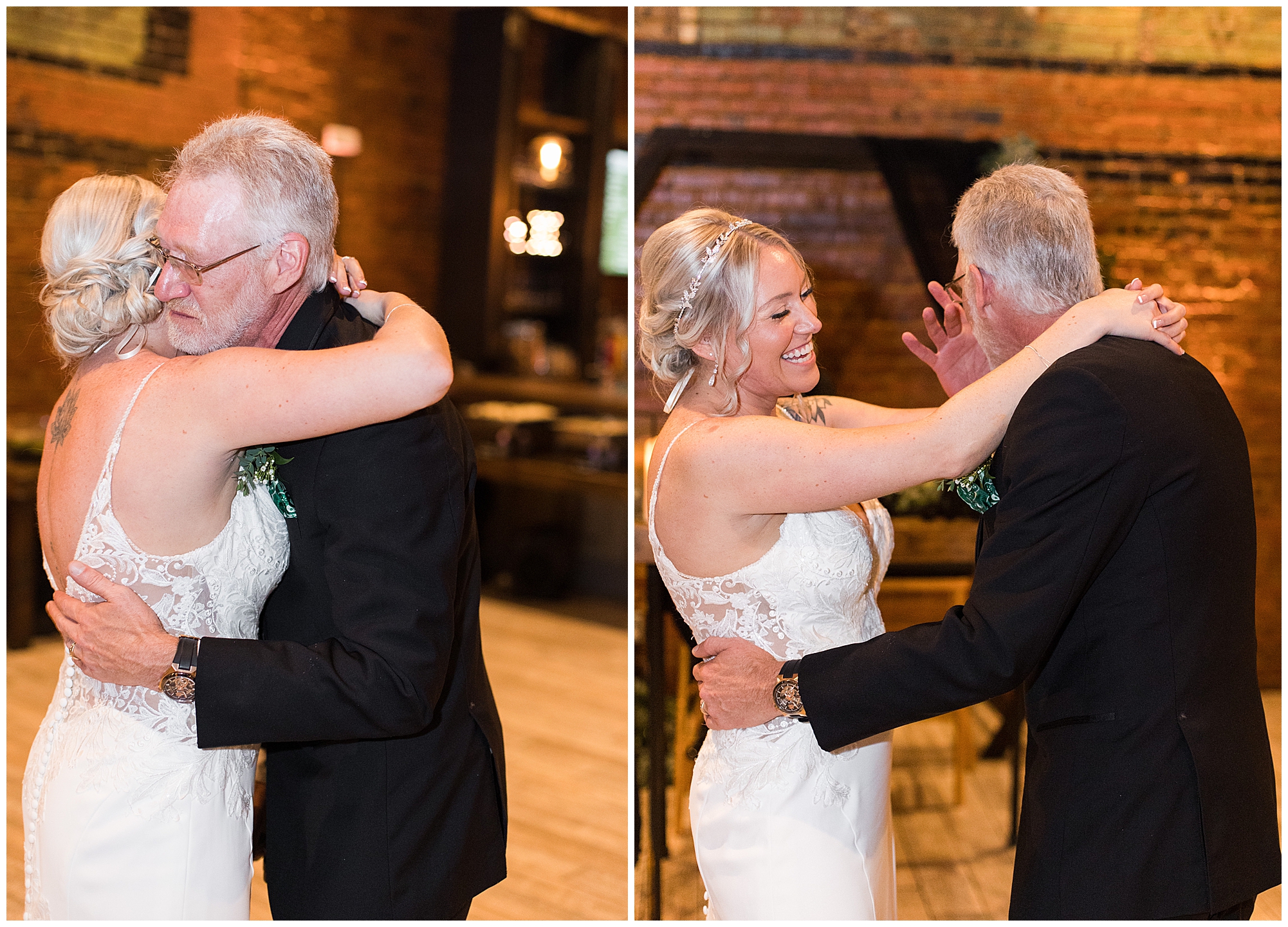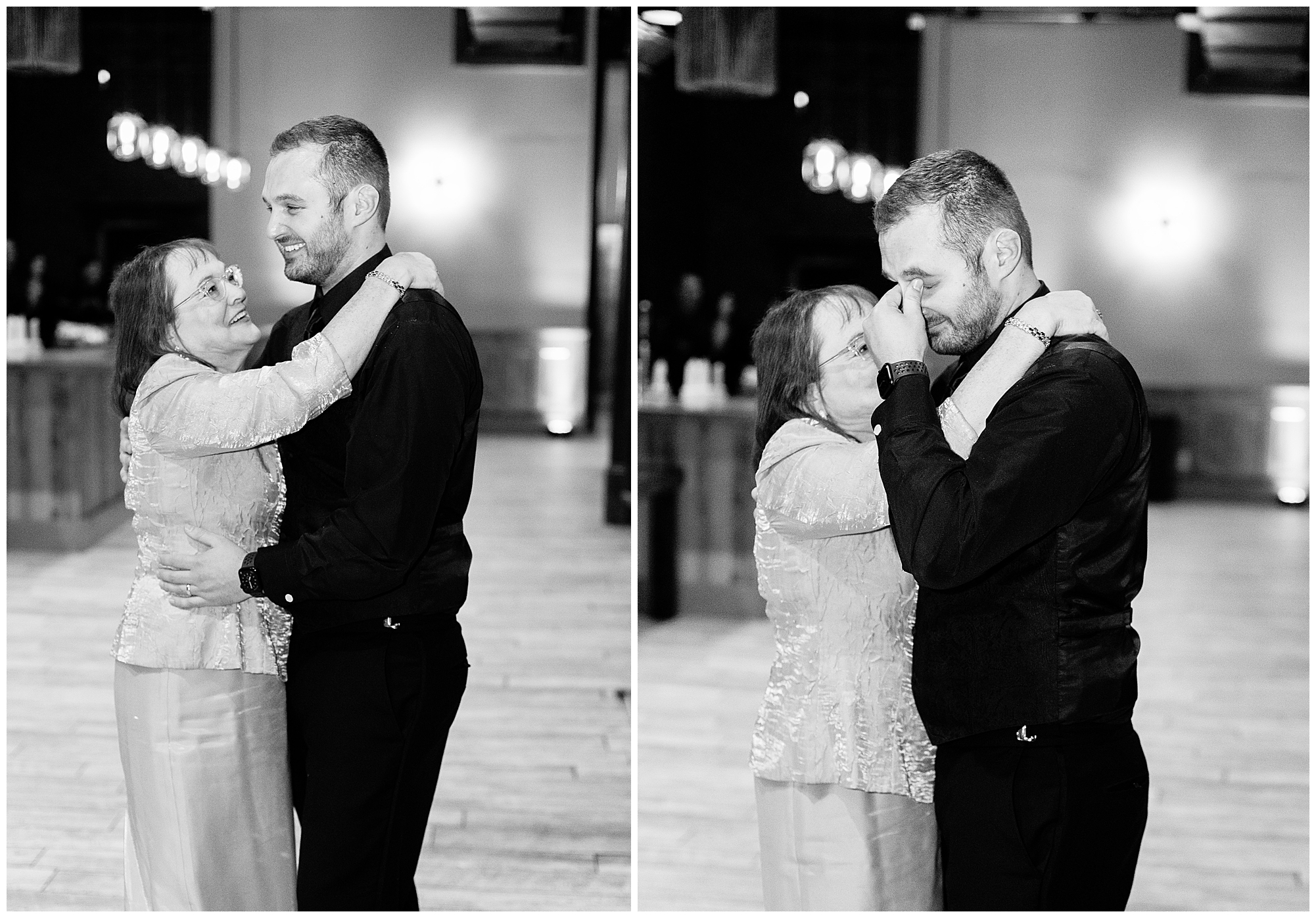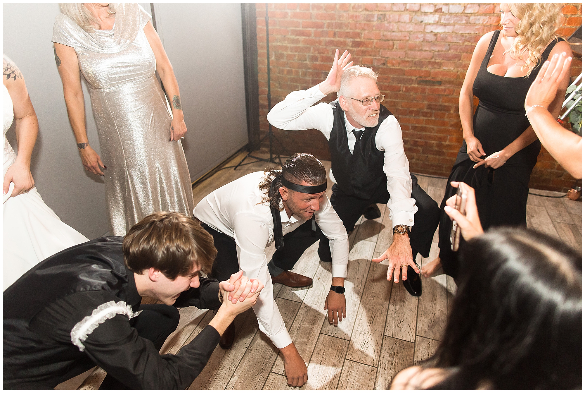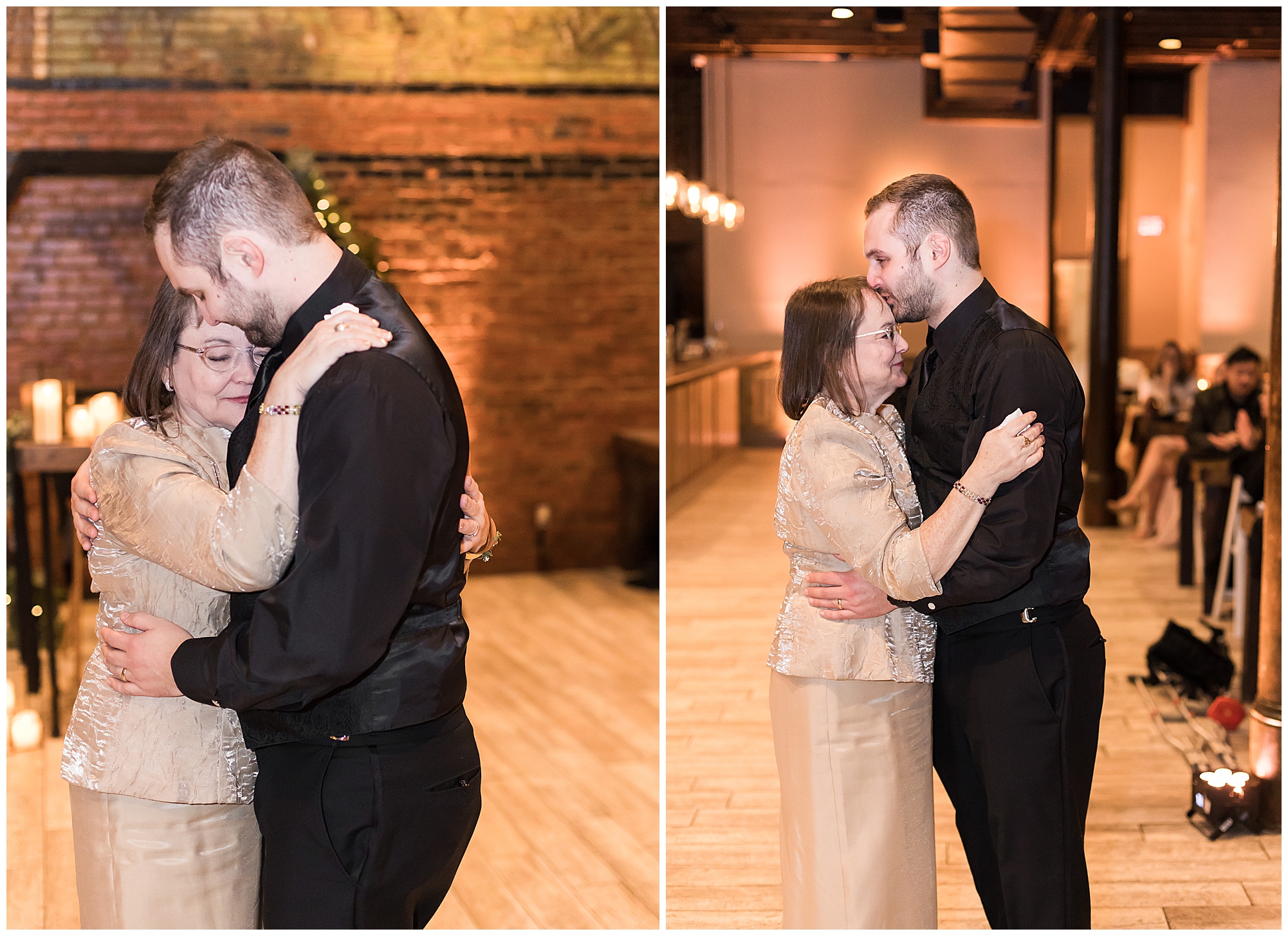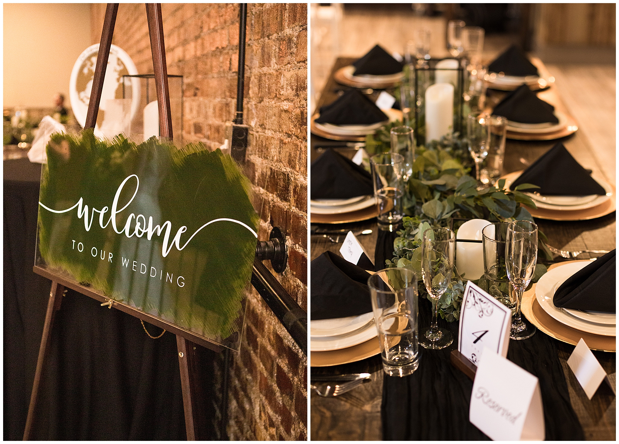 We all then headed to the amazing Reality On Monroe venue for bridal party and couple photos both inside and outside. This venue was perfect not only for the ceremony and reception space with it’s intimate industrial style, but it also gave us shelter from the cold. Because the winds were hitting this bridal party, who were incredible troopers throughout the day dealing with the cold temps, we found the alley right outside of the venue shielded us a bit. With the black theme of attire I would say it made for some pretty modern and amazing portraits! And when it was time for Bethany and Hayden’s photos these two stuck it out with me in the elements and kept warm by snuggling in close. How adorable are these two together?