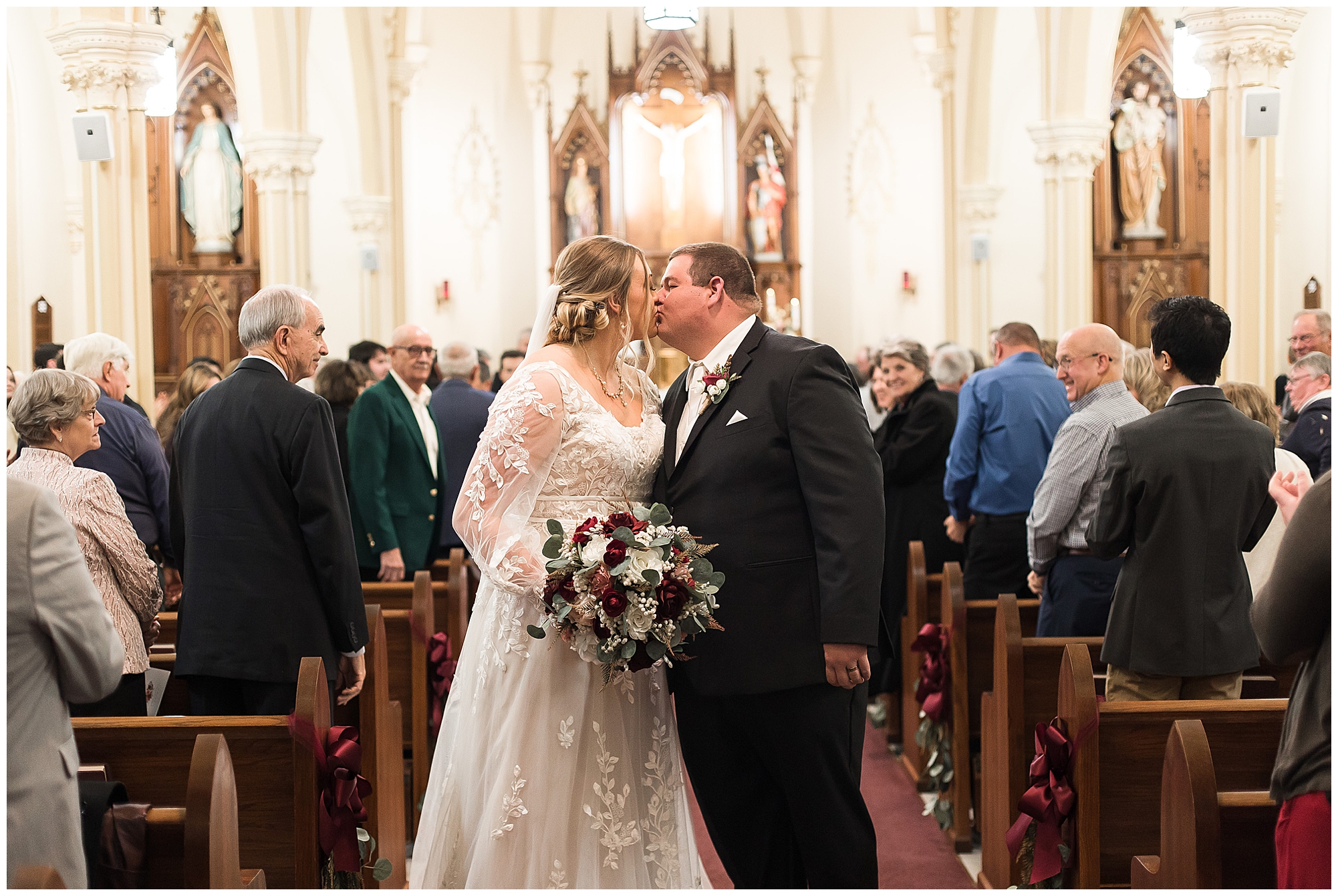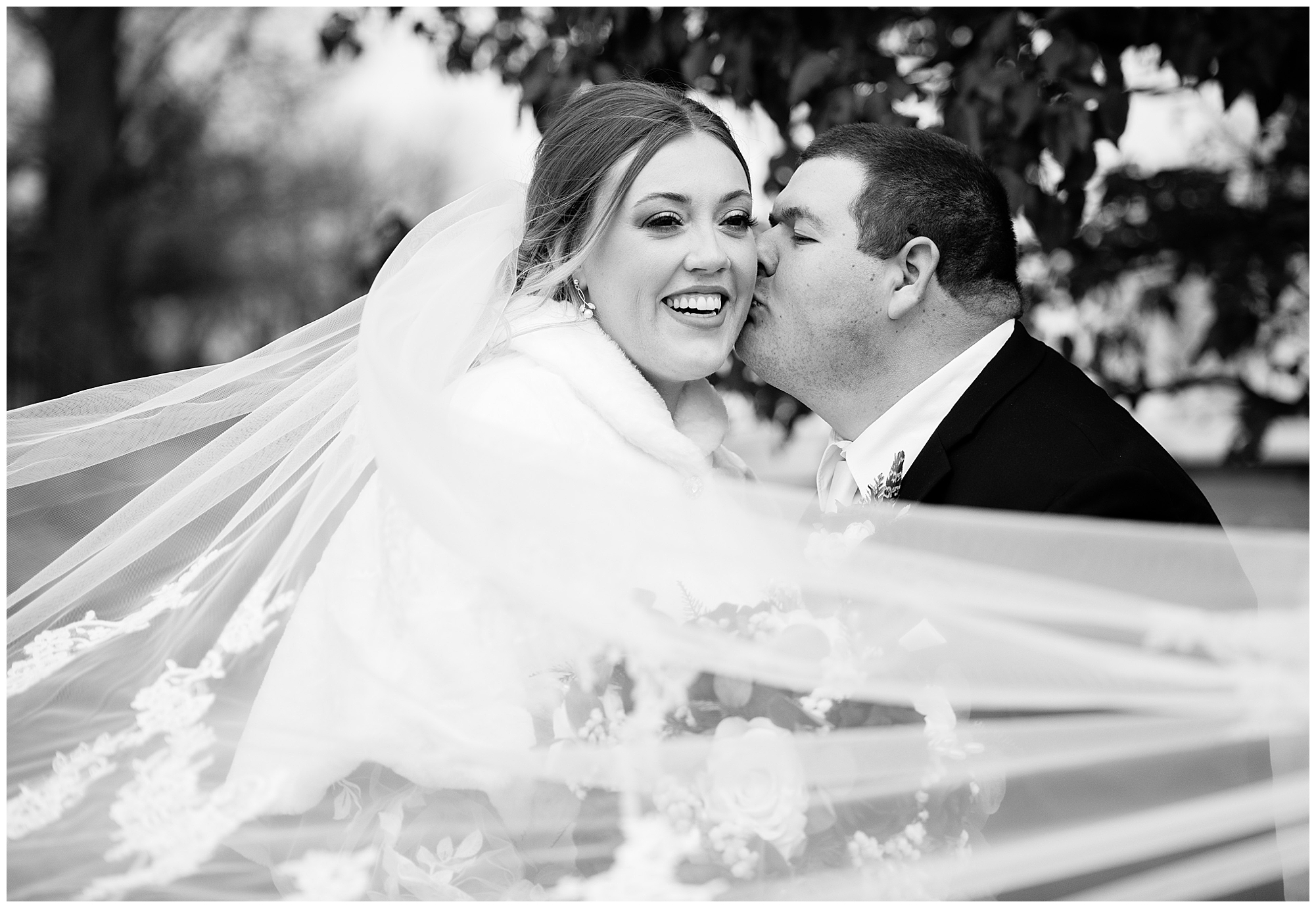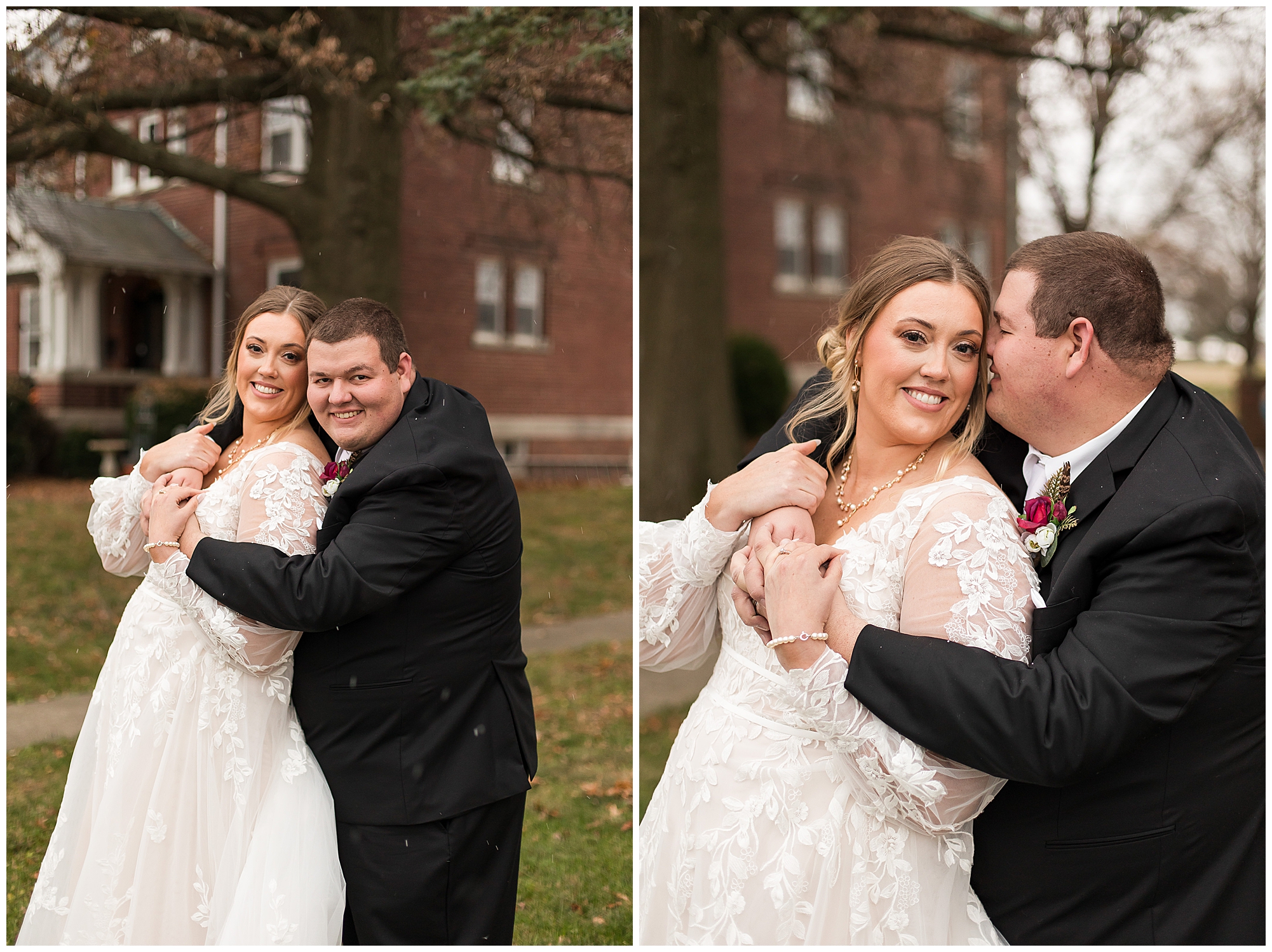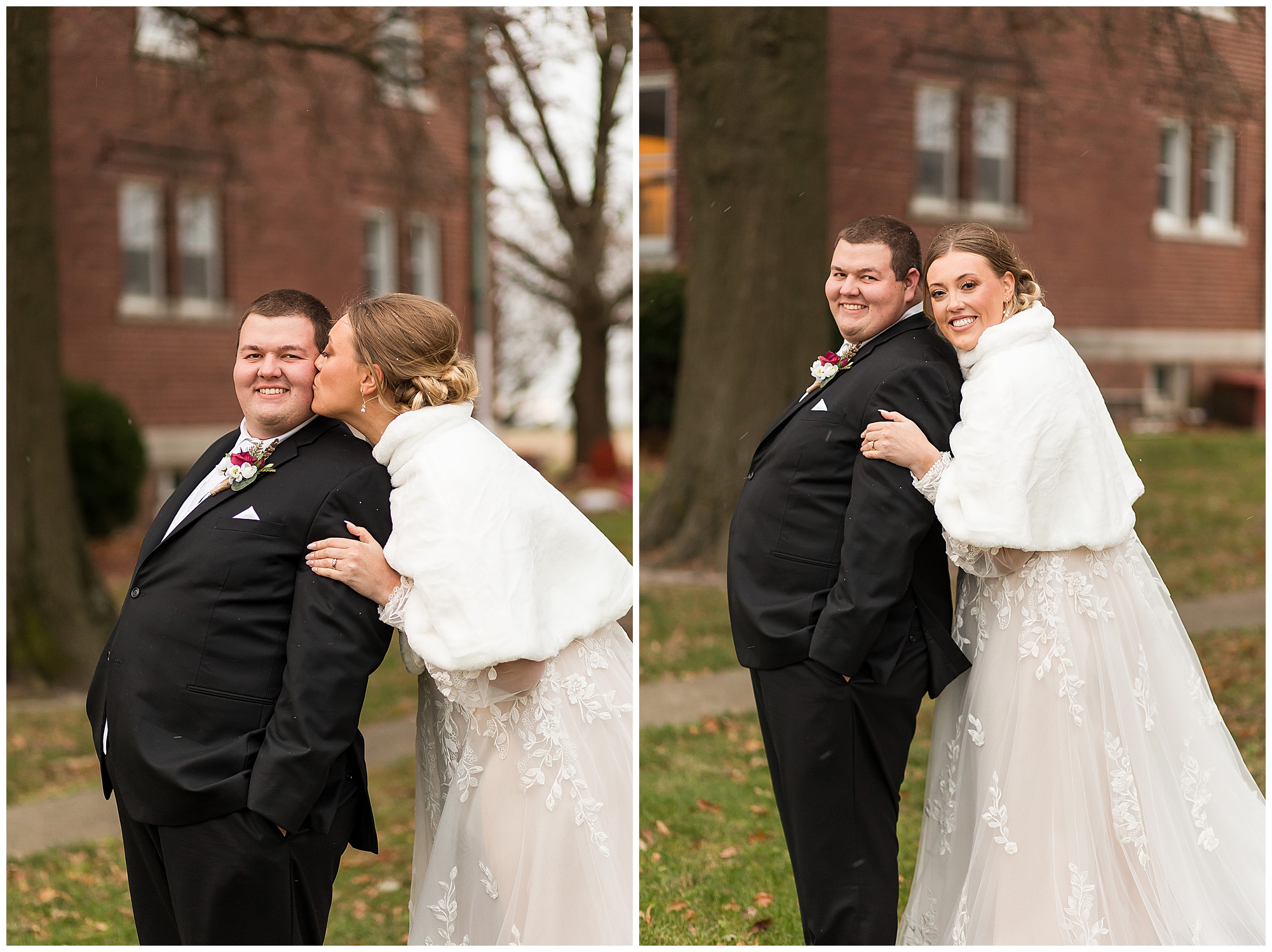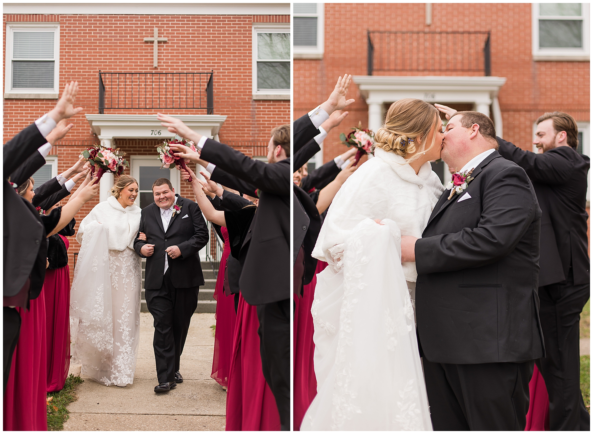 The Catholic ceremony had many faithful readings, music, and a meaningful homily from the priest who also married Clark’s parents 30 years (if I remember correctly). What a special connection! Meg and Clark exchanged rings, vows, and made it all official with a kiss! Congrats to the new Mr. & Mrs. Johnson! Before taking off the the reception hall, which was literally right down the street, the newlyweds allowed me a few more photos outside to capture that “Newly Married” look! And during this time we even had a few snow flurries floating around! Clark did say he wanted snow on their big day! He got his wish…Kinda!