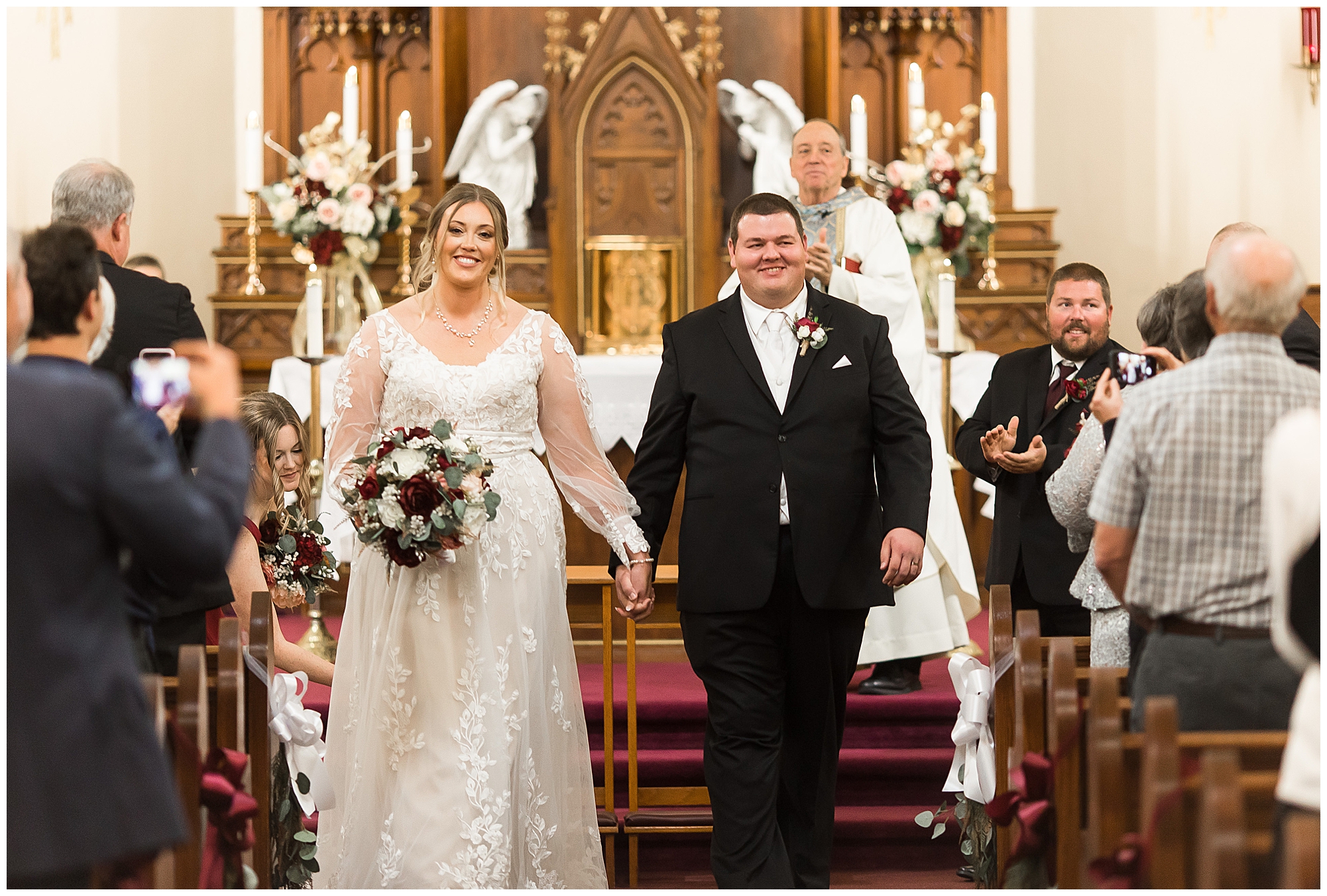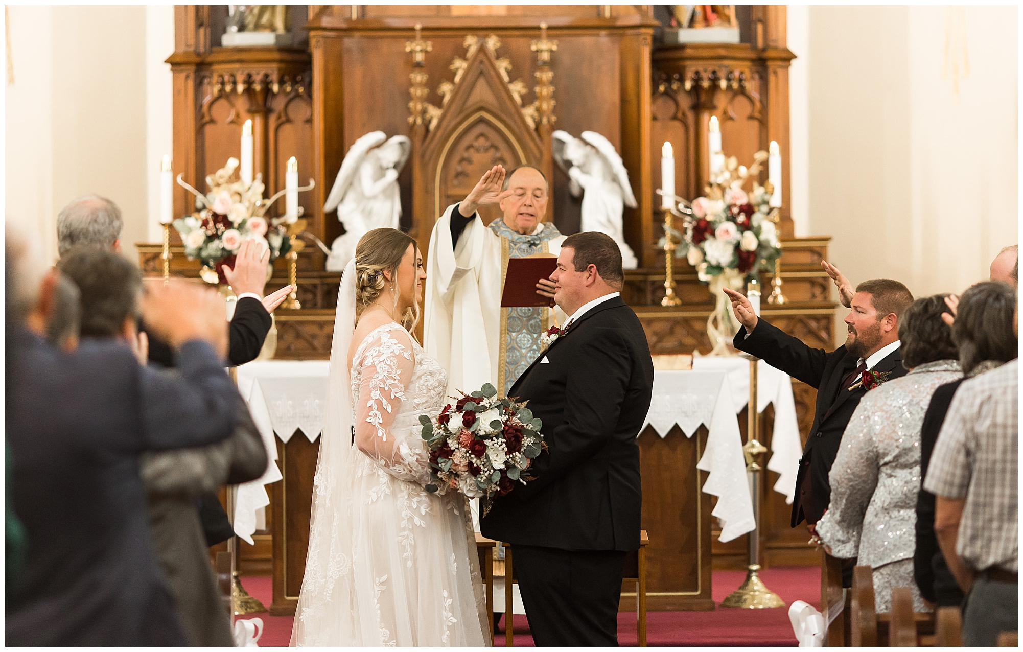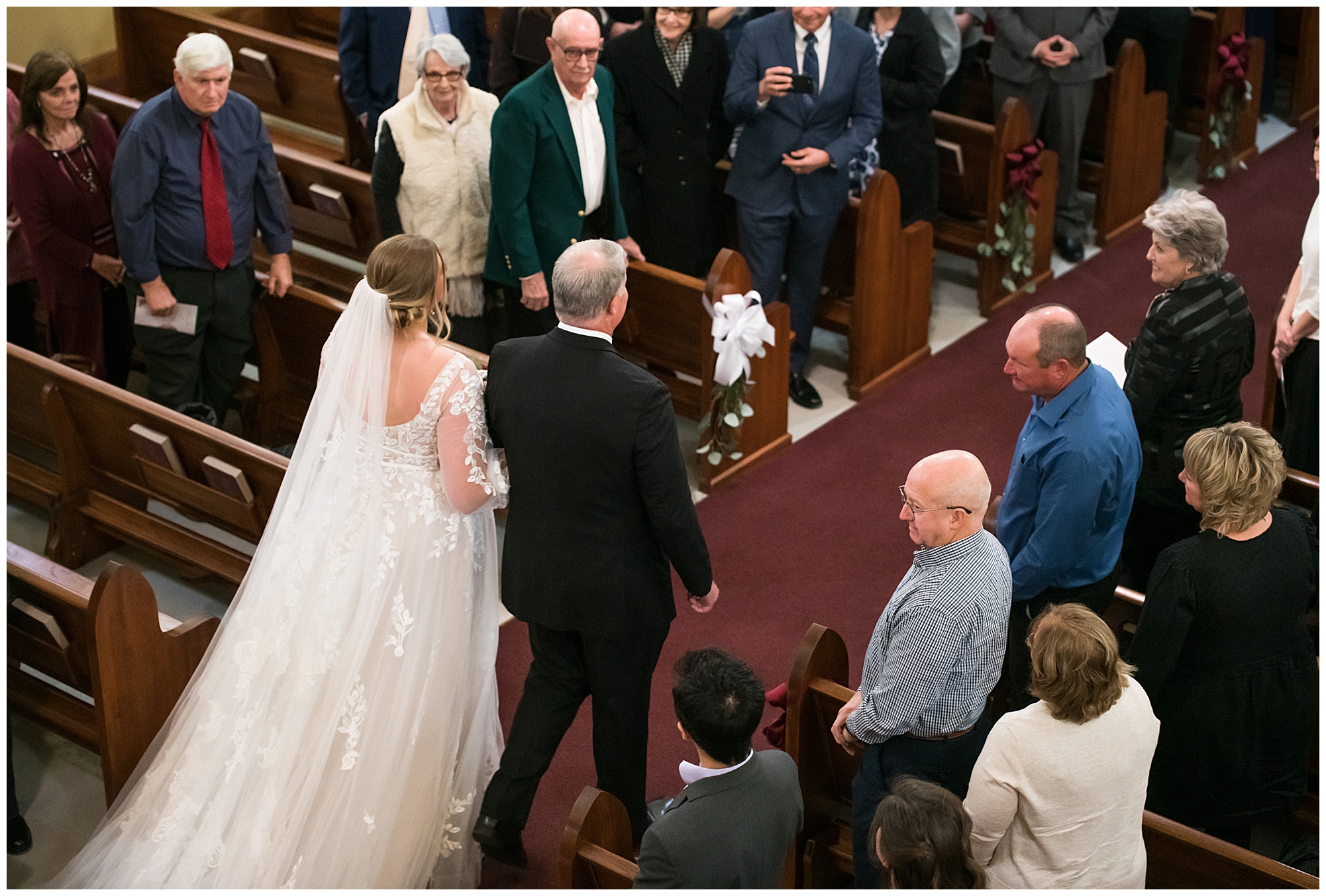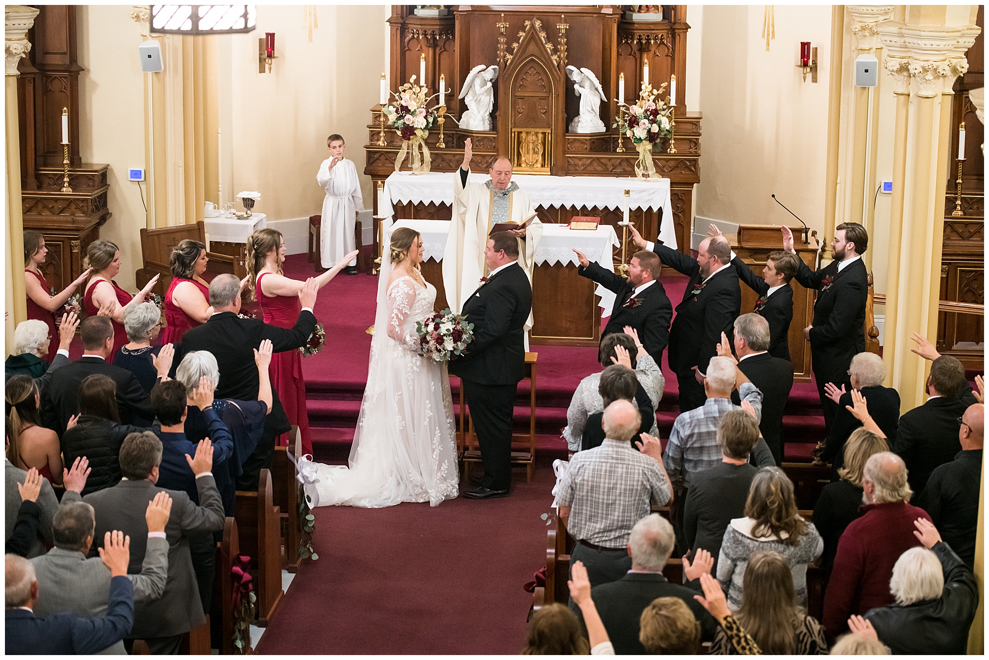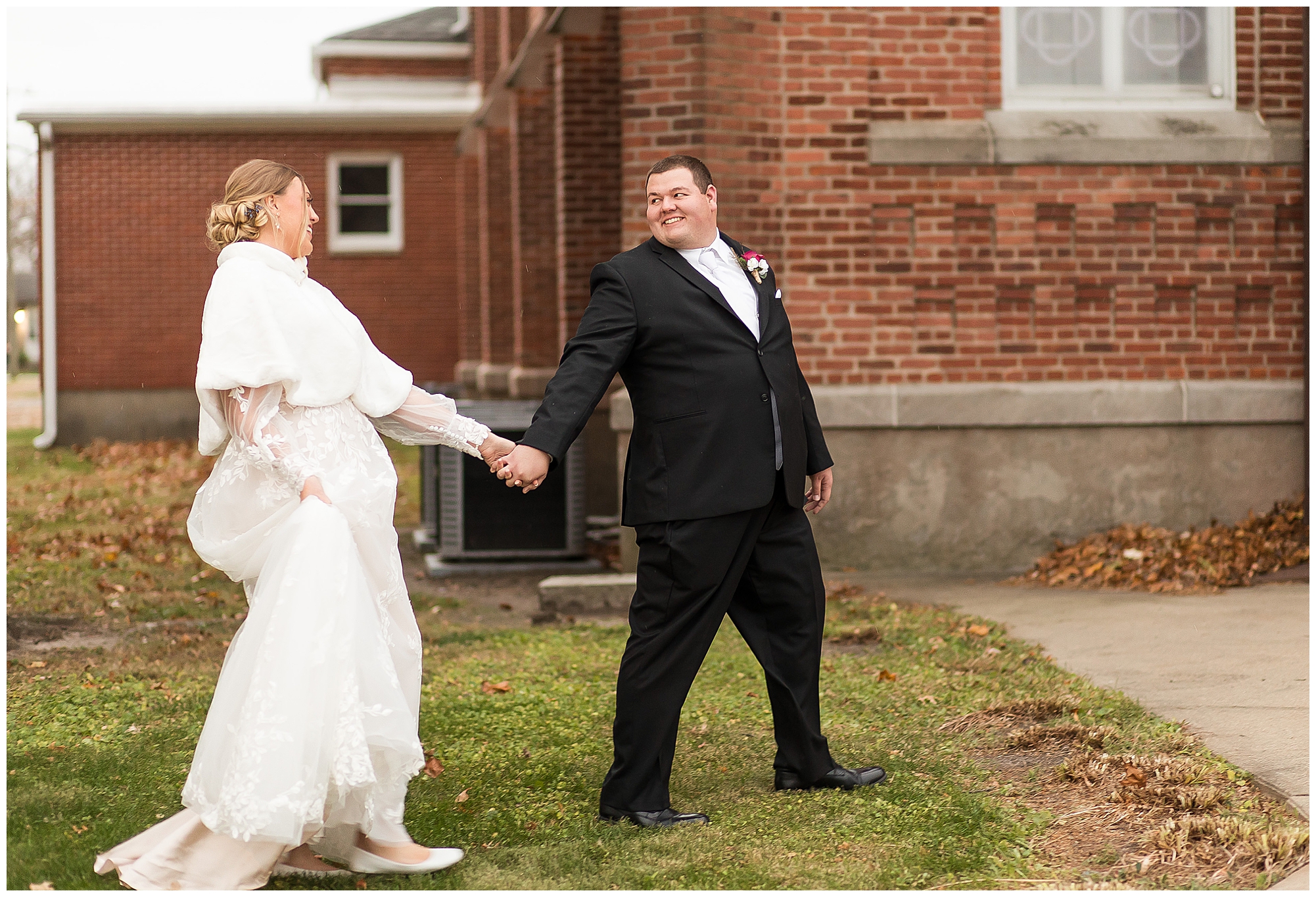 The Catholic ceremony had many faithful readings, music, and a meaningful homily from the priest who also married Clark’s parents 30 years (if I remember correctly). What a special connection! Meg and Clark exchanged rings, vows, and made it all official with a kiss! Congrats to the new Mr. & Mrs. Johnson! Before taking off the the reception hall, which was literally right down the street, the newlyweds allowed me a few more photos outside to capture that “Newly Married” look! And during this time we even had a few snow flurries floating around! Clark did say he wanted snow on their big day! He got his wish…Kinda!