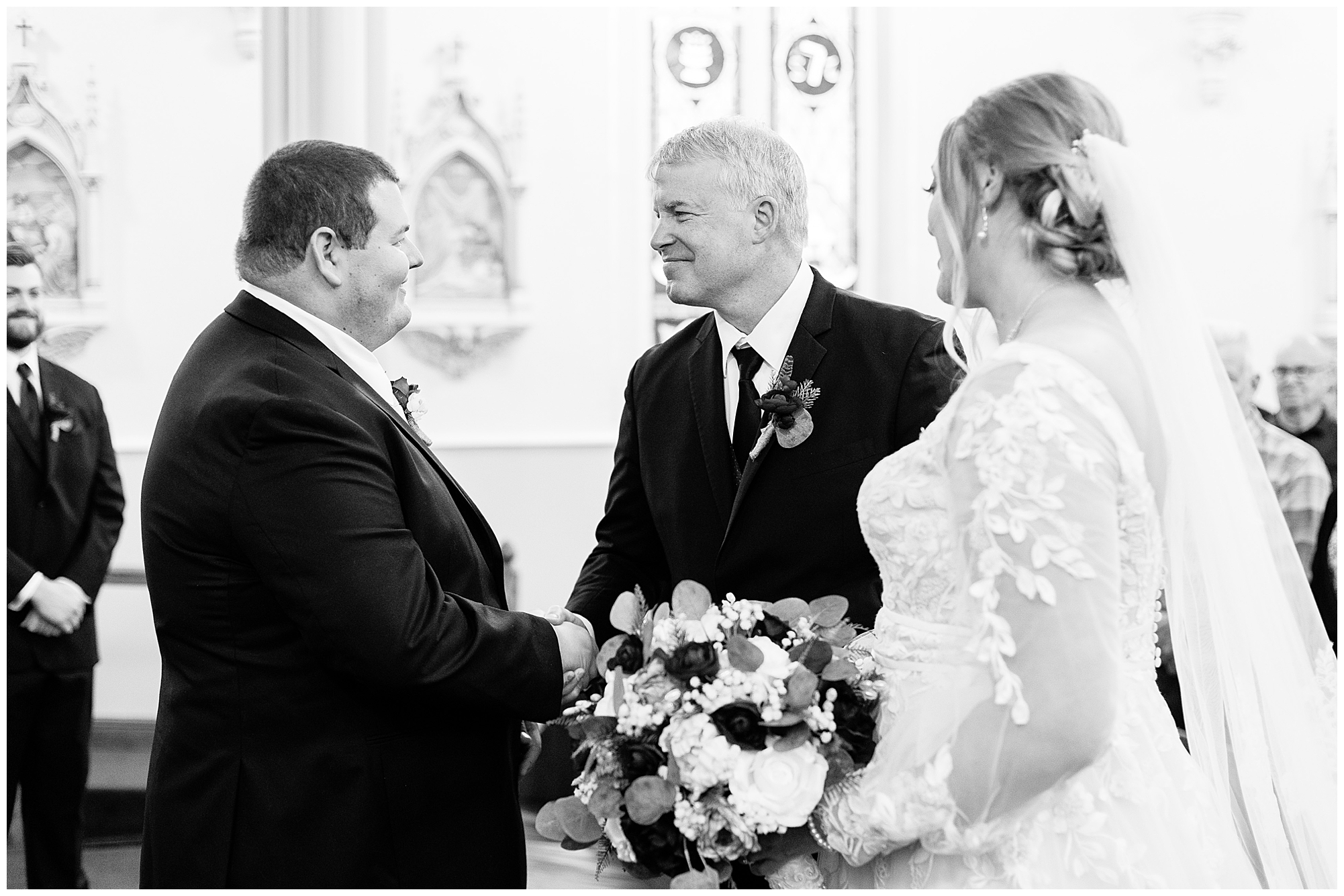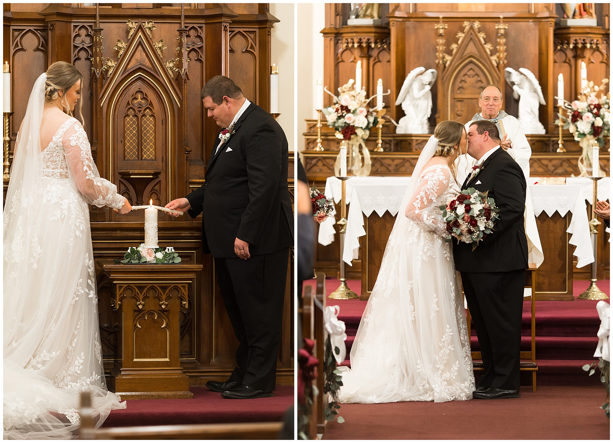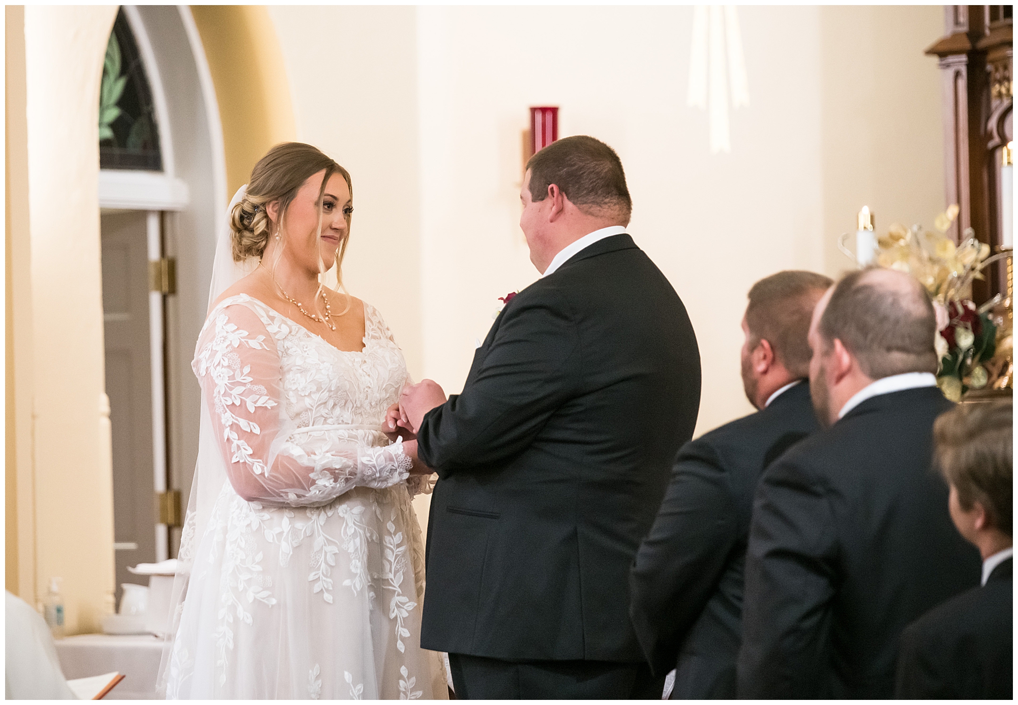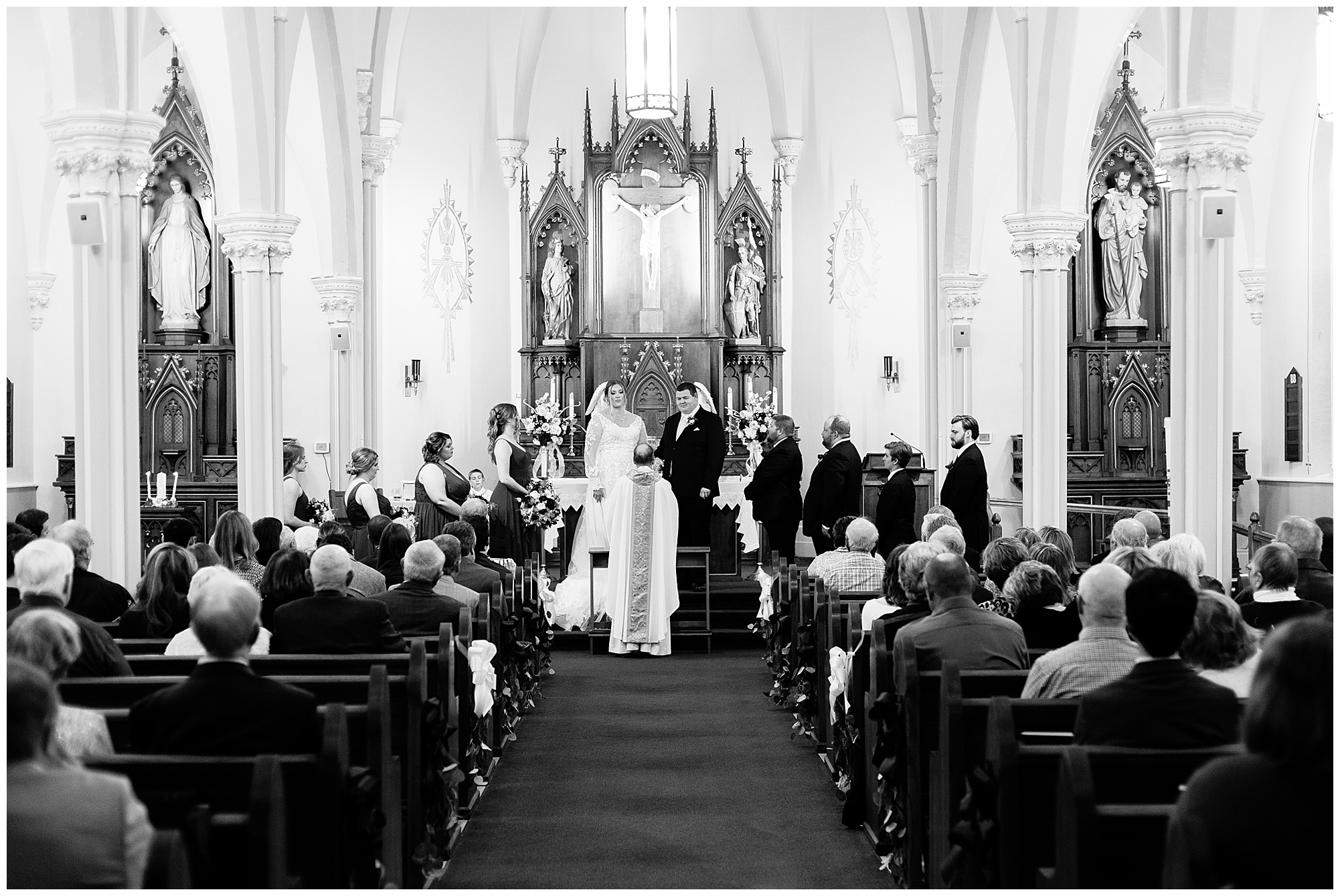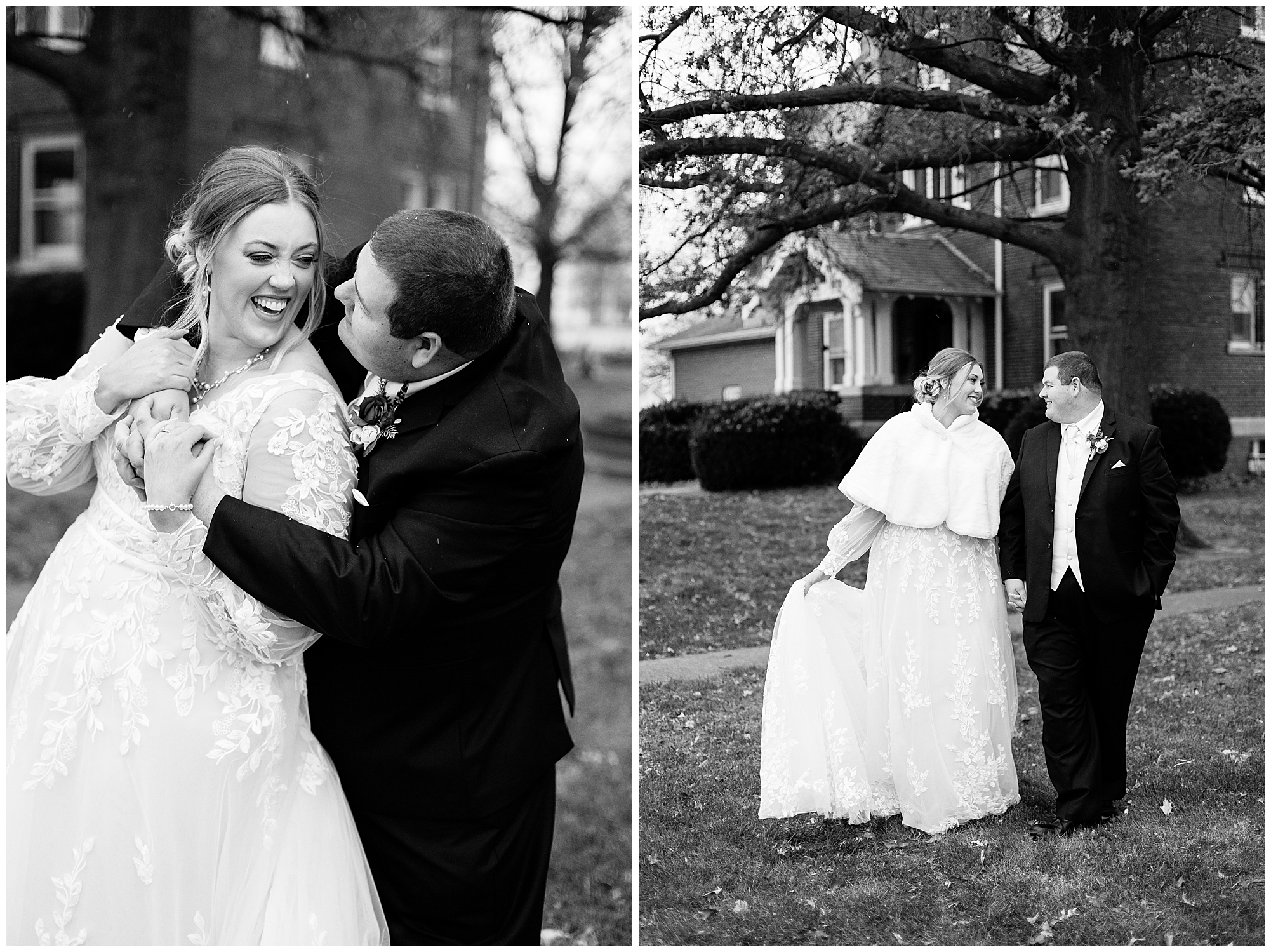 The Catholic ceremony had many faithful readings, music, and a meaningful homily from the priest who also married Clark’s parents 30 years (if I remember correctly). What a special connection! Meg and Clark exchanged rings, vows, and made it all official with a kiss! Congrats to the new Mr. & Mrs. Johnson! Before taking off the the reception hall, which was literally right down the street, the newlyweds allowed me a few more photos outside to capture that “Newly Married” look! And during this time we even had a few snow flurries floating around! Clark did say he wanted snow on their big day! He got his wish…Kinda!