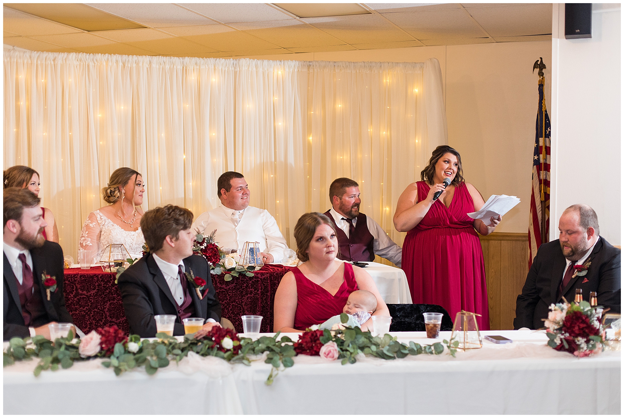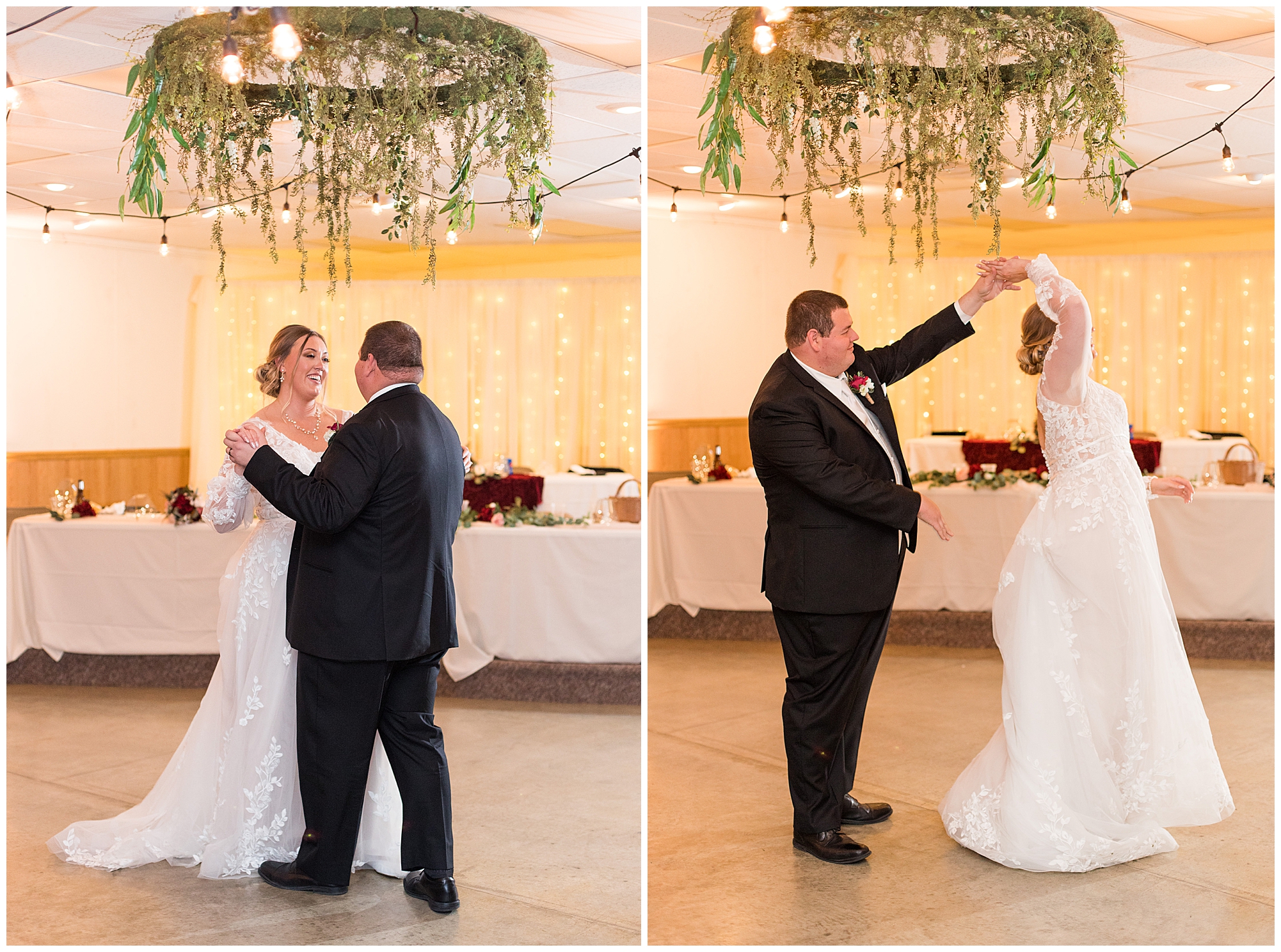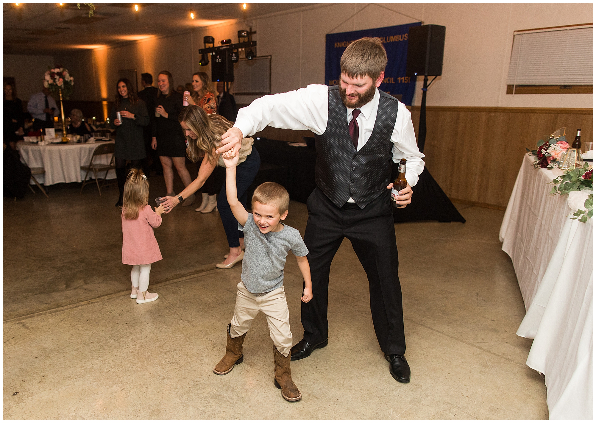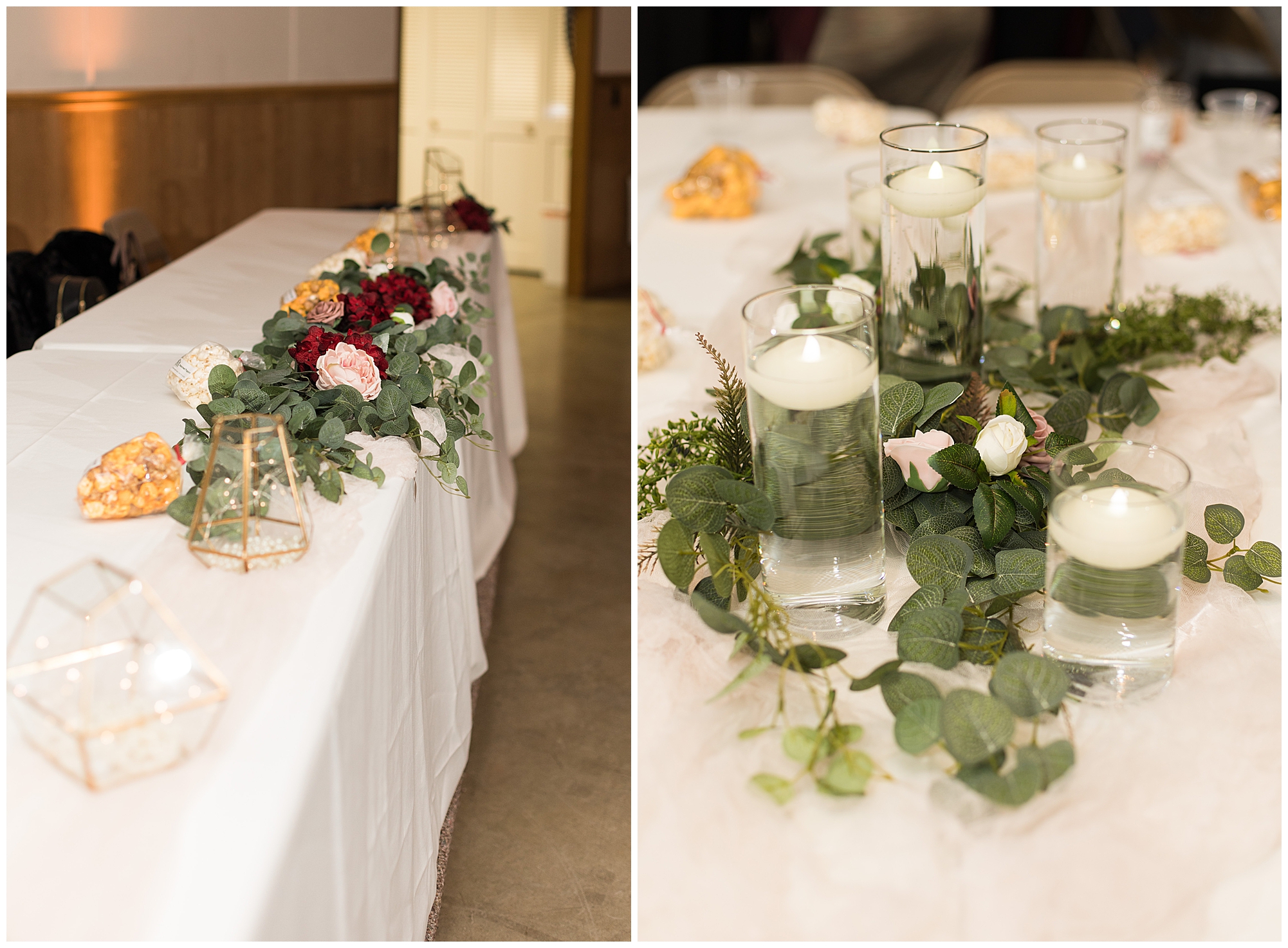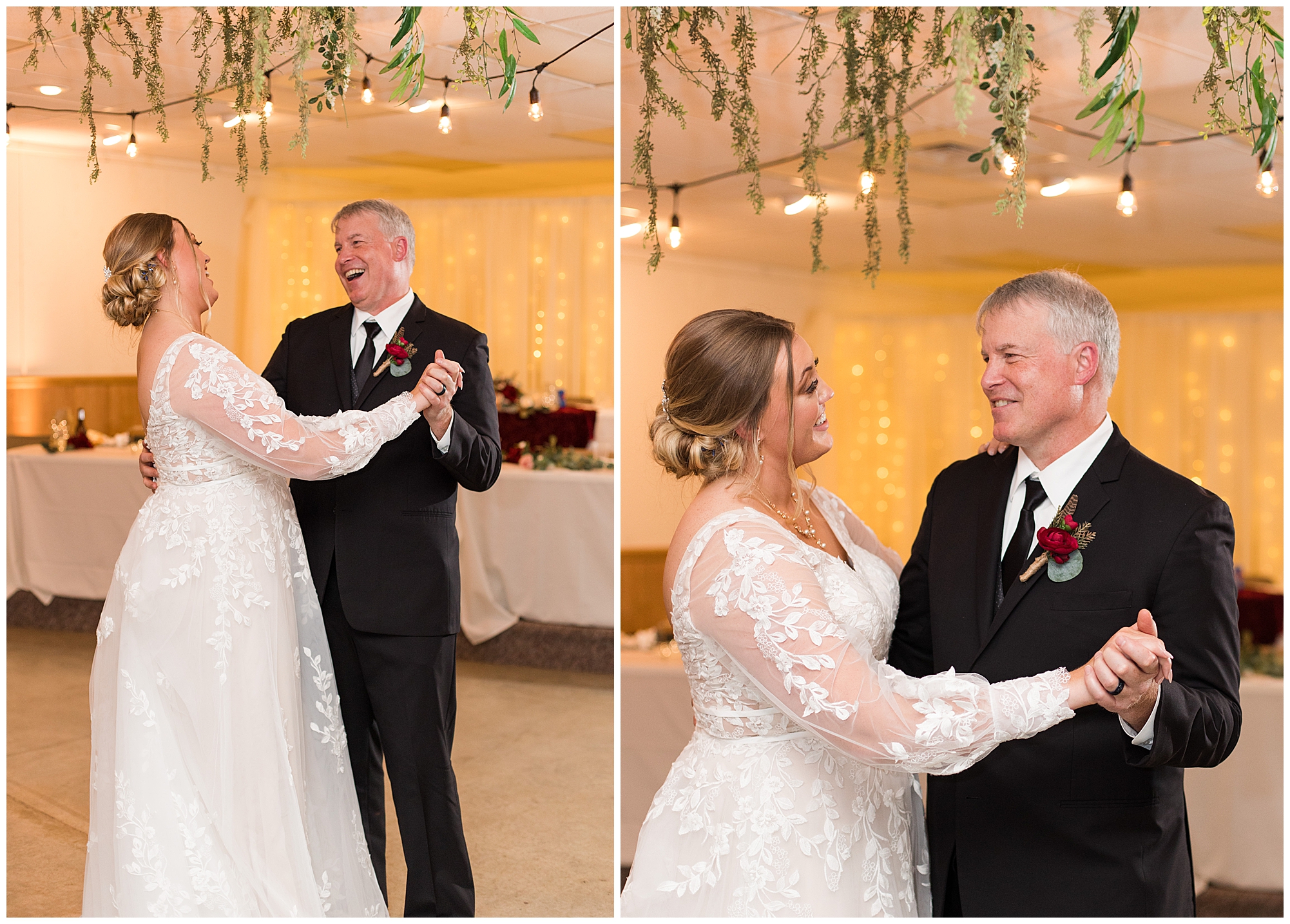 The reception hall was decorated beautifully with gold accents, burgundy and white flowers, and mesmerizing twinkle lights! They even had delightful greenery floating over the dance floor! Quite magical if you ask me! The couple was toasted, shared dances, and mingled with all of their guests. Then it was party time! The floor stayed packed for the night in celebration of this amazing couple! Cheers for many blessing to the new Mr. & Mrs. Johnson!