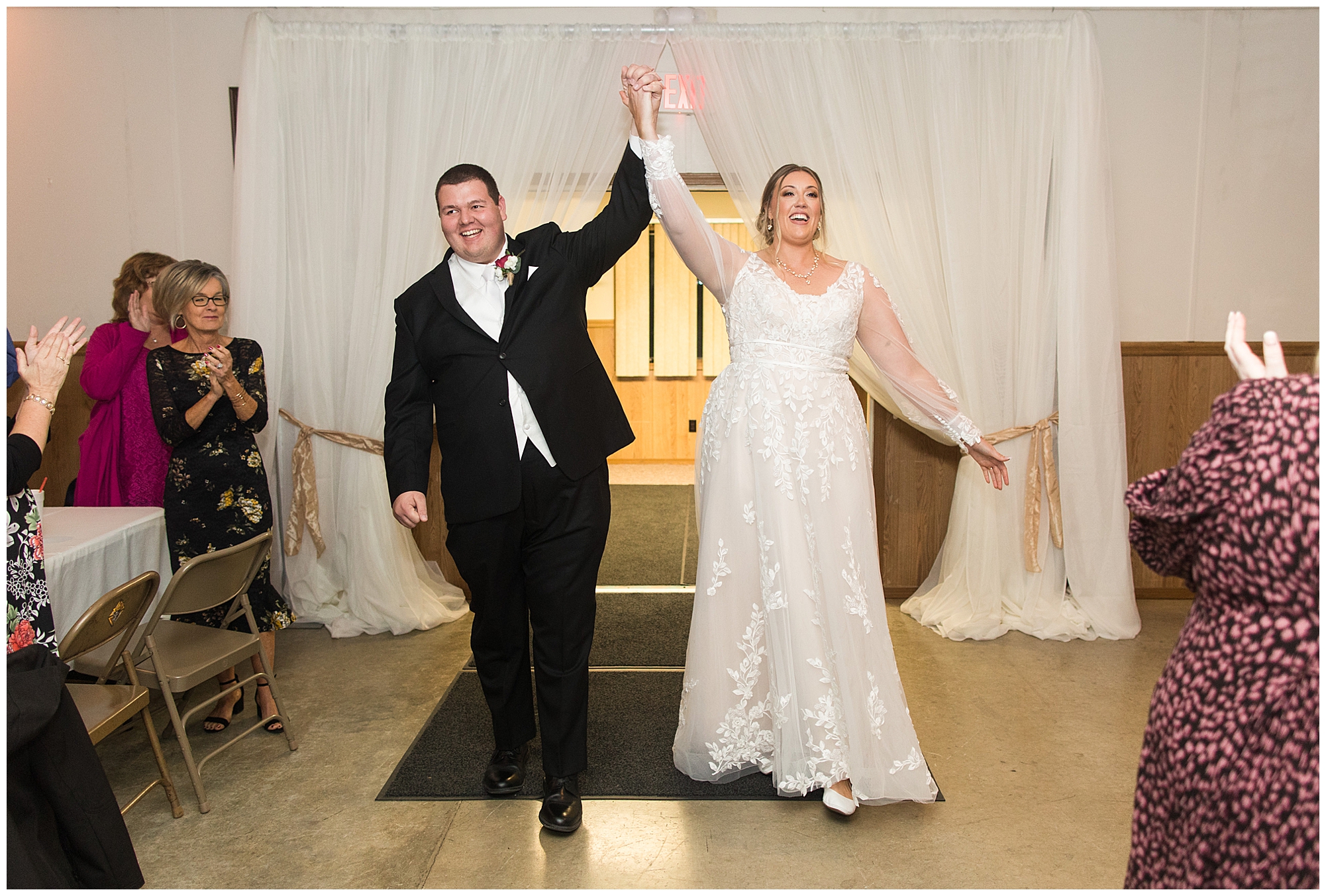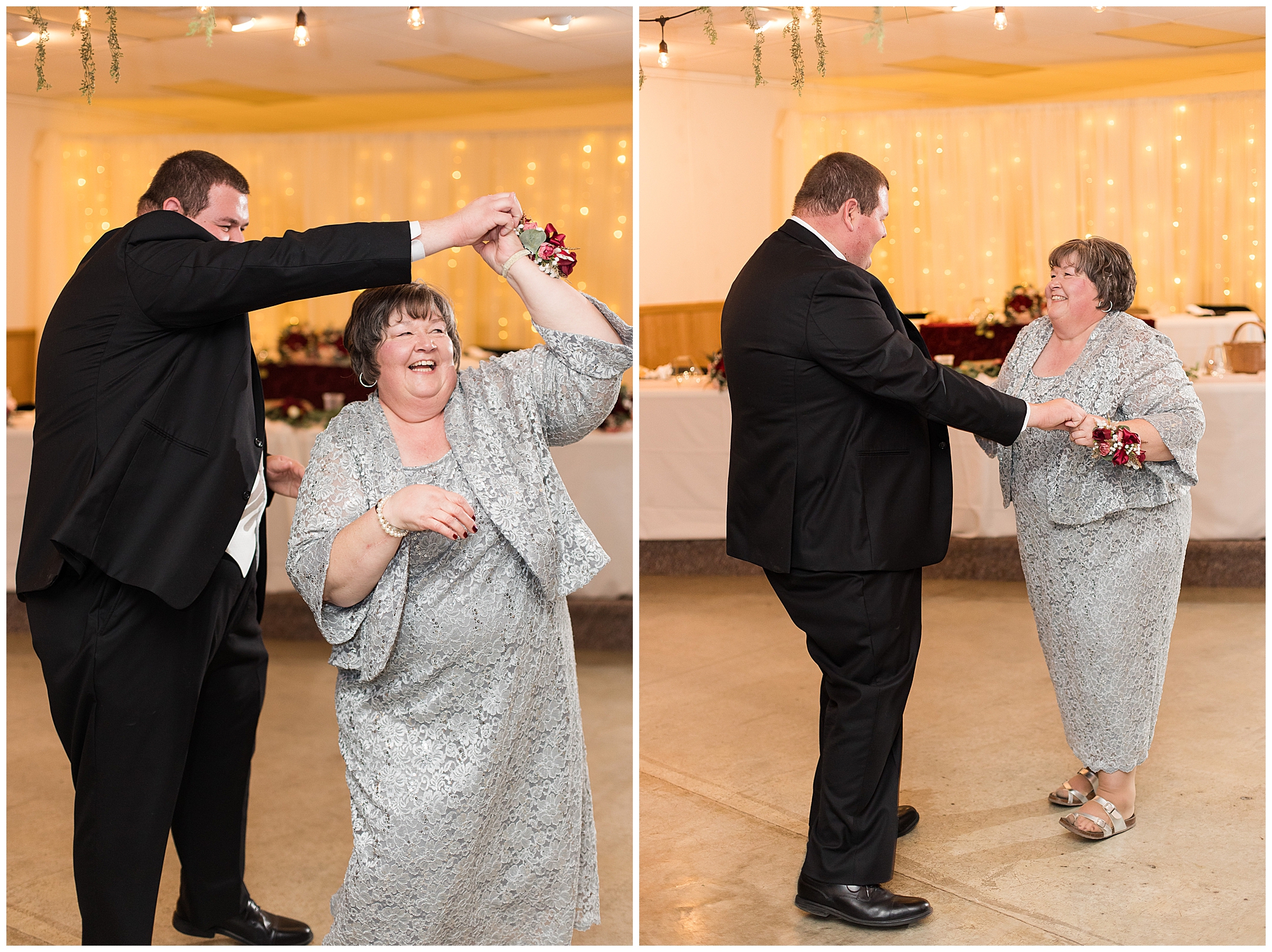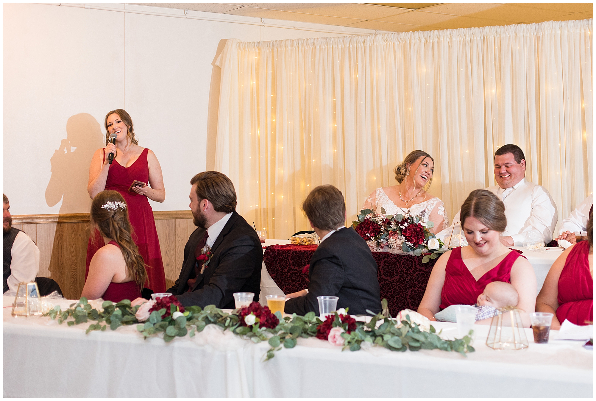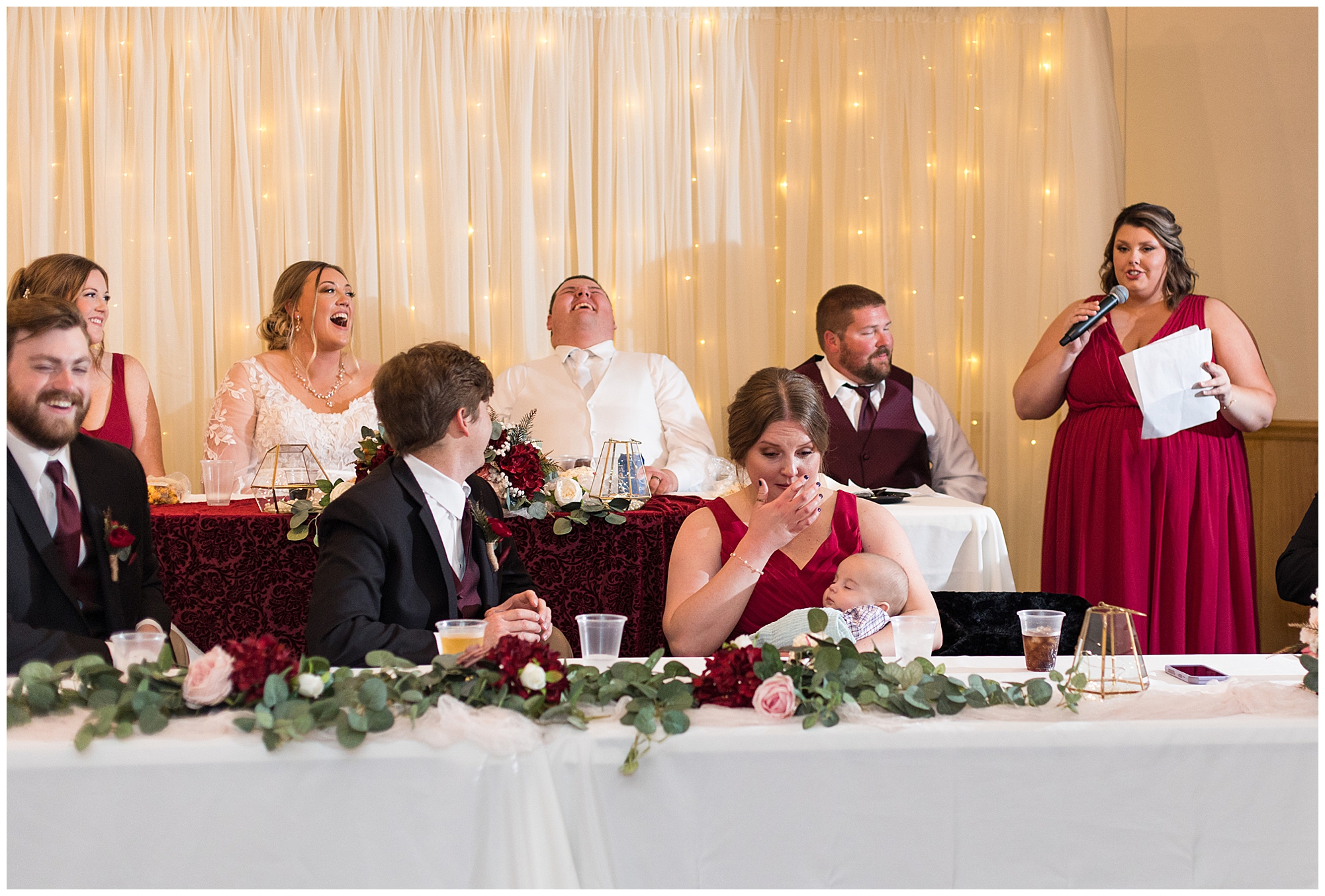 The reception hall was decorated beautifully with gold accents, burgundy and white flowers, and mesmerizing twinkle lights! They even had delightful greenery floating over the dance floor! Quite magical if you ask me! The couple was toasted, shared dances, and mingled with all of their guests. Then it was party time! The floor stayed packed for the night in celebration of this amazing couple! Cheers for many blessing to the new Mr. & Mrs. Johnson!