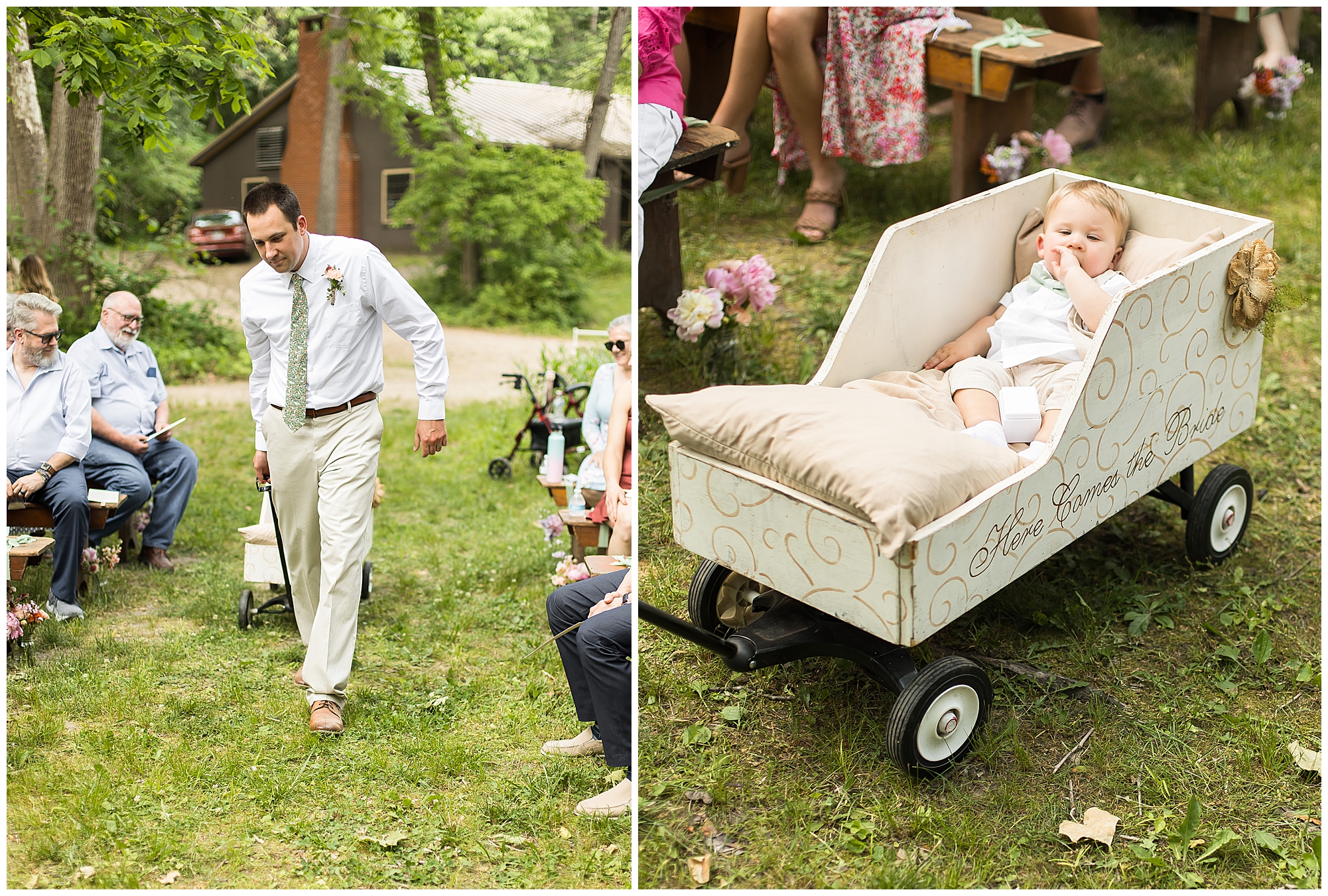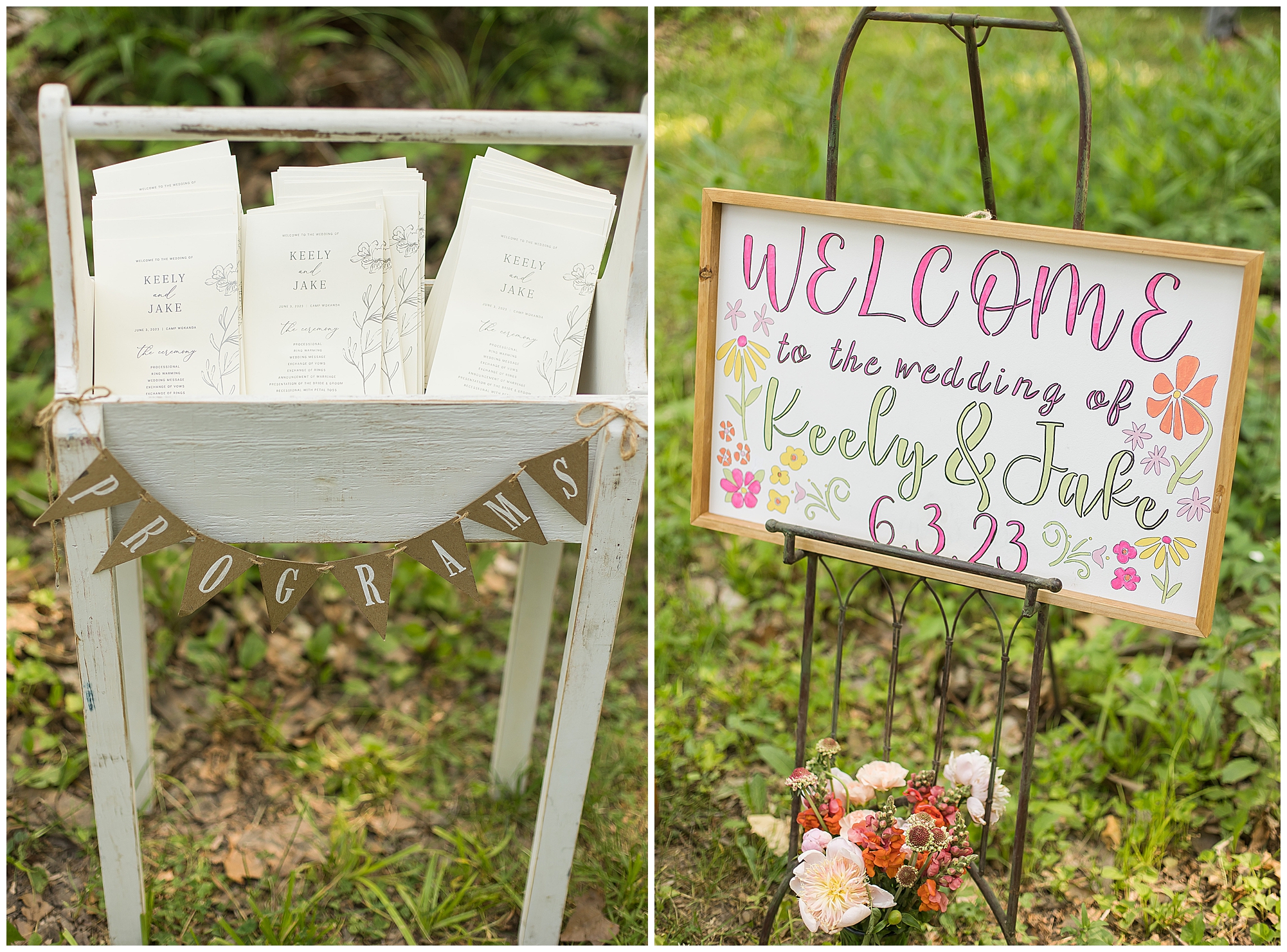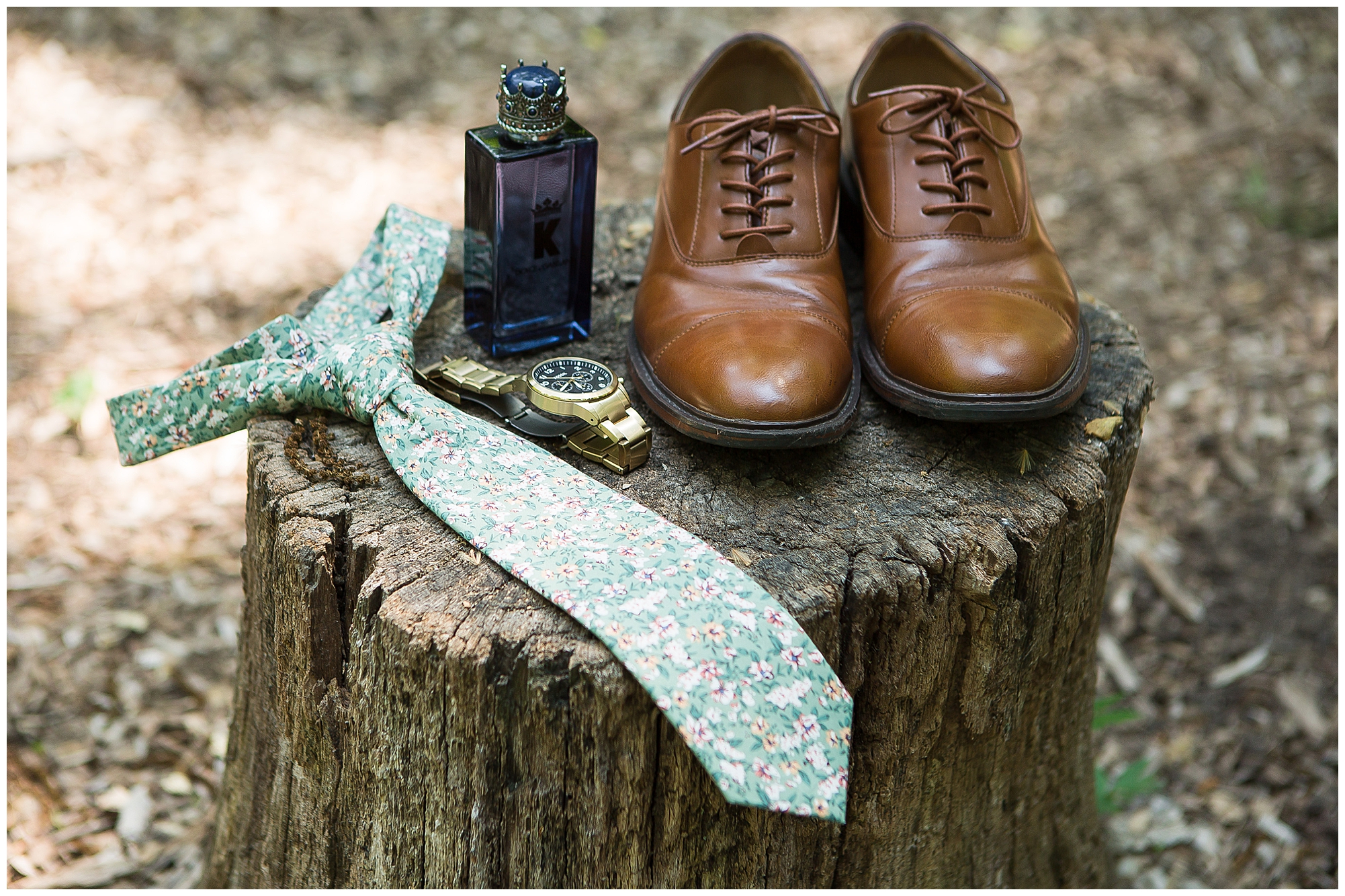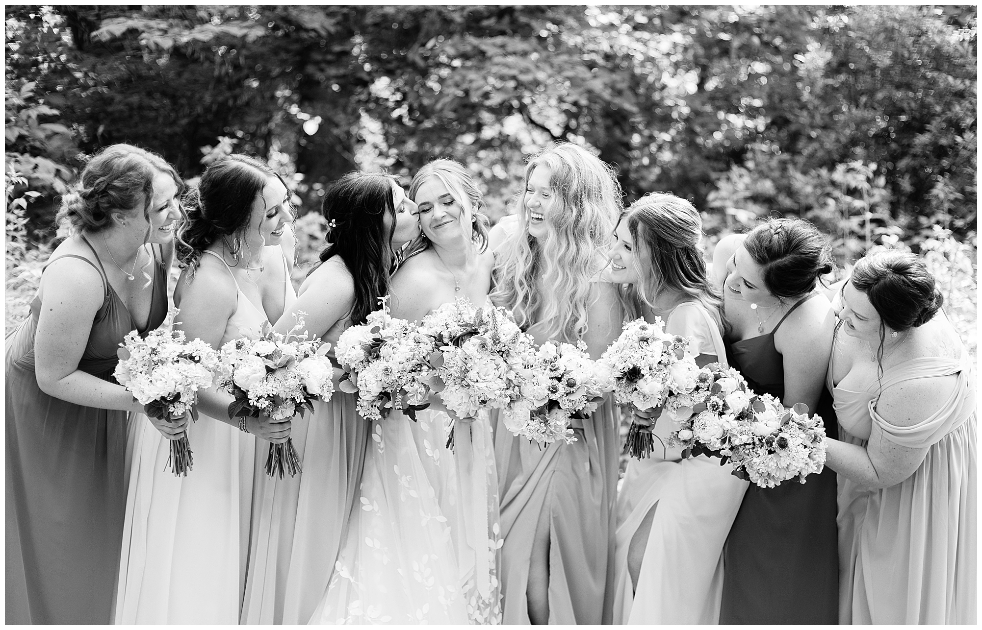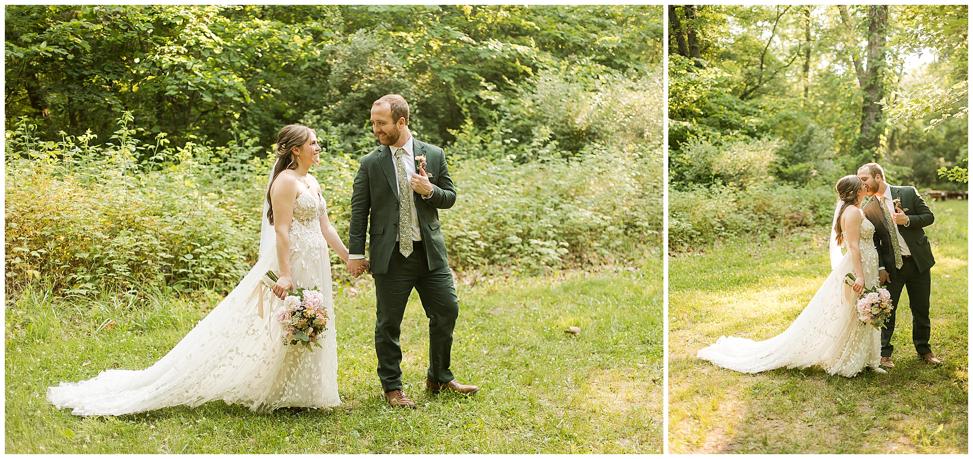It then came time for Keely and Jake’s first look! We found a little path in the woods tucked away for these two to have a private moment. You couldn’t have wiped off the smile from Jake’s face if you tried after he saw his bride to be. They decided to read their private vows to one another and their heartfelt words were emotional, touching, with a little dash of humor. So sweet! Then it was time to get the whole bridal party together for some fun. This crew was a blast to work with and were so helpful throughout the day. Jake’s crew wore timeless button-down white shirts and the same floral green and cream ties with khakis. And his groomswoman looked awesome and wore a lovely green dress similar to the bridesmaids. Once the enjoyment was done with the bridal party, it was time for these two to say, “I Do”!