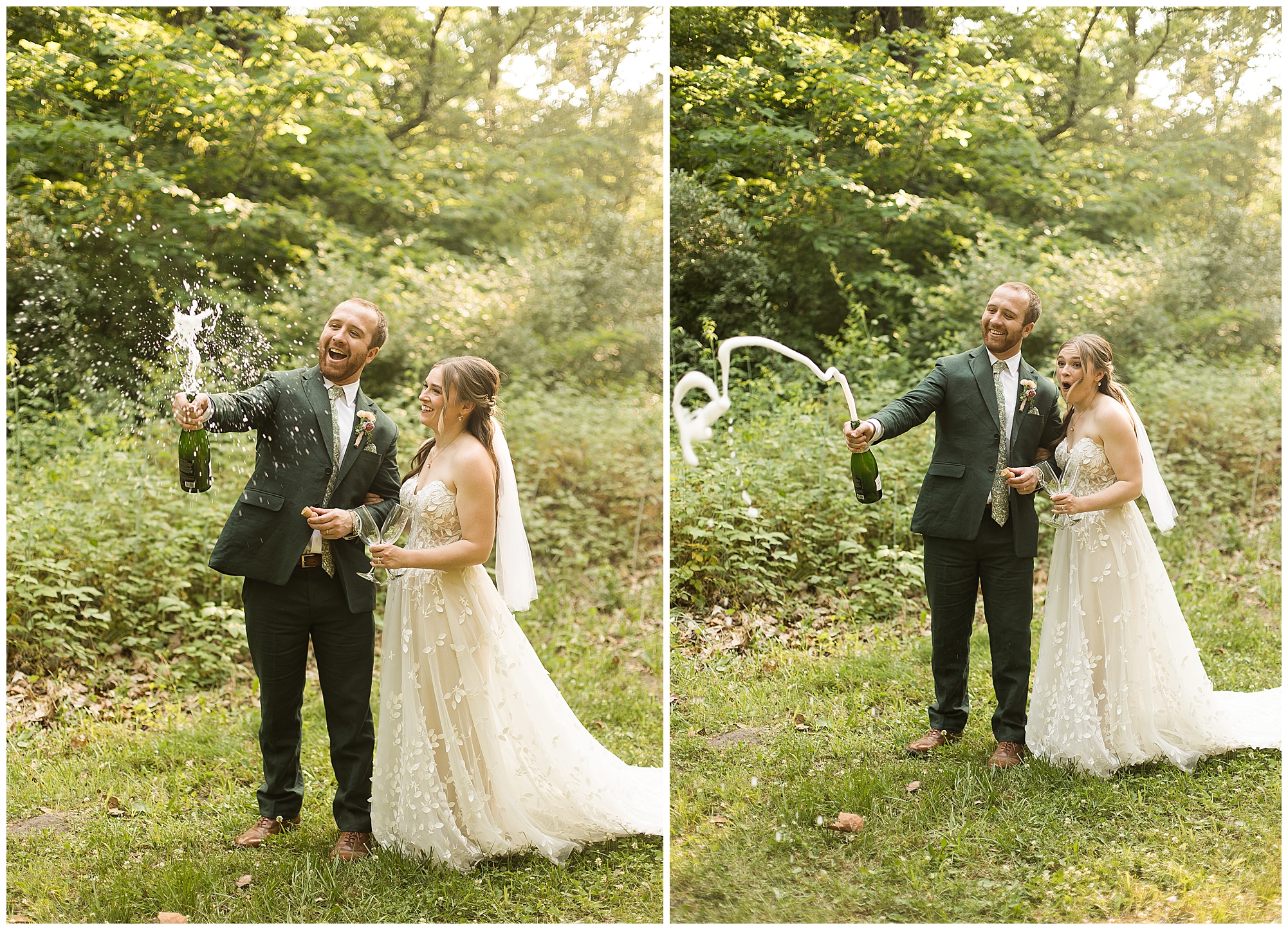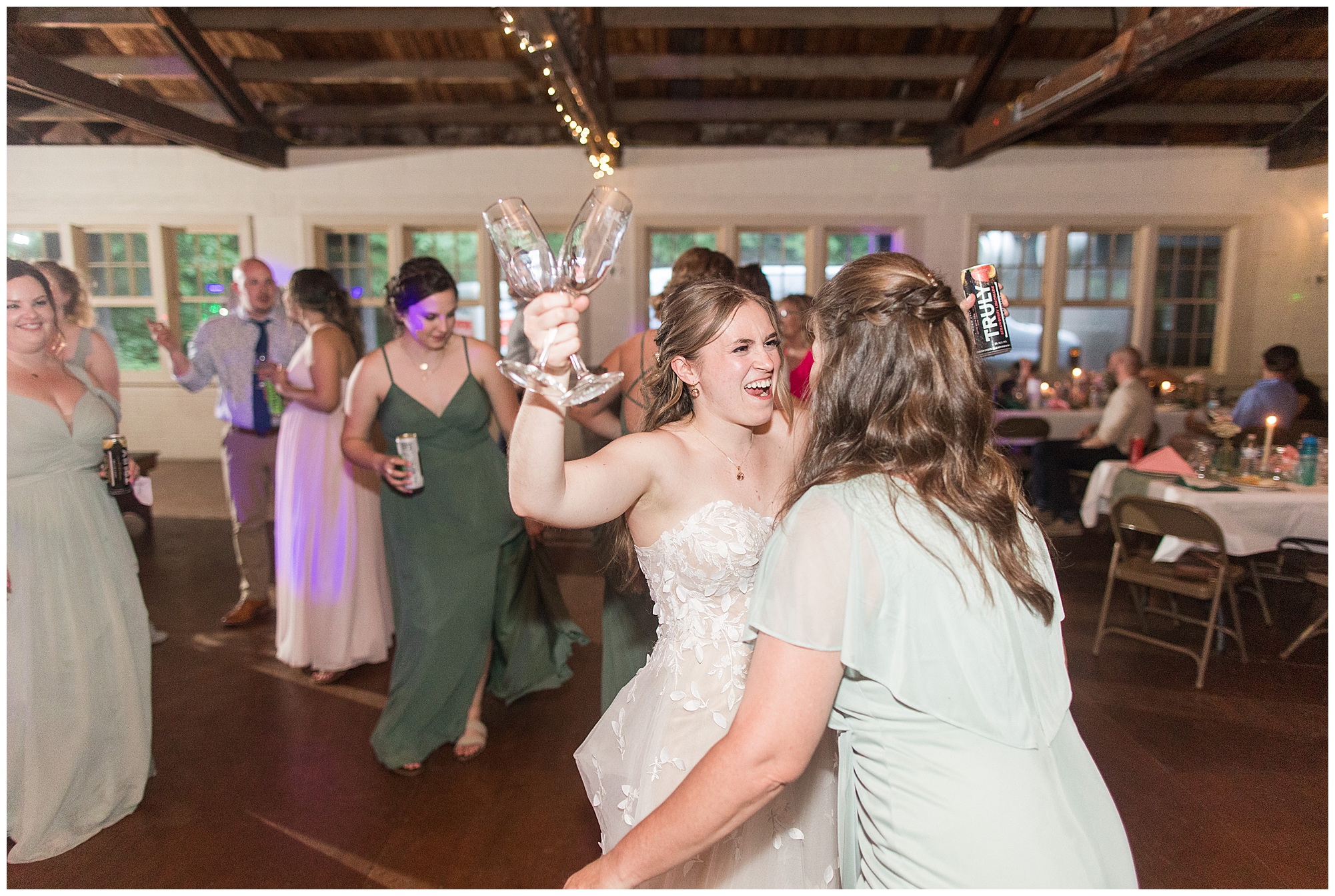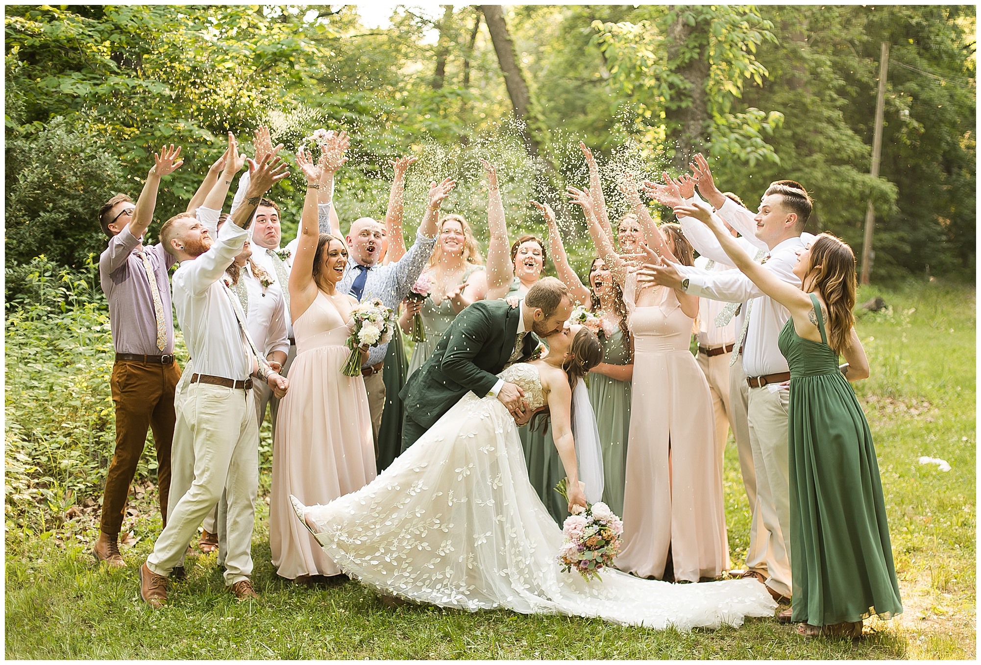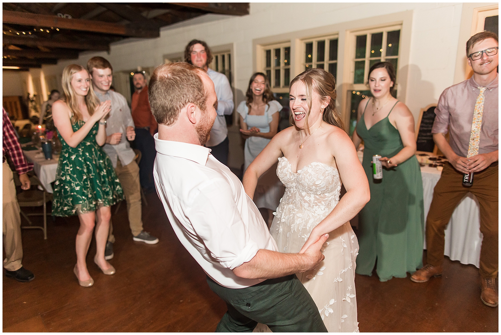 Before entering the reception, we took a few minutes with the newlyweds for more photos. The sunlight was pouring through the trees as these two were ready to celebrate their union. To keep with this couple’s love for sharing a beverage like they did at their engagement session with a bottle of wine, Jake and Keely popped a bottle of champagne to rejoice in their marriage. Now it was time for The Morgans to make their way into the reception. These guys were all ready to have a good time with a choreographed first dance including spins, dips, and even lifts! With emotional toasts followed by a dual parent dance with Keely’s dad and Jake’s mom the reception was off to a sweet start. Then the party began! The dance floor was packed all night as this couple’s loved ones celebrated into the night. I adored capturing Keely and Jake’s special moments and I wish them all the best in their blessed marriage!