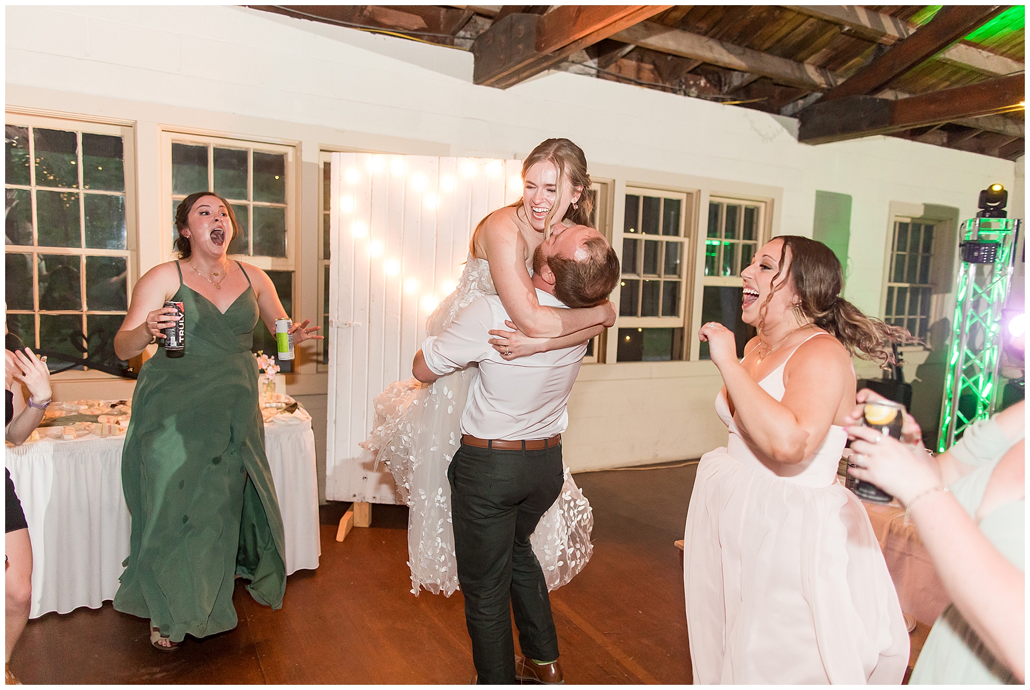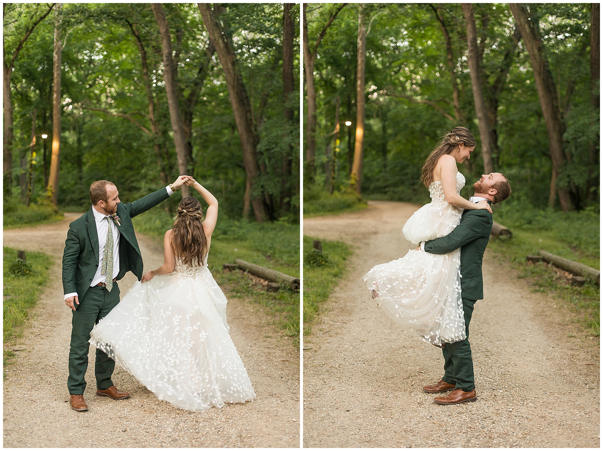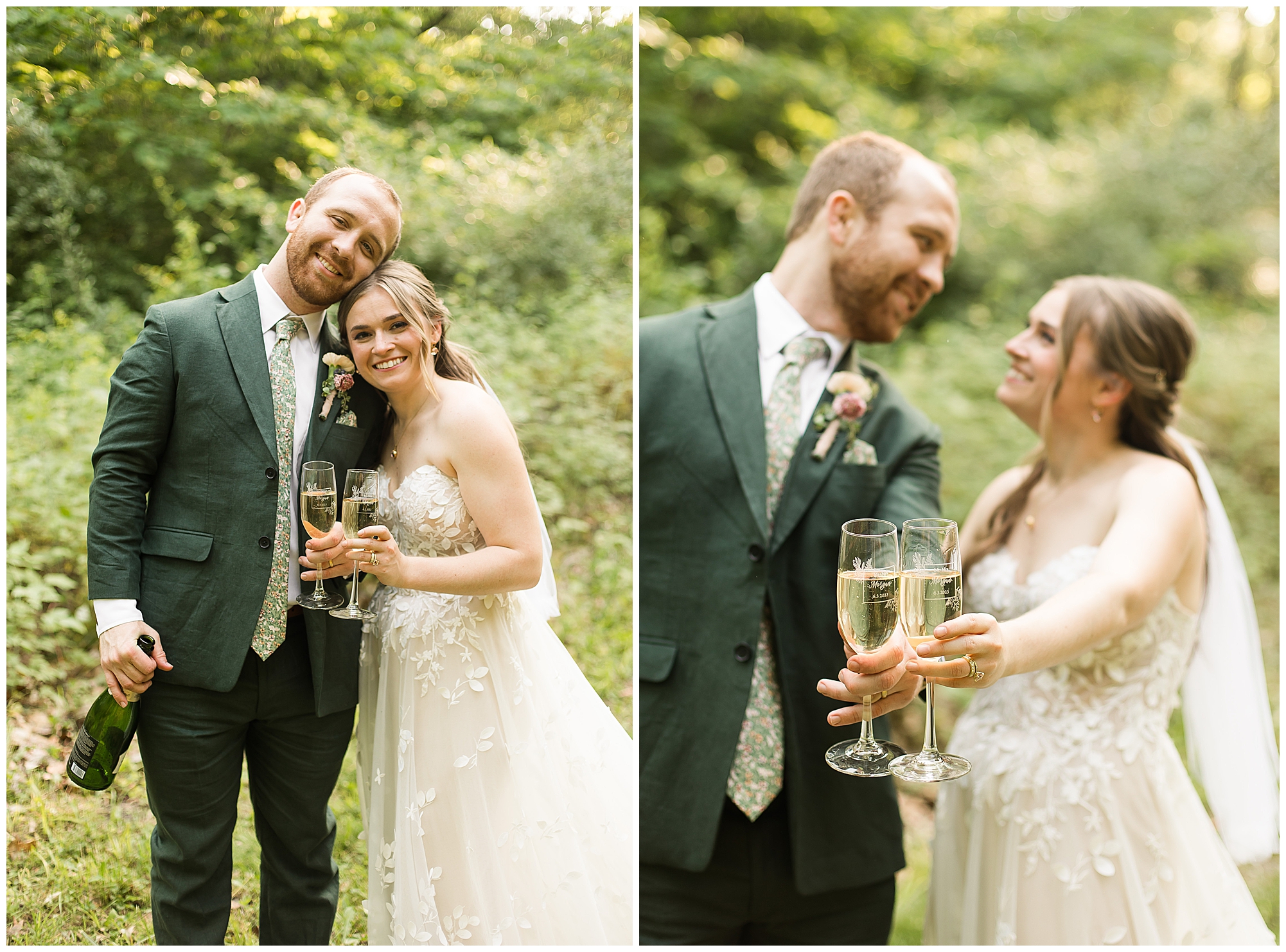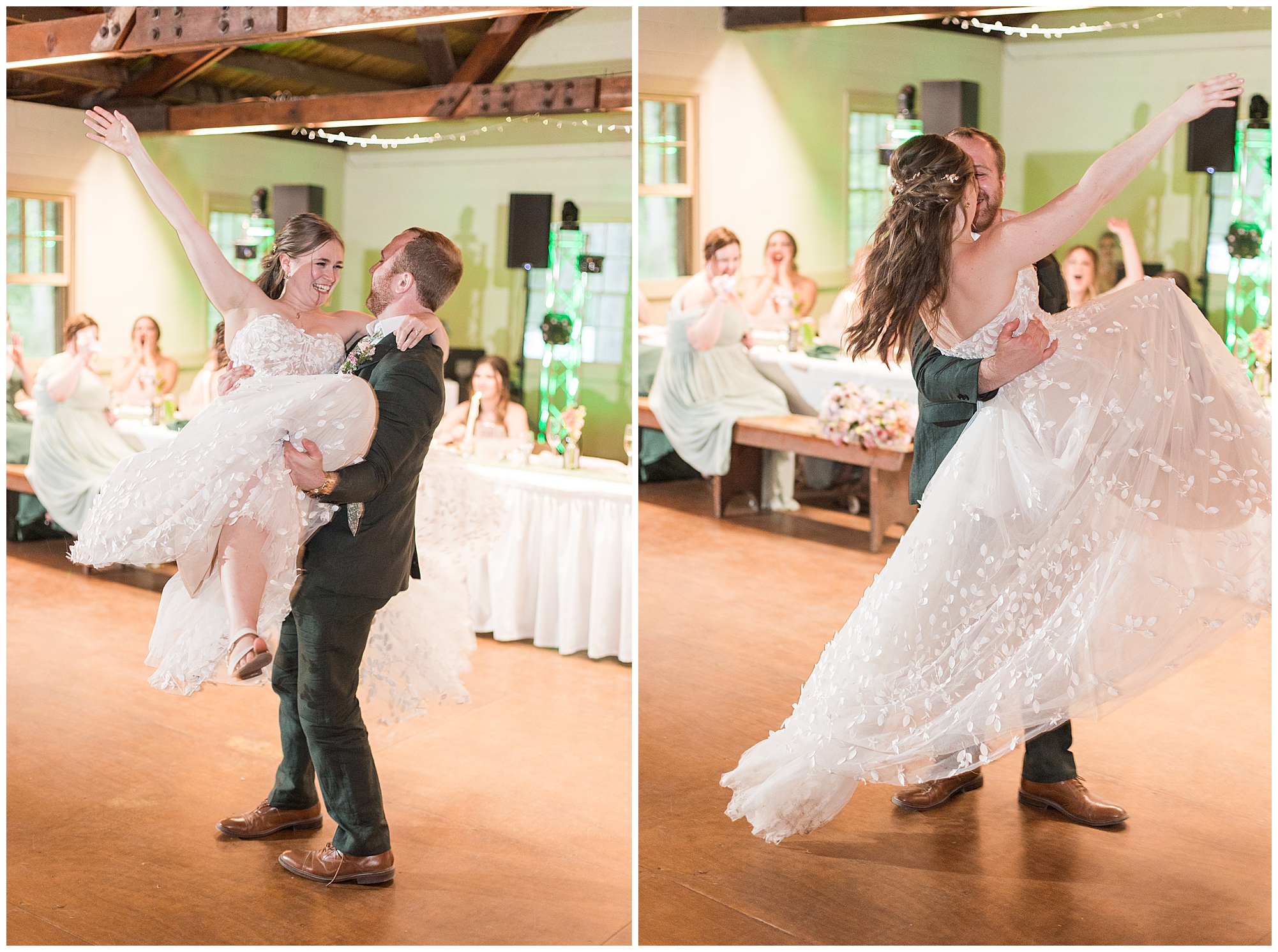 Before entering the reception, we took a few minutes with the newlyweds for more photos. The sunlight was pouring through the trees as these two were ready to celebrate their union. To keep with this couple’s love for sharing a beverage like they did at their engagement session with a bottle of wine, Jake and Keely popped a bottle of champagne to rejoice in their marriage. Now it was time for The Morgans to make their way into the reception. These guys were all ready to have a good time with a choreographed first dance including spins, dips, and even lifts! With emotional toasts followed by a dual parent dance with Keely’s dad and Jake’s mom the reception was off to a sweet start. Then the party began! The dance floor was packed all night as this couple’s loved ones celebrated into the night. I adored capturing Keely and Jake’s special moments and I wish them all the best in their blessed marriage!