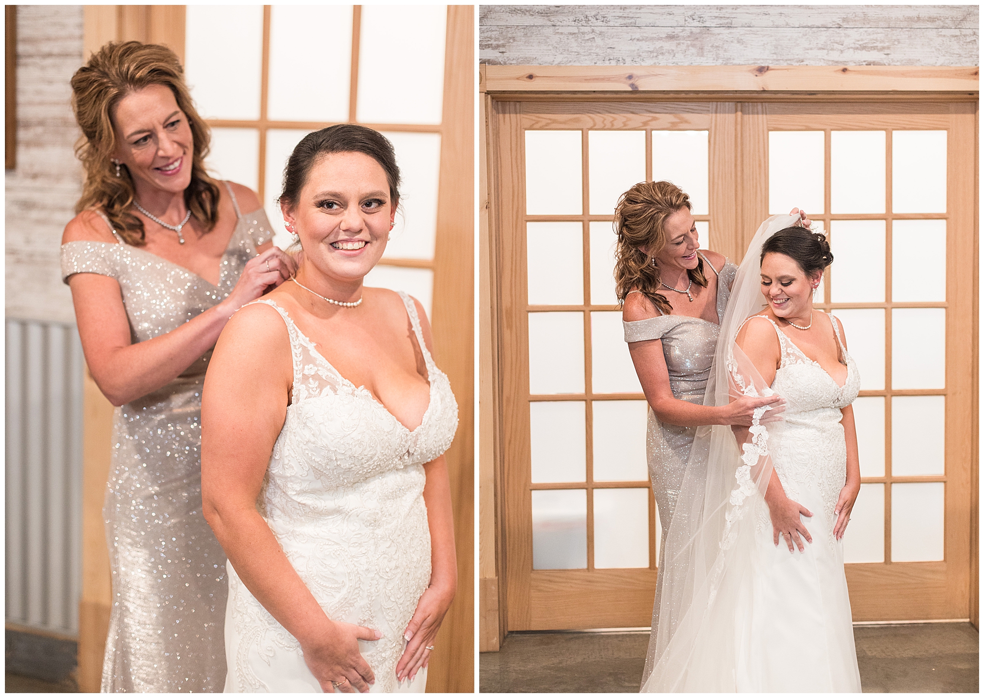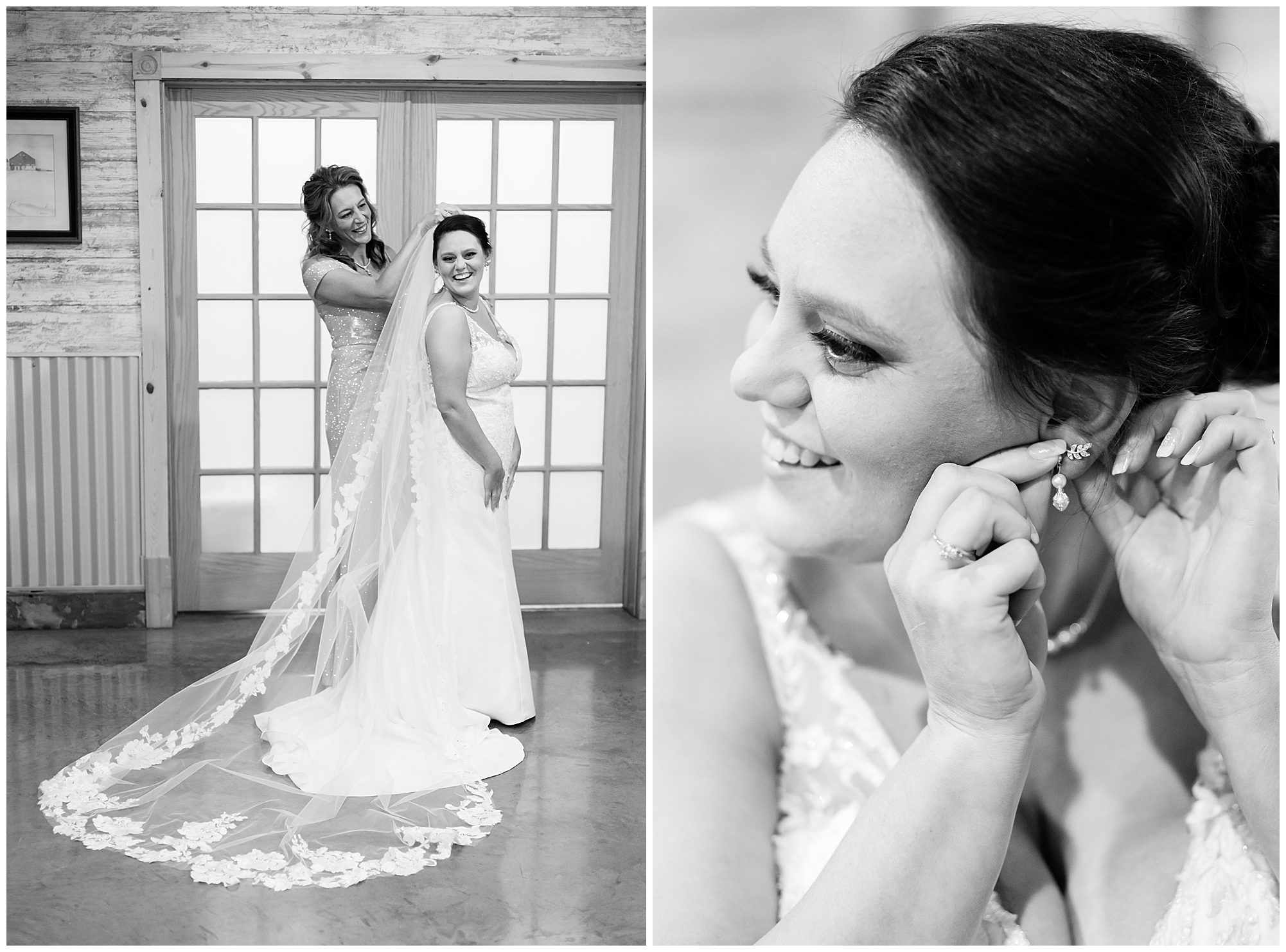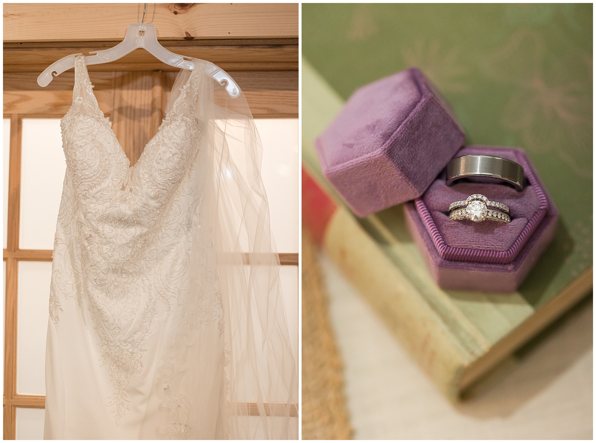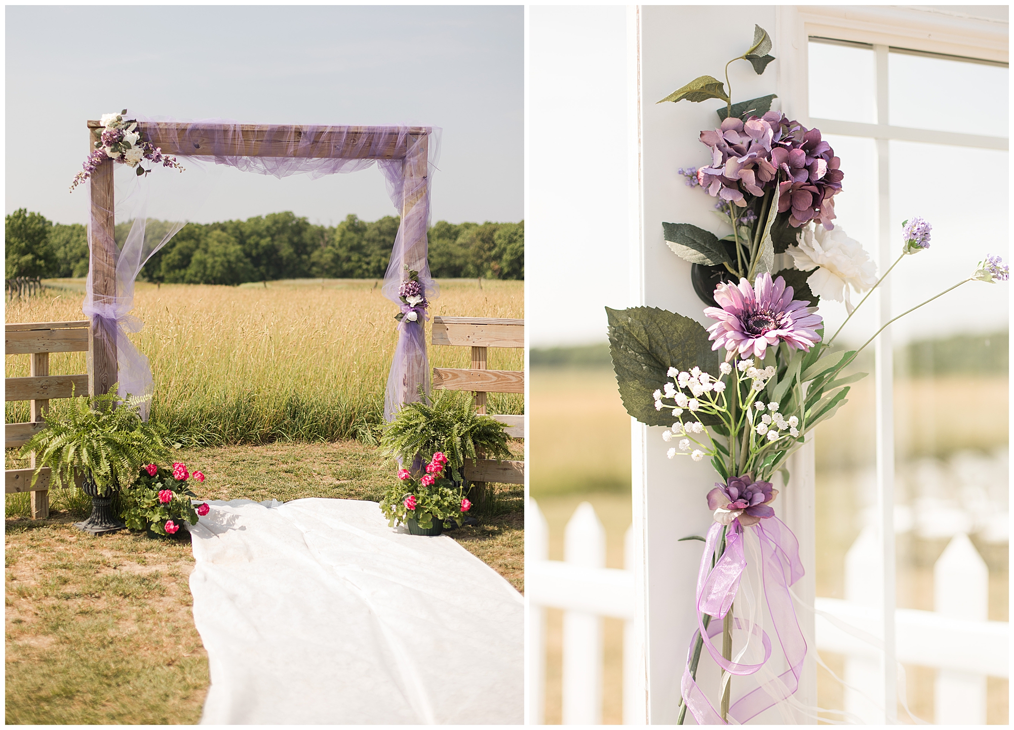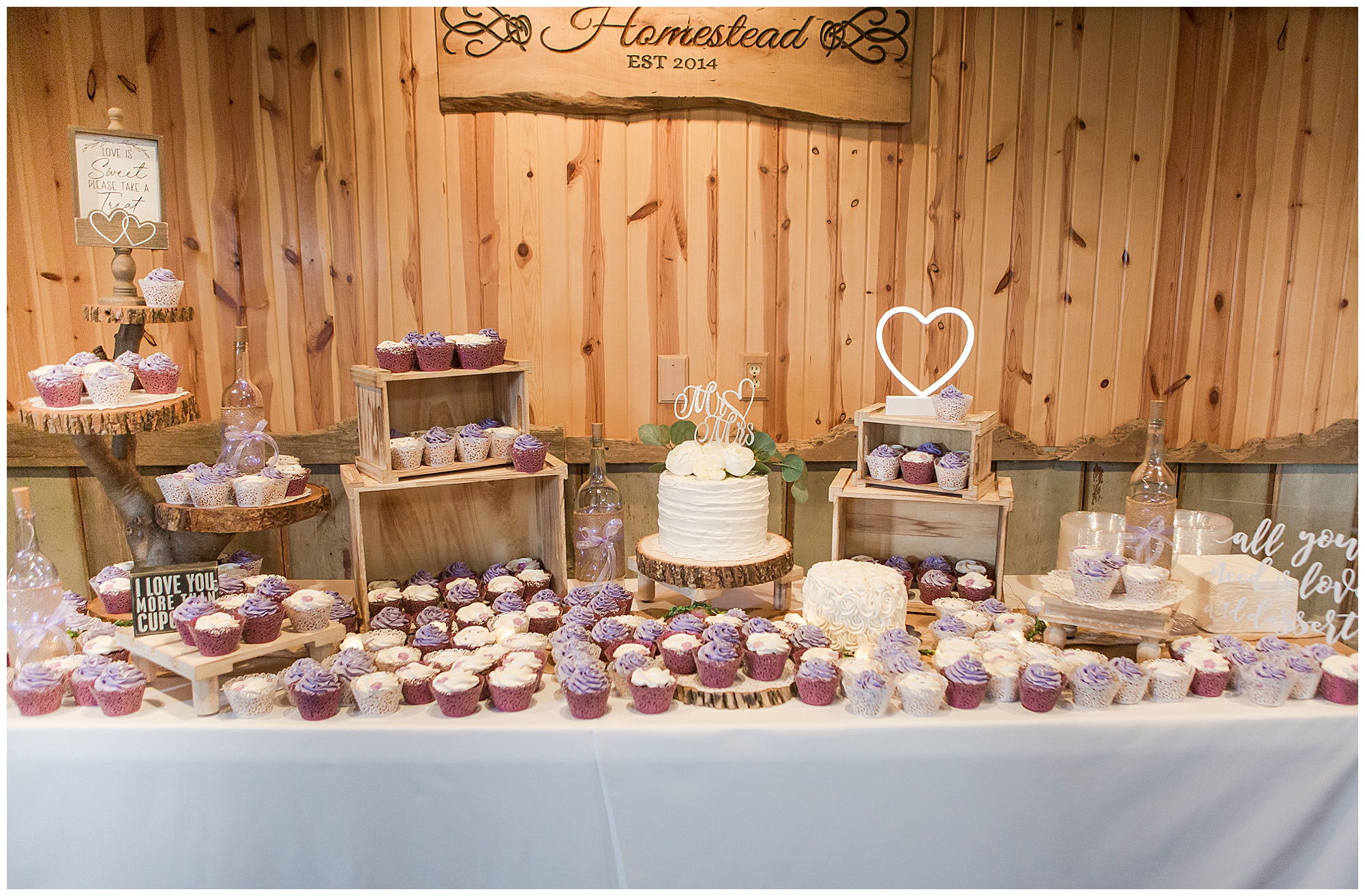Alena and Zach’s beautiful wedding day out at The Homestead Reception venue was an absolutely gorgeous event! These two have been through so much in the last couple of years and for their special day to finally arrive was a blessing. Throughout the day, Alena and Zach were shown endless amounts of love and support from family and friends as well as showed how much they truly appreciated it all. I mean with a bridal party of 20, how could you not feel the love? The morning began with the hustle and bustle of everyone getting ready. Hair, makeup, and steaming dresses for Alena and her ladies. And Zach and the guys arriving, sharing a couple of drinks, and searching for lost socks. The color palette was a variation of purples throughout the decor and dresses. The ladies looked lovely in a variety of styles of dresses in a delightful lavender shade. The guys had pops of purple as well in their ties and boutonnieres. When it came time for Alena to get dressed she was simply stunning! Her form-fitting gown with intricate beading at the top was complimented by a fabulous cathedral length veil with floral appliqués on the bottom. Perfection at it’s best! Before the ceremony, Alena and Zach chose not to see one another. Yet, we knocked out a few photos of each of them separately with each of their sides of the bridal party. The temperature was hot, but everyone was in good spirits and excited for what was to come!