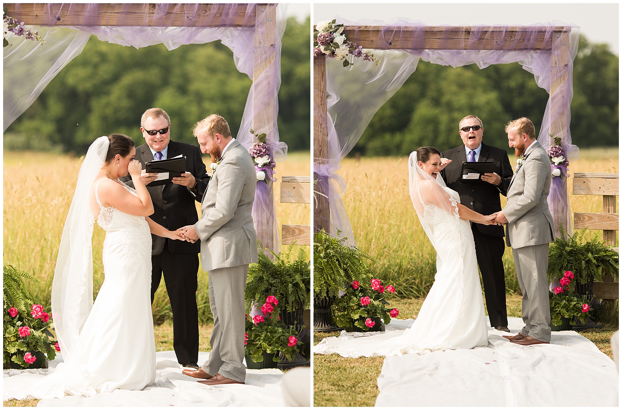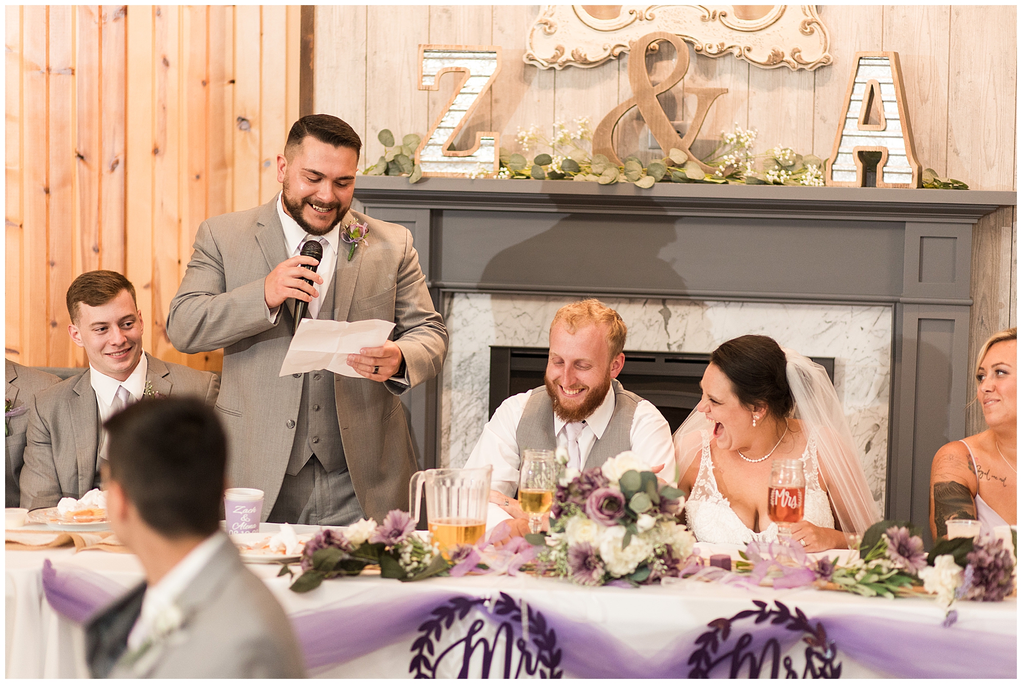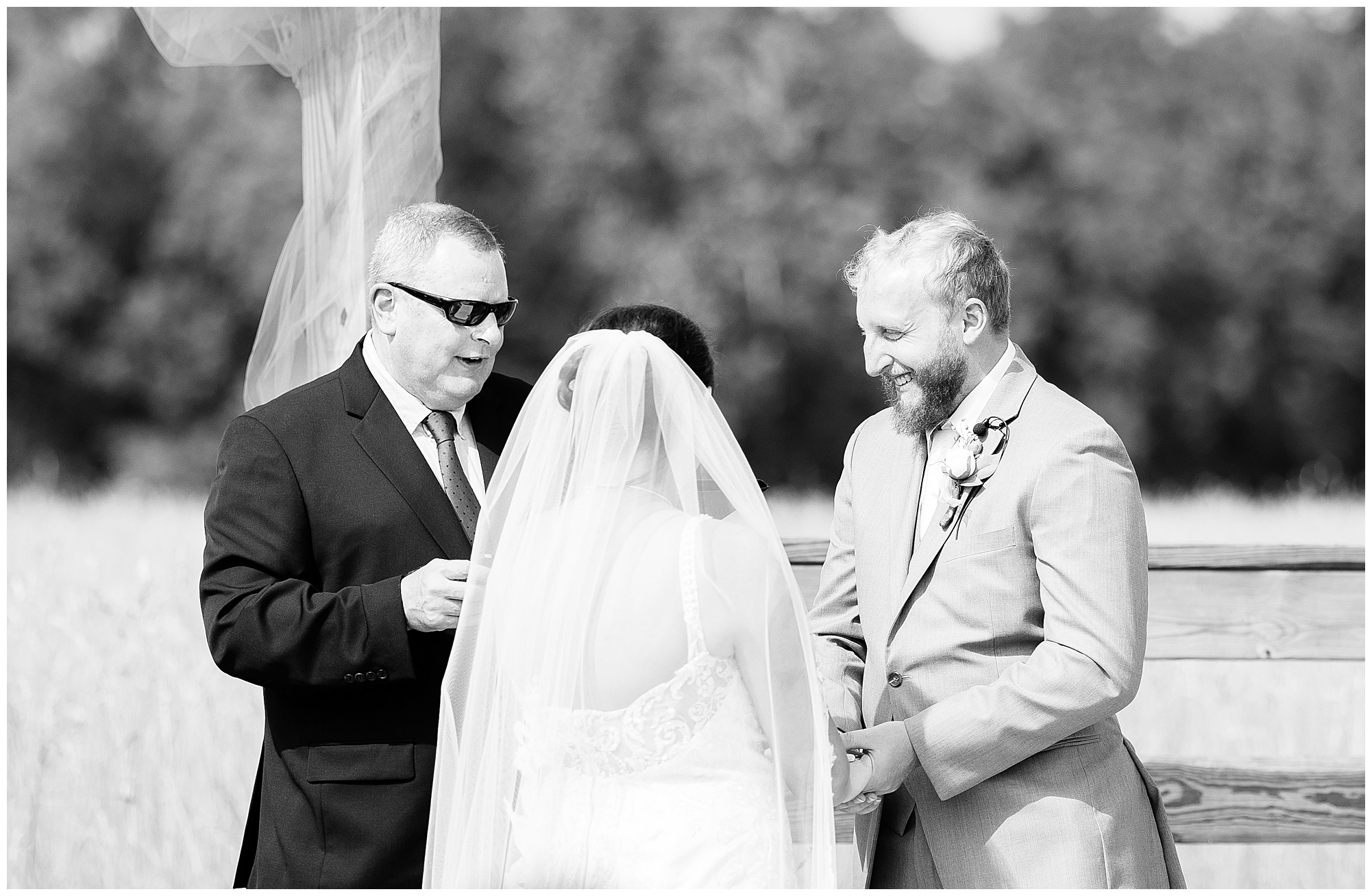 The ceremony time rolled around and it did not disappoint. Zach’s reaction to seeing Alena walking down the aisle with both her dad and step dad was so sweet. The moment even got to Alena as she and her groom finally got to see each other on their big day. Zach’s uncle officiated over the nuptials and threw in many hilarious and emotional stories about the couple which had them laughing and crying during their time at the arbor. These two exchanged rings, spoke their meaningful vows, and sealed it with a kiss. Congrats to the new Mr. and Mrs. Prochaska!