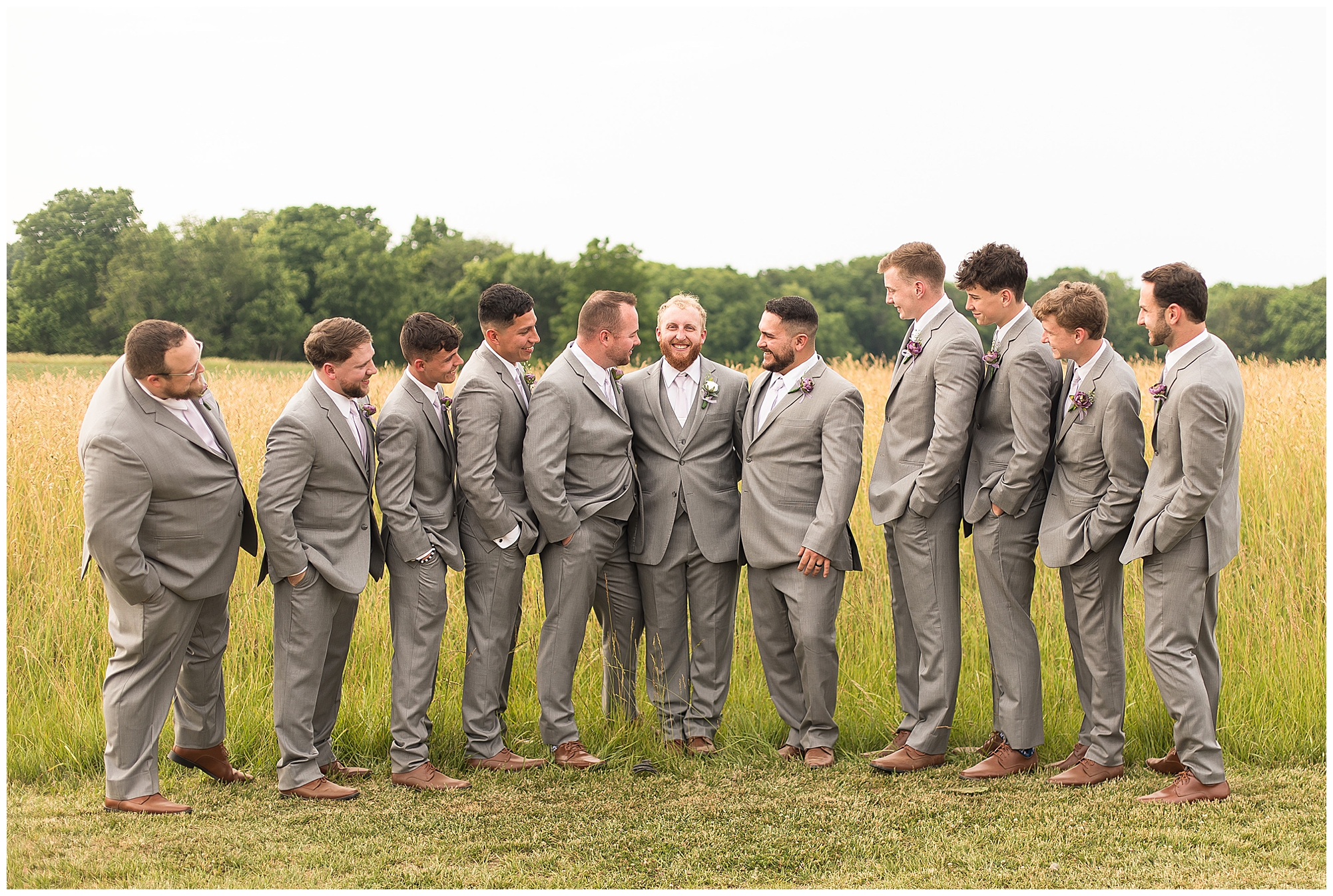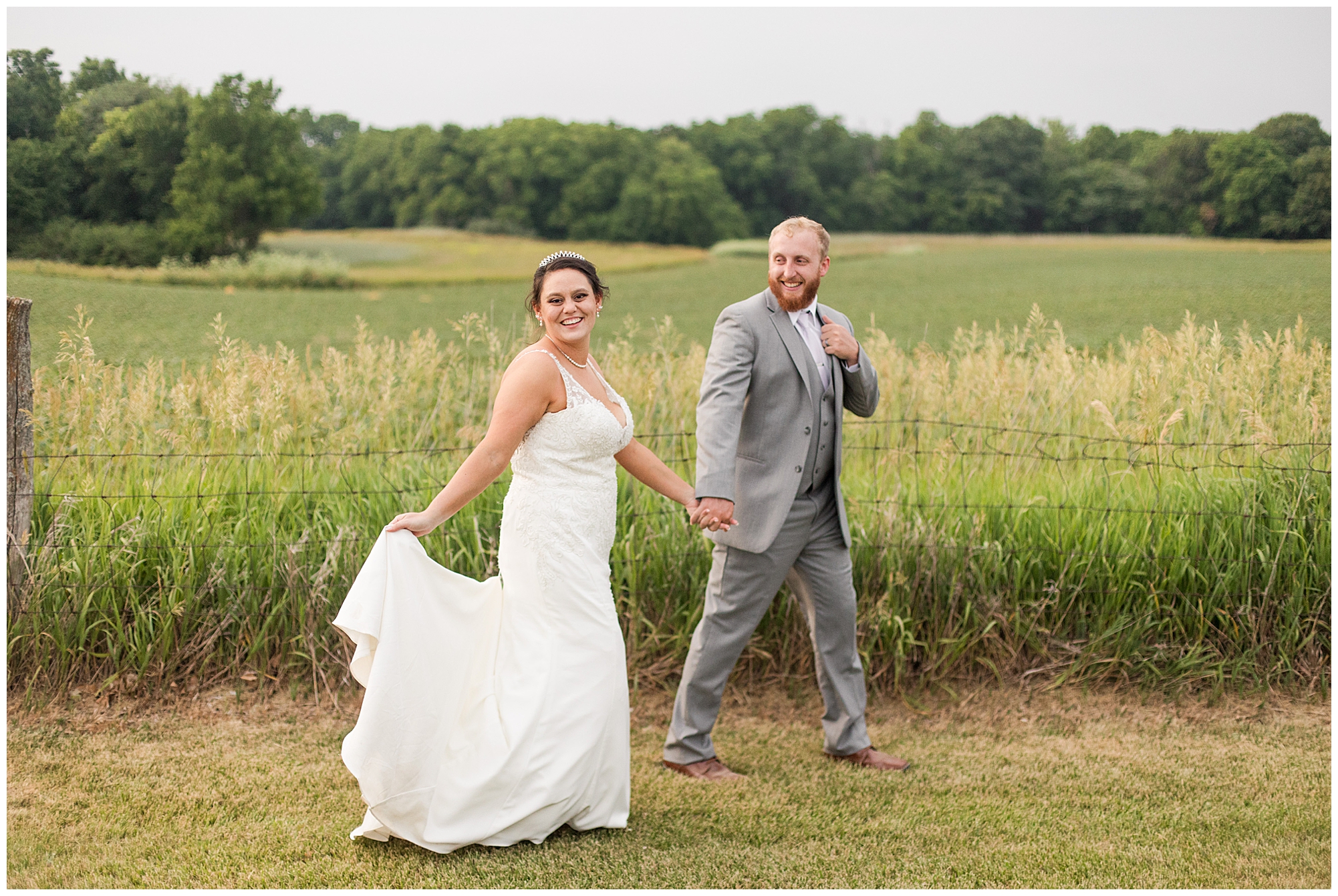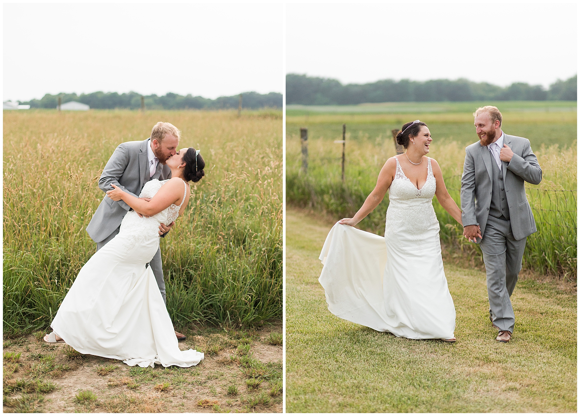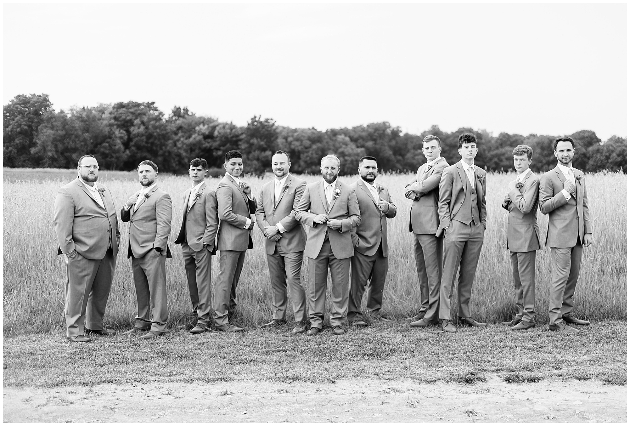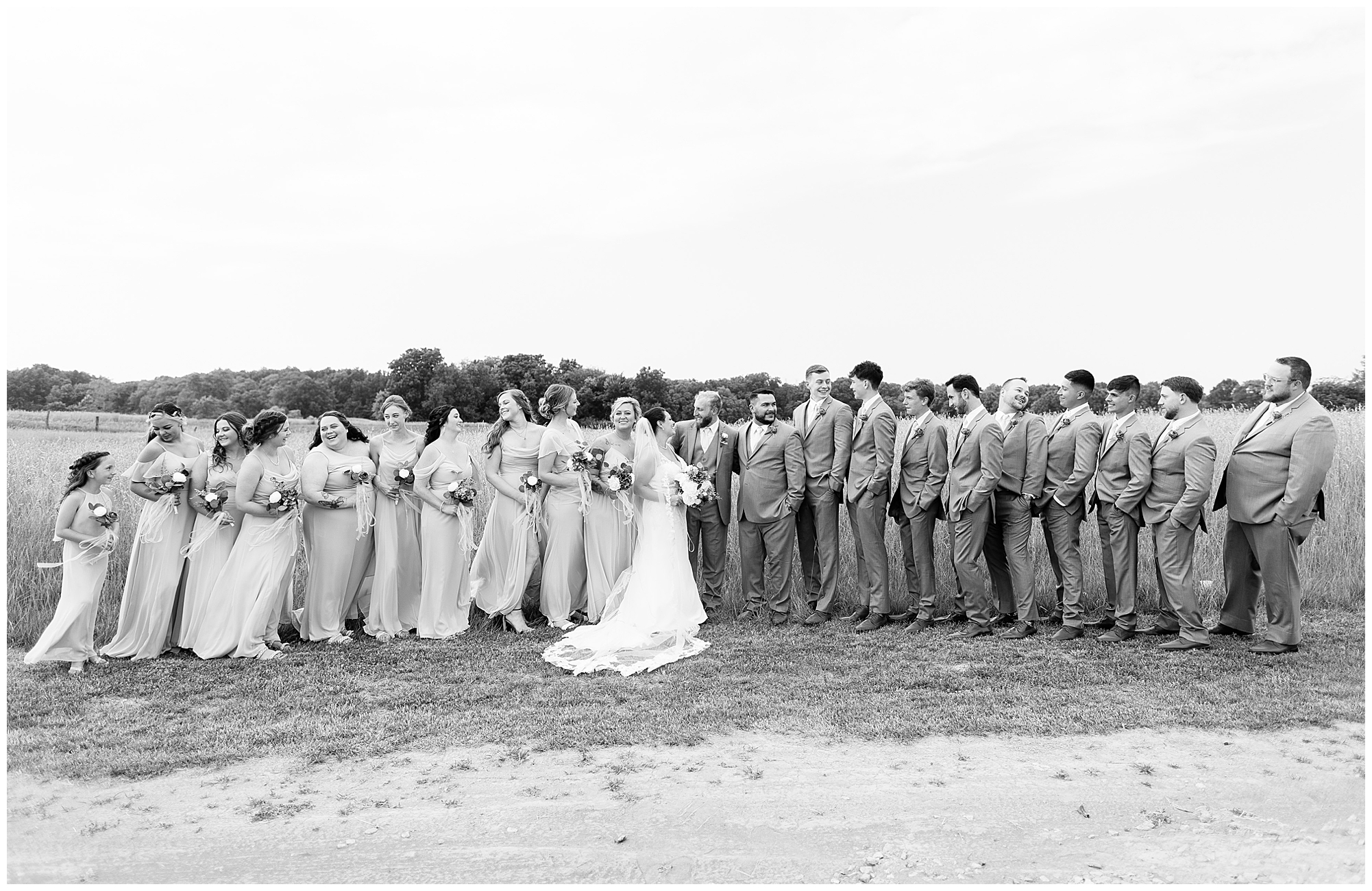 Once family photos were completed, the huge bridal party all got together for some fun times with their bride and groom! This group was fired up and brought the excitement! Then it was my favorite part of the day…Photos of the newlyweds! Everything these two had been planning and waiting for was now here and Alena and Zach were married! They were beautiful together surrounded by the tall grasses and open fields of the property. I loved spending this time with Alena and Zach before the party started at the reception.