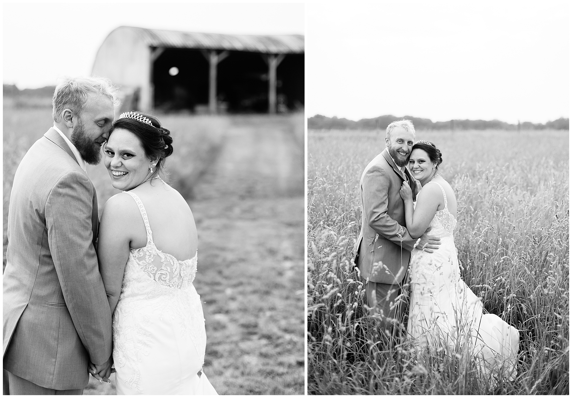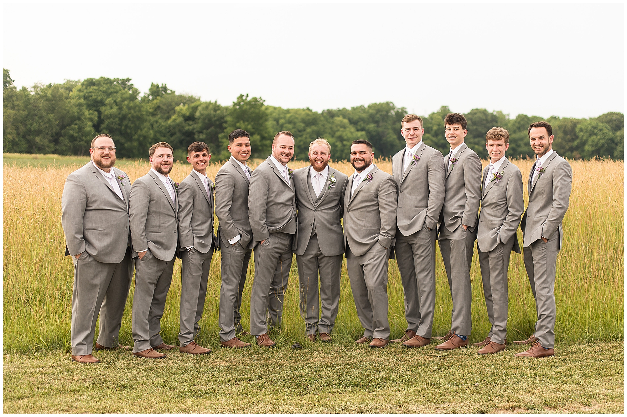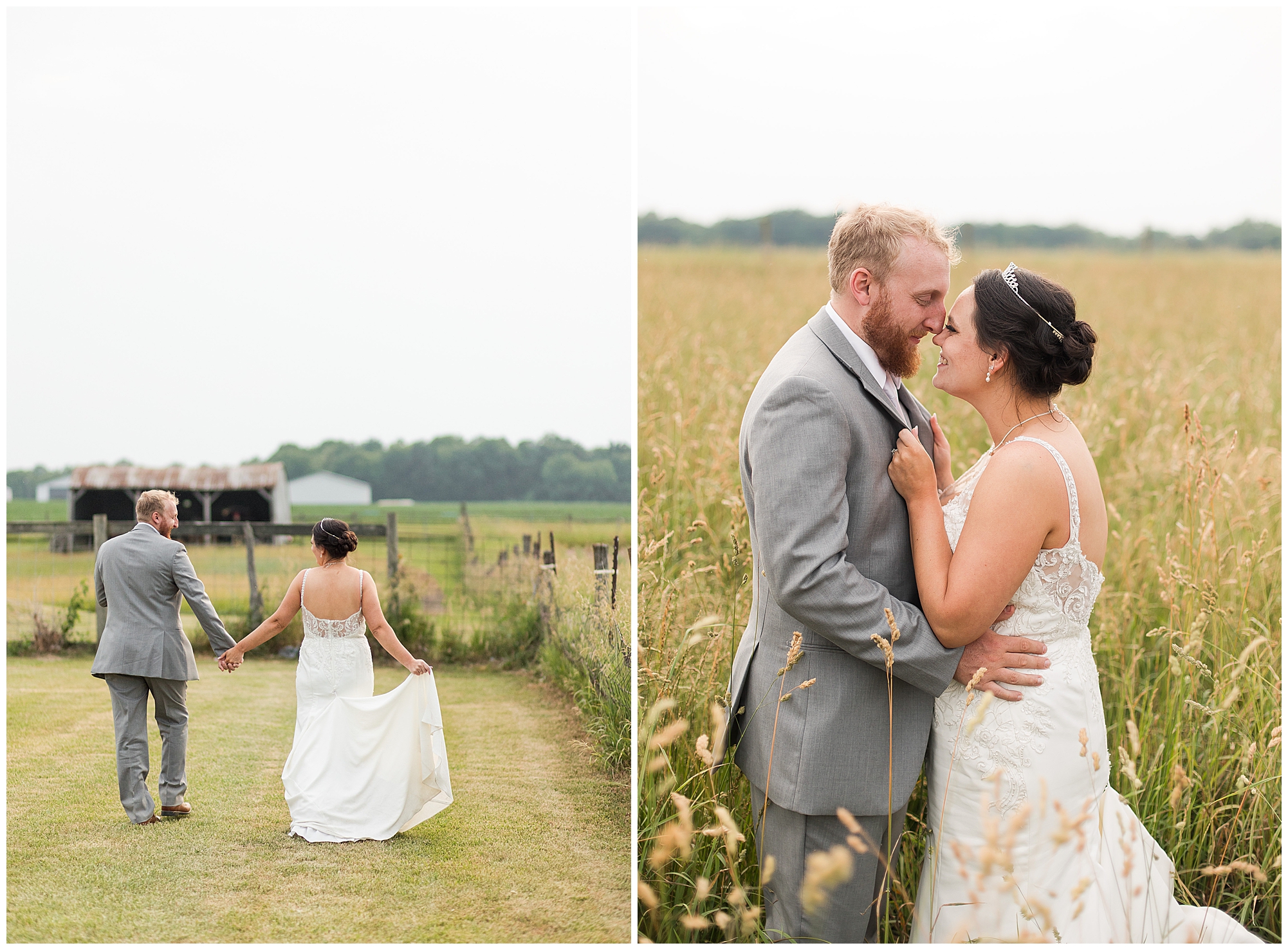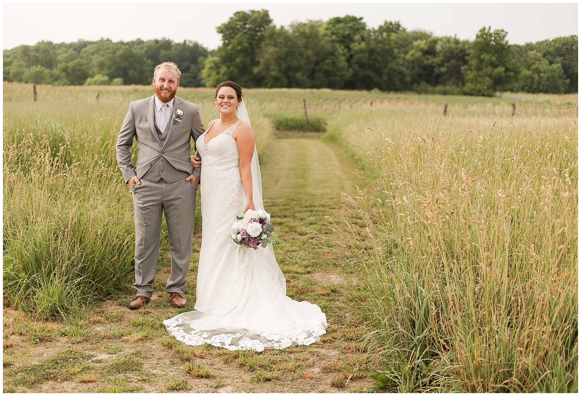 Once family photos were completed, the huge bridal party all got together for some fun times with their bride and groom! This group was fired up and brought the excitement! Then it was my favorite part of the day…Photos of the newlyweds! Everything these two had been planning and waiting for was now here and Alena and Zach were married! They were beautiful together surrounded by the tall grasses and open fields of the property. I loved spending this time with Alena and Zach before the party started at the reception.