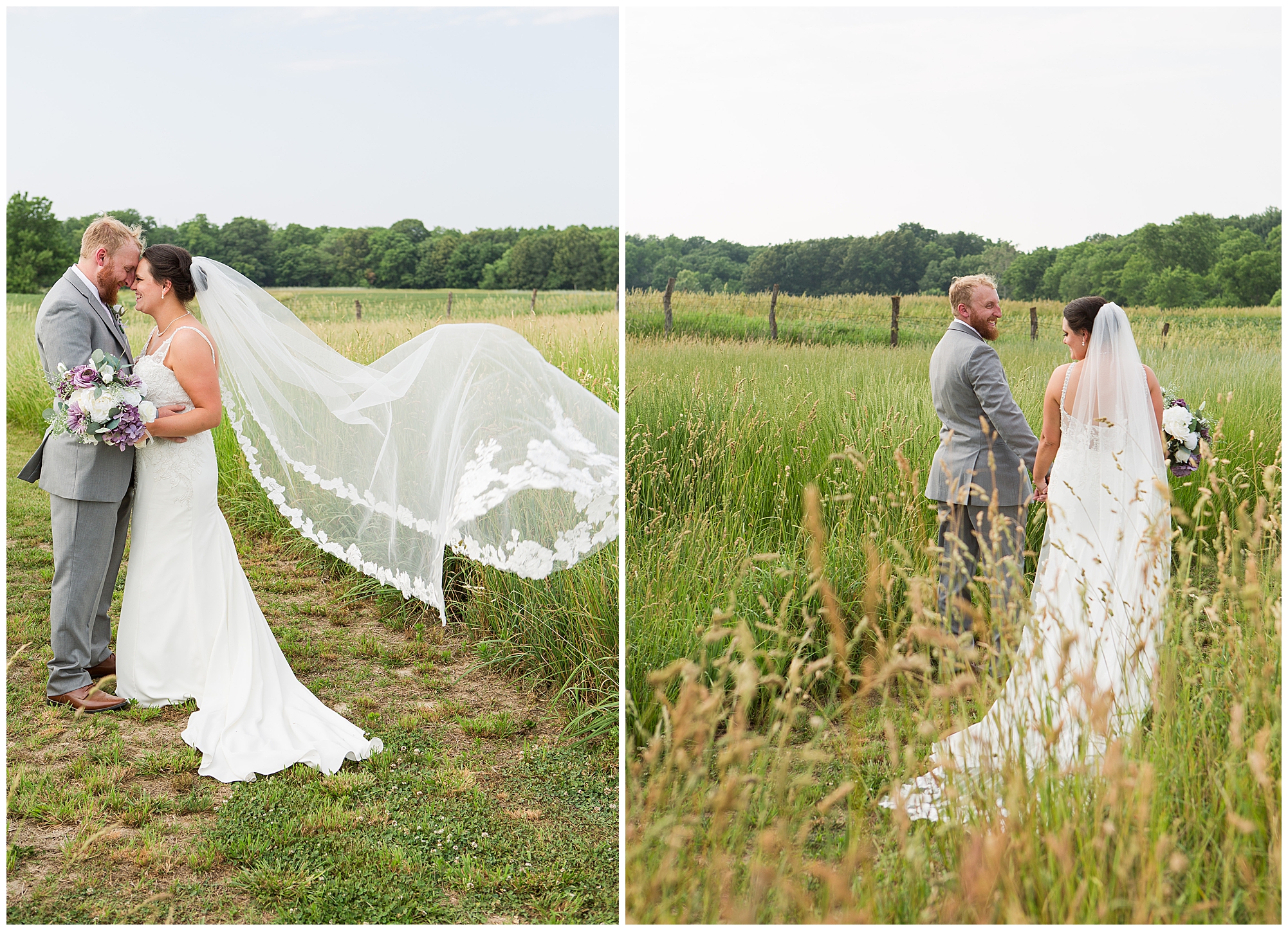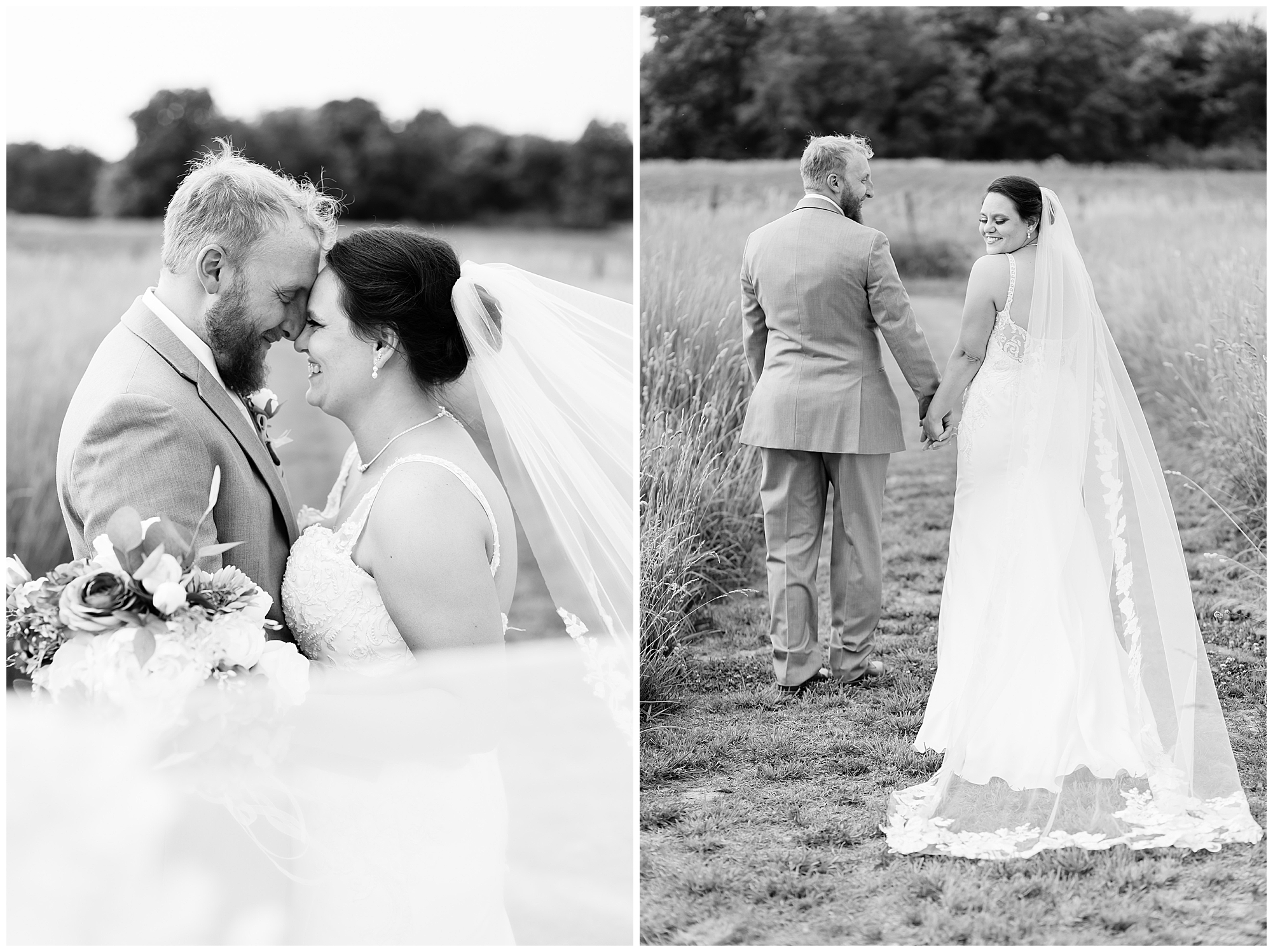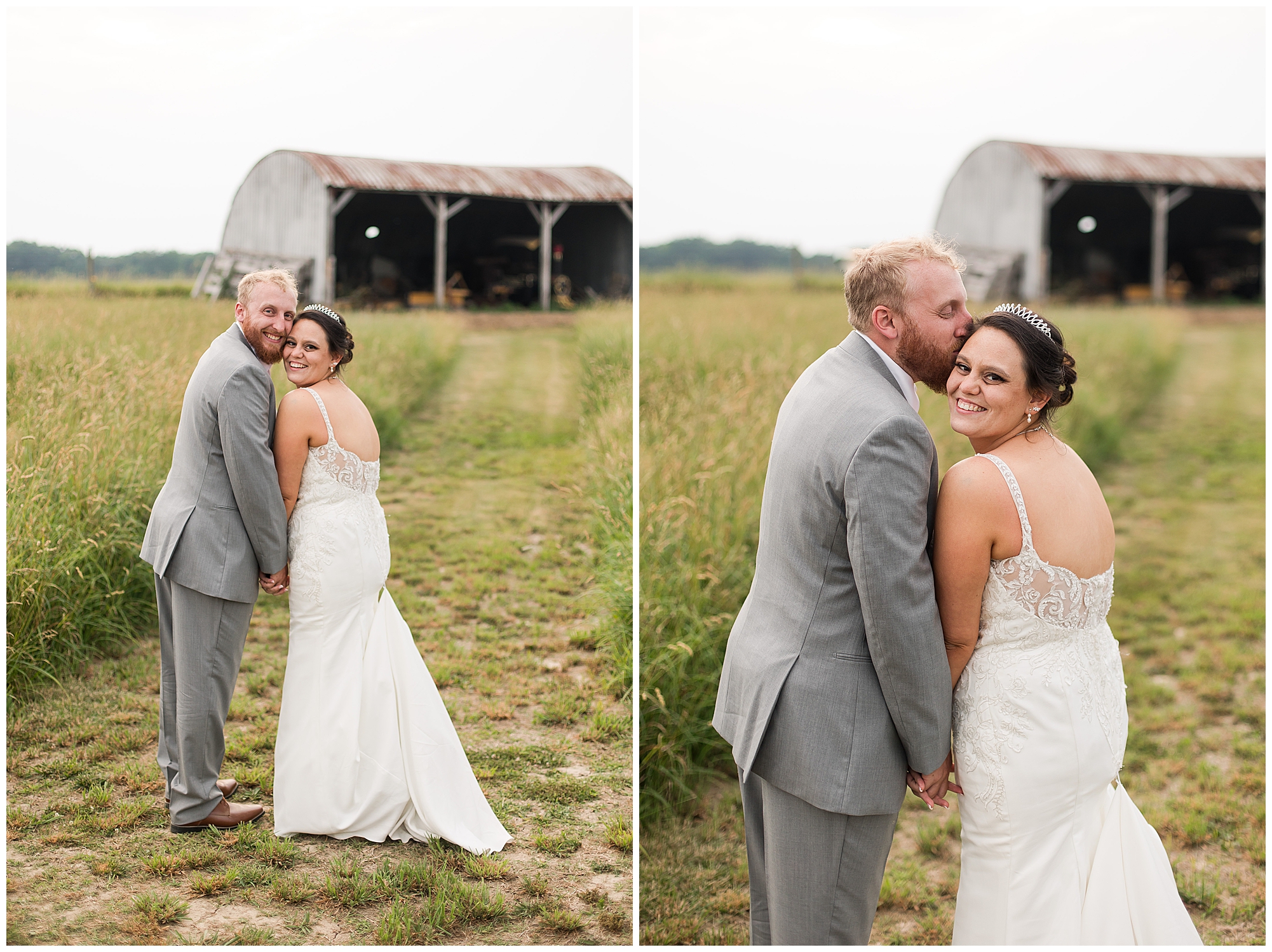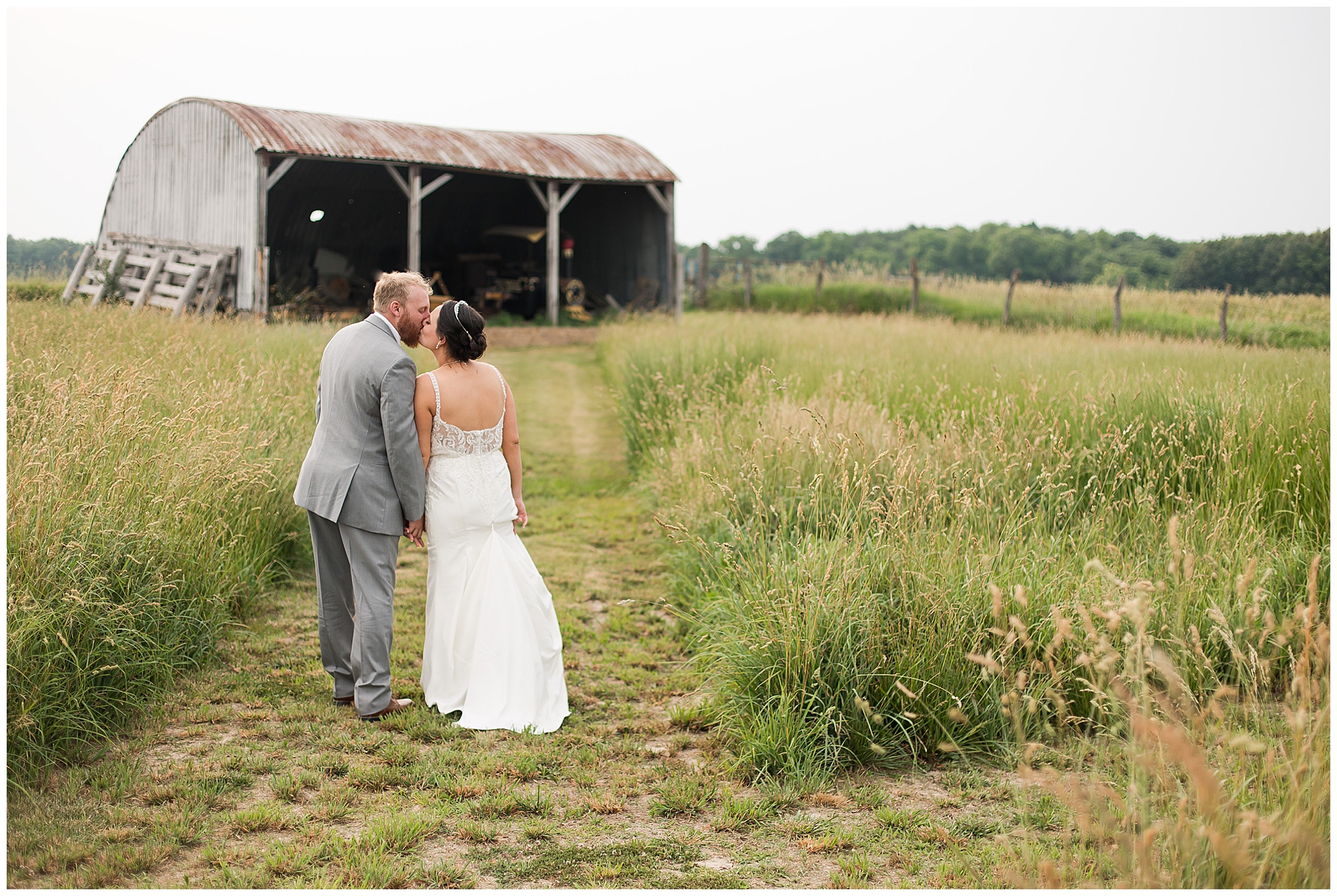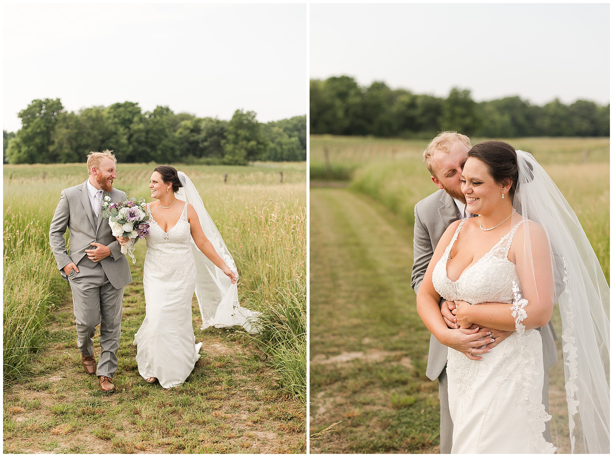Once family photos were completed, the huge bridal party all got together for some fun times with their bride and groom! This group was fired up and brought the excitement! Then it was my favorite part of the day…Photos of the newlyweds! Everything these two had been planning and waiting for was now here and Alena and Zach were married! They were beautiful together surrounded by the tall grasses and open fields of the property. I loved spending this time with Alena and Zach before the party started at the reception.
