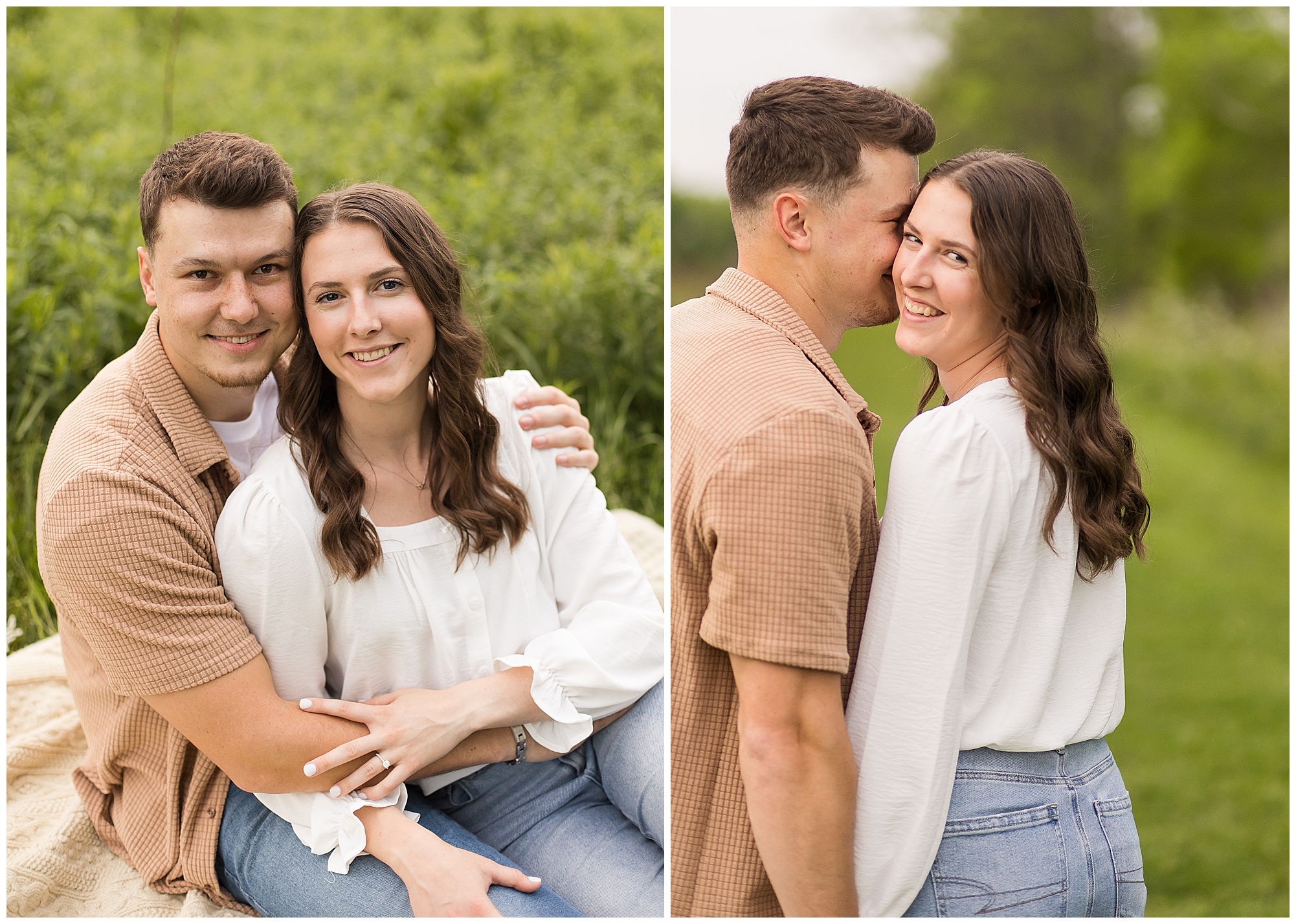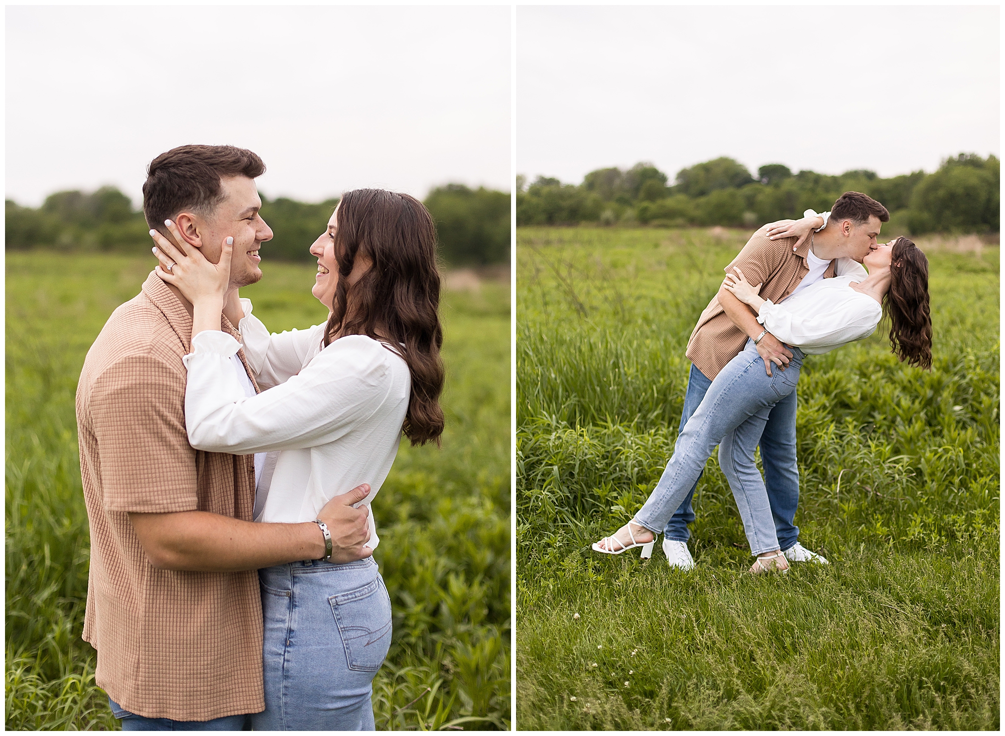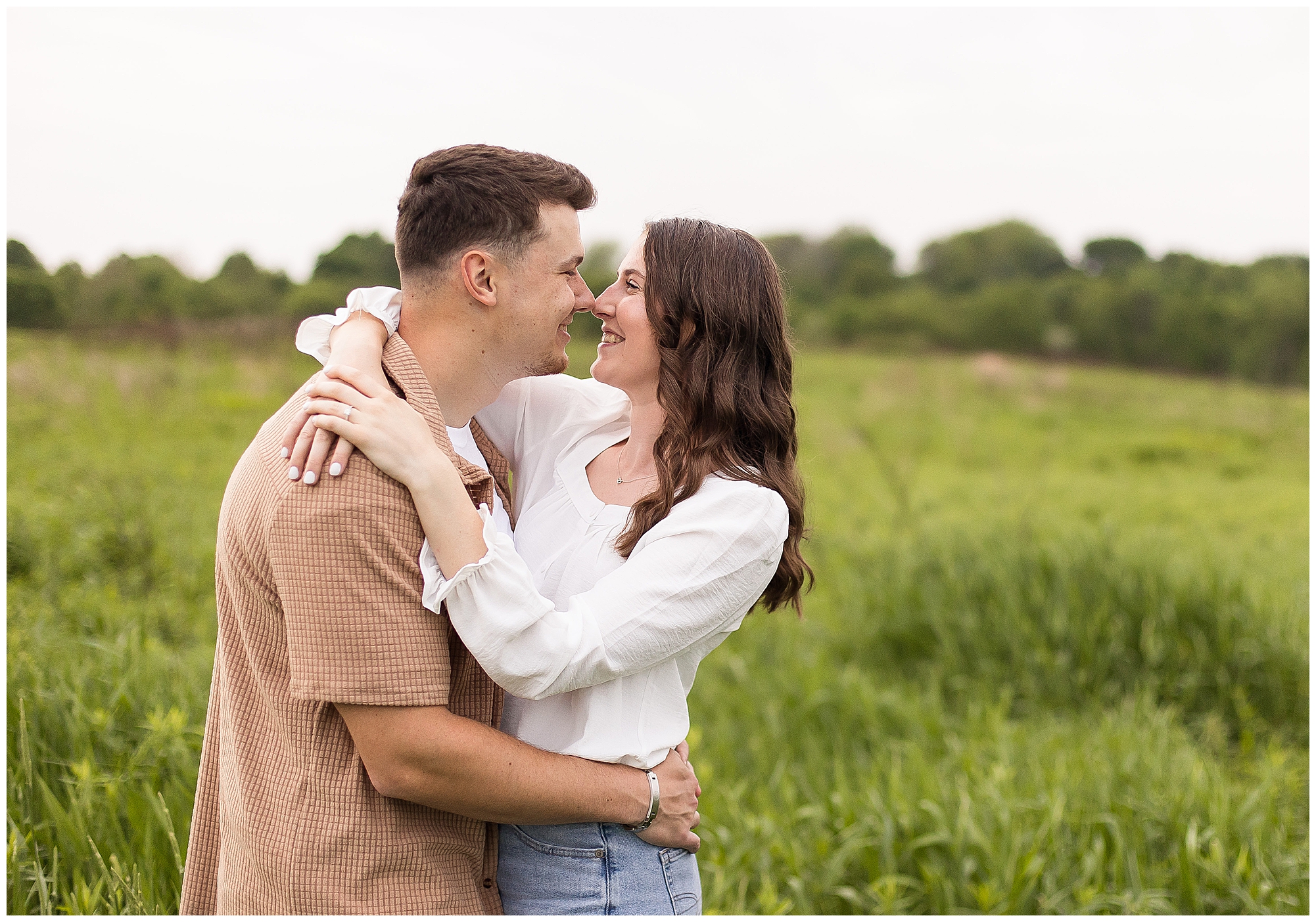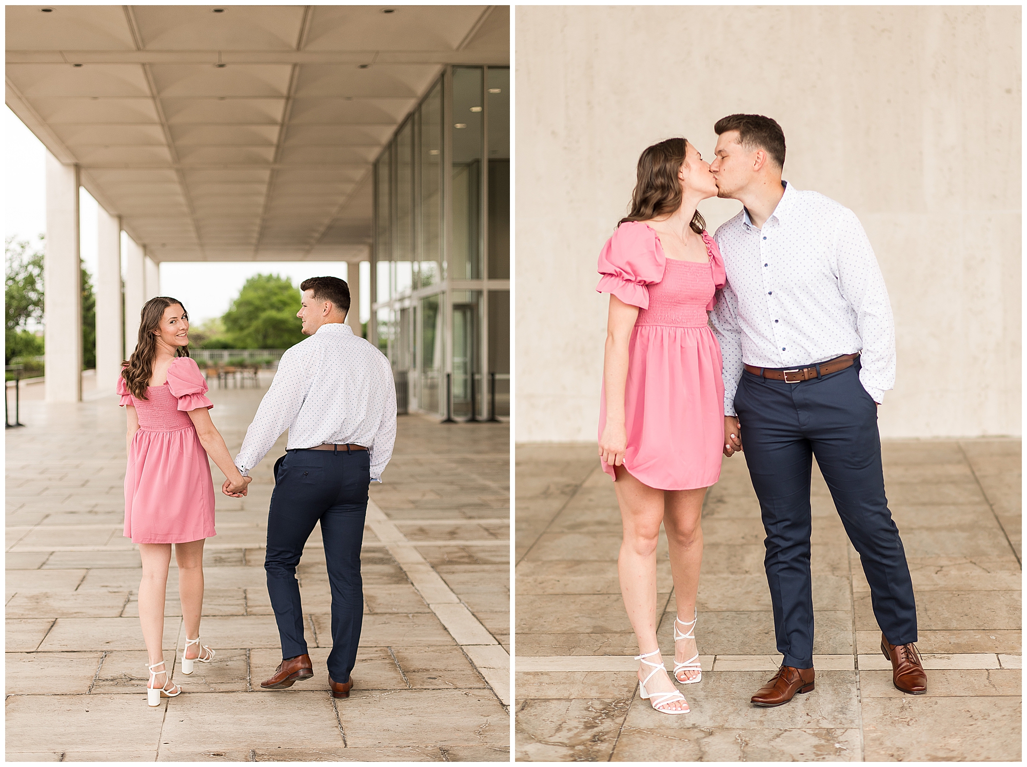 Bree and Daniel currently reside in Bloomington, Illinois. However, Bree is from the Springfield area and they decided to come back to her hometown for their engagement session. I met up with this adorable couple at the Horace Mann Building, where they have newly renovated landscaping. I could tell they were excited for photos but they were a little nervous. But, within a few minutes, Bree and Daniel settled in and nailed their e-session! These two met while in college at UIS. Bree played softball while Daniel was on the soccer team. These two hit it off and the rest is history. This location with its beautiful pond and rustic rocks was the perfect settling for this sweet couple.