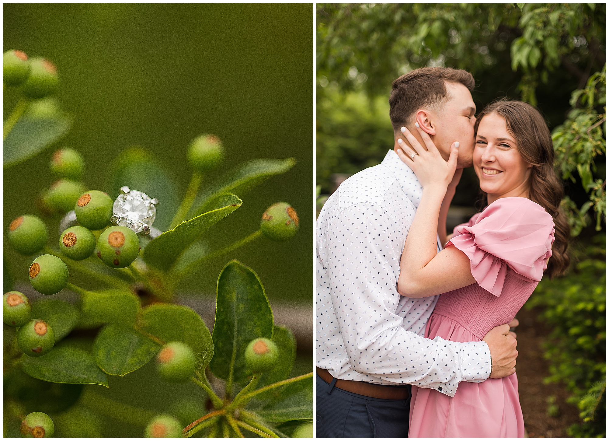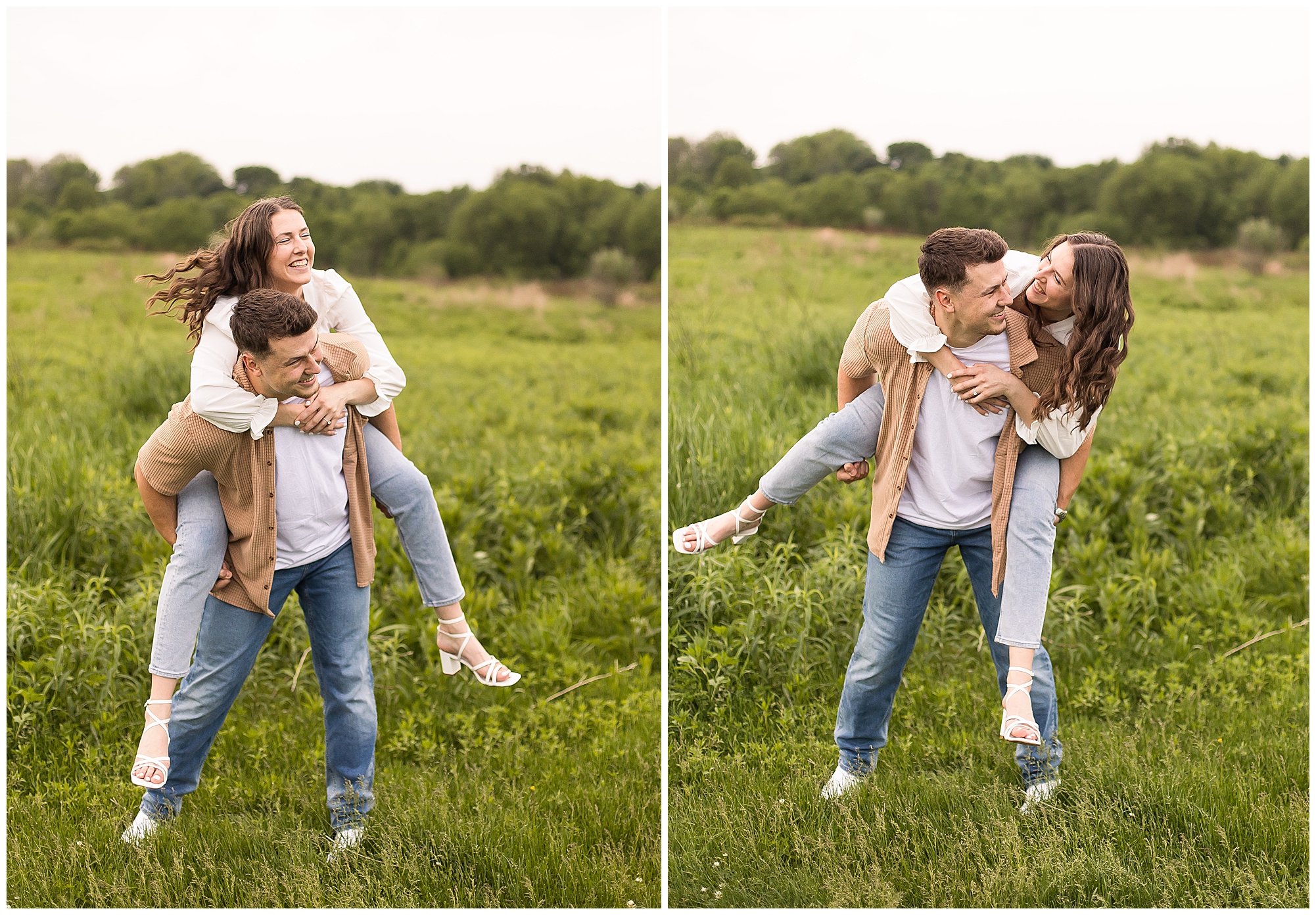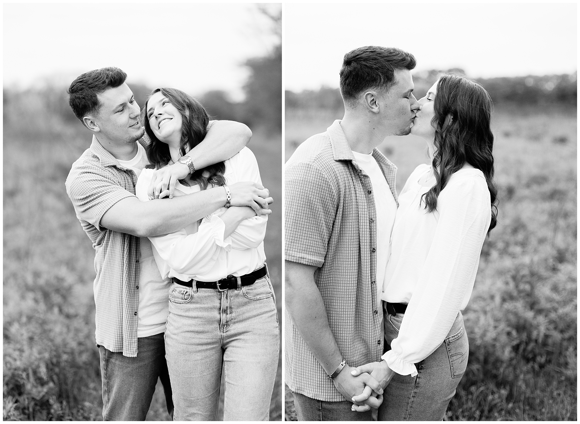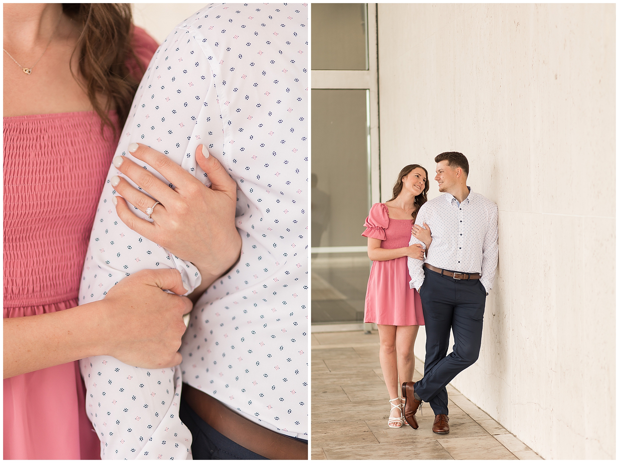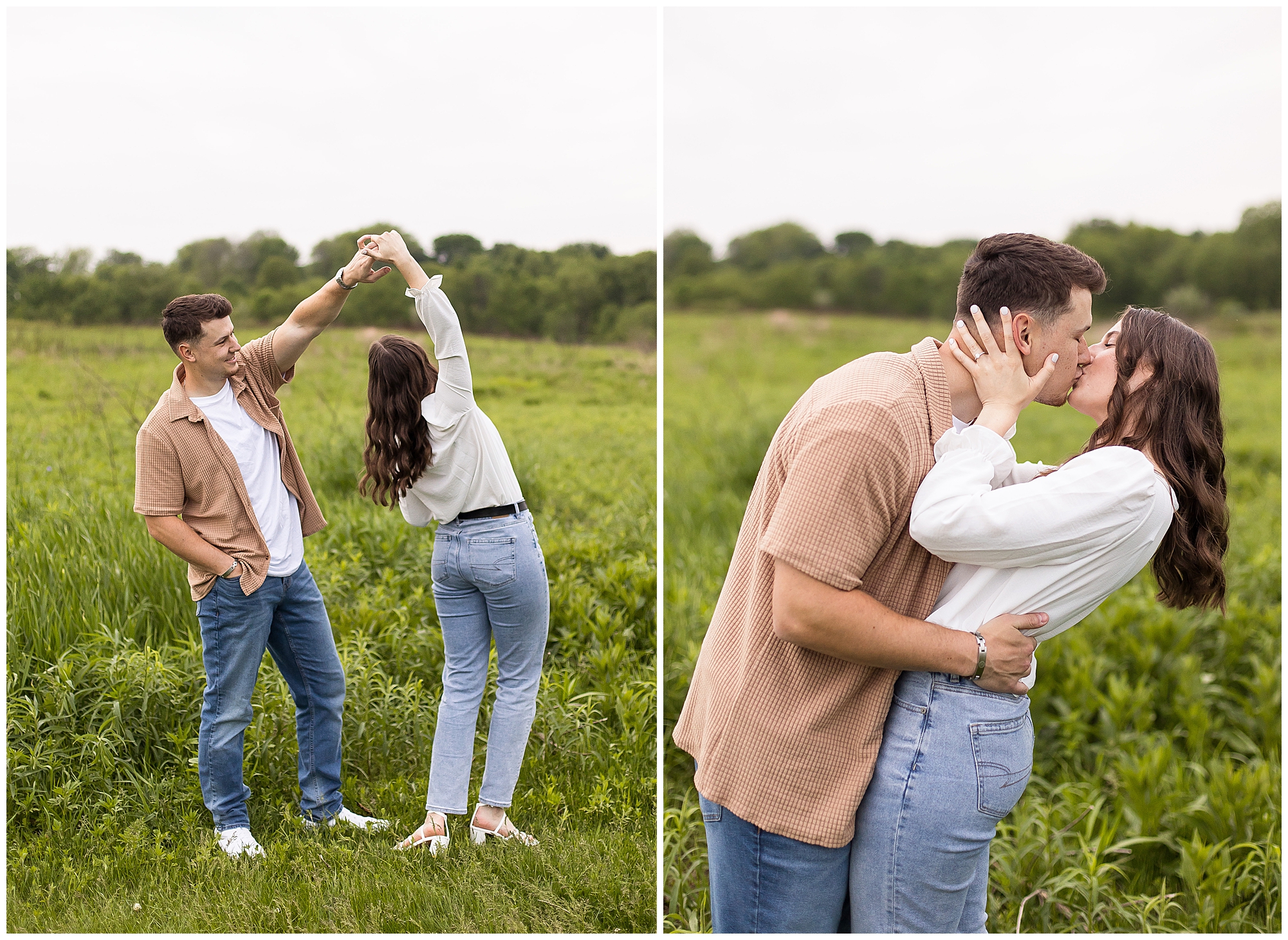 Bree and Daniel currently reside in Bloomington, Illinois. However, Bree is from the Springfield area and they decided to come back to her hometown for their engagement session. I met up with this adorable couple at the Horace Mann Building, where they have newly renovated landscaping. I could tell they were excited for photos but they were a little nervous. But, within a few minutes, Bree and Daniel settled in and nailed their e-session! These two met while in college at UIS. Bree played softball while Daniel was on the soccer team. These two hit it off and the rest is history. This location with its beautiful pond and rustic rocks was the perfect settling for this sweet couple.