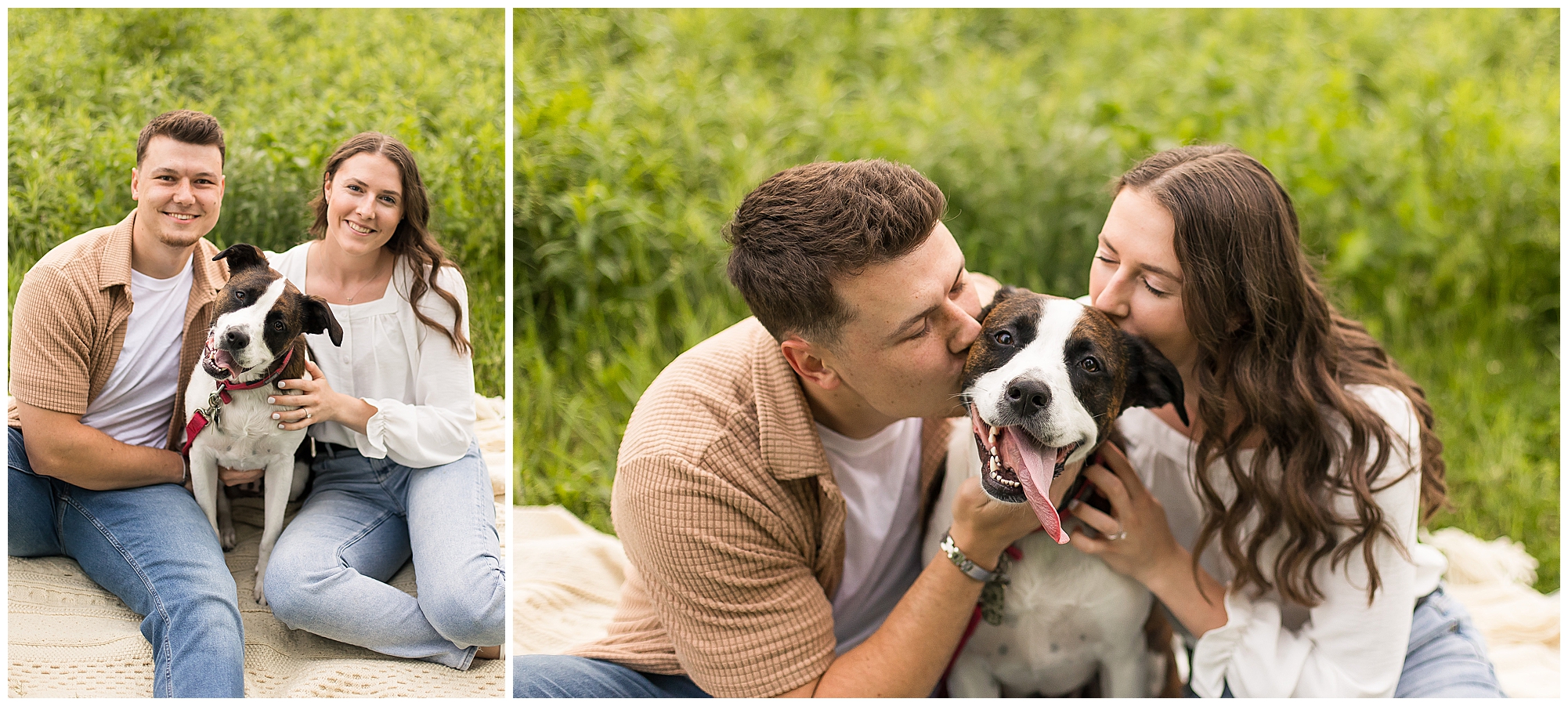Once we finished up downtown, we headed out to Centennial Park for sunset. And we were joined by a special guest. Bree and Daniel’s pup, Luna! This awesome little girl was full of energy and puppy smiles! Luna was loving all her kisses from Bree and Daniel for the short visit she had with us. To end my time with these cuties, we finished with lots of fun play! They dipped, twirled, and piggybacked their way into the evening all while laughing together the whole time! I cannot wait to photograph Bree and Daniel’s wedding day next summer!