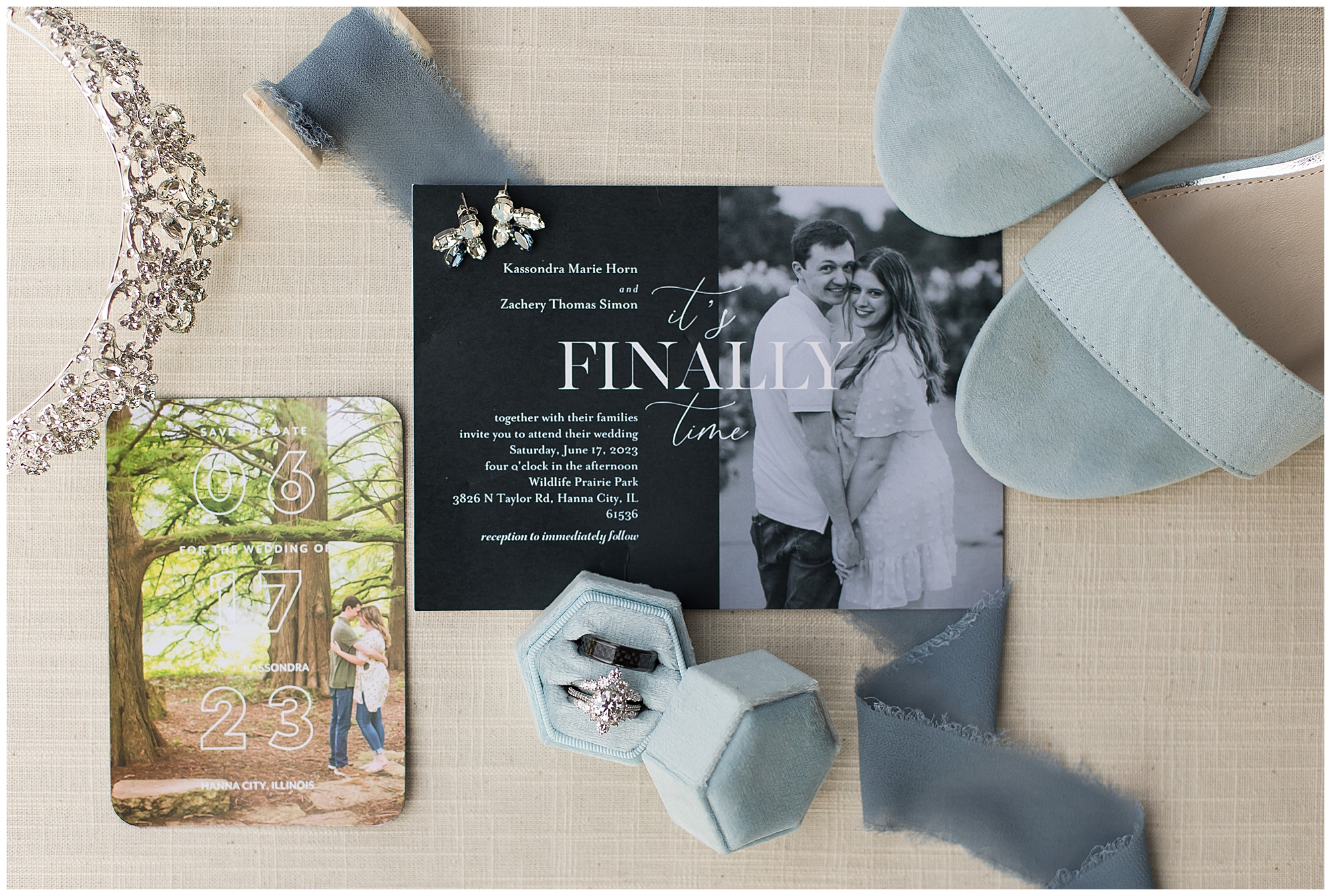 Kassondra and Zac’s wedding day at the Wildlife Prairie Park was nothing short of a fairytale! A Cinderella inspired fairytale that is! See when Kassondra was little, she went to Disney and was kissed on the cheek by her favorite princess, Cinderella. She told her mom she was never washing her cheek again! So needless to say, the lovely vision for Kassondra and Zac’s big day was nothing short of magical! From the light blue touches, the sparkling tiara set on top of the bride’s head, and how the prince walked away from the day with his gorgeous princess I absolutely loved capturing every special moment!