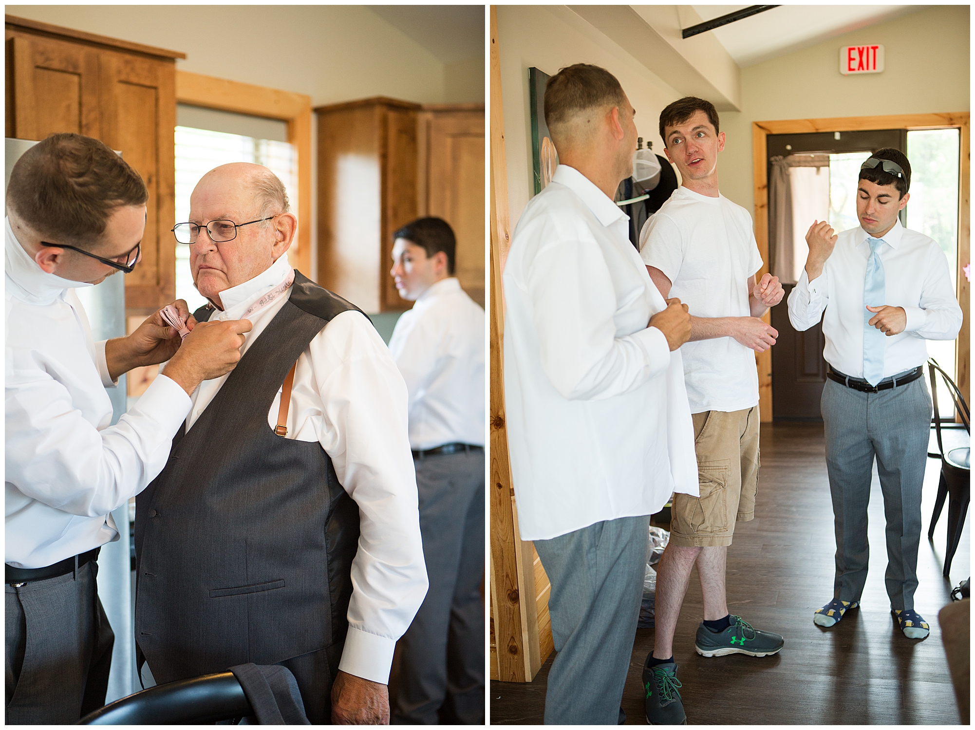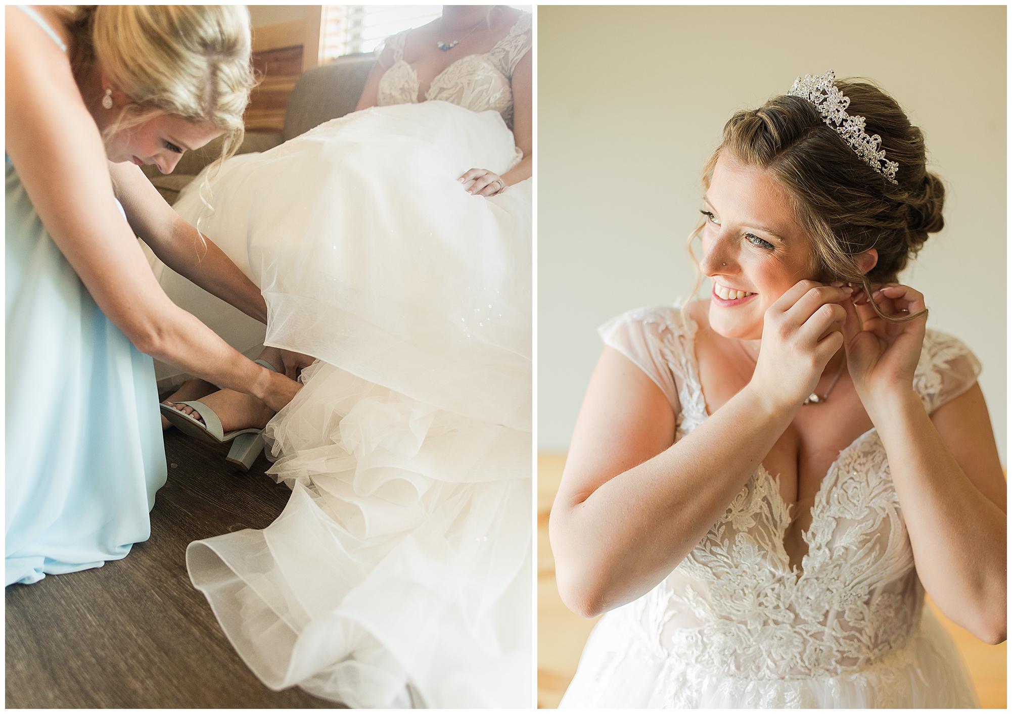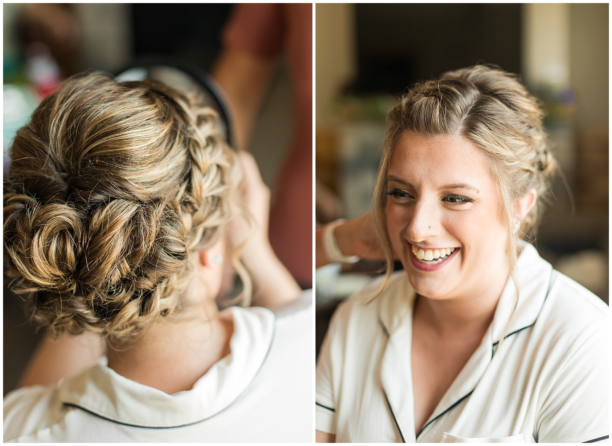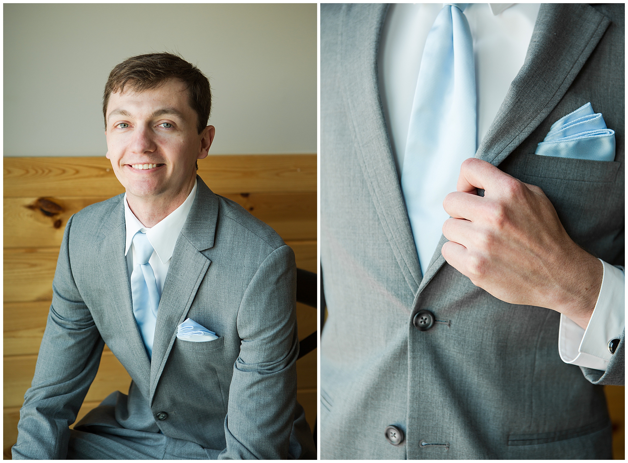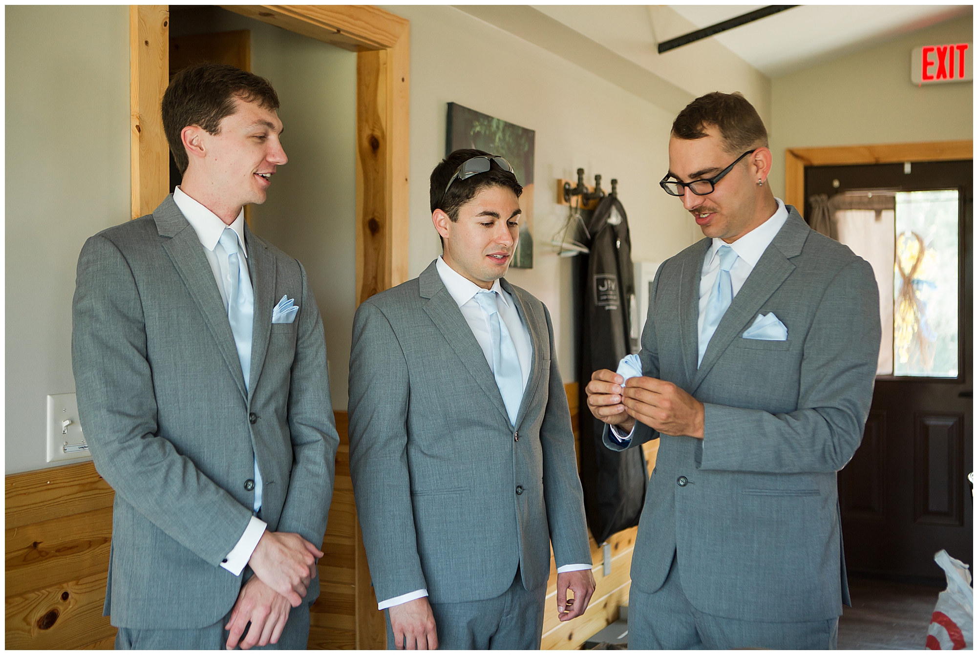 Kassondra and Zac started out the morning unconventionally and decided to see one another bright and early before they were even out of their jammies. They read their vows to one another prior to the whirlwind of the day getting going, which I think helped alleviate some of the nerves. They each took a turn sharing their heartfelt vows, talked about the qualities they love about the other, as well as reminiscing on when Kassondra told a friend in high school she was going to marry Zac after seeing him walking into a classroom for the first time. Love this! After preparations for Kassondra’s crew of hair and makeup was complete, everyone helped this bride into her delightful gown! Kassondra was truly stunning and sparked throughout the day when the sunlight caught her dress just right. Zac and his guys couldn’t be outdone too much and looked fantastic in their gray suits and blue ties. Such a classic look. Now it was time for a traditional first look with the bride and groom. And the smile that came up on Zac’s face after seeing Kassondra, I would say was a highlight of the day!