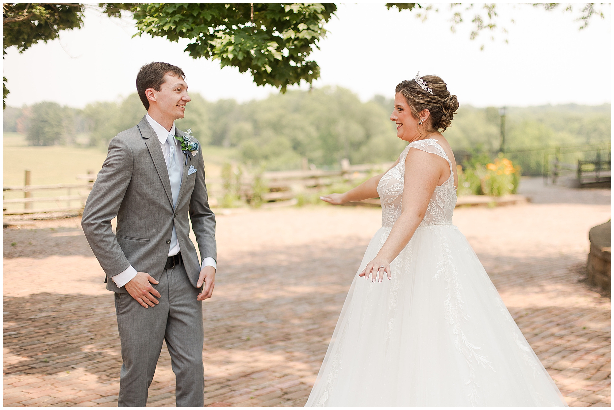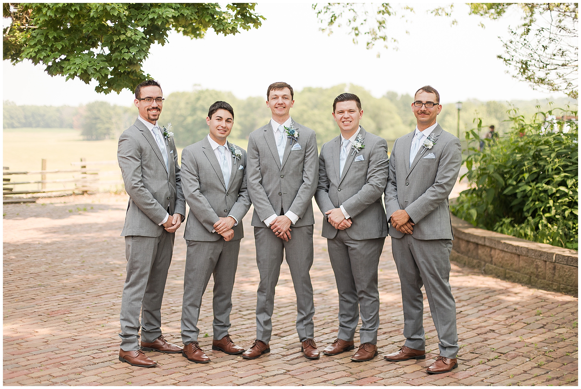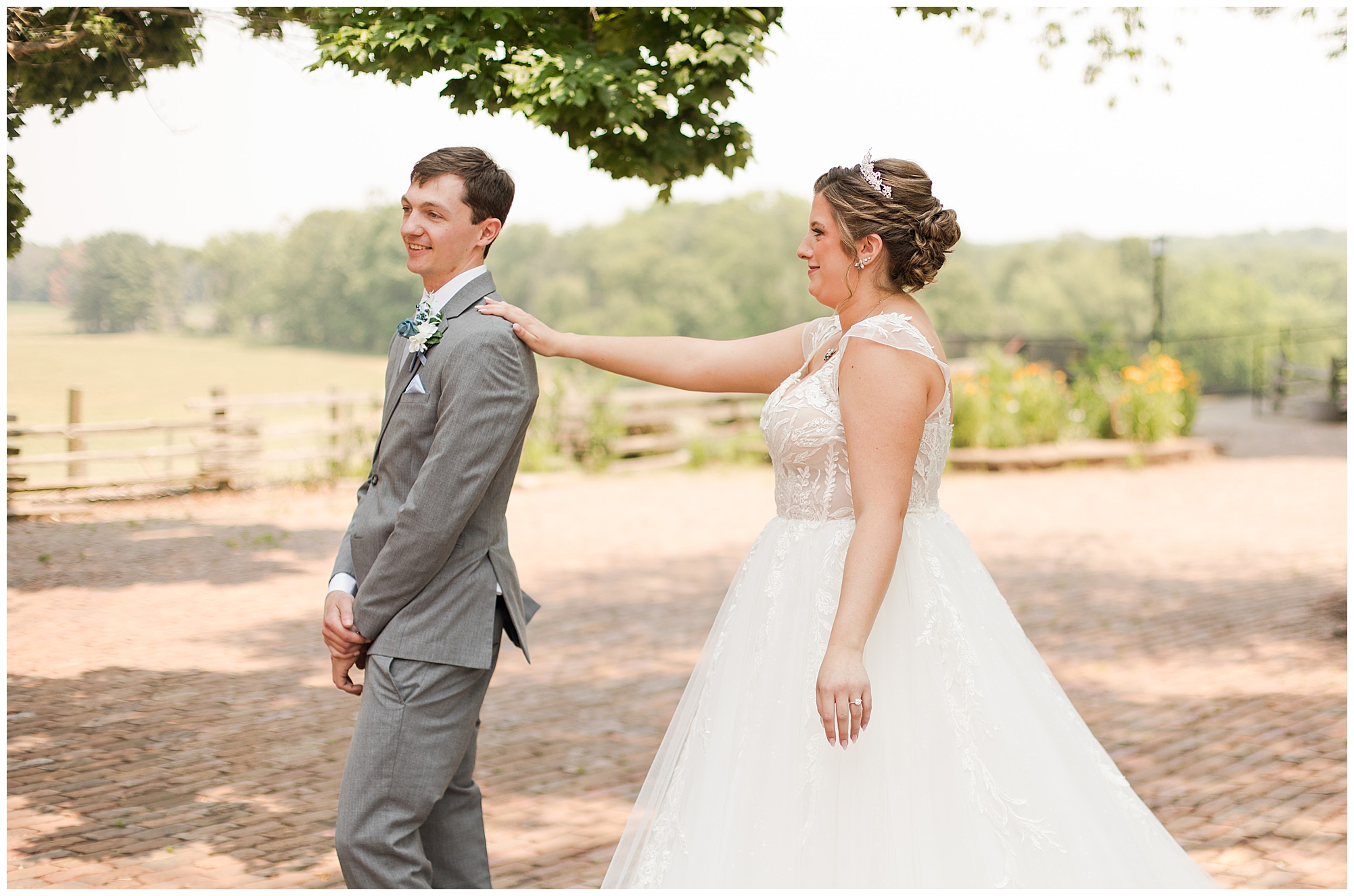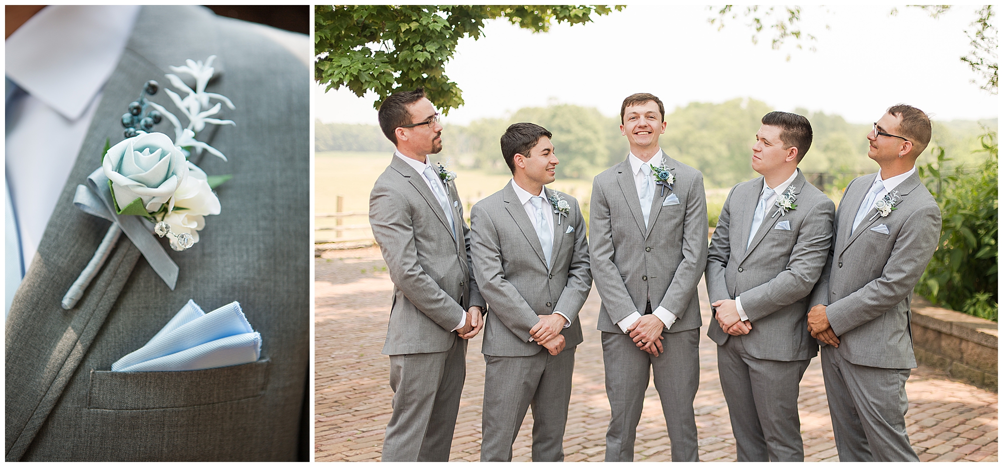 Kassondra and Zac started out the morning unconventionally and decided to see one another bright and early before they were even out of their jammies. They read their vows to one another prior to the whirlwind of the day getting going, which I think helped alleviate some of the nerves. They each took a turn sharing their heartfelt vows, talked about the qualities they love about the other, as well as reminiscing on when Kassondra told a friend in high school she was going to marry Zac after seeing him walking into a classroom for the first time. Love this! After preparations for Kassondra’s crew of hair and makeup was complete, everyone helped this bride into her delightful gown! Kassondra was truly stunning and sparked throughout the day when the sunlight caught her dress just right. Zac and his guys couldn’t be outdone too much and looked fantastic in their gray suits and blue ties. Such a classic look. Now it was time for a traditional first look with the bride and groom. And the smile that came up on Zac’s face after seeing Kassondra, I would say was a highlight of the day!