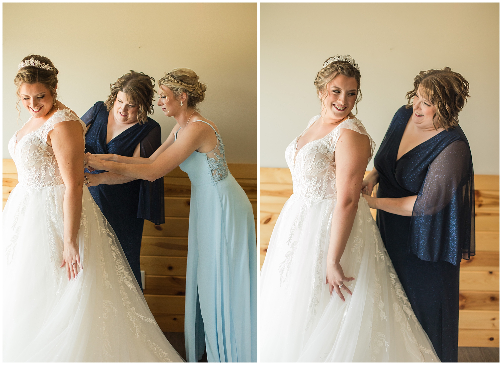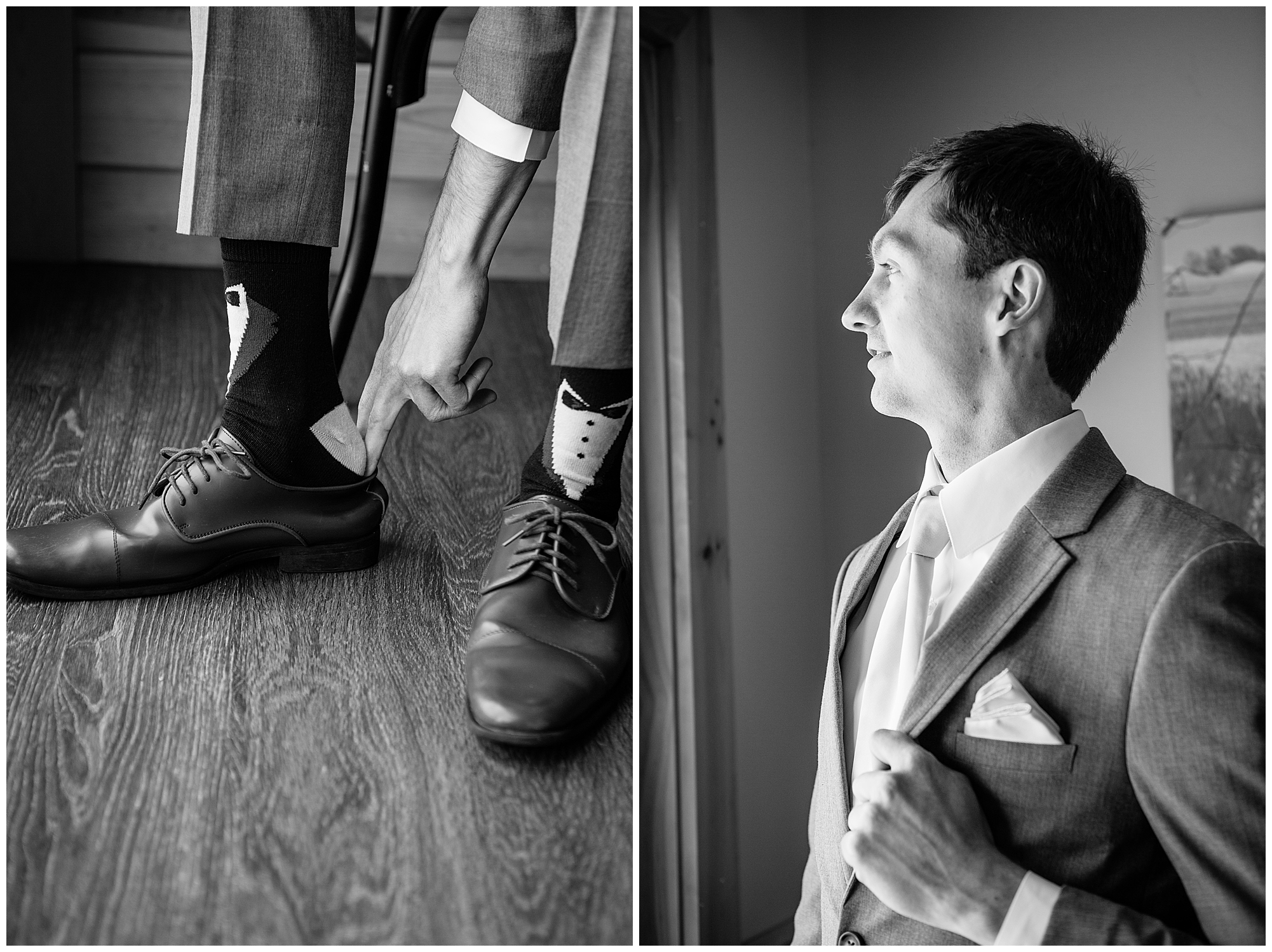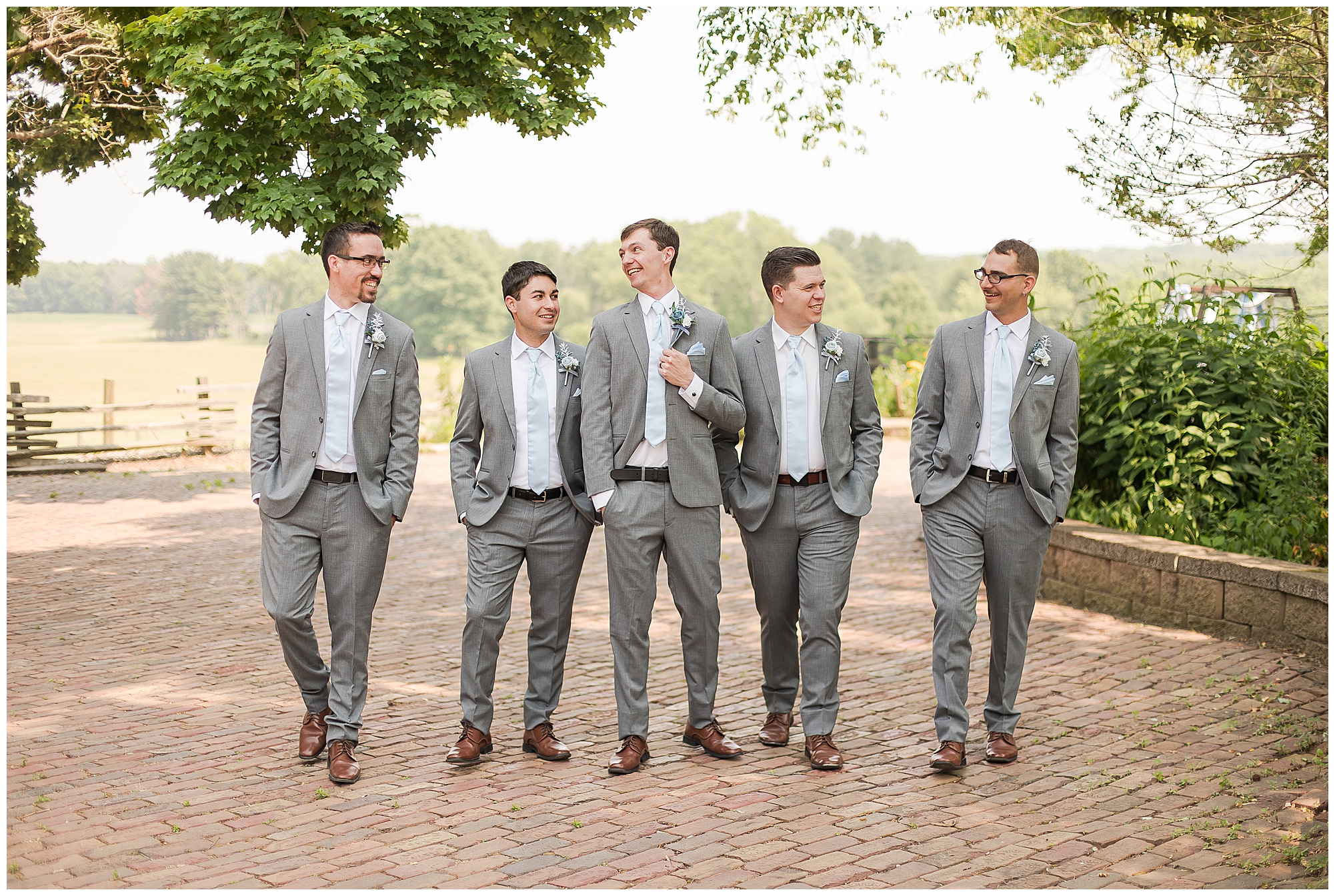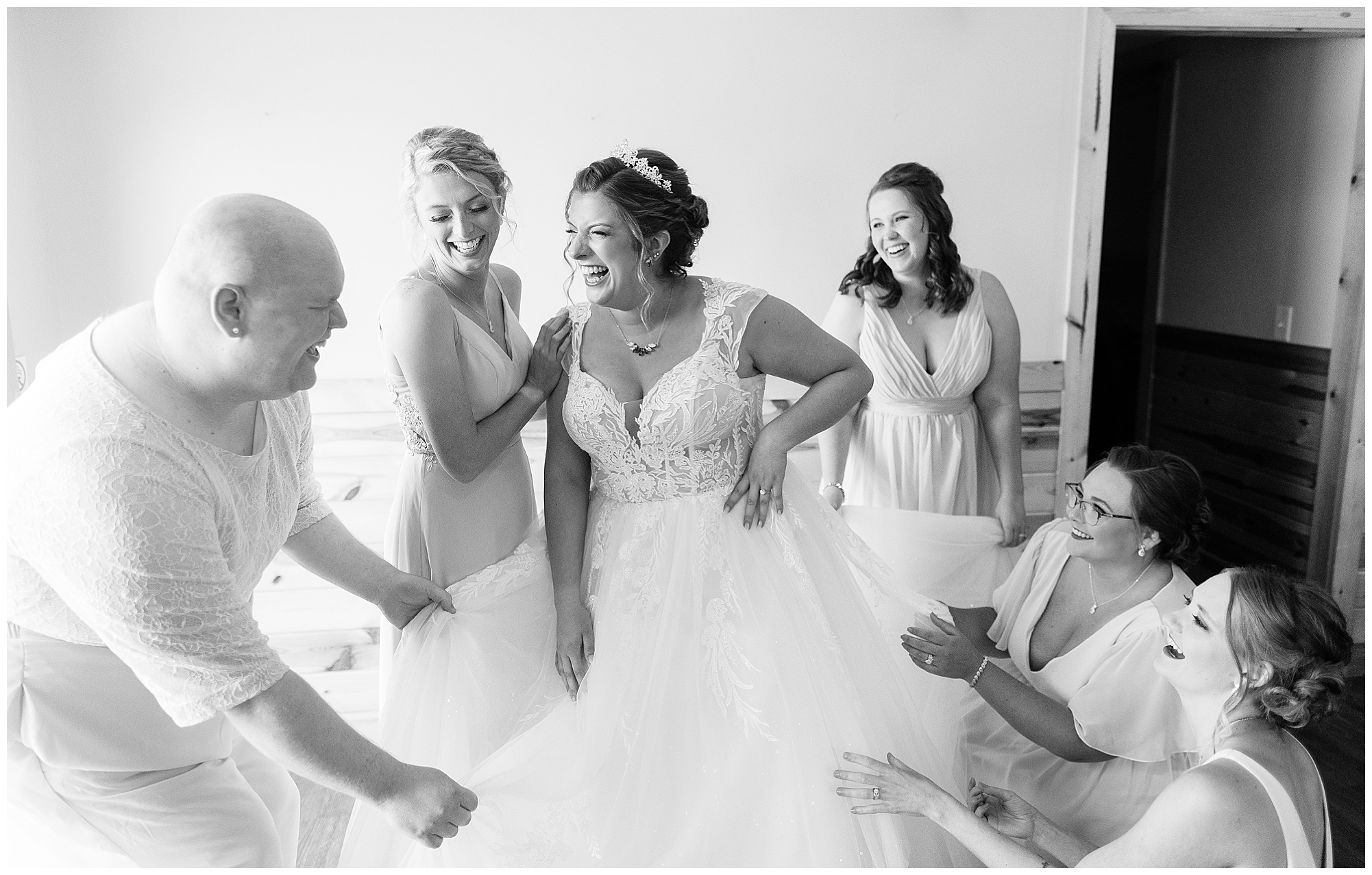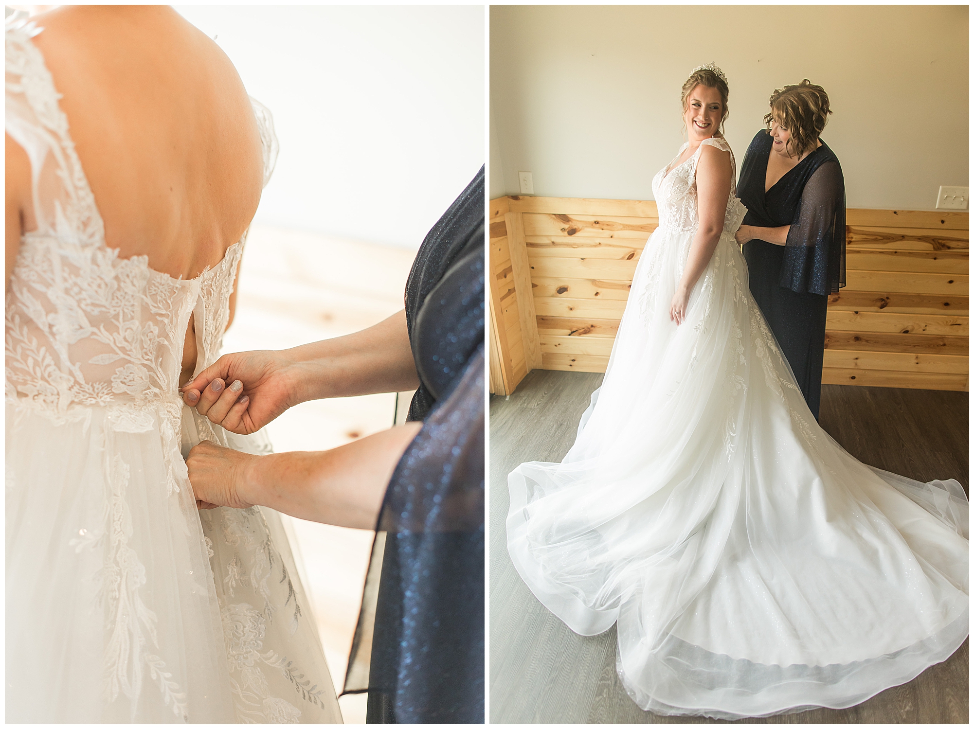 Kassondra and Zac started out the morning unconventionally and decided to see one another bright and early before they were even out of their jammies. They read their vows to one another prior to the whirlwind of the day getting going, which I think helped alleviate some of the nerves. They each took a turn sharing their heartfelt vows, talked about the qualities they love about the other, as well as reminiscing on when Kassondra told a friend in high school she was going to marry Zac after seeing him walking into a classroom for the first time. Love this! After preparations for Kassondra’s crew of hair and makeup was complete, everyone helped this bride into her delightful gown! Kassondra was truly stunning and sparked throughout the day when the sunlight caught her dress just right. Zac and his guys couldn’t be outdone too much and looked fantastic in their gray suits and blue ties. Such a classic look. Now it was time for a traditional first look with the bride and groom. And the smile that came up on Zac’s face after seeing Kassondra, I would say was a highlight of the day!