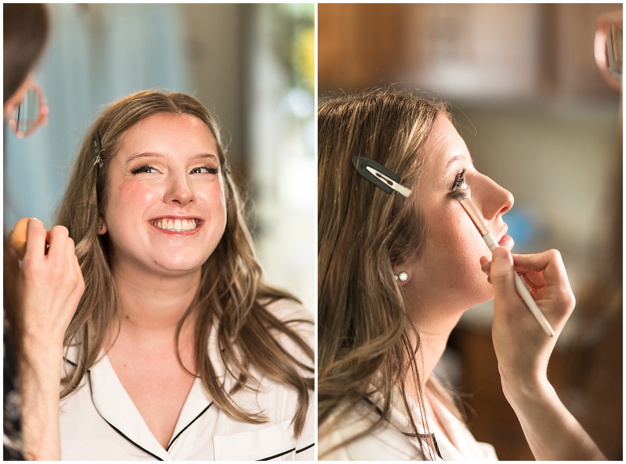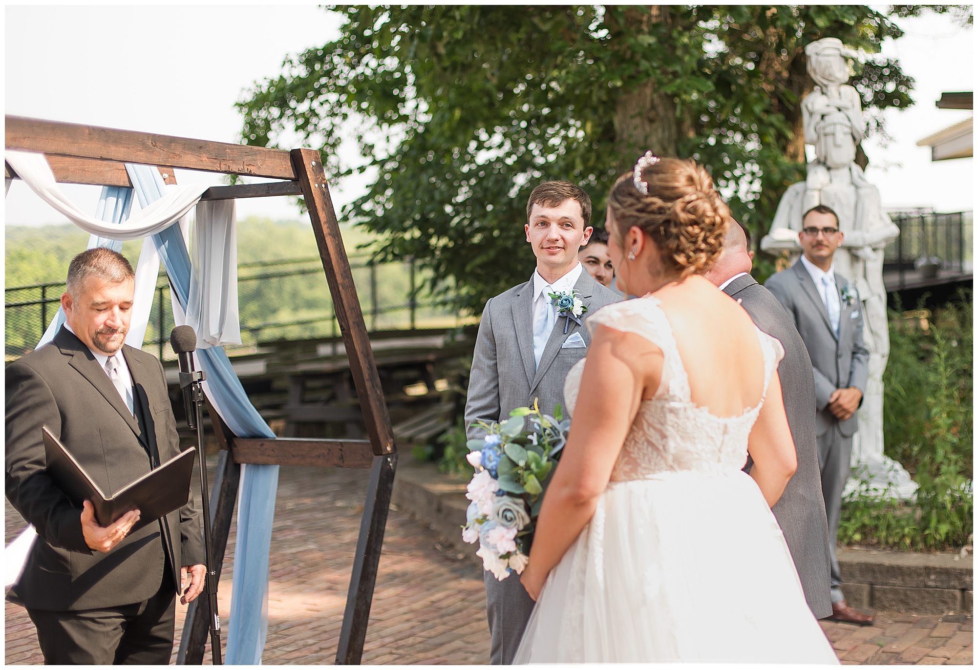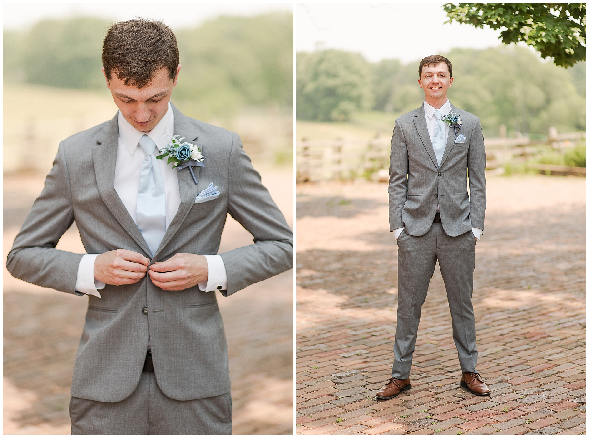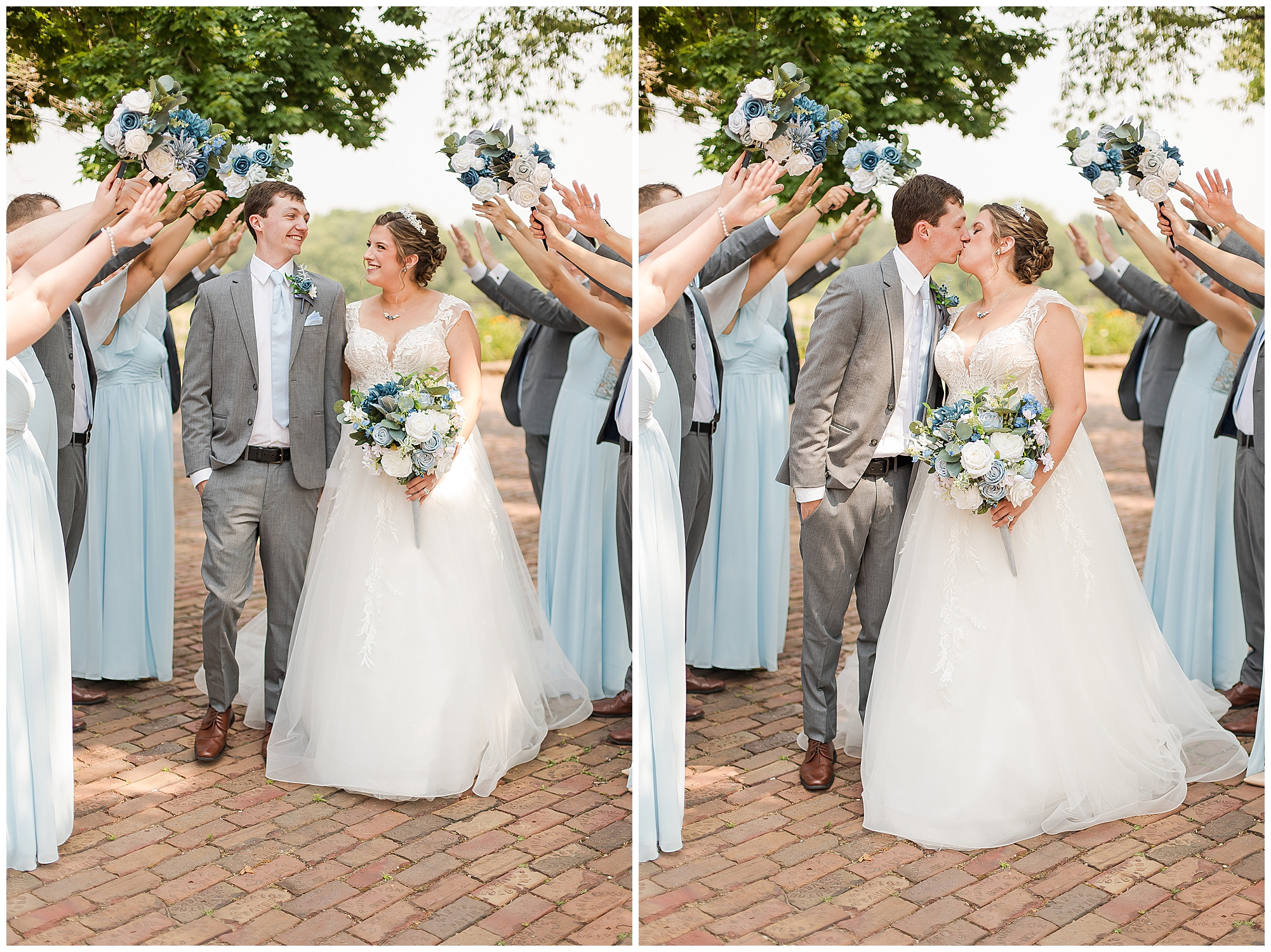Kassondra and Zac started out the morning unconventionally and decided to see one another bright and early before they were even out of their jammies. They read their vows to one another prior to the whirlwind of the day getting going, which I think helped alleviate some of the nerves. They each took a turn sharing their heartfelt vows, talked about the qualities they love about the other, as well as reminiscing on when Kassondra told a friend in high school she was going to marry Zac after seeing him walking into a classroom for the first time. Love this! After preparations for Kassondra’s crew of hair and makeup was complete, everyone helped this bride into her delightful gown! Kassondra was truly stunning and sparked throughout the day when the sunlight caught her dress just right. Zac and his guys couldn’t be outdone too much and looked fantastic in their gray suits and blue ties. Such a classic look. Now it was time for a traditional first look with the bride and groom. And the smile that came up on Zac’s face after seeing Kassondra, I would say was a highlight of the day!