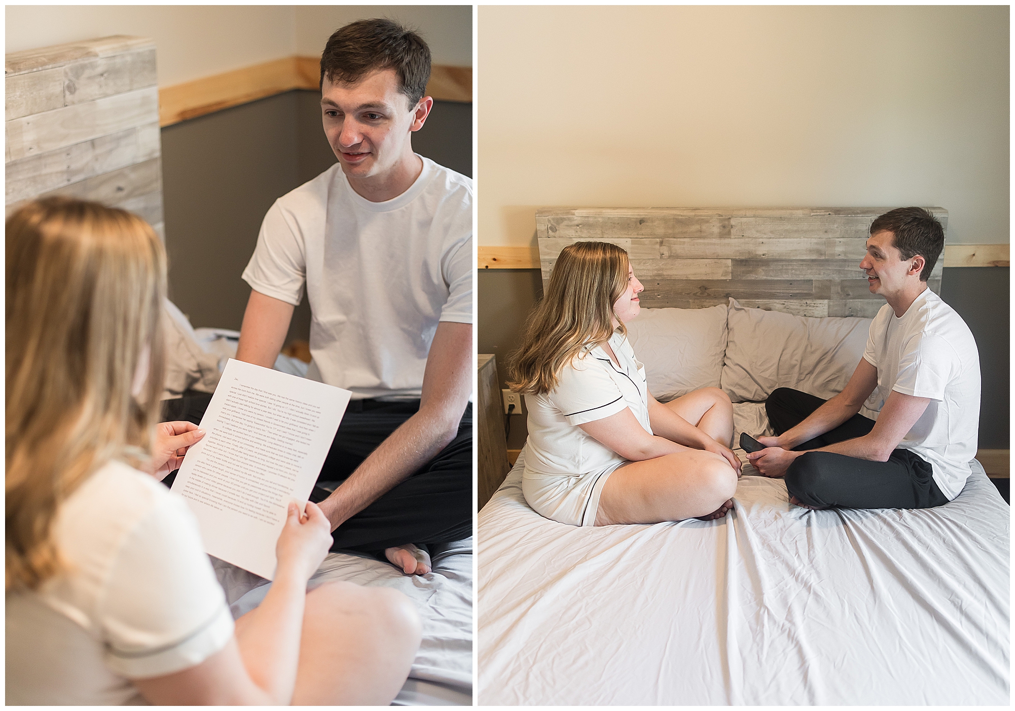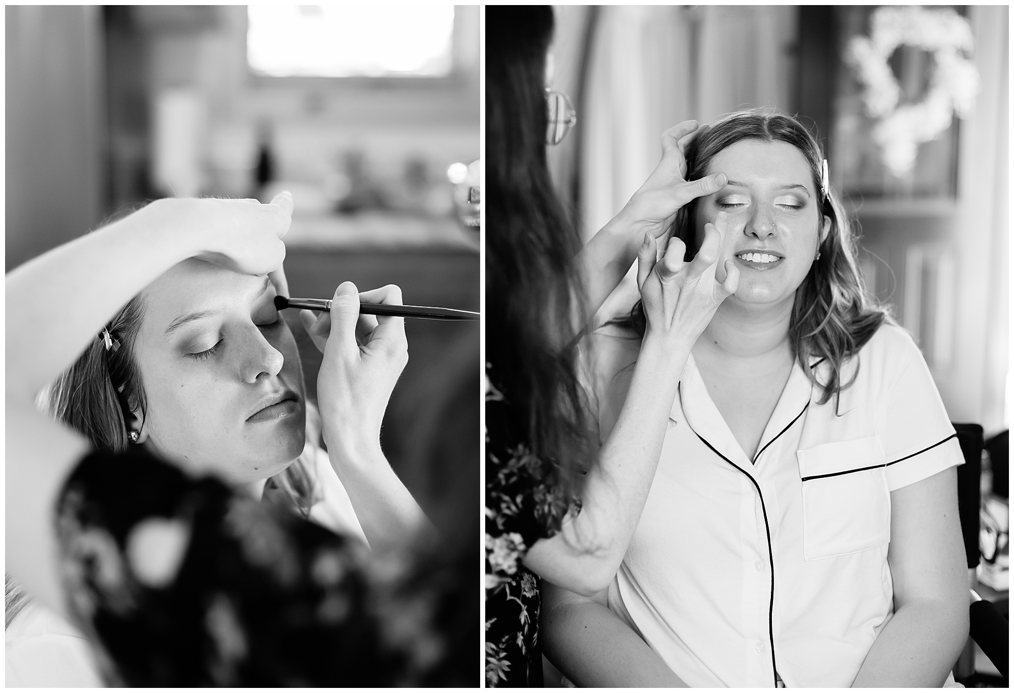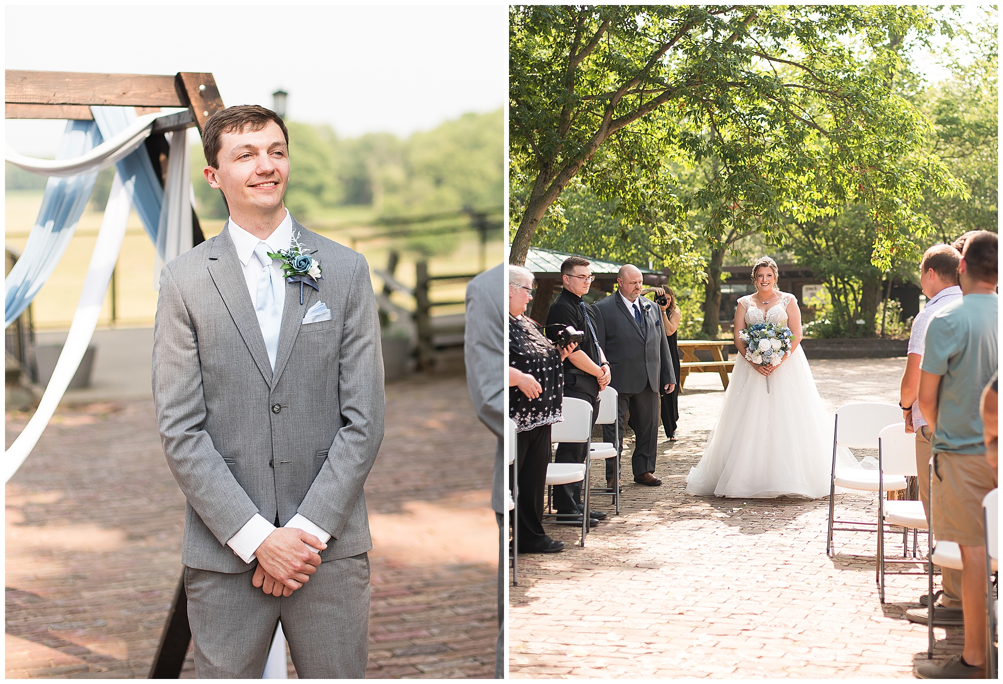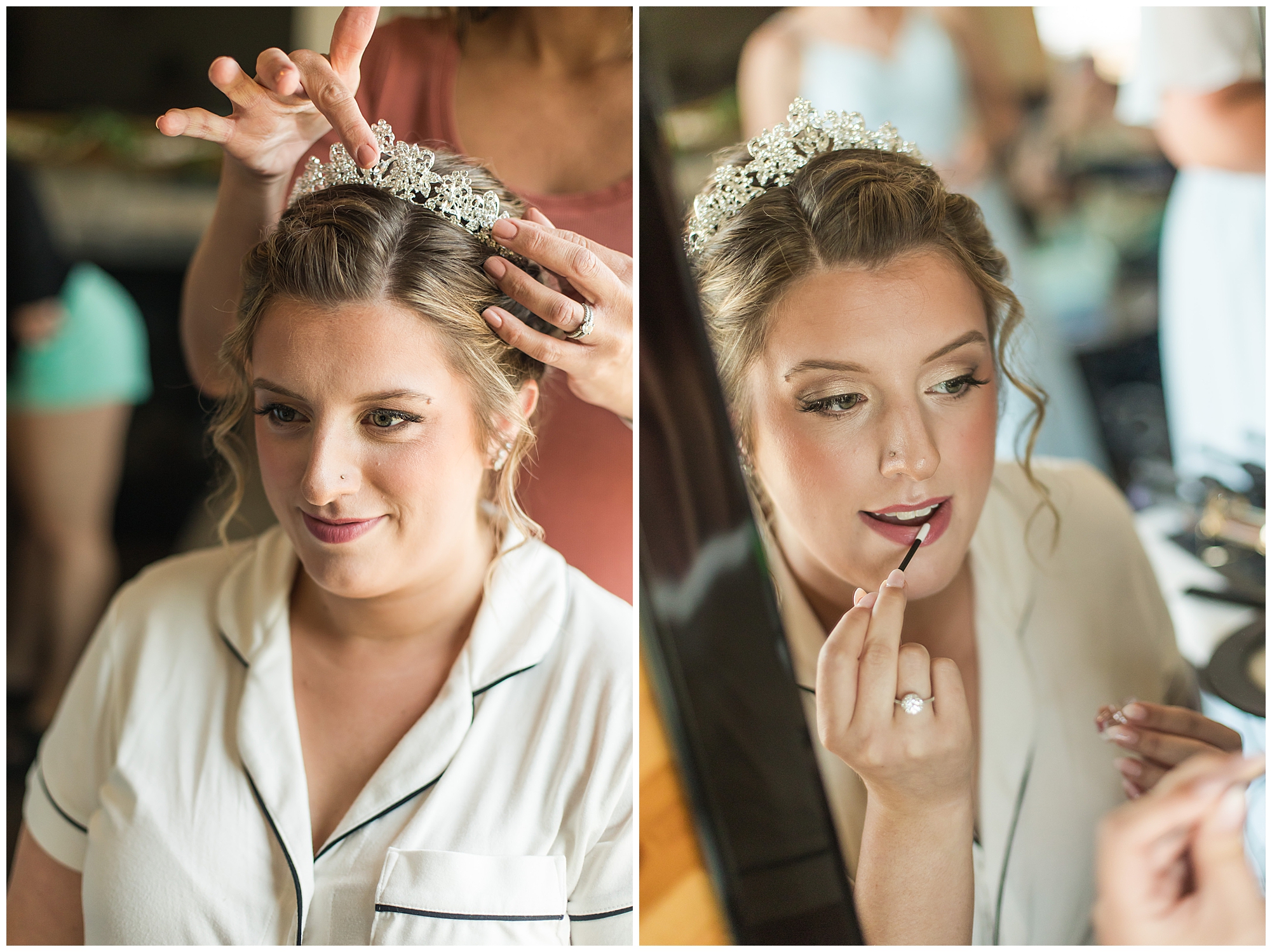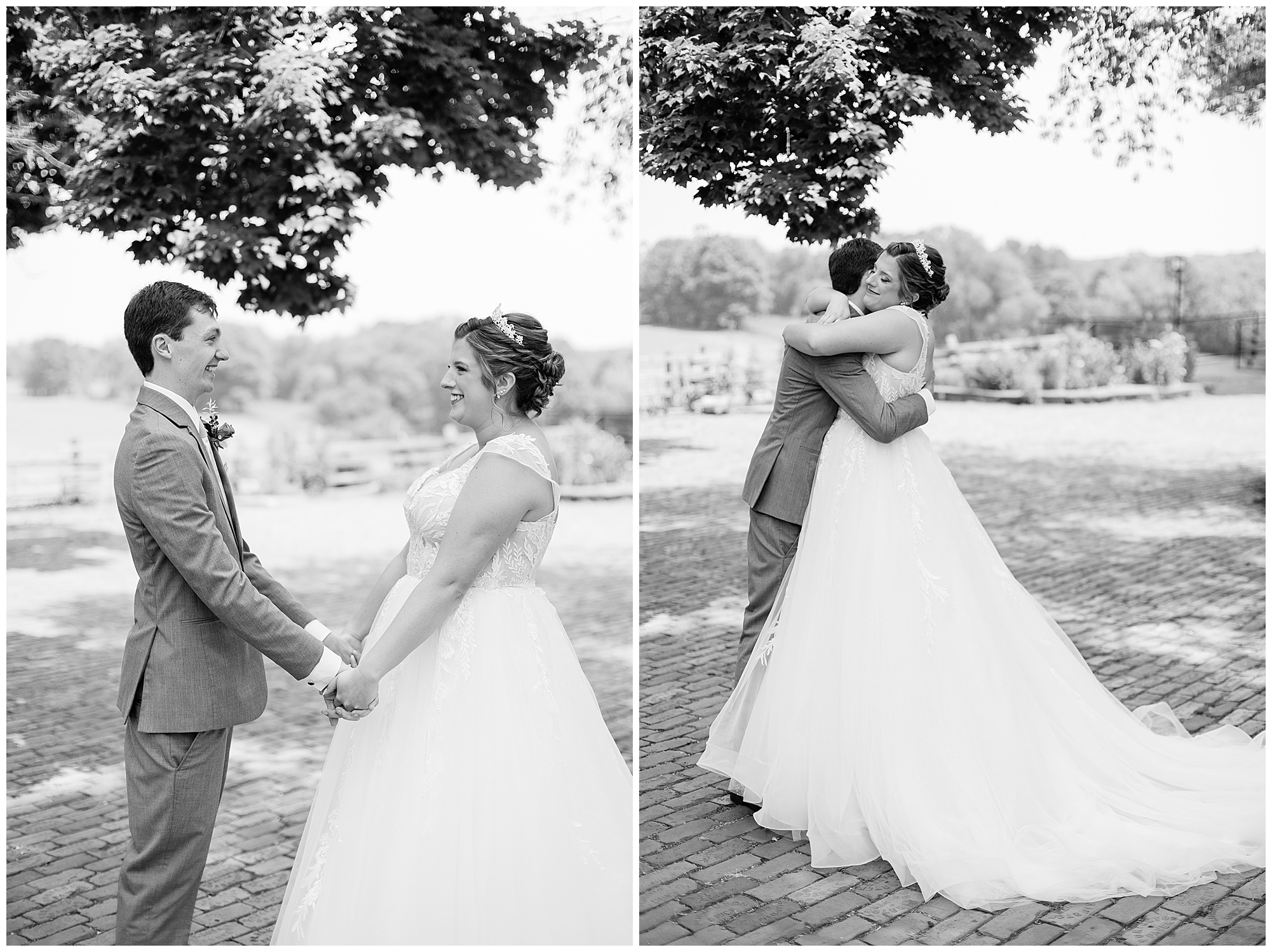 Kassondra and Zac started out the morning unconventionally and decided to see one another bright and early before they were even out of their jammies. They read their vows to one another prior to the whirlwind of the day getting going, which I think helped alleviate some of the nerves. They each took a turn sharing their heartfelt vows, talked about the qualities they love about the other, as well as reminiscing on when Kassondra told a friend in high school she was going to marry Zac after seeing him walking into a classroom for the first time. Love this! After preparations for Kassondra’s crew of hair and makeup was complete, everyone helped this bride into her delightful gown! Kassondra was truly stunning and sparked throughout the day when the sunlight caught her dress just right. Zac and his guys couldn’t be outdone too much and looked fantastic in their gray suits and blue ties. Such a classic look. Now it was time for a traditional first look with the bride and groom. And the smile that came up on Zac’s face after seeing Kassondra, I would say was a highlight of the day!