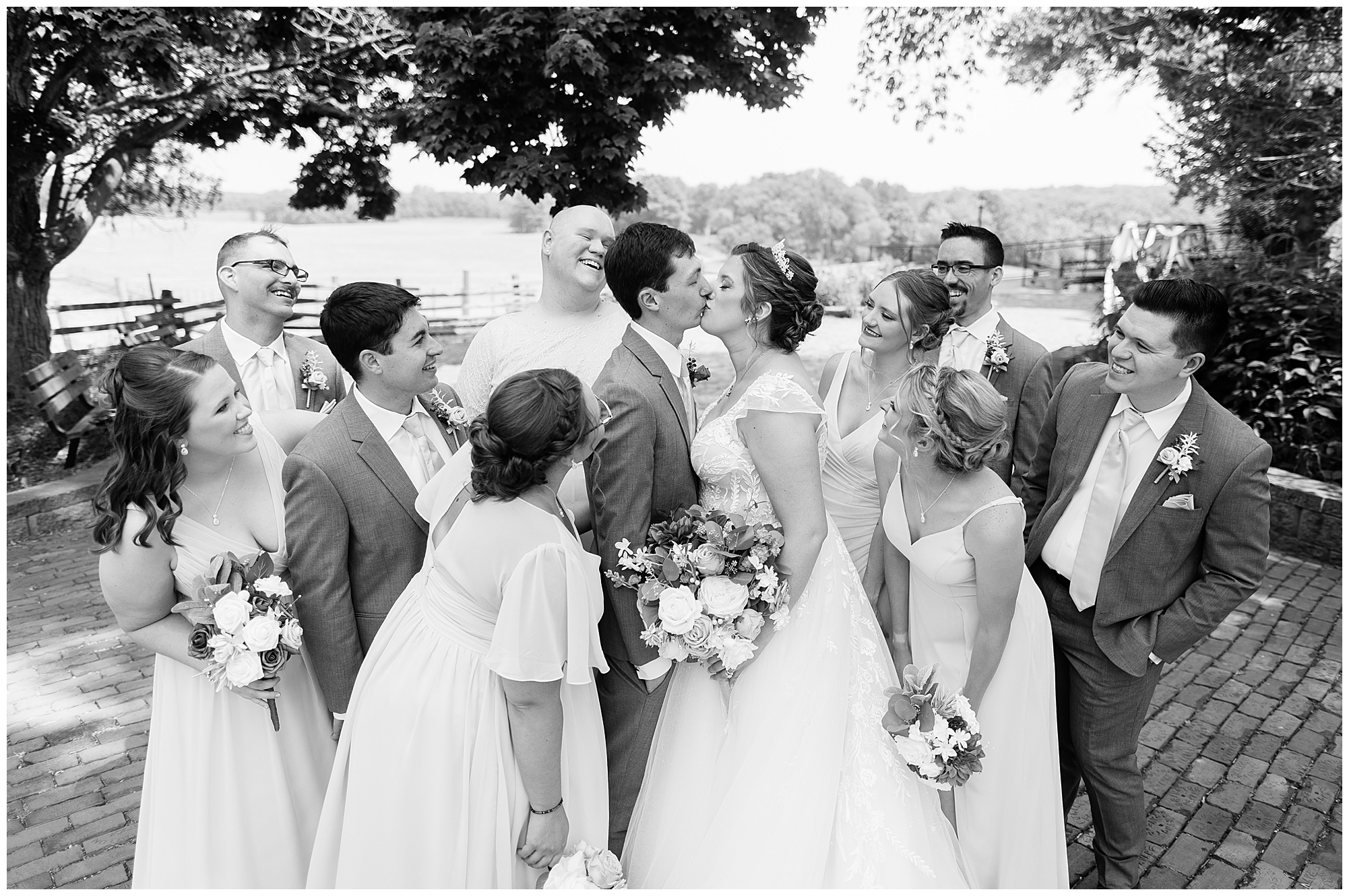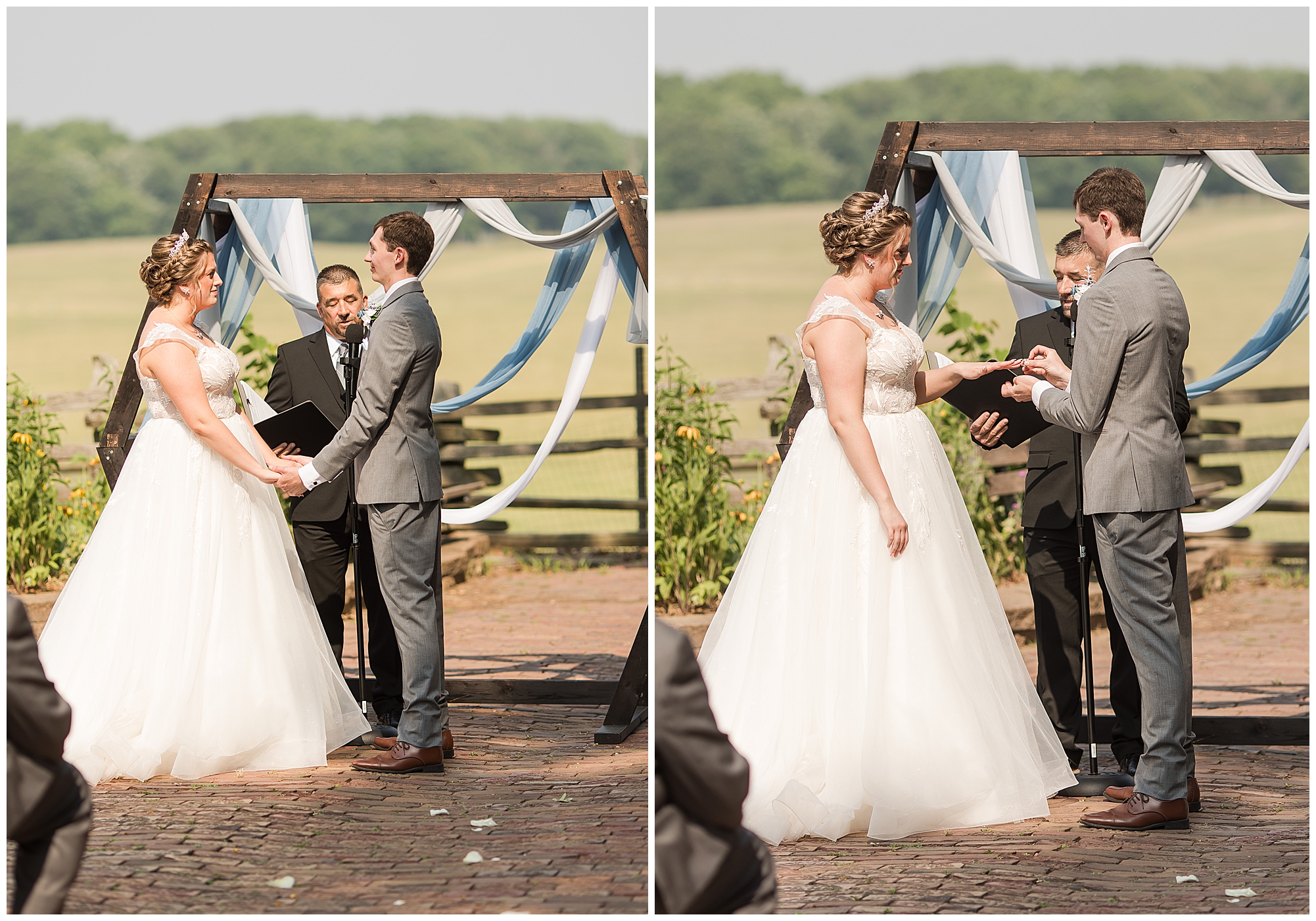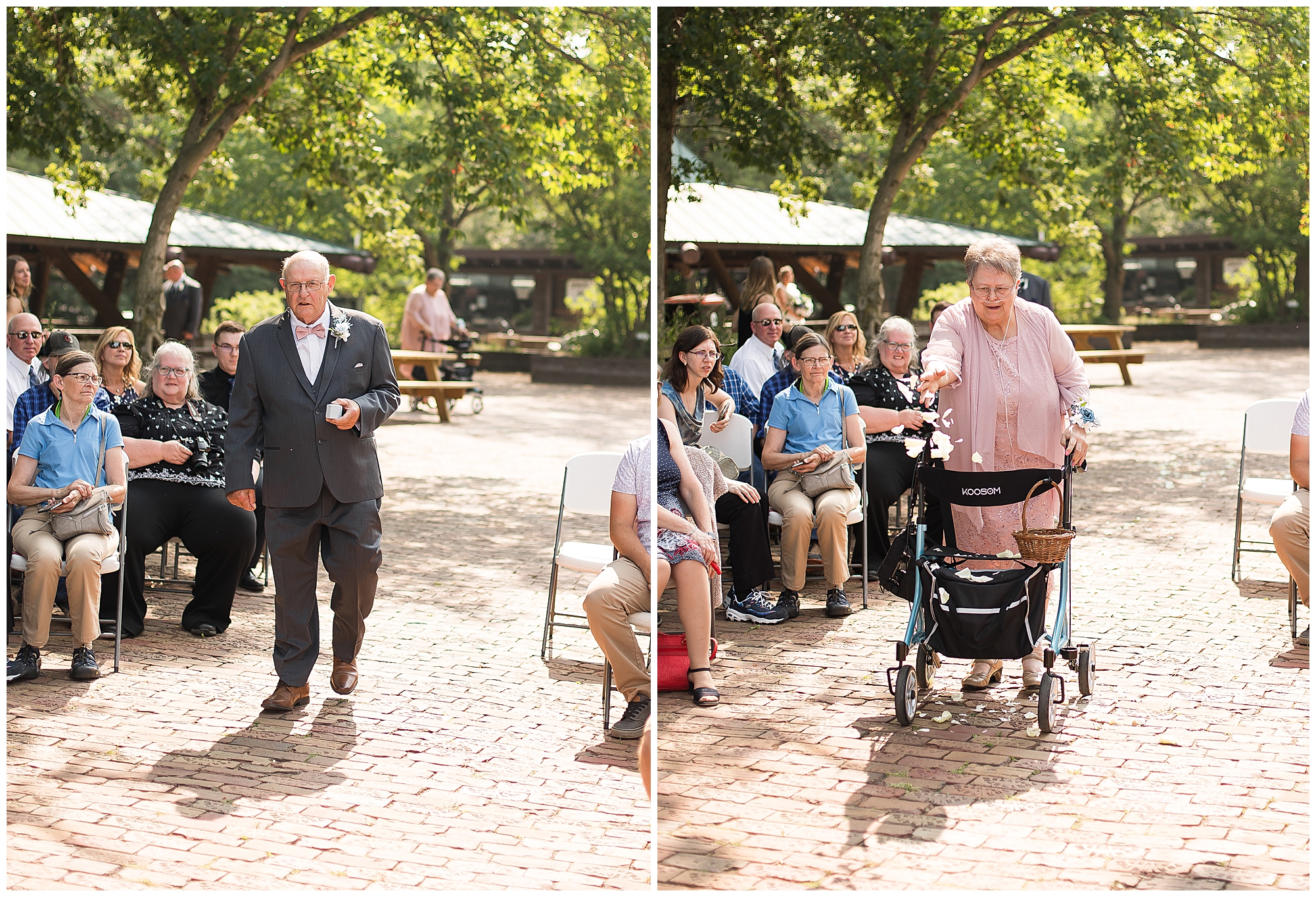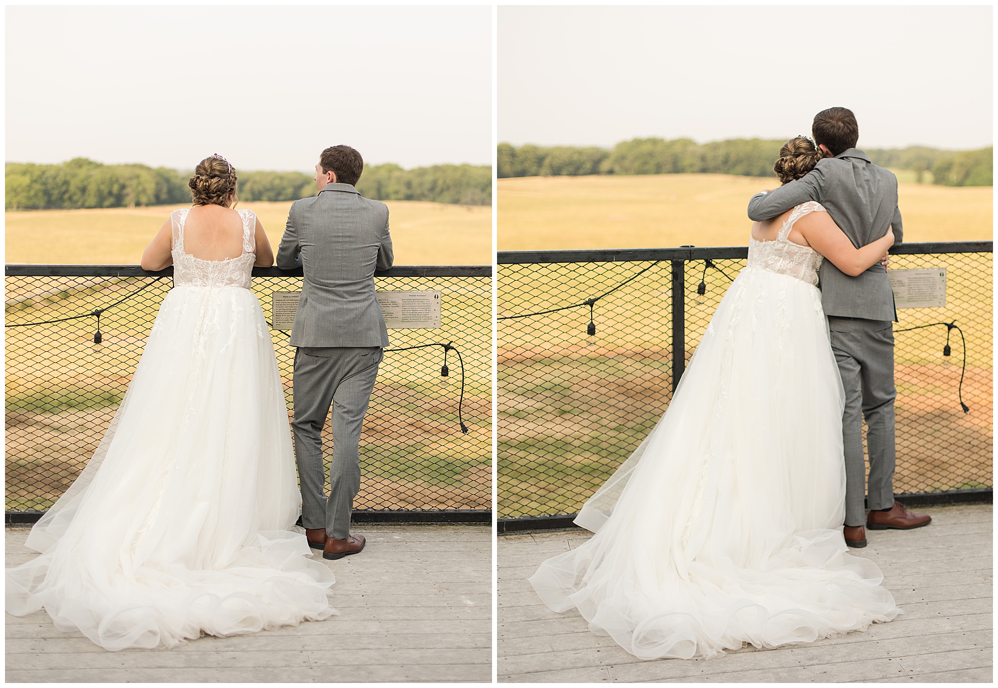 The bridal party was so full of energy and fun that I almost forgot it was super hot outside! Kassondra and Zac’s crew were made up of family and friends, including another LWP Bride, Kassondra’s sister, Brittney. I took a few extra minutes for some photos of the lovely couple before whisking them off to hide prior to the ceremony. And before we knew it, the ceremony was upon us! The outdoor ceremony was set up overlooking a huge pasture with Bison and Elk roaming around. Such an awesome scene! The nuptials began with special sight of the honorary ring bearer and flower girl walking down the aisle (aka Kassondra’s grandparents). It was the sweetest thing watching her grandfather walk the rings down the aisle followed by her grandmother throwing petals from her basket. Absolutely adorable! Then the bride made her way up the aisle with her father towards her awaiting groom. These two shared their vows, exchanged rings, and made it official with a kiss! The new Mr. & Mrs. Simon!