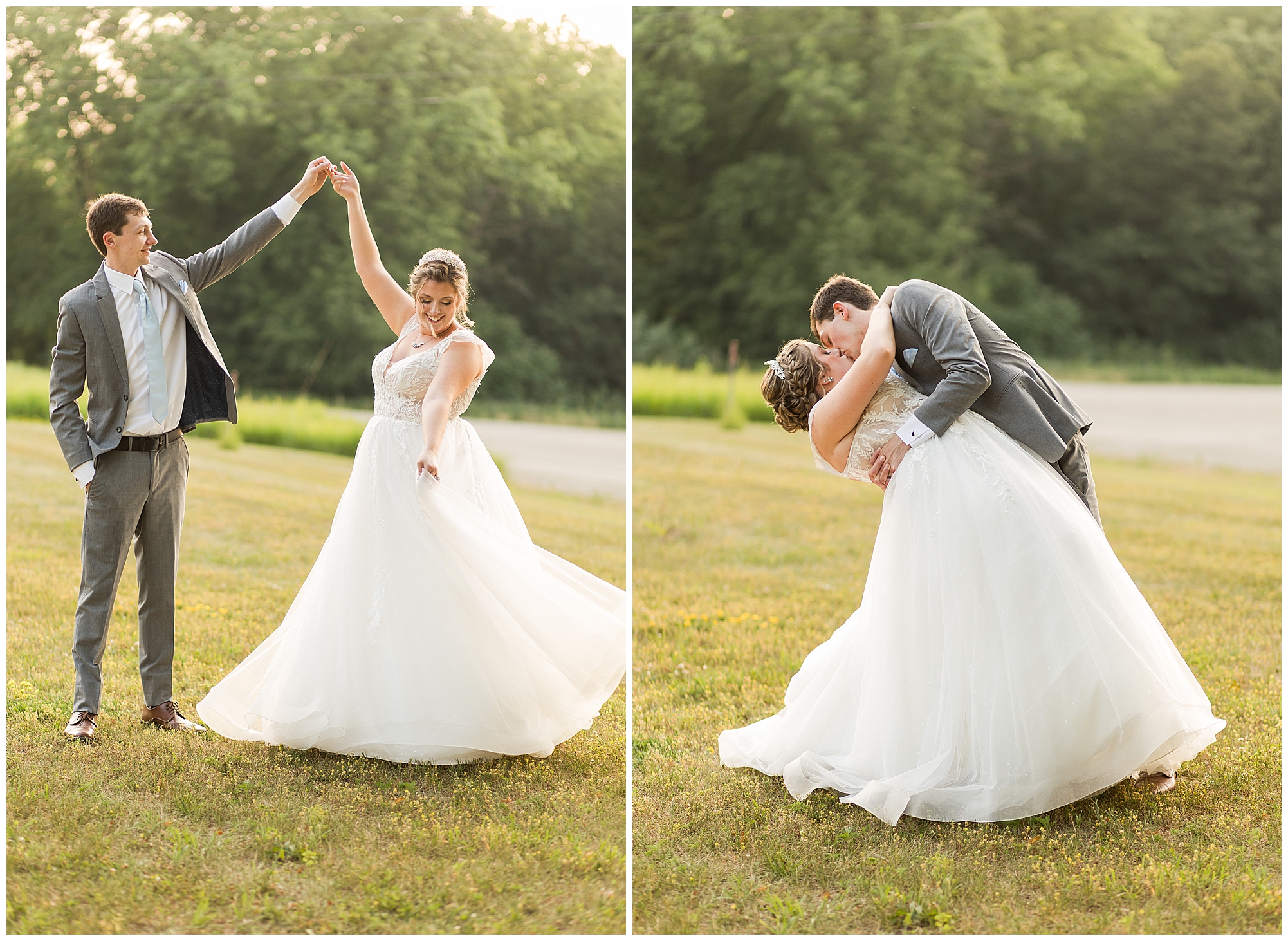 Once they were pronounced husband and wife, the party definitely got started! With some charming dances, hilarious toasts, and a bride and groom who were ready to cut a rug on the dance floor this reception was an amazing one! And with Kassondra being an ultra Swiftie (in other terms…a huge Taylor Swift fan), you can guess what a lot of the music was throughout the evening. Before I left for the night, I did steal the newlyweds for a few more photos at sunset. They walked hand in hand, did a few twirls, and dips just to complete the dazzling day! Cheers to The Simons!