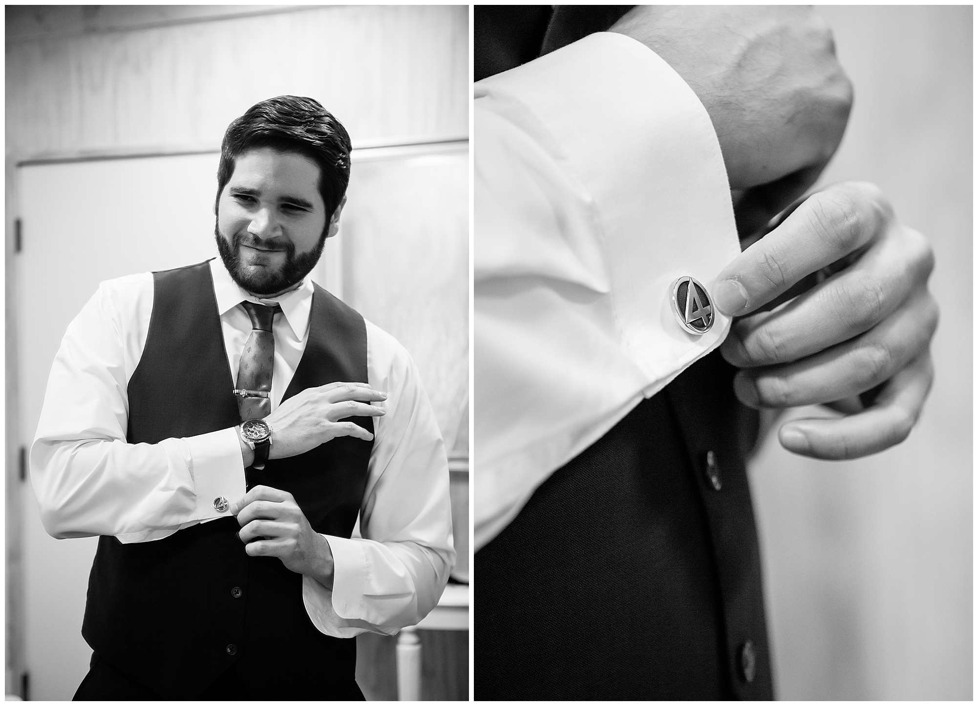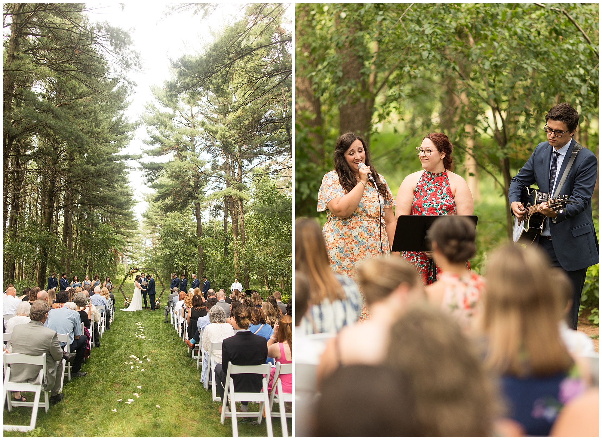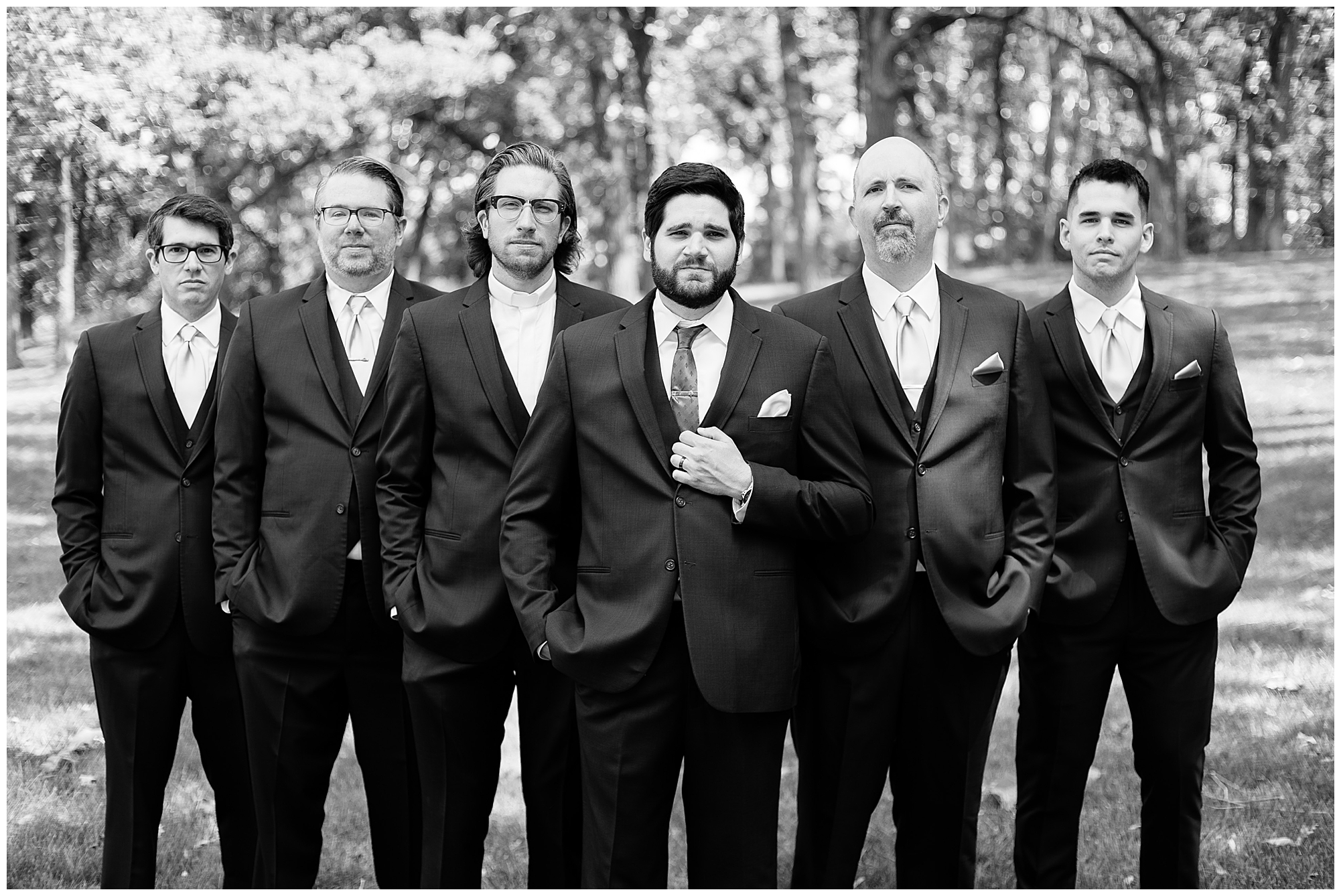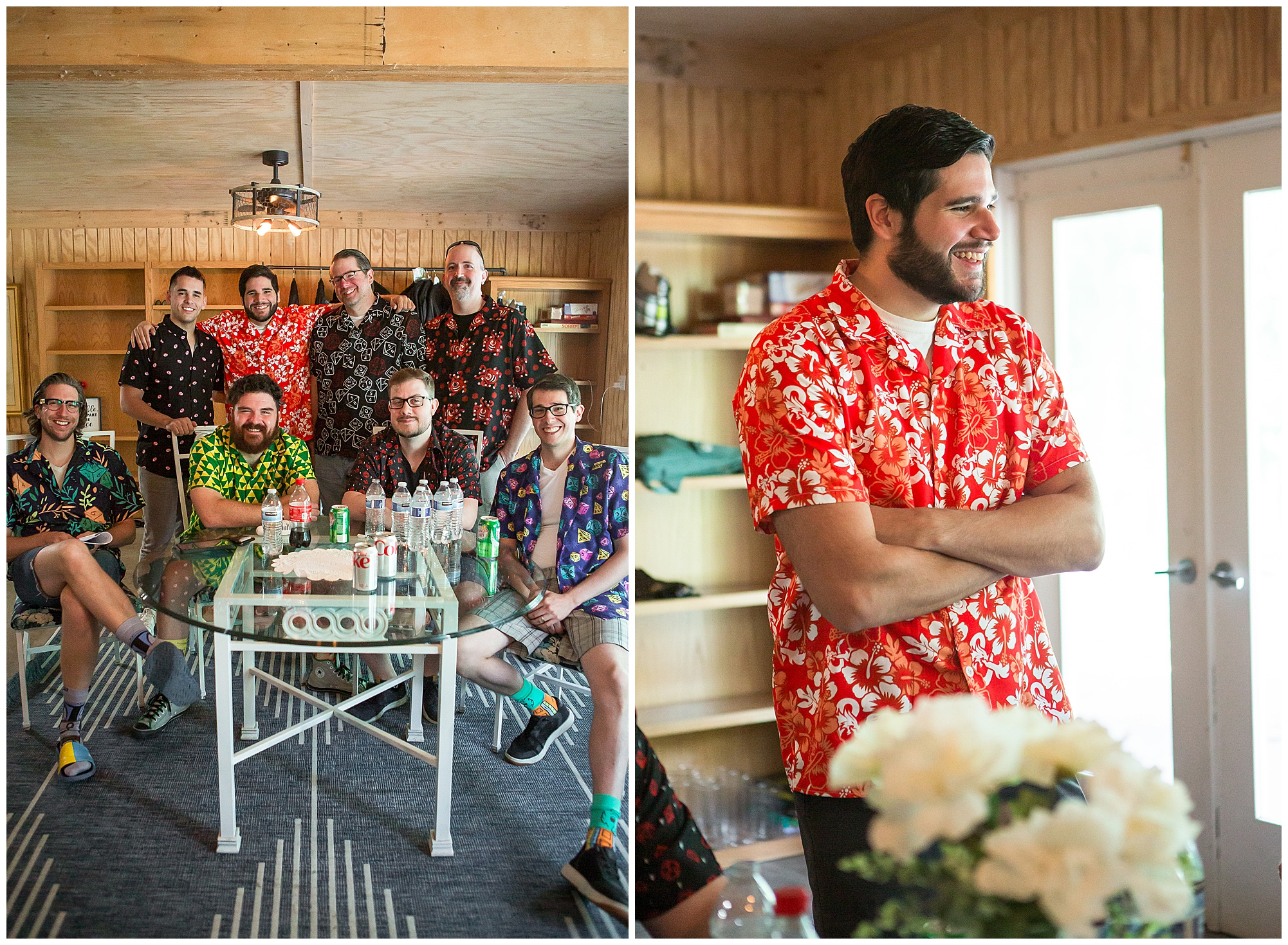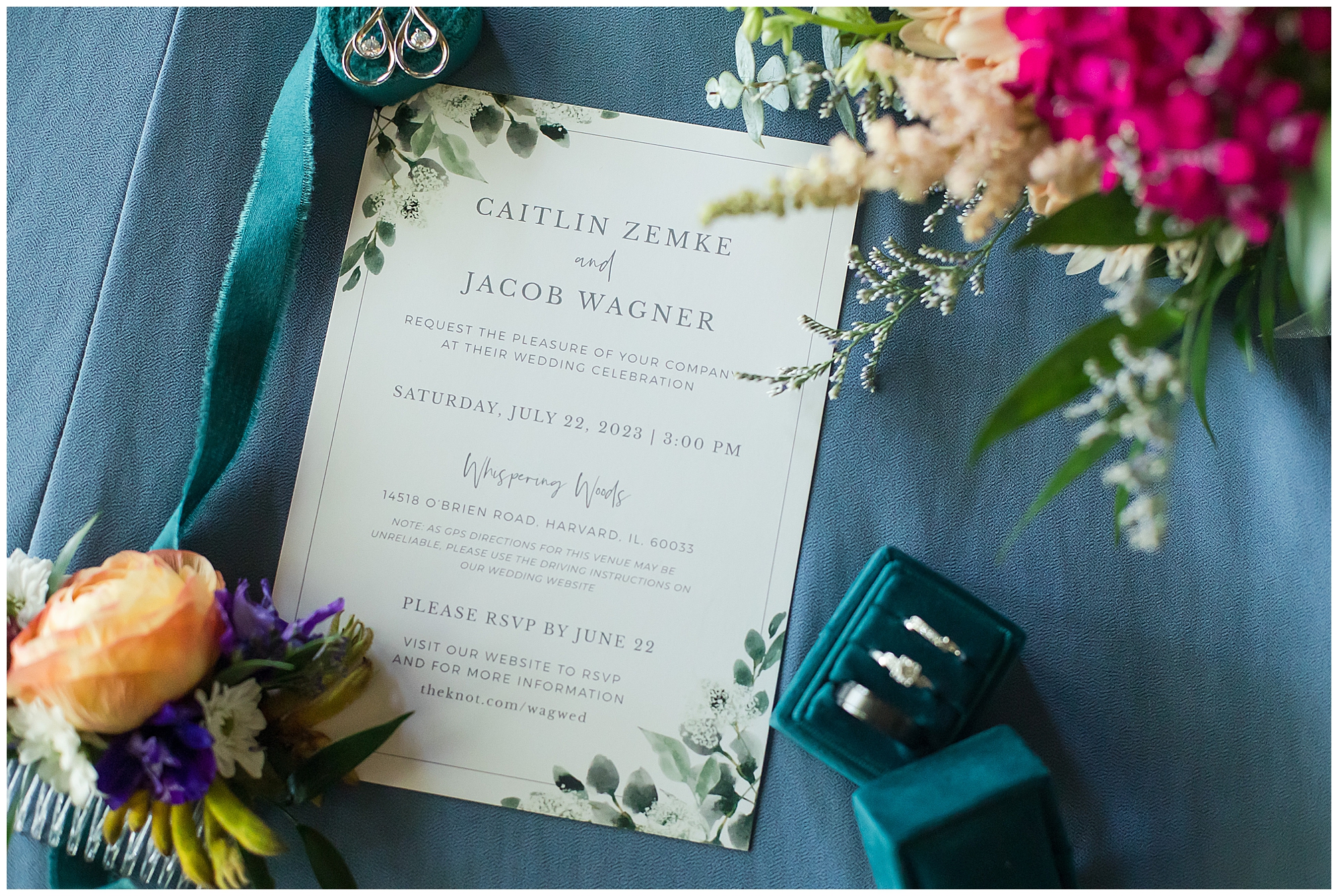 I knew going into Caitlin and Jake’s summer wedding it was going to be a good one. During their engagement session, they showed me their laid back, ready for a fun time energy and I was absolutely down for it! So when their big day arrived at the gorgeous Whispering Woods venue in Harvard, Illinois, about an hour outside of Rockford and close to the Wisconsin boarder, I wasn’t surprised by the loving, supportive, and hilarious people they surrounded themselves with. From their welcoming families and incredible bridal party, I already felt the love and was ready to capture it all for this adorable couple. Caitlin was calm and cool when I met up with her in one of the cabins on the venue’s property. She was taking in all the small moments with her bridesmaids, mom, and friends. She was going for a classic, simple, wedding infused with some of their favorite “Nerd Stuff” (Caitlin’s words, not mine). See, Caitlin and Jake are huge Star Wars fans, as well as other popular franchises, and they peppered them throughout their wedding day. The many nephews and nieces sported Pikachu, Fortnite, and Star Wars bowties and hair bows, while Jake even had a subtle Star Wars pattern in his tie. Plus the groomsmen were gifted themed socks and cufflinks. How fun!