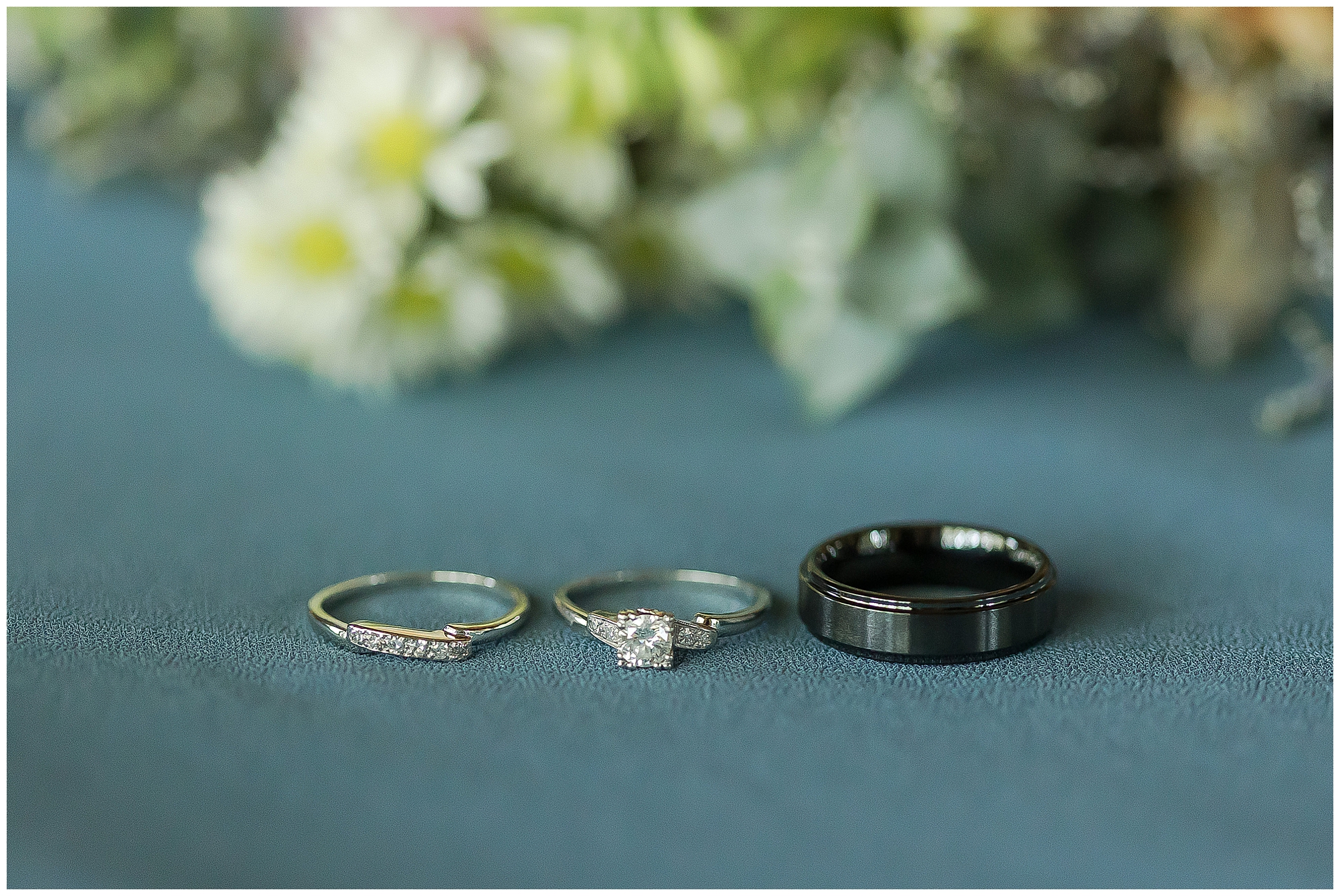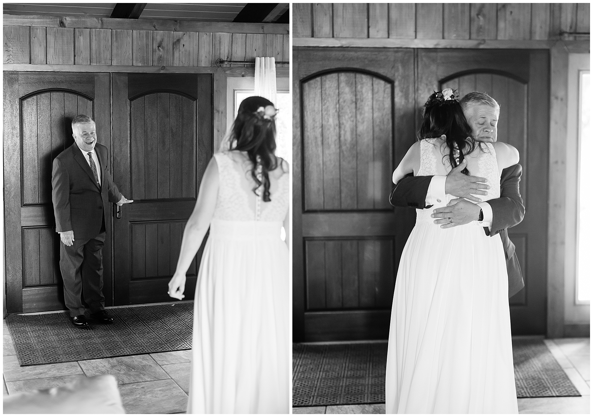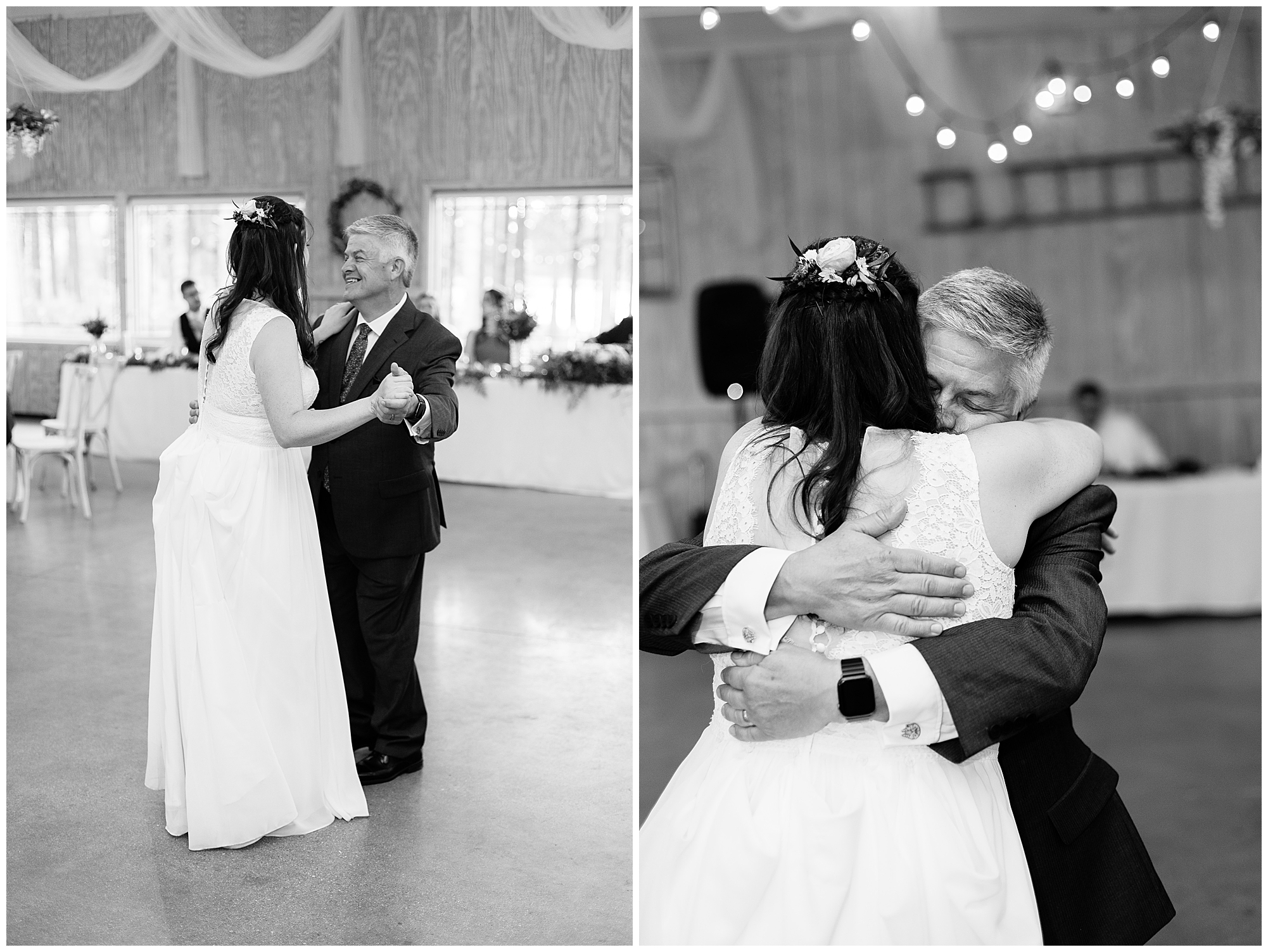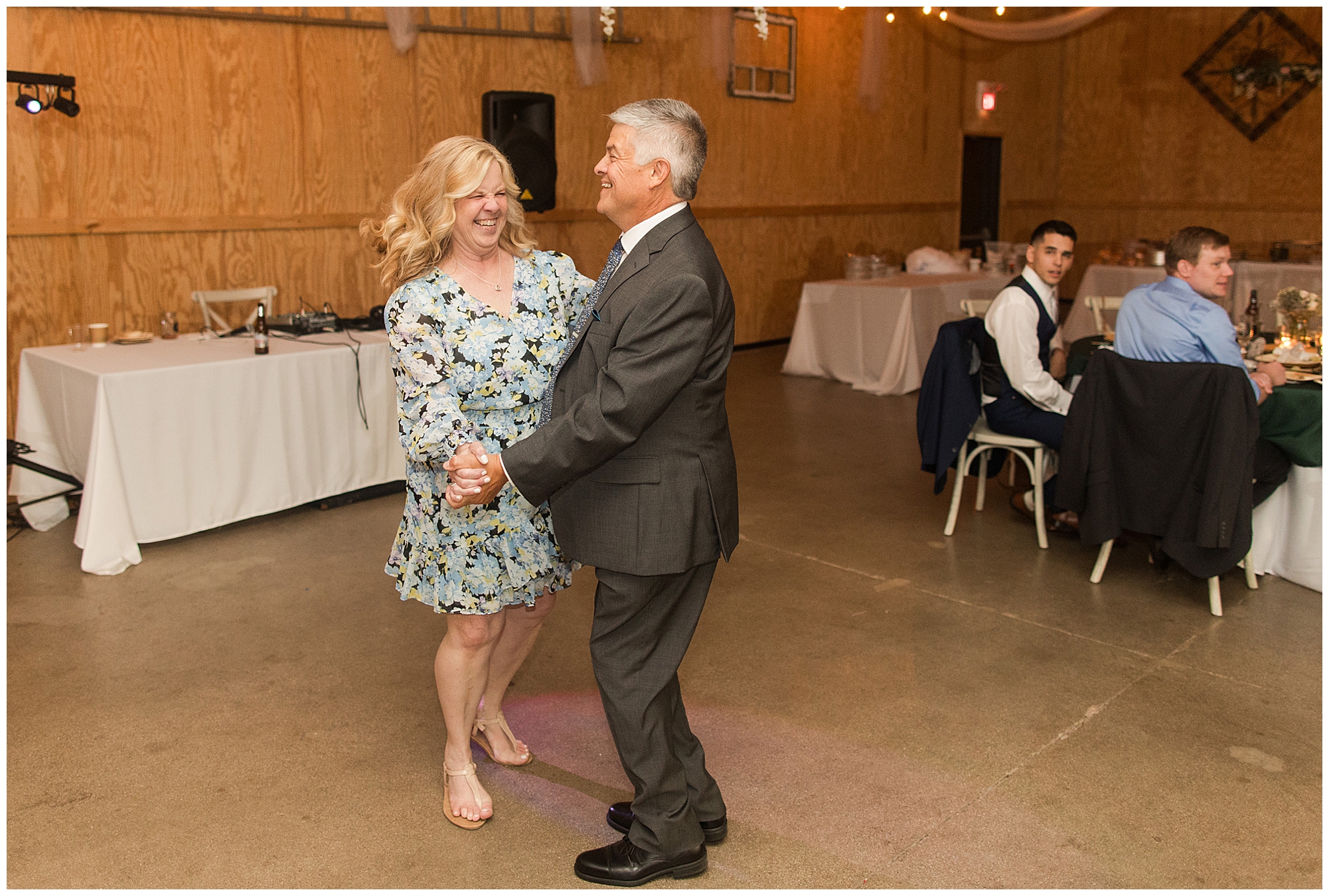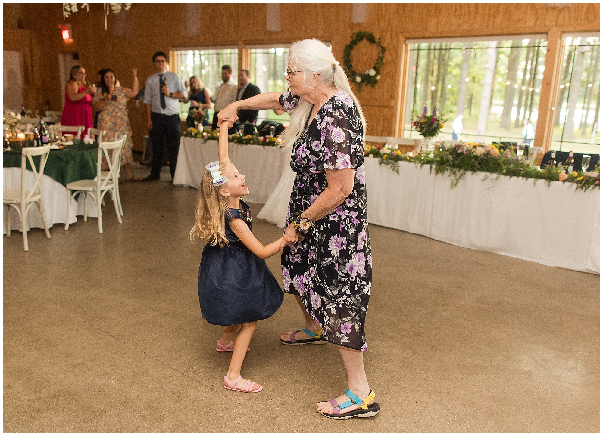 The reception was filled with many more favorites of the newlyweds including tables named after beloved breweries, accents of hunter green, a Star Wars cake topper, as well as lightsaber bridal party entrance. And while we are talking about the cake, it was made by Caitlin’s previous teacher, who she had for many years in a row as her class grew to the next grade level. Over the last few years, they have reconnected and call each other friends. Her teacher shared with me that she called the students her “Little Peeps” and as a surprise to Caitlin, she snuck the tiniest of yellow Peeps (like the Easter Peeps) onto the top of the cake. The reaction of the bride was so meaningful to both of them. The couple listened to many funny and thoughtful toasts, the bride and groom shared their first dance along with lovely dances with Caitlin’s father and Jake’s mother. And don’t worry, there was plenty of dancing, however this couple envisioned relaxing and spending time with their guests as much as possible. Jake’s brothers and family members even busted out their black leather jackets with various nostalgic emblems. I asked the backstory of the jackets and apparently years ago at a thrift story they had a huge box of these jackets. So they bought them and bring them out at special events and hand them out to new “club members” including Caitlin’s brother, who was given his jacket to celebrate. Hilarious! Before I left for the evening, I stole the couple, along with their bridal party of one more nod to Star Wars with some lightsaber photos. I adore Caitlin and Jake and wish them all the blessing in the galaxy for their marriage! May the Force be with you both!