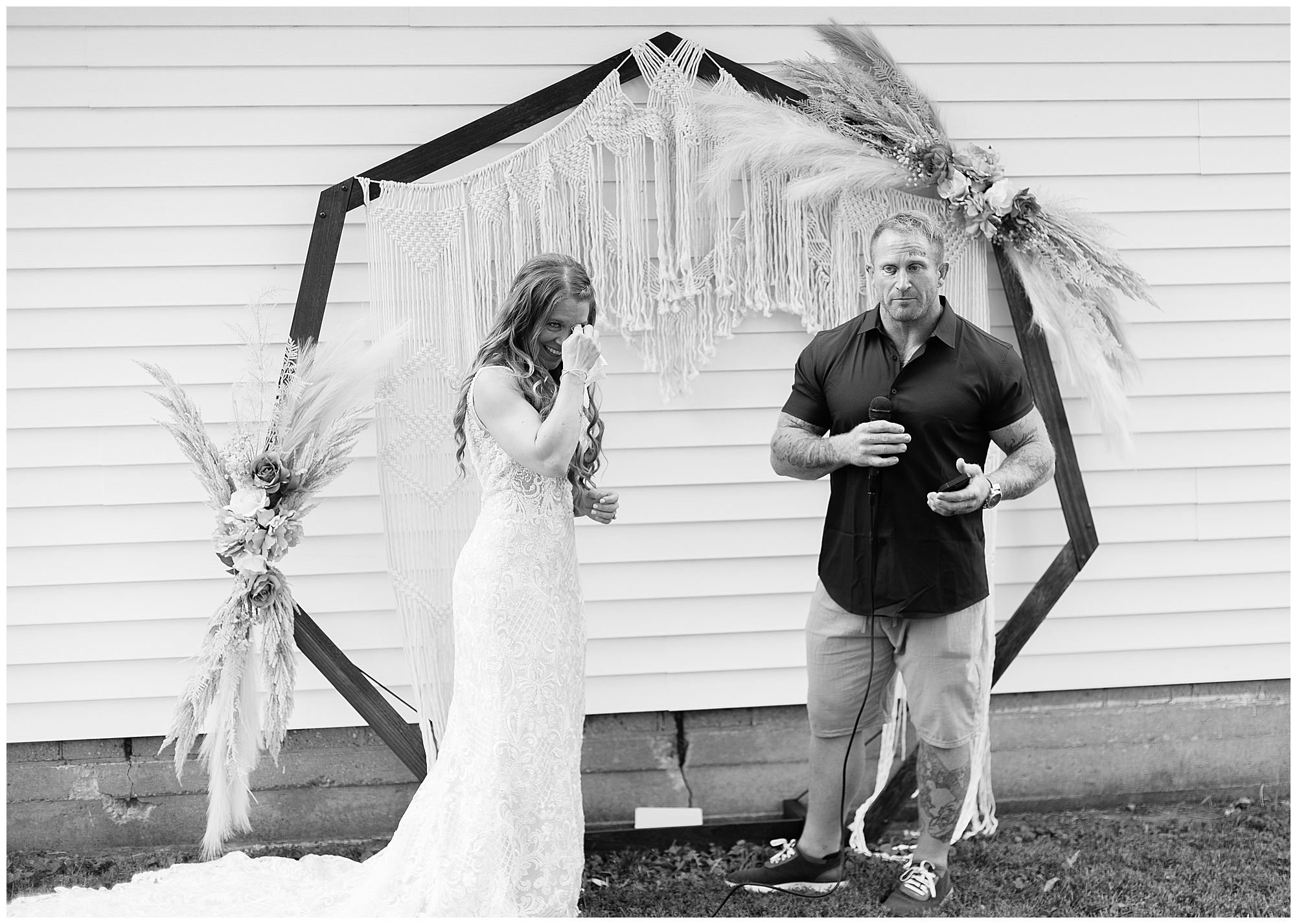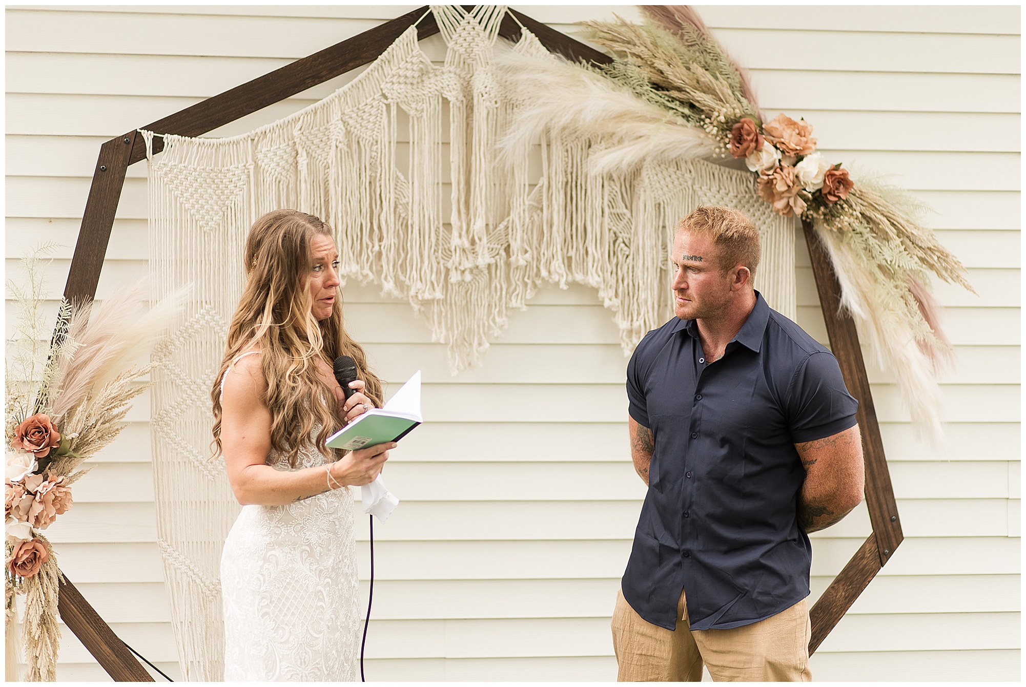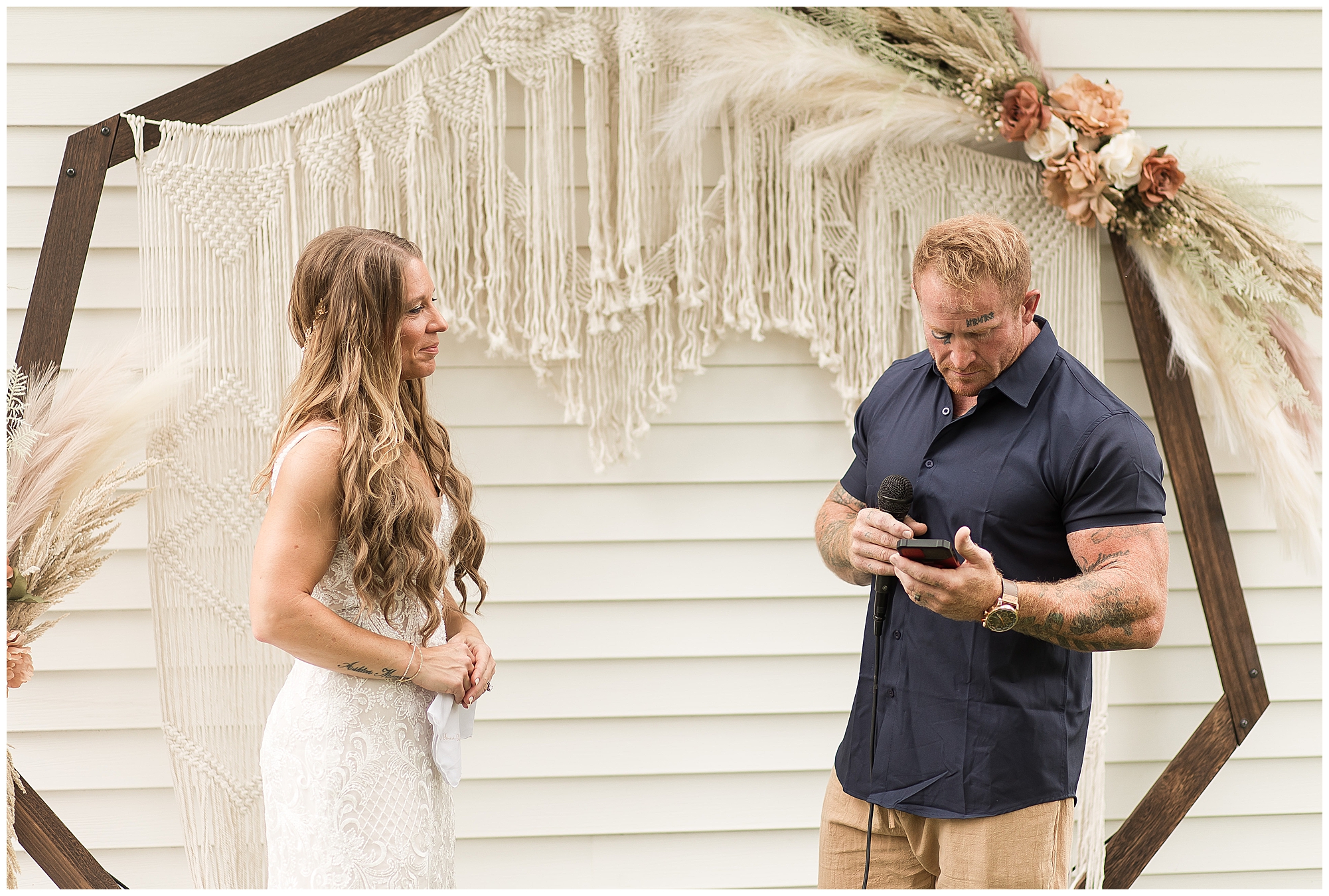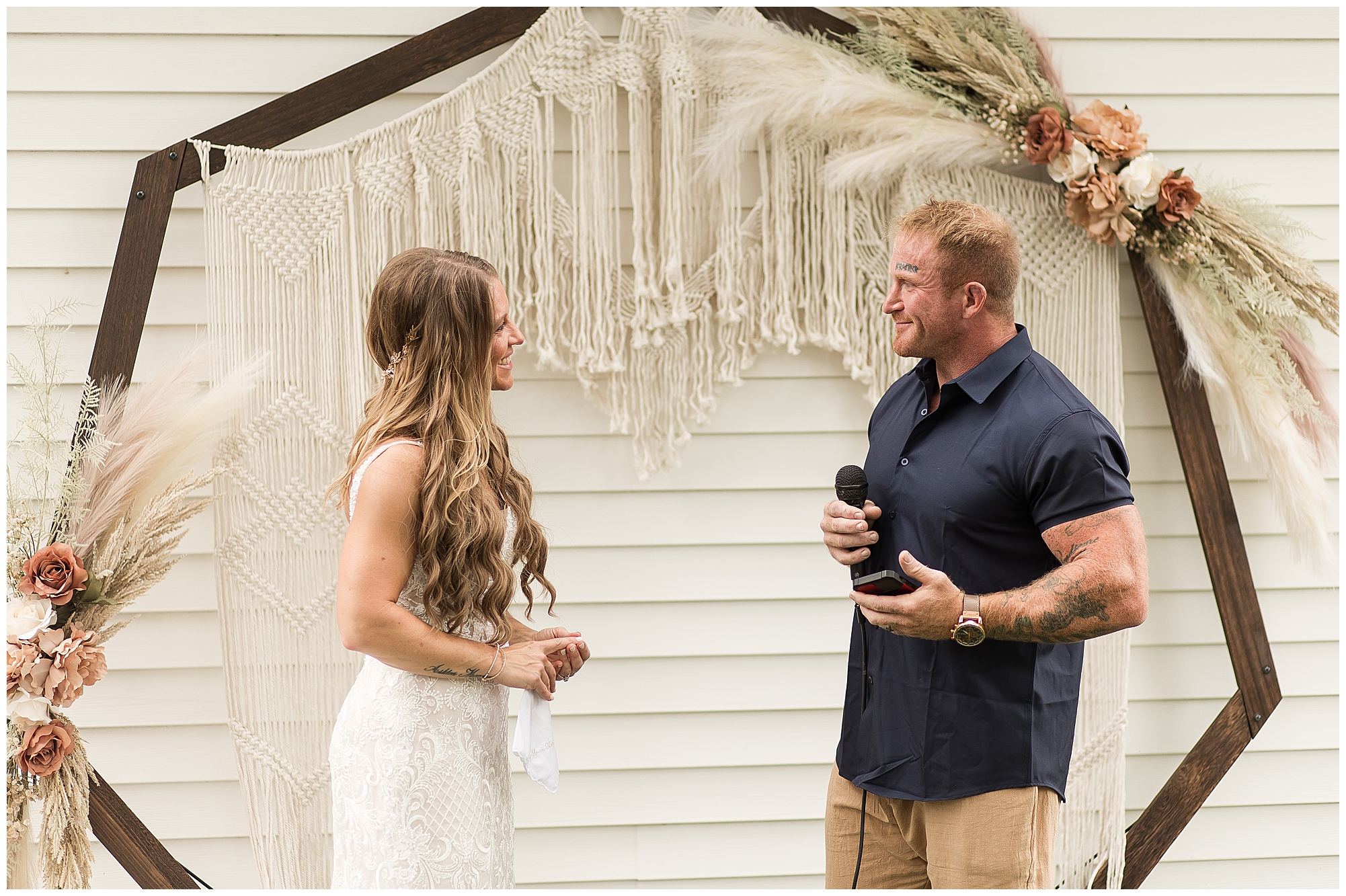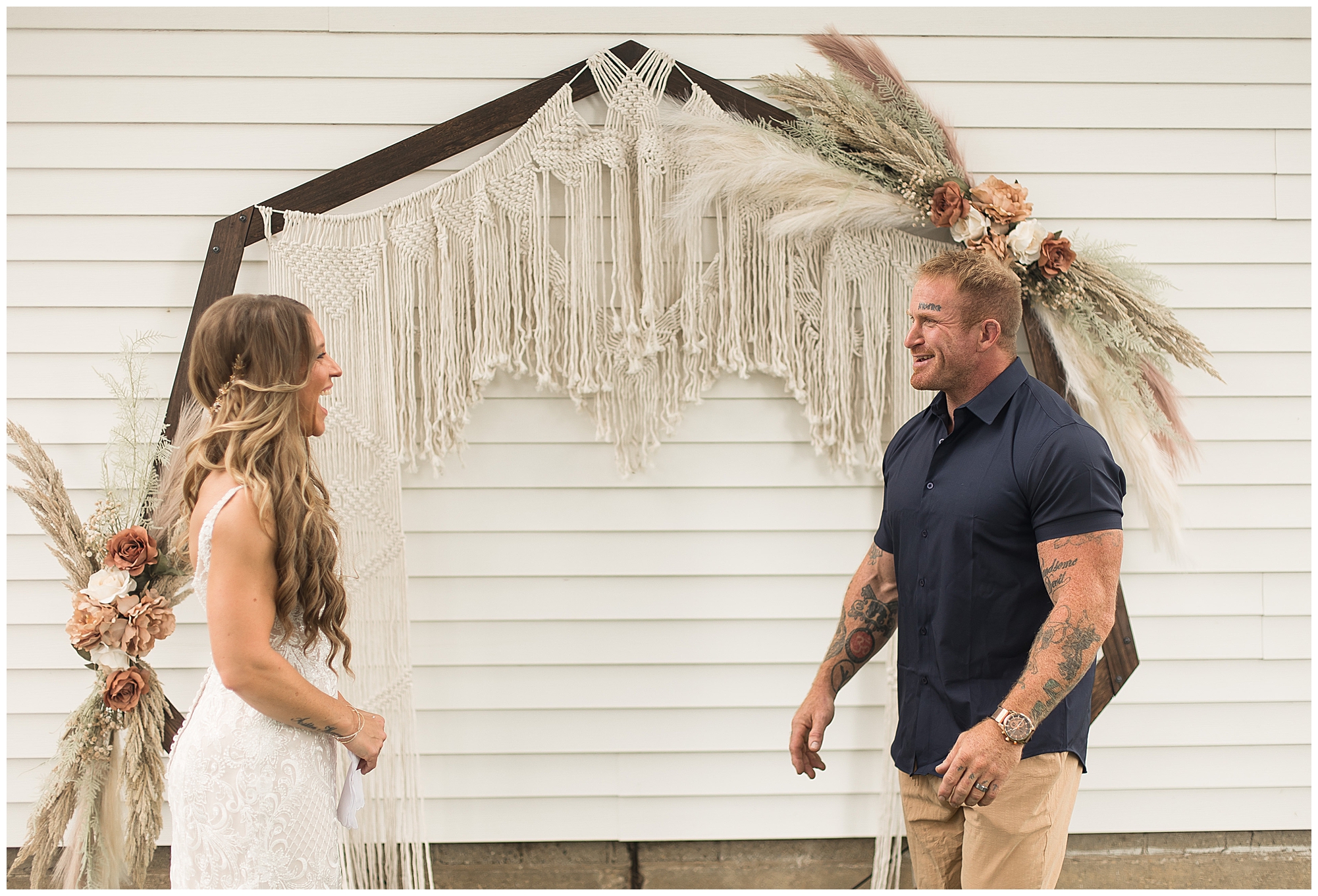 Before the ceremony, one of Jaimie’s musts was to have a first look with her dad. These two are very close and to have this moment was an emotional one. Jaime and Steffen also decided to see one another beforehand and I think it took a little bit of the jitters away and was a sweet part of the day. Next it was time for Jaime and Steffen to stand in front of their families and friends and share lovely words of emotion and committal, as well as qualities they adore about one another. There were laughs and gentle words exchange by both Jaime and Steffen. Then they sealed it all with a kiss! Once the ceremony was completed, Steffen shared his love language as he fired up the grill and cooked for all the guests that came out to join them for their special day! And my goodness was it delicious! But, before the couple started having too much fun, I stole them for a few photos together. Jaime looked absolutely beautiful in her gown and her big smile was her best accessory. Steffen was looking fresh in his crisp navy button down shirt and khakis shorts. When you put Jaime and Steffen together it was…Chef’s kiss!