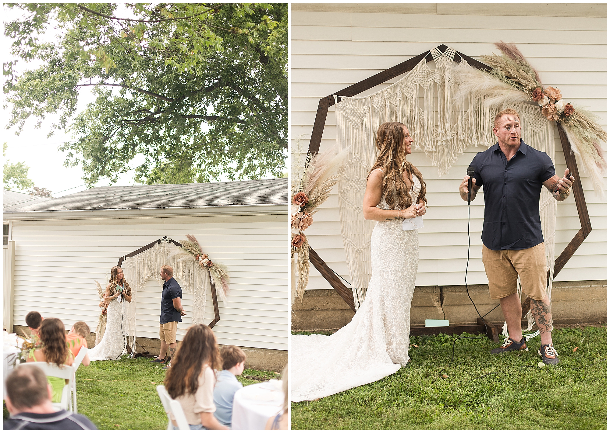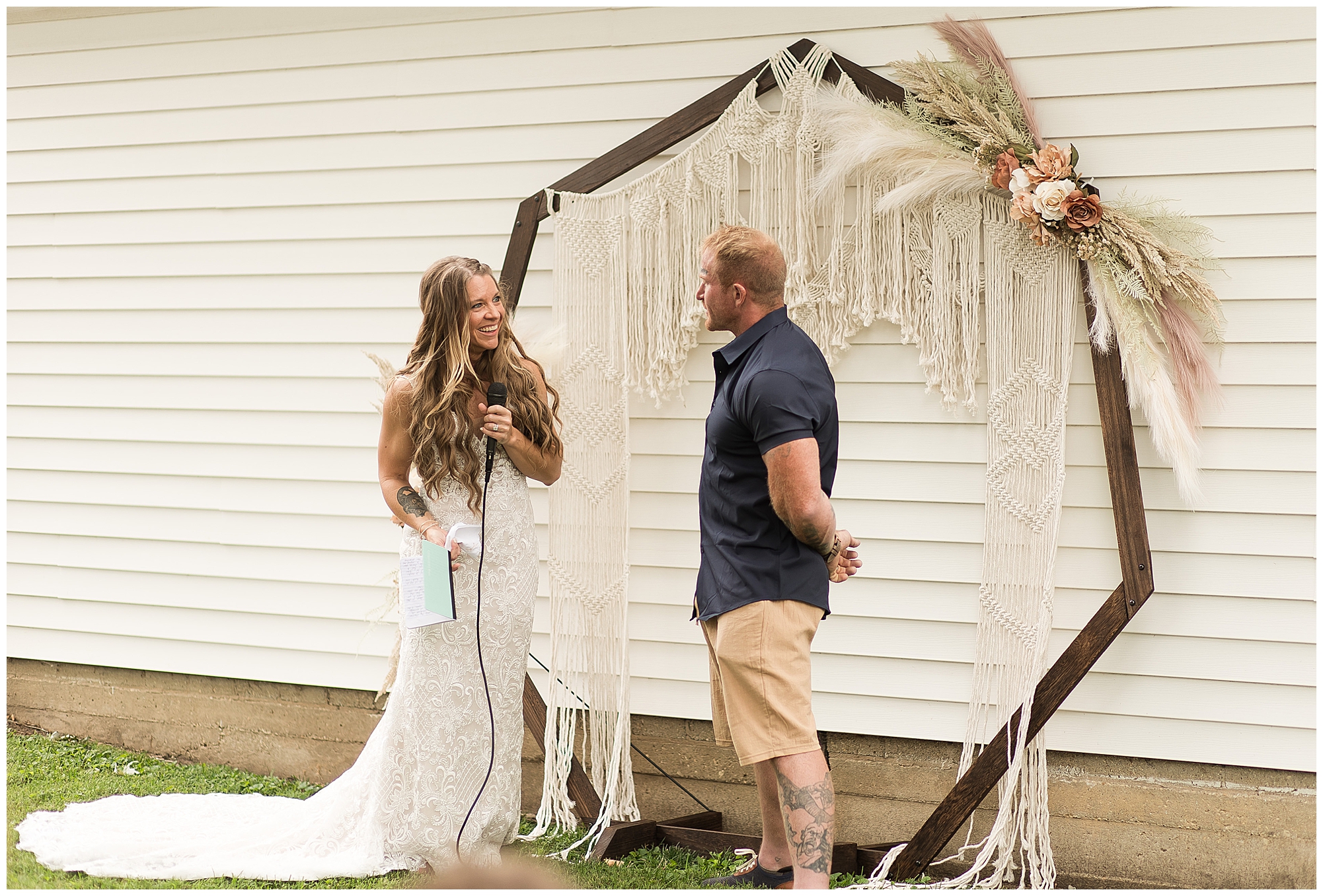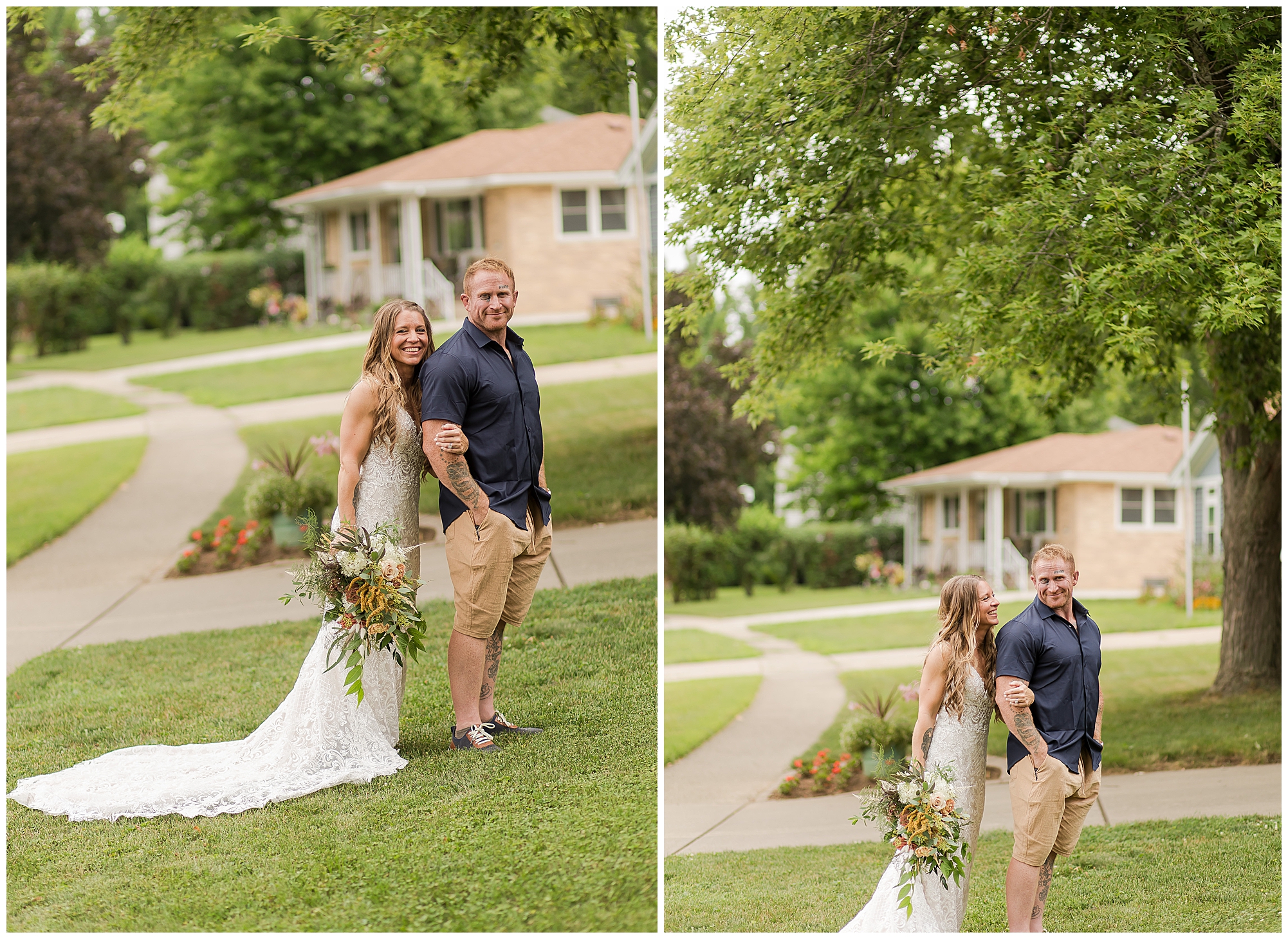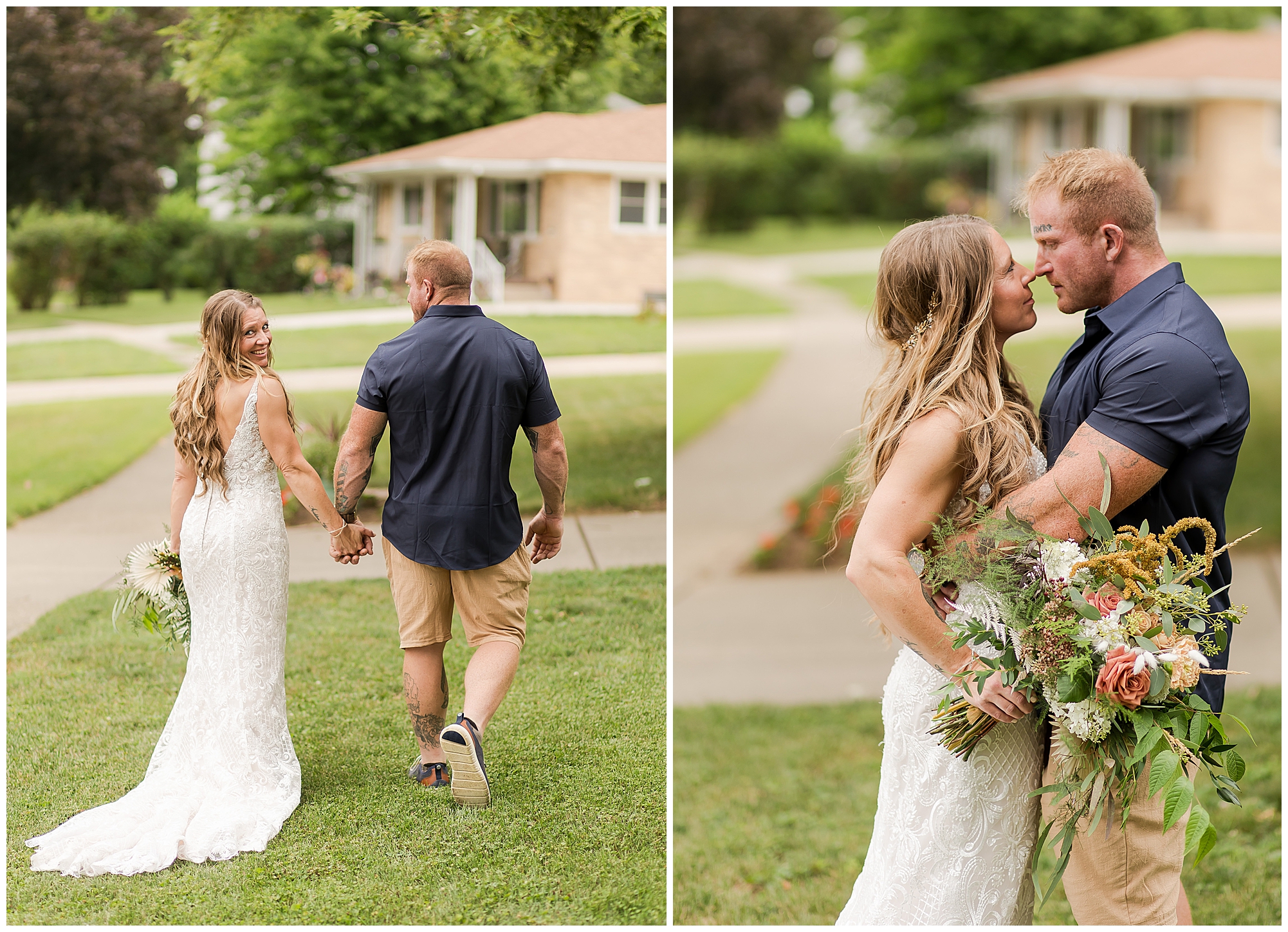 Many of my LWP Couples may recognize Jaime as she peeks out from behind the camera on wedding days with me as a second photographer. But, now it was her turn to get dressed up and commit herself to her long time guy, Steffen. We jokingly called this day her “Non-Wedding, Wedding” as she started out thinking of their commitment ceremony with immediate family in her father’s backyard with her dressed in a simple dress and barefoot. Well, it turned into more of an intimate event, but oh my word was it beautiful! With the help of family and friends, Jaime and Steffen welcomed around 50 loved ones to witness them pledge their love, support, and commitment to each other at her father and step-mother’s home in Springfield, IL. They didn’t feel like they needed a piece of paper to continue their promise of always being there for one another, however they wanted to show the world they were meant to be together forever.