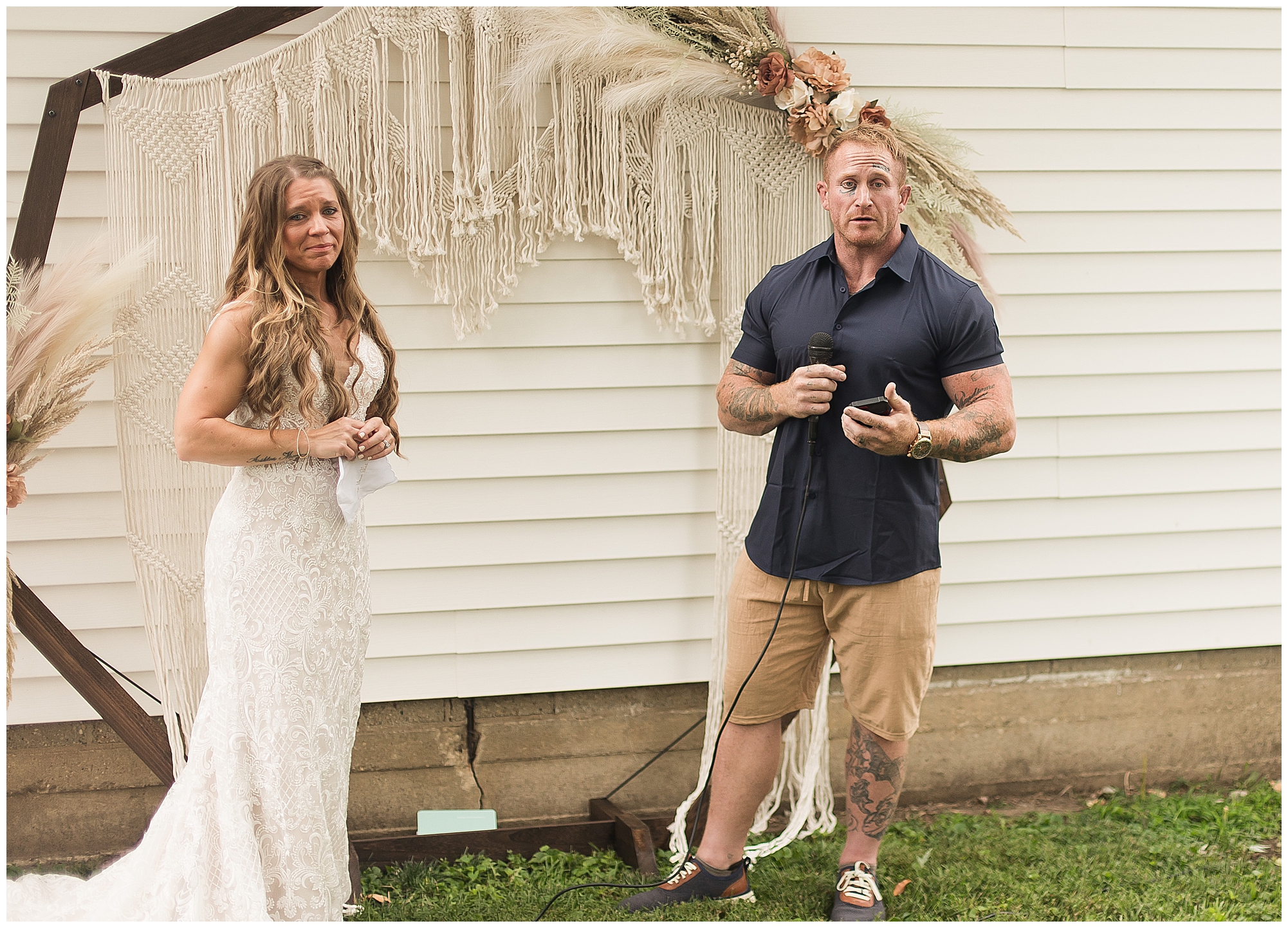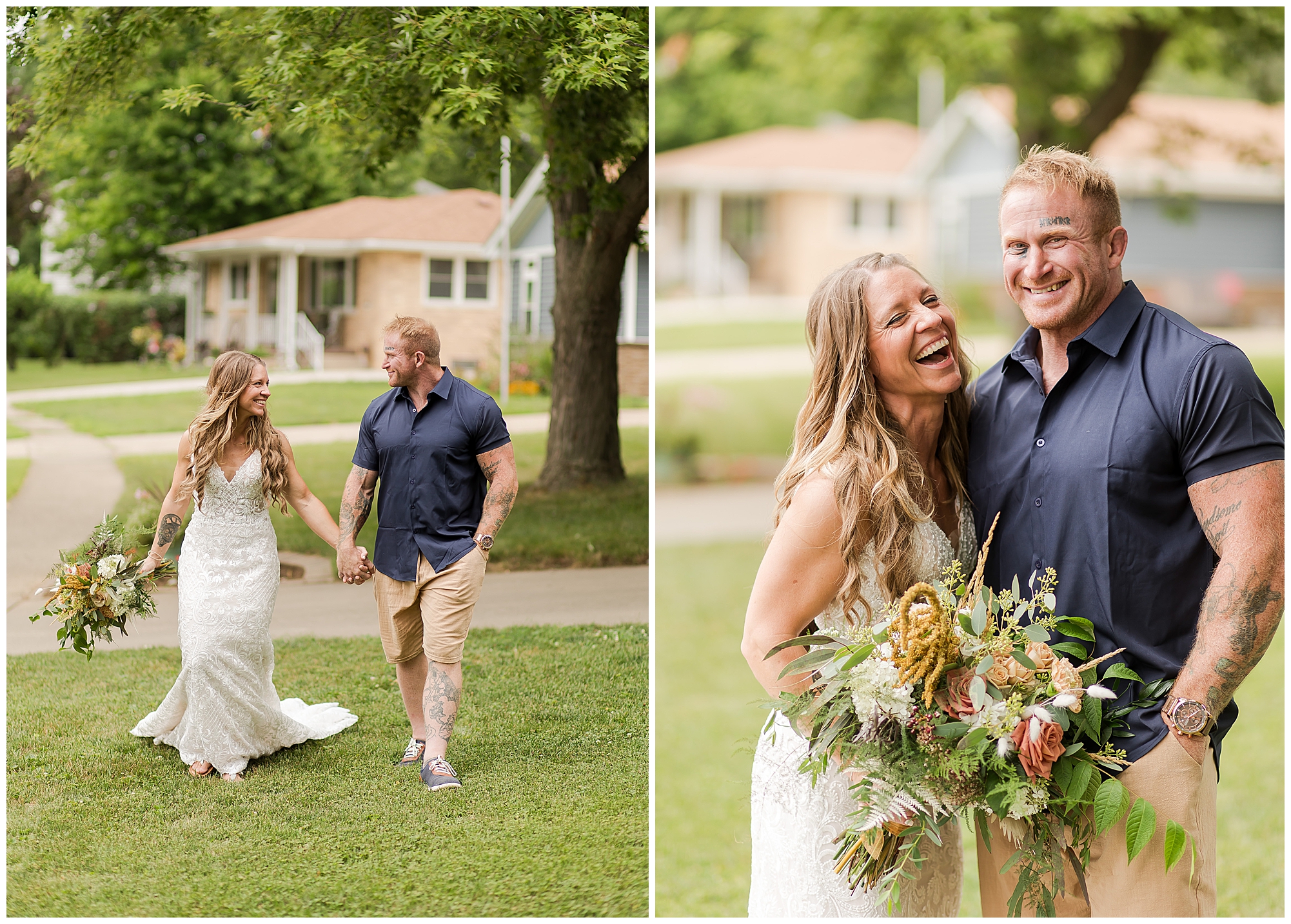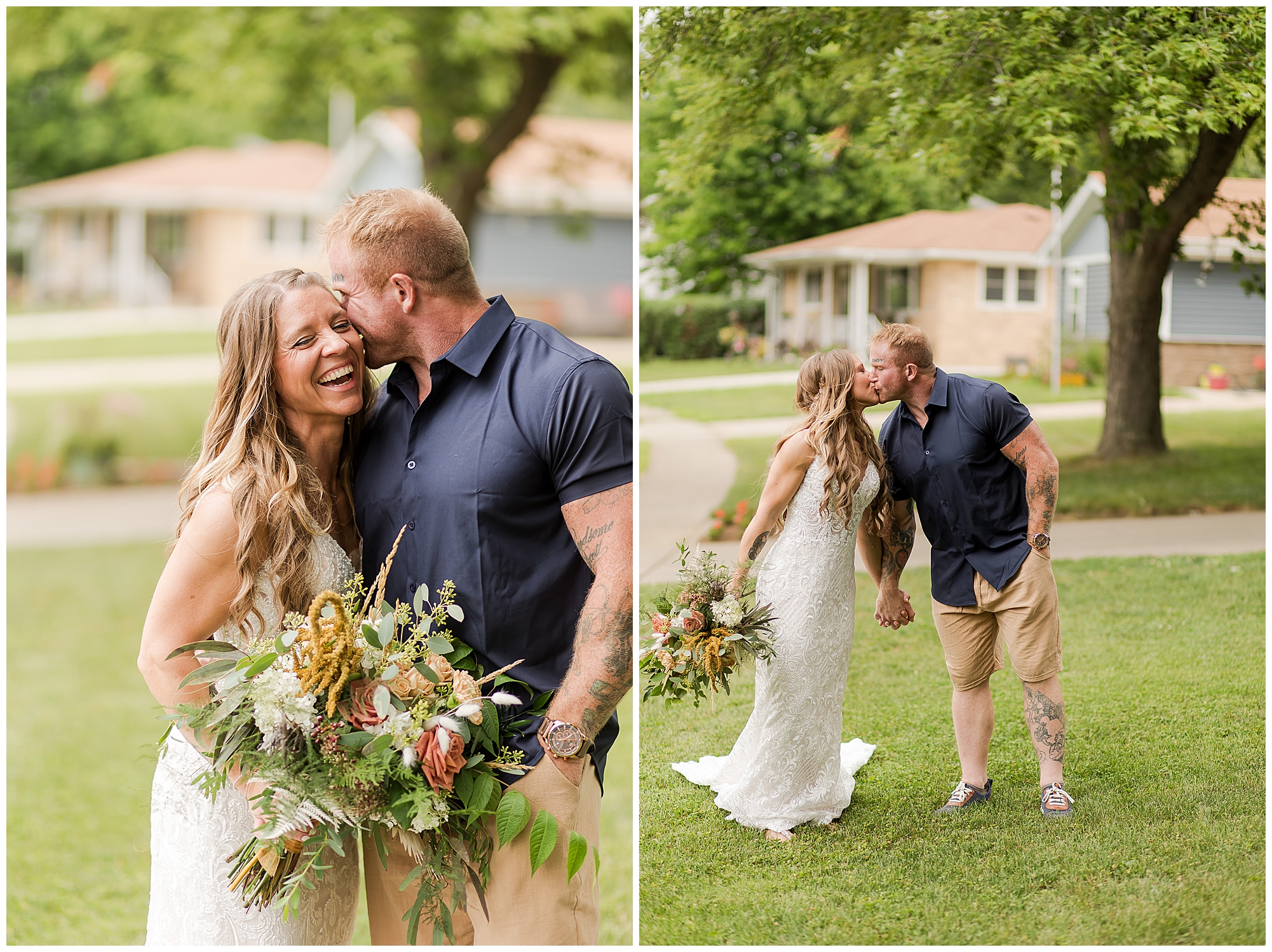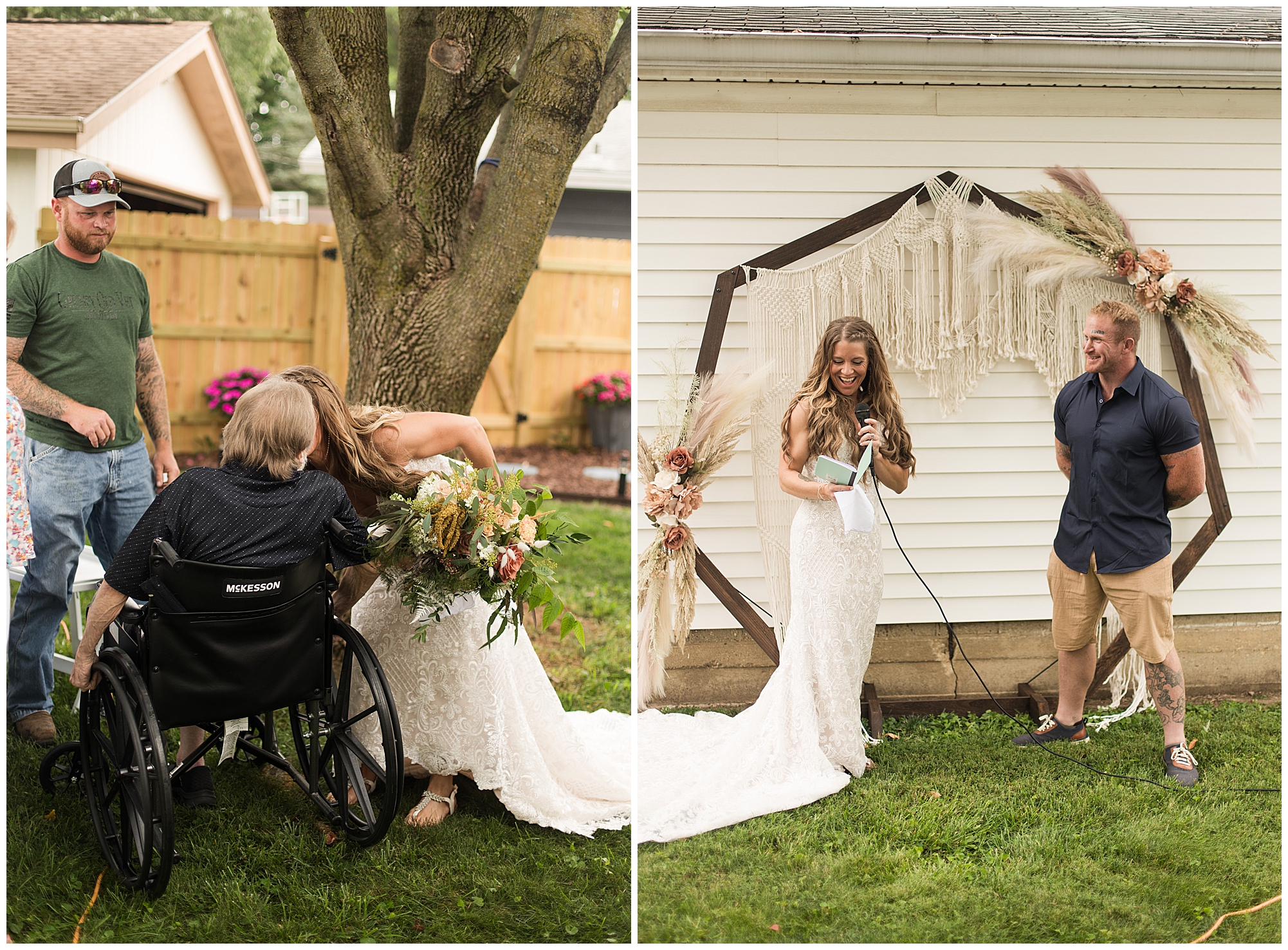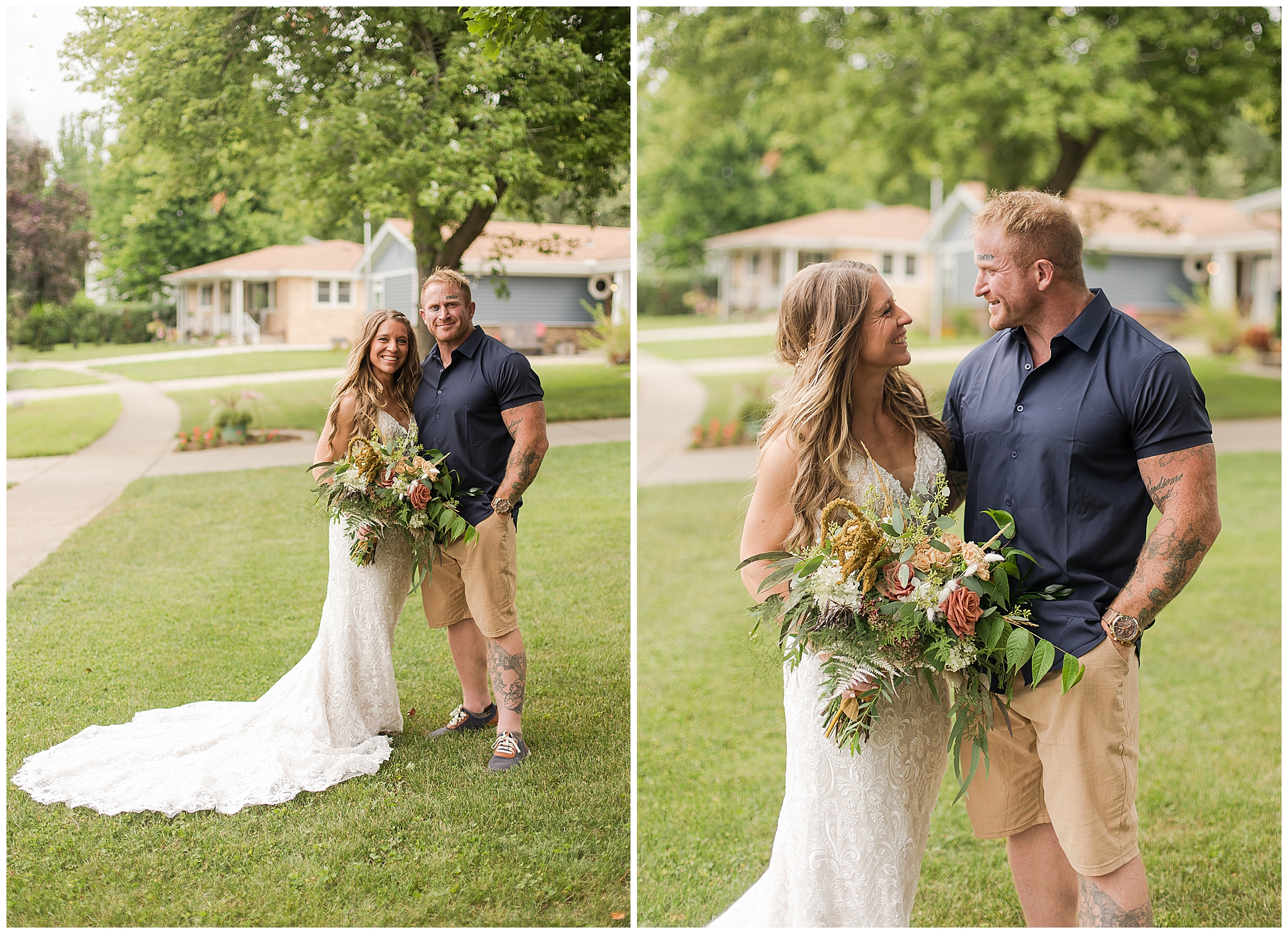 Many of my LWP Couples may recognize Jaime as she peeks out from behind the camera on wedding days with me as a second photographer. But, now it was her turn to get dressed up and commit herself to her long time guy, Steffen. We jokingly called this day her “Non-Wedding, Wedding” as she started out thinking of their commitment ceremony with immediate family in her father’s backyard with her dressed in a simple dress and barefoot. Well, it turned into more of an intimate event, but oh my word was it beautiful! With the help of family and friends, Jaime and Steffen welcomed around 50 loved ones to witness them pledge their love, support, and commitment to each other at her father and step-mother’s home in Springfield, IL. They didn’t feel like they needed a piece of paper to continue their promise of always being there for one another, however they wanted to show the world they were meant to be together forever.