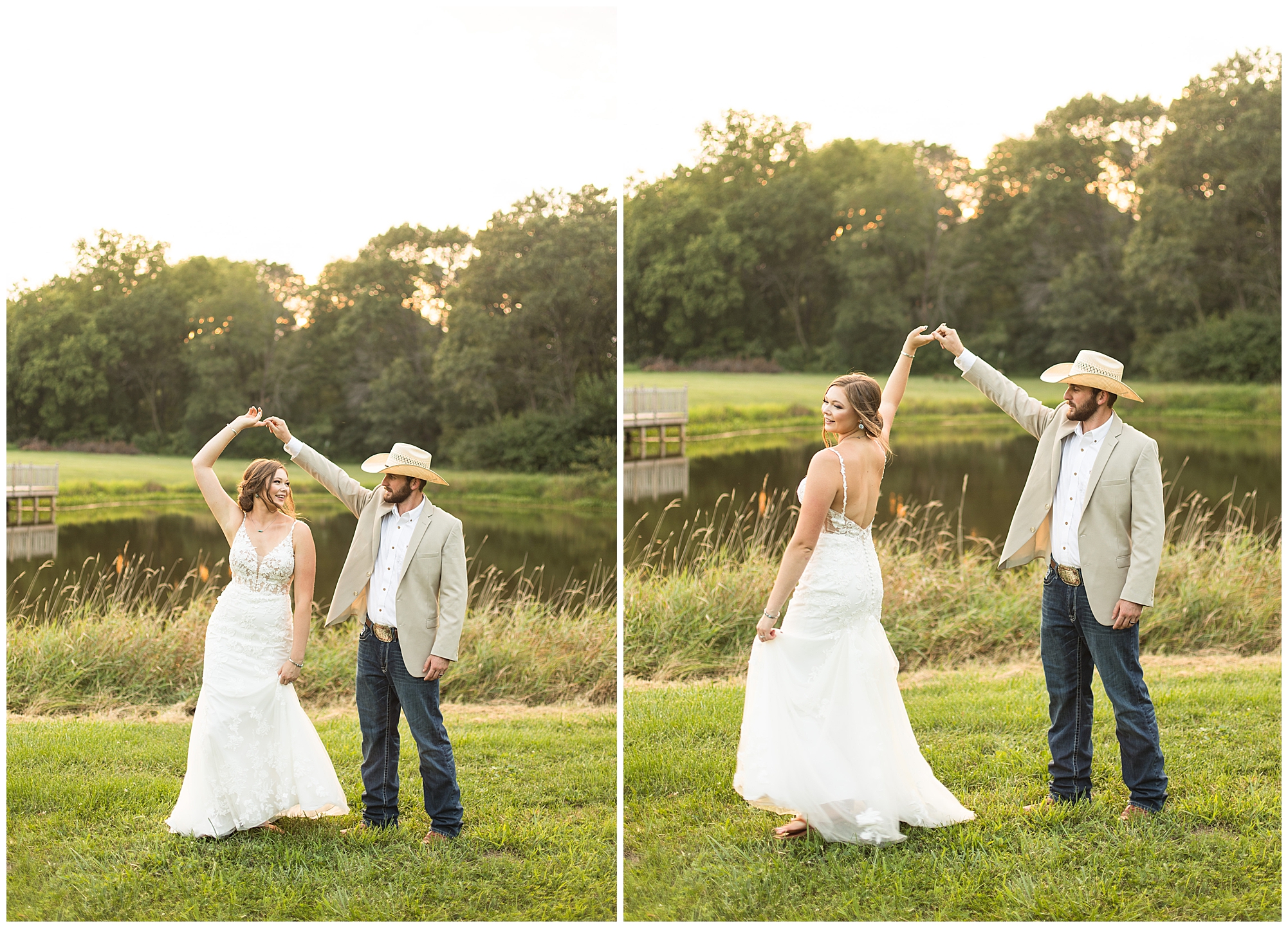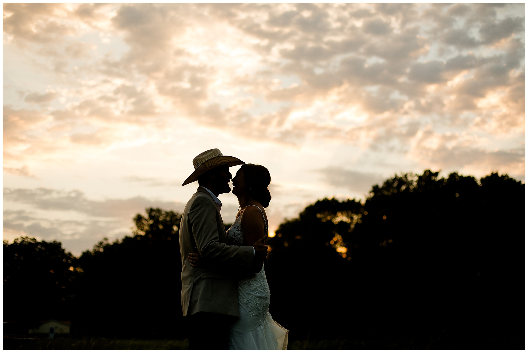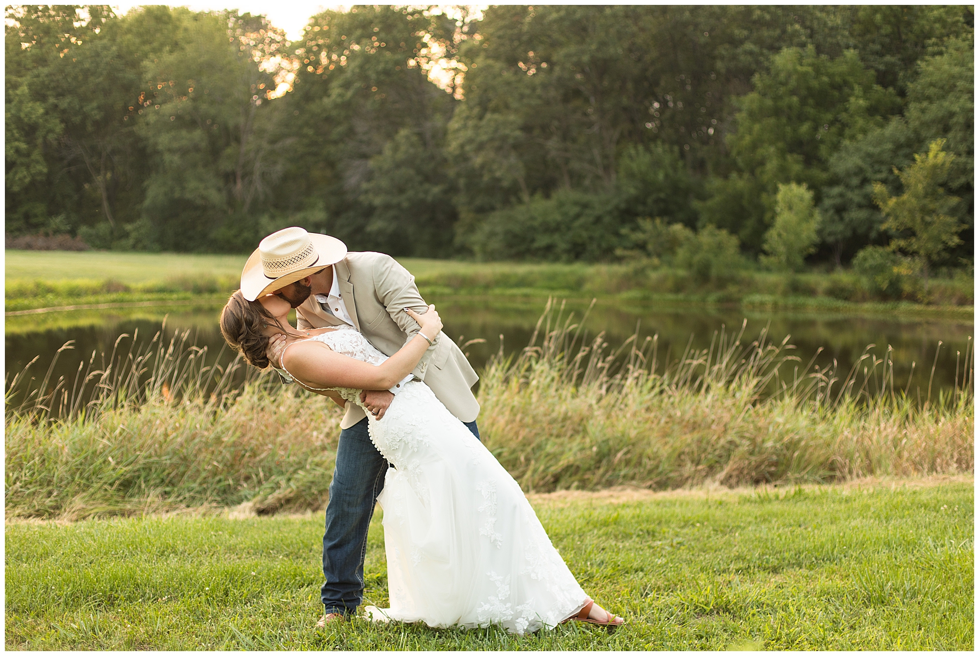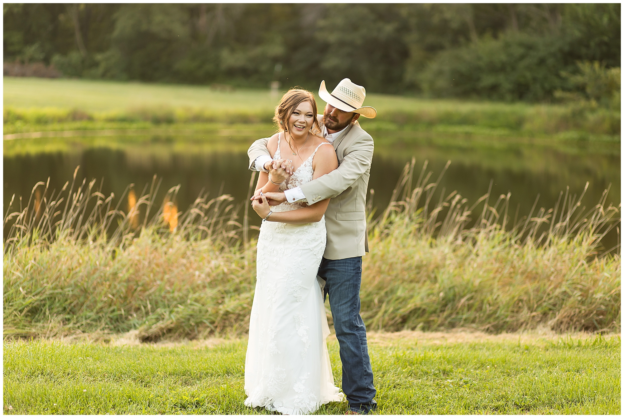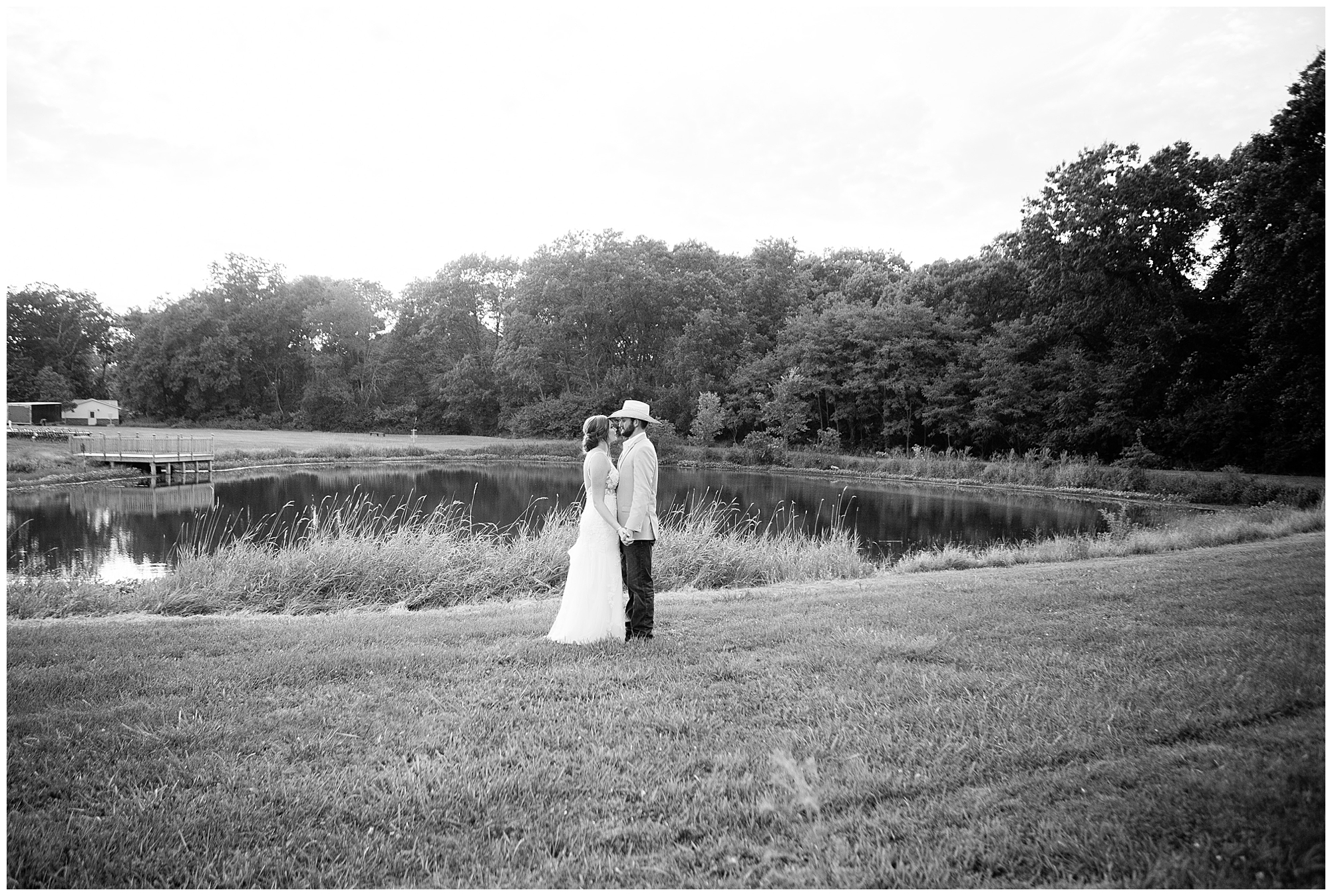 Before we knew it, the ceremony was upon us. Their nuptials took place right in front of a tree-lined pond surrounded by their loved ones. Becca’s dad walked her down the aisle as Trace held back his emotions. Many graceful words were spoken, rings were exchanged, and they sealed their love with a kiss. Congrats to the new Mr. & Mrs. Huston! They exited to their getaway vehicle, a semi-truck from the farm where Trace works. Their guests stood and watched as they rode off and Trace gave them a big honk from the cab! When they returned we finished up family formals before they entered into their reception. Their decor consisted of centerpieces of mason jars filled with wheat along with other florals, windmills (similar to the one found during their engagement session), and cows which these two adore. I mean come on did you peep Becca’s nails?! They were showered with blessings during their toasts, took a few spins around the dance floor with each other and family, and just spent every moment enjoying their evening. Before I let them go for the day, however, I had to steal them for a few sunset photos. We had been waiting for the perfect lighting around the pond and this was it! The pure joy these two had in one another’s arms was something magical. I feel so incredibly blessed to have captured it all! I’m sending all my blessings to the new Mr. & Mrs. Huston!