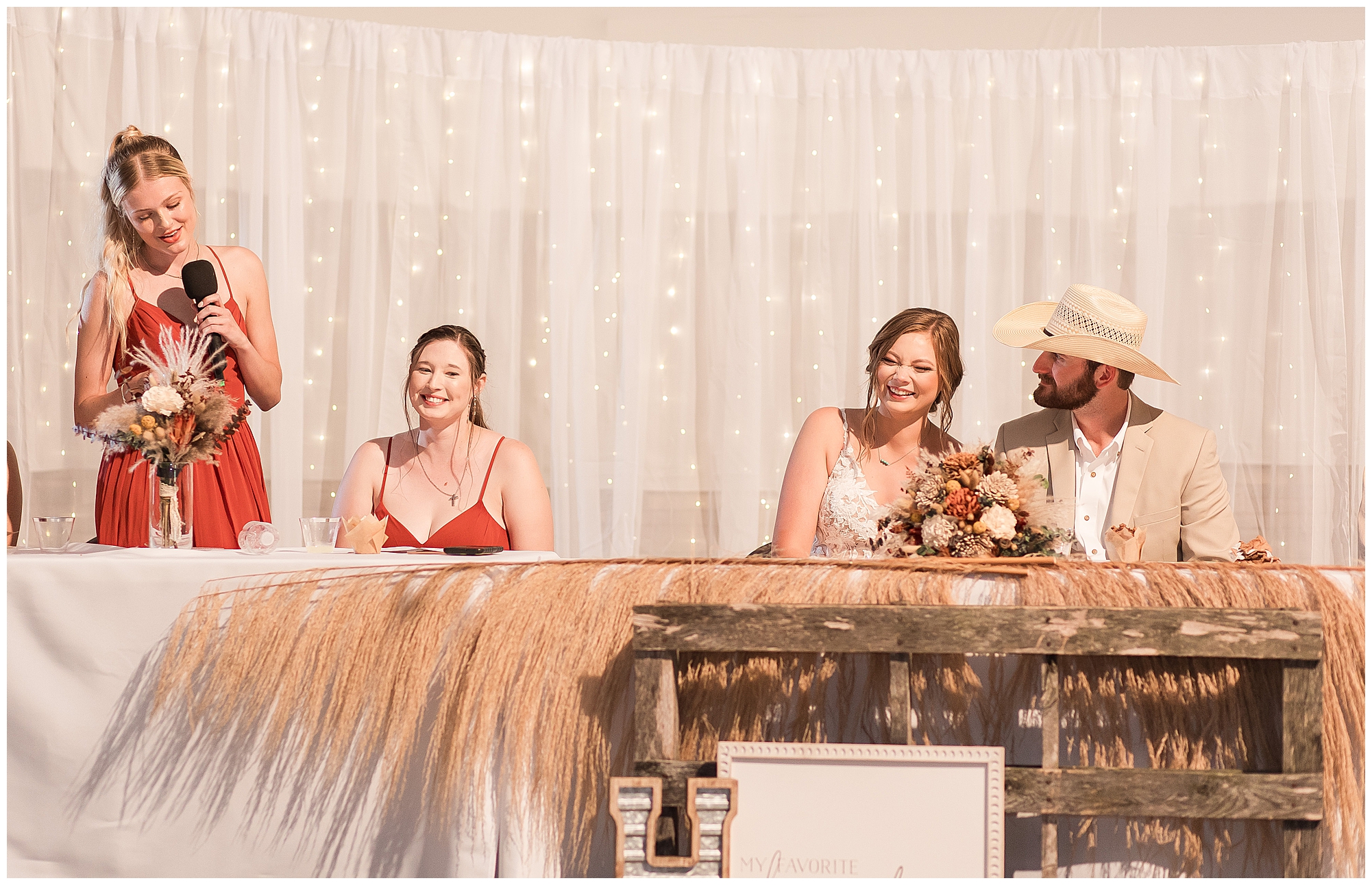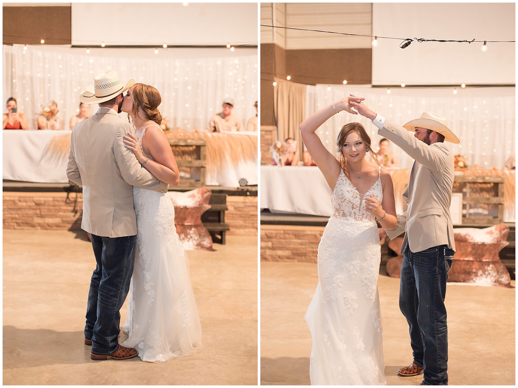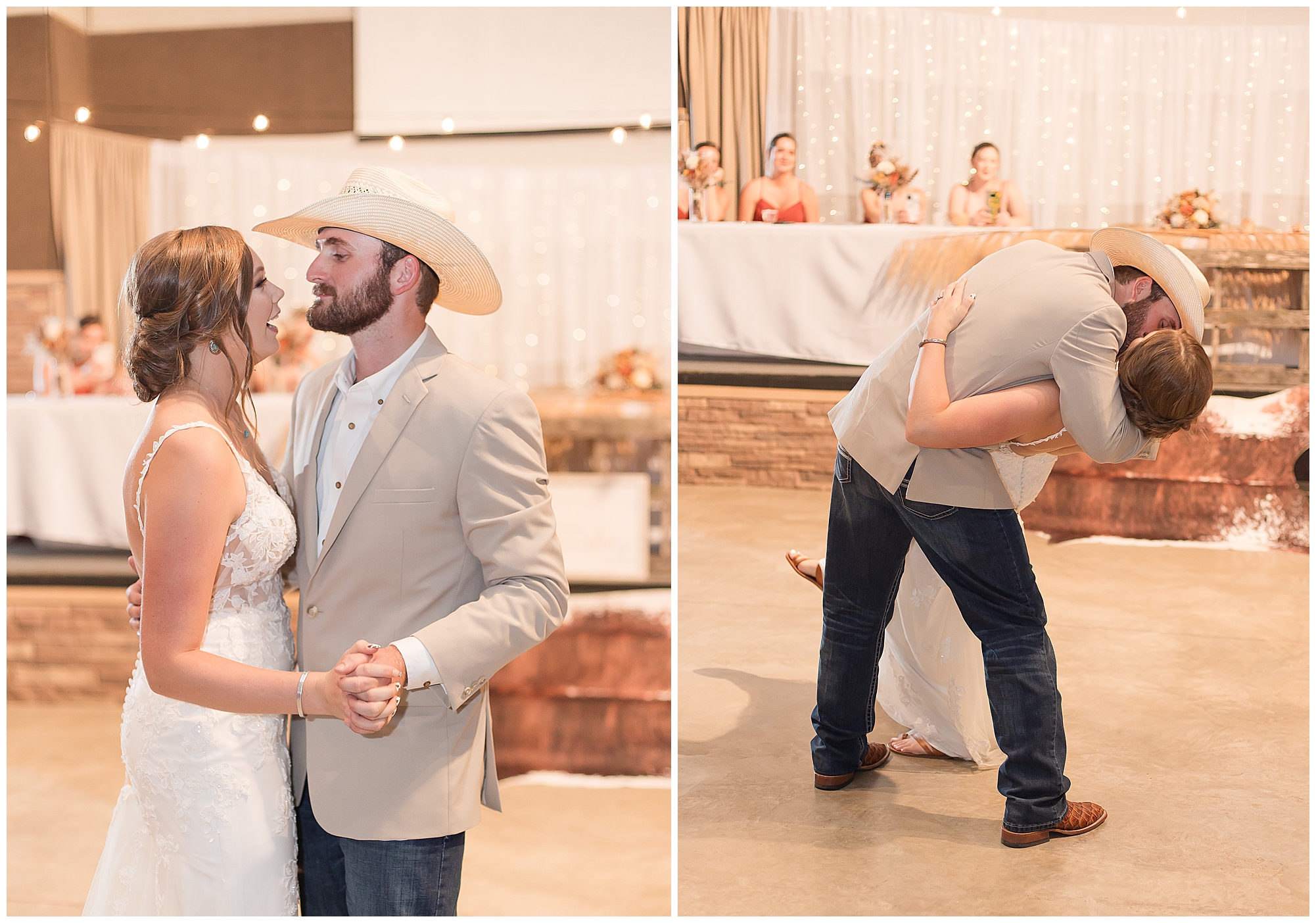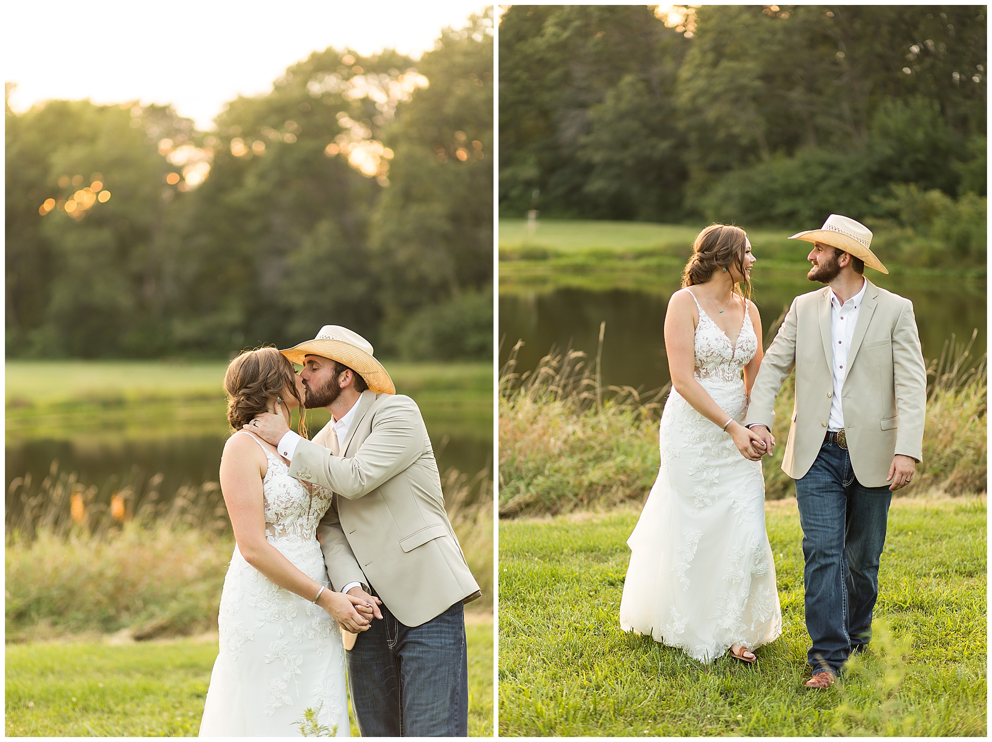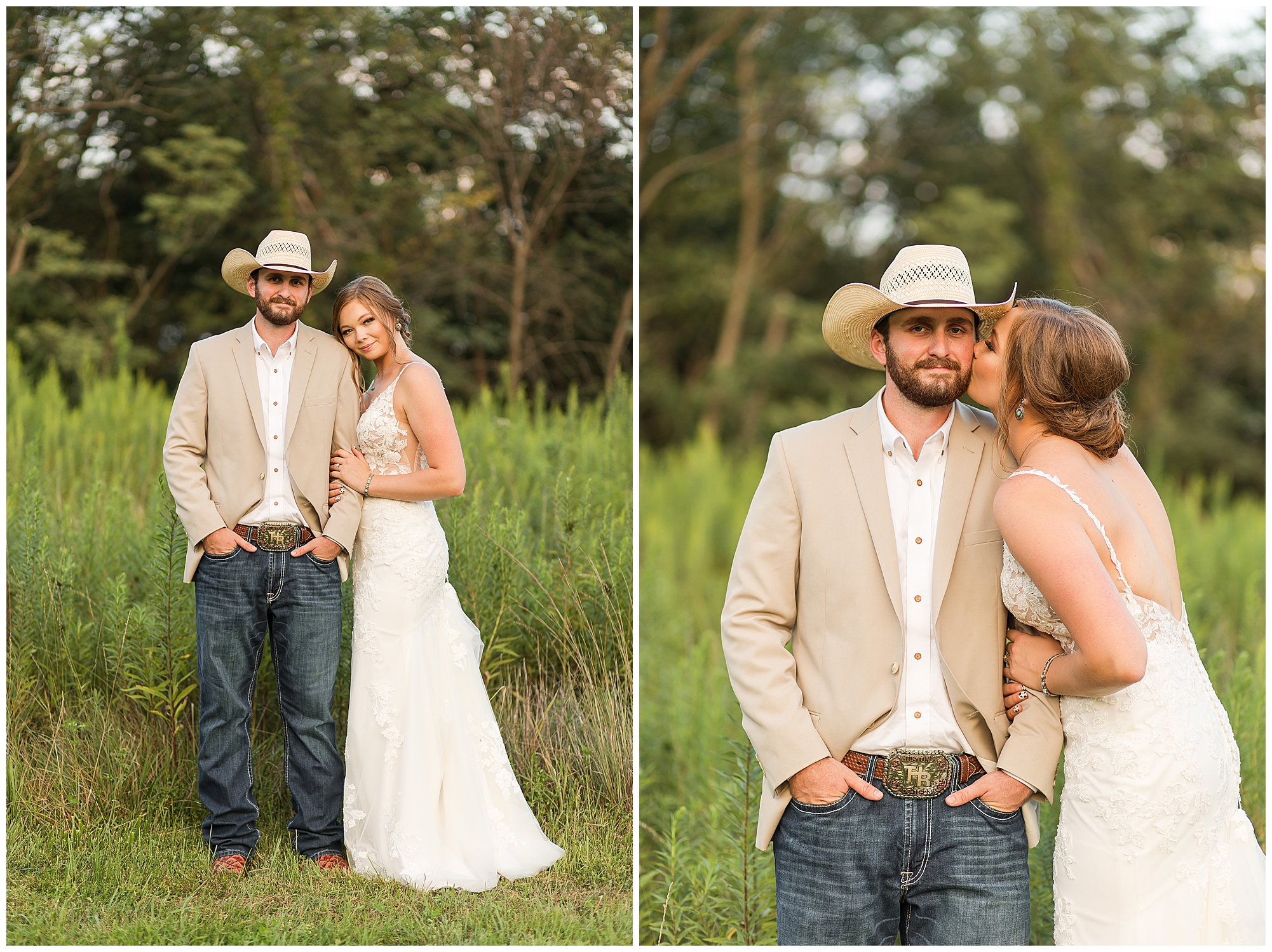 Before we knew it, the ceremony was upon us. Their nuptials took place right in front of a tree-lined pond surrounded by their loved ones. Becca’s dad walked her down the aisle as Trace held back his emotions. Many graceful words were spoken, rings were exchanged, and they sealed their love with a kiss. Congrats to the new Mr. & Mrs. Huston! They exited to their getaway vehicle, a semi-truck from the farm where Trace works. Their guests stood and watched as they rode off and Trace gave them a big honk from the cab! When they returned we finished up family formals before they entered into their reception. Their decor consisted of centerpieces of mason jars filled with wheat along with other florals, windmills (similar to the one found during their engagement session), and cows which these two adore. I mean come on did you peep Becca’s nails?! They were showered with blessings during their toasts, took a few spins around the dance floor with each other and family, and just spent every moment enjoying their evening. Before I let them go for the day, however, I had to steal them for a few sunset photos. We had been waiting for the perfect lighting around the pond and this was it! The pure joy these two had in one another’s arms was something magical. I feel so incredibly blessed to have captured it all! I’m sending all my blessings to the new Mr. & Mrs. Huston!