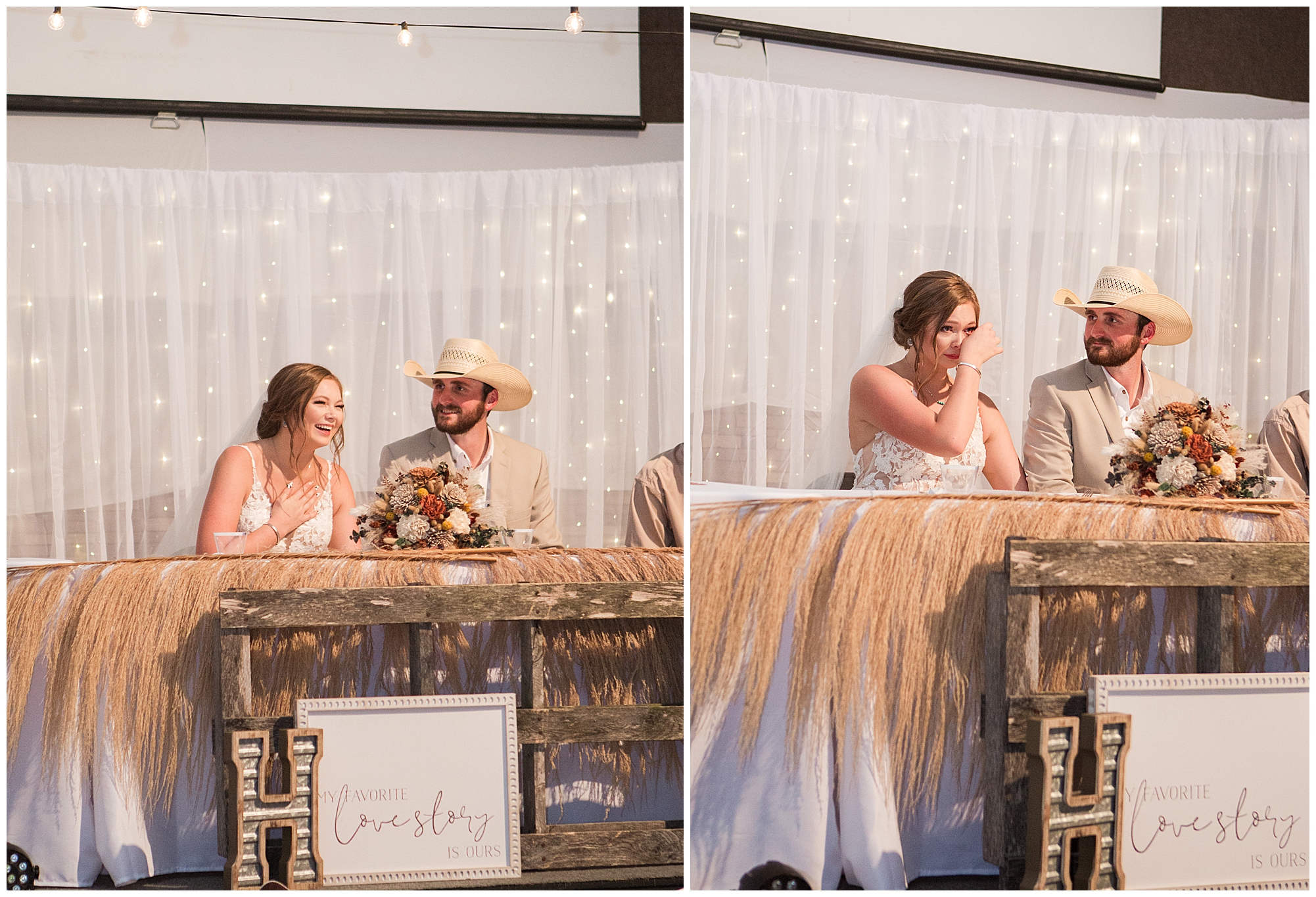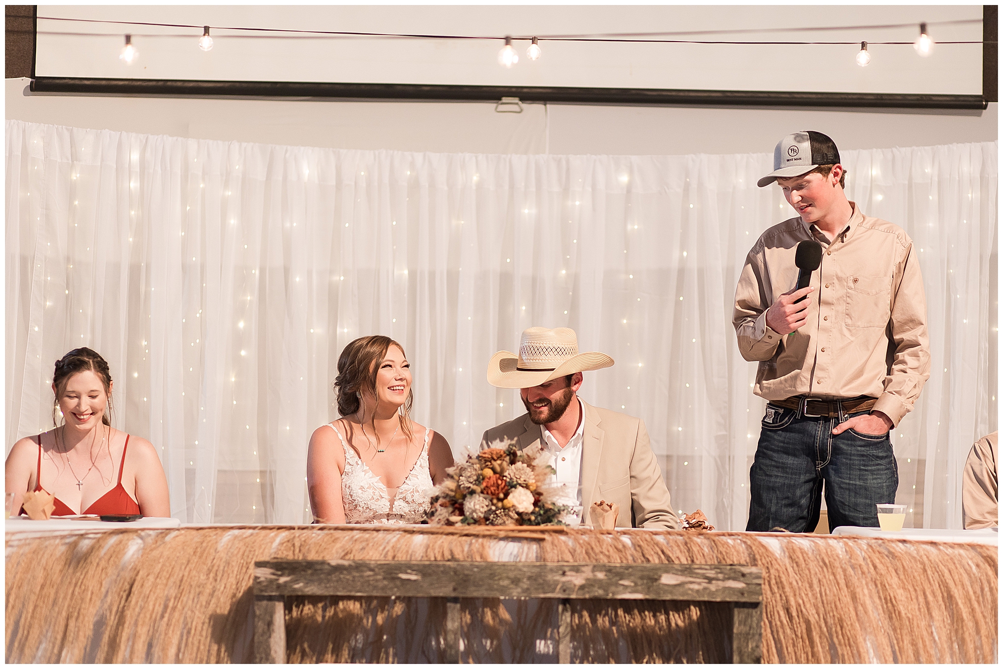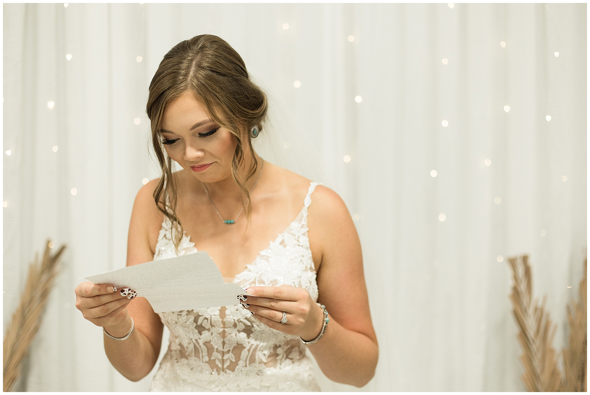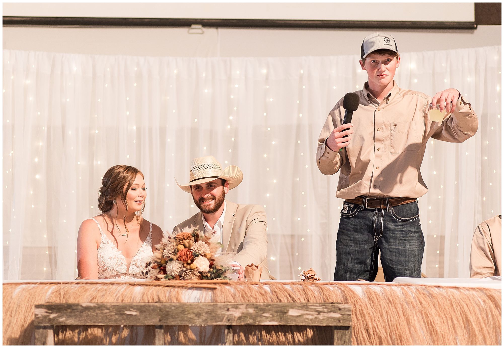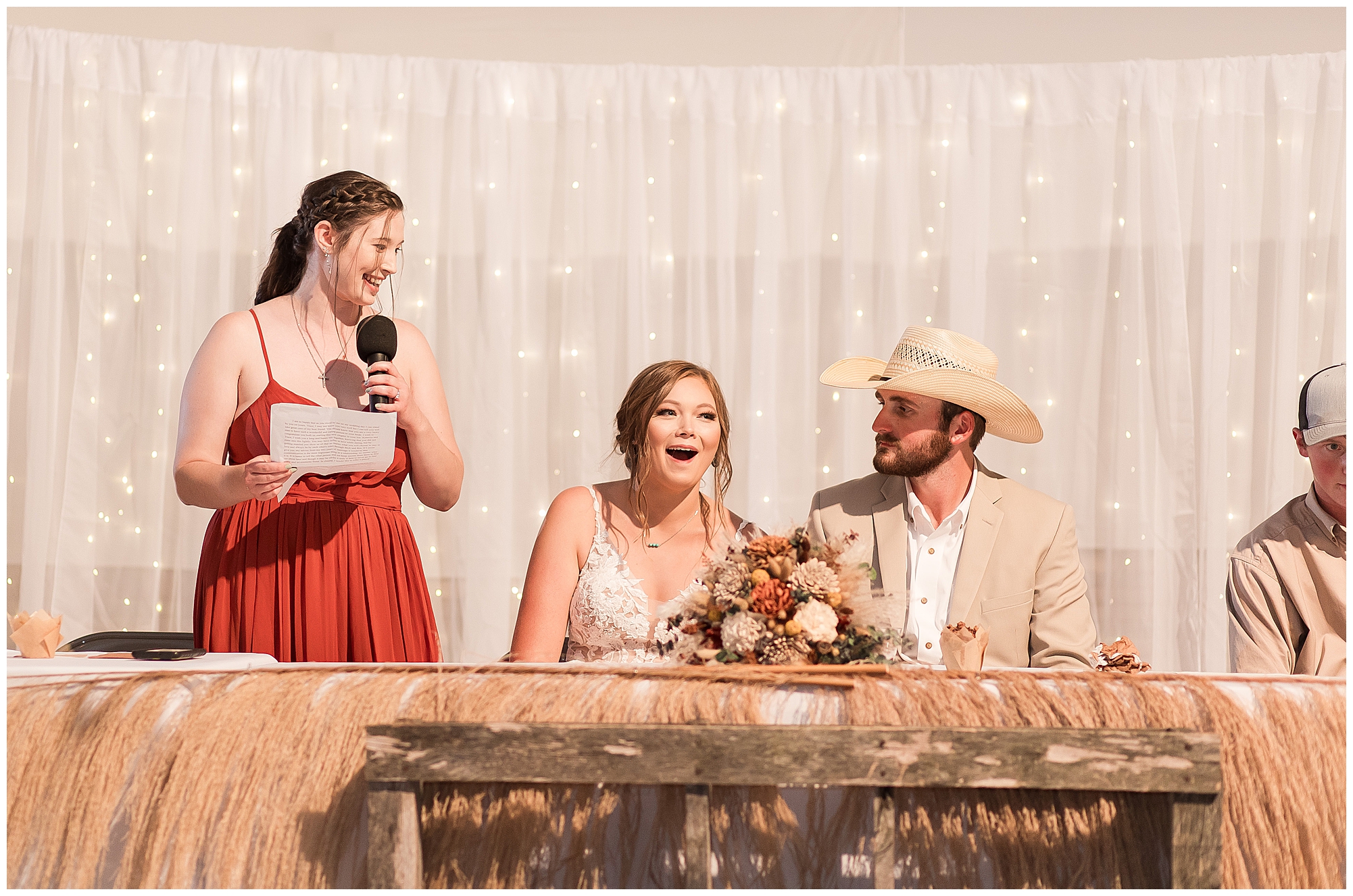 Before we knew it, the ceremony was upon us. Their nuptials took place right in front of a tree-lined pond surrounded by their loved ones. Becca’s dad walked her down the aisle as Trace held back his emotions. Many graceful words were spoken, rings were exchanged, and they sealed their love with a kiss. Congrats to the new Mr. & Mrs. Huston! They exited to their getaway vehicle, a semi-truck from the farm where Trace works. Their guests stood and watched as they rode off and Trace gave them a big honk from the cab! When they returned we finished up family formals before they entered into their reception. Their decor consisted of centerpieces of mason jars filled with wheat along with other florals, windmills (similar to the one found during their engagement session), and cows which these two adore. I mean come on did you peep Becca’s nails?! They were showered with blessings during their toasts, took a few spins around the dance floor with each other and family, and just spent every moment enjoying their evening. Before I let them go for the day, however, I had to steal them for a few sunset photos. We had been waiting for the perfect lighting around the pond and this was it! The pure joy these two had in one another’s arms was something magical. I feel so incredibly blessed to have captured it all! I’m sending all my blessings to the new Mr. & Mrs. Huston!