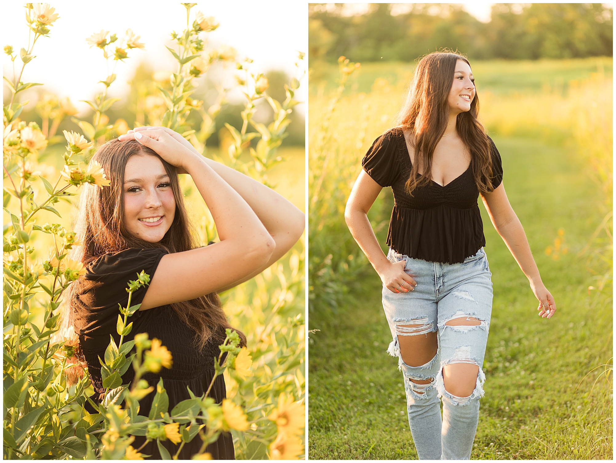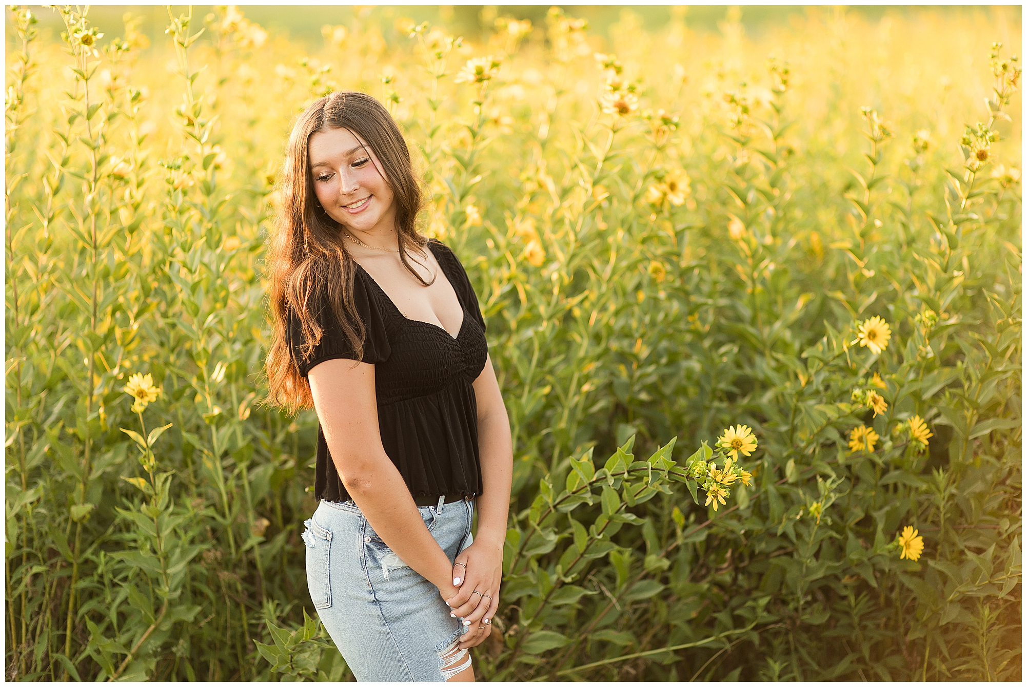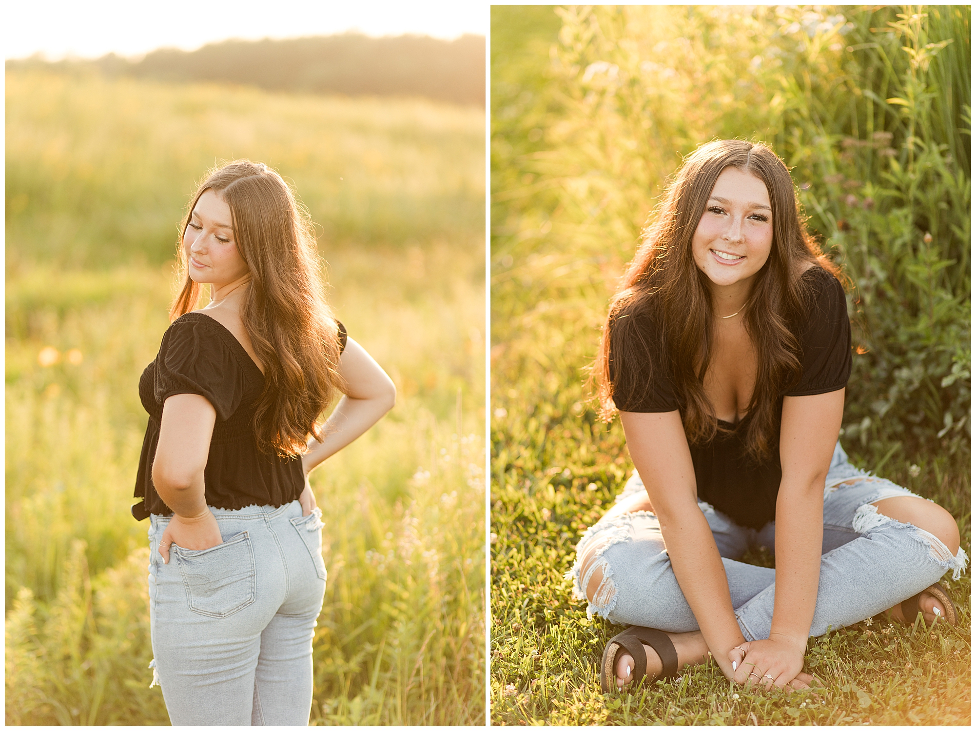Before the sun dropped below the horizon, Aubrie did a quick outfit change to classic blue jeans and a black top. She was absolutely beautiful up against the country landscaping during golden hour and didn’t miss a beat as we wandered around. I have adored having Aubrie on the team this year and I hope she enjoys every moment of her senior year!