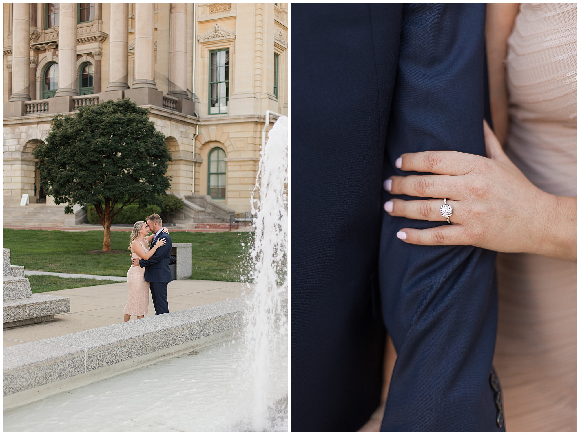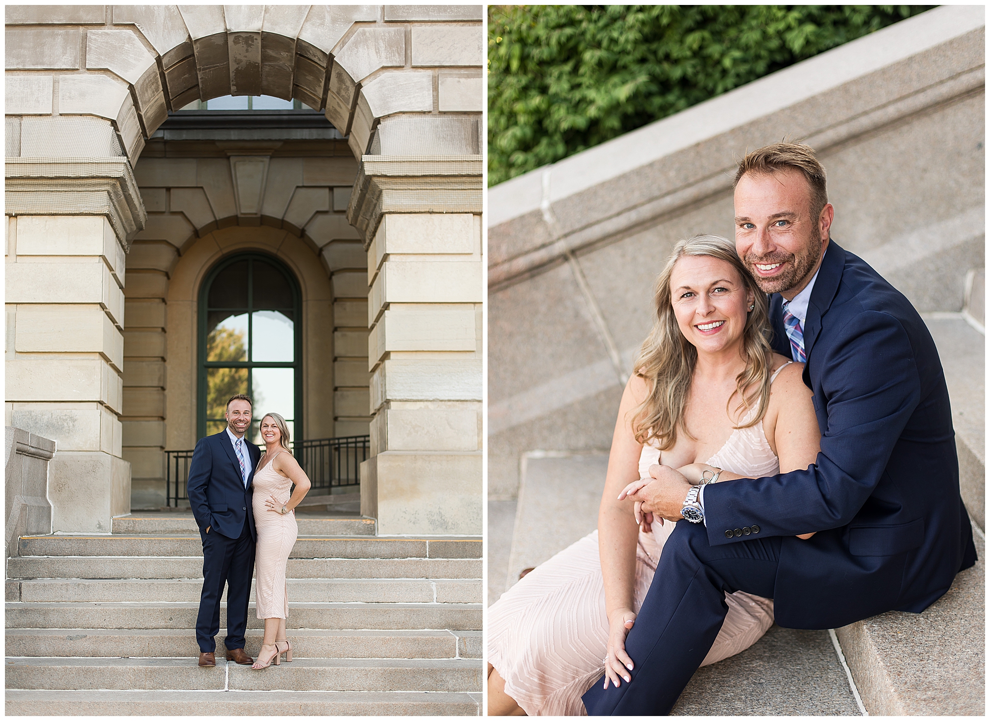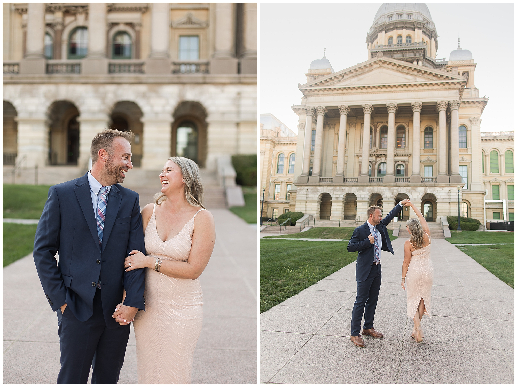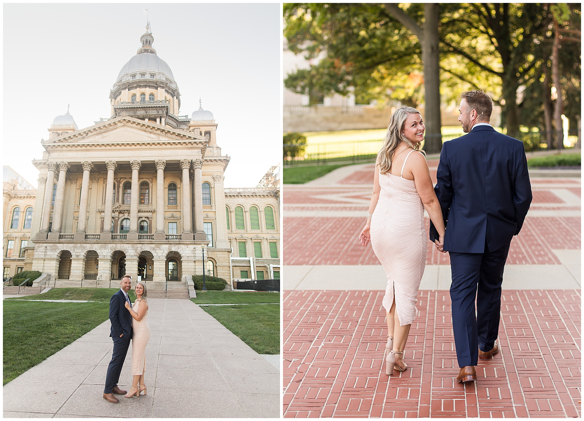 I met up with Lisa and Greg for their engagement session on a beautiful fall evening on the steps of the Illinois State Capitol. Lisa loved the idea of incorporating amazing architecture into their photos so this of course was a great place to start. I’ve known Lisa for years now, photographing her and her handsome son, Landon. And meeting Greg when they started dating was very fun to see them all together over the last couple of years. Apparently, they knew each other back in high school, but the timing was never right in life until now. Lisa and Greg don’t take life too seriously so there are lots of laughs when they are together. They are a roll with it kinda couple and that’s what I love about them so much! When Lisa reached out to me about wedding photos, she and Greg were expecting their little girl, Madeline, who is now one! They are planning a lovely spring wedding next year and I’m thrilled to be a part of it!