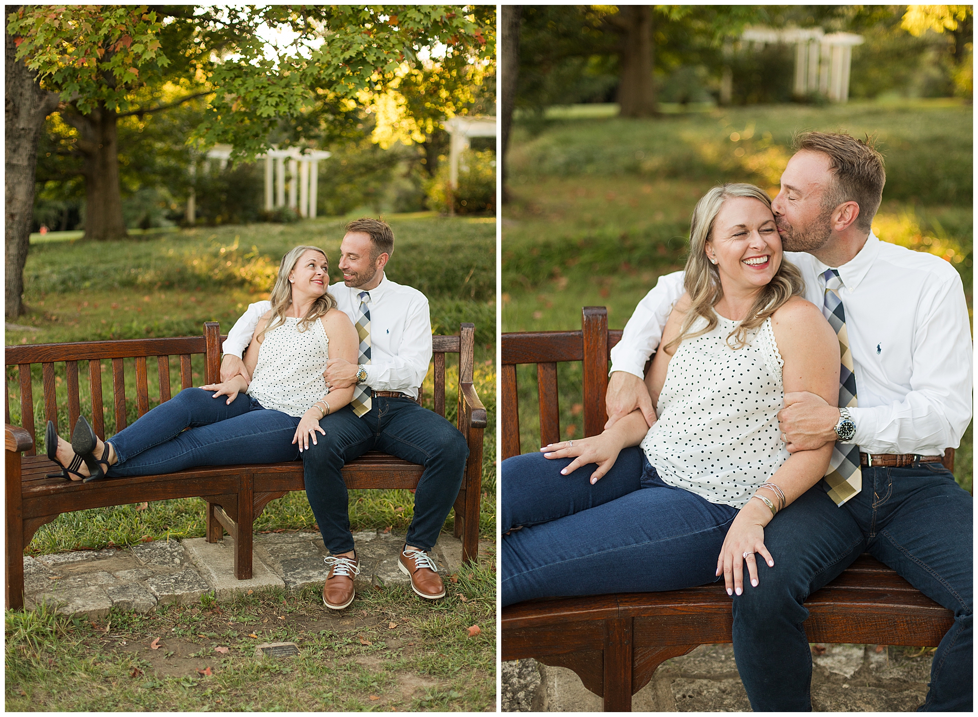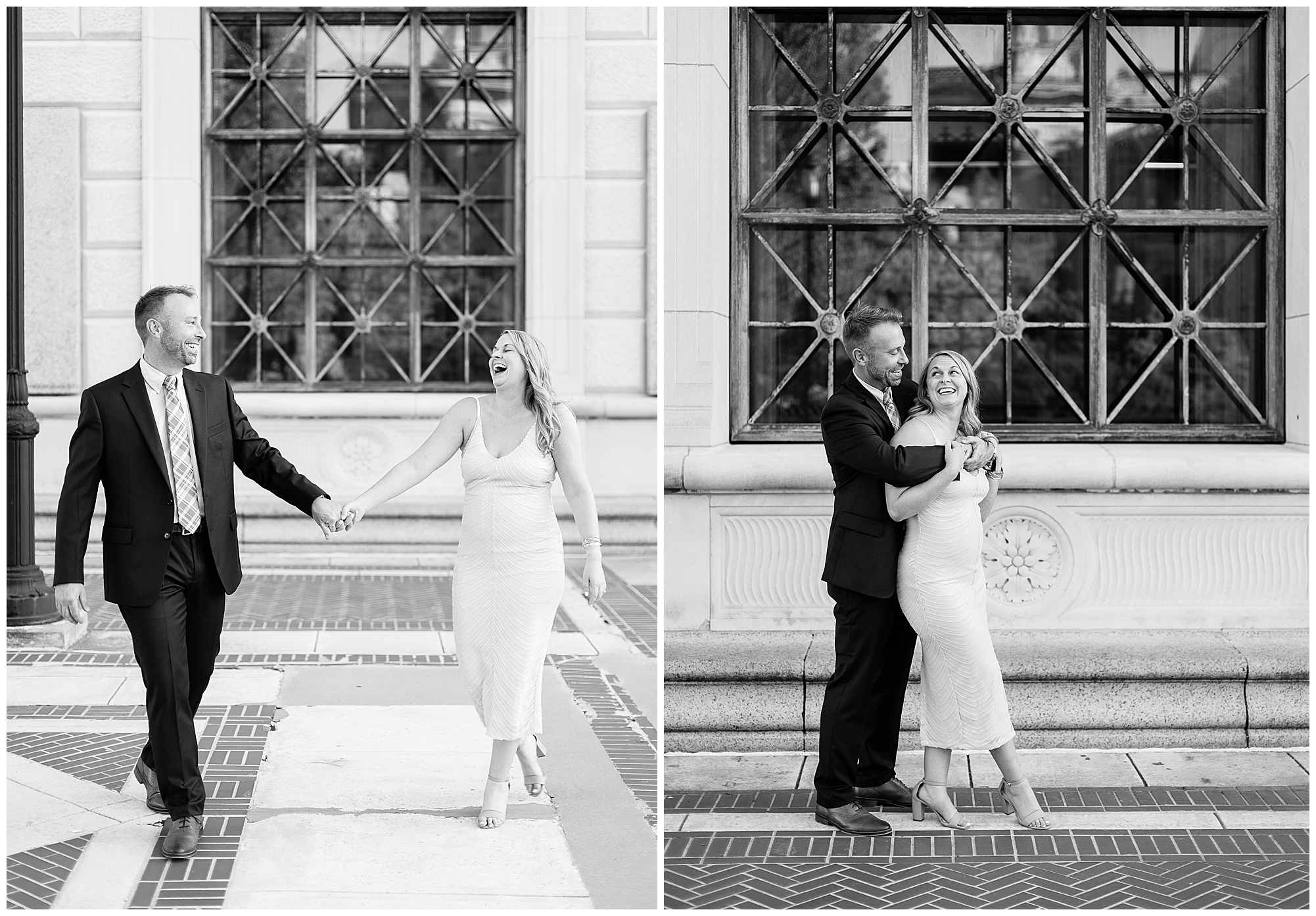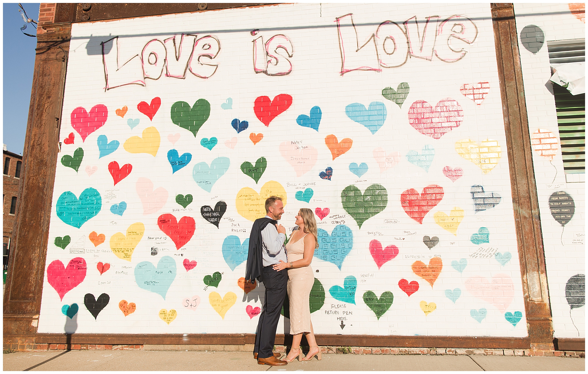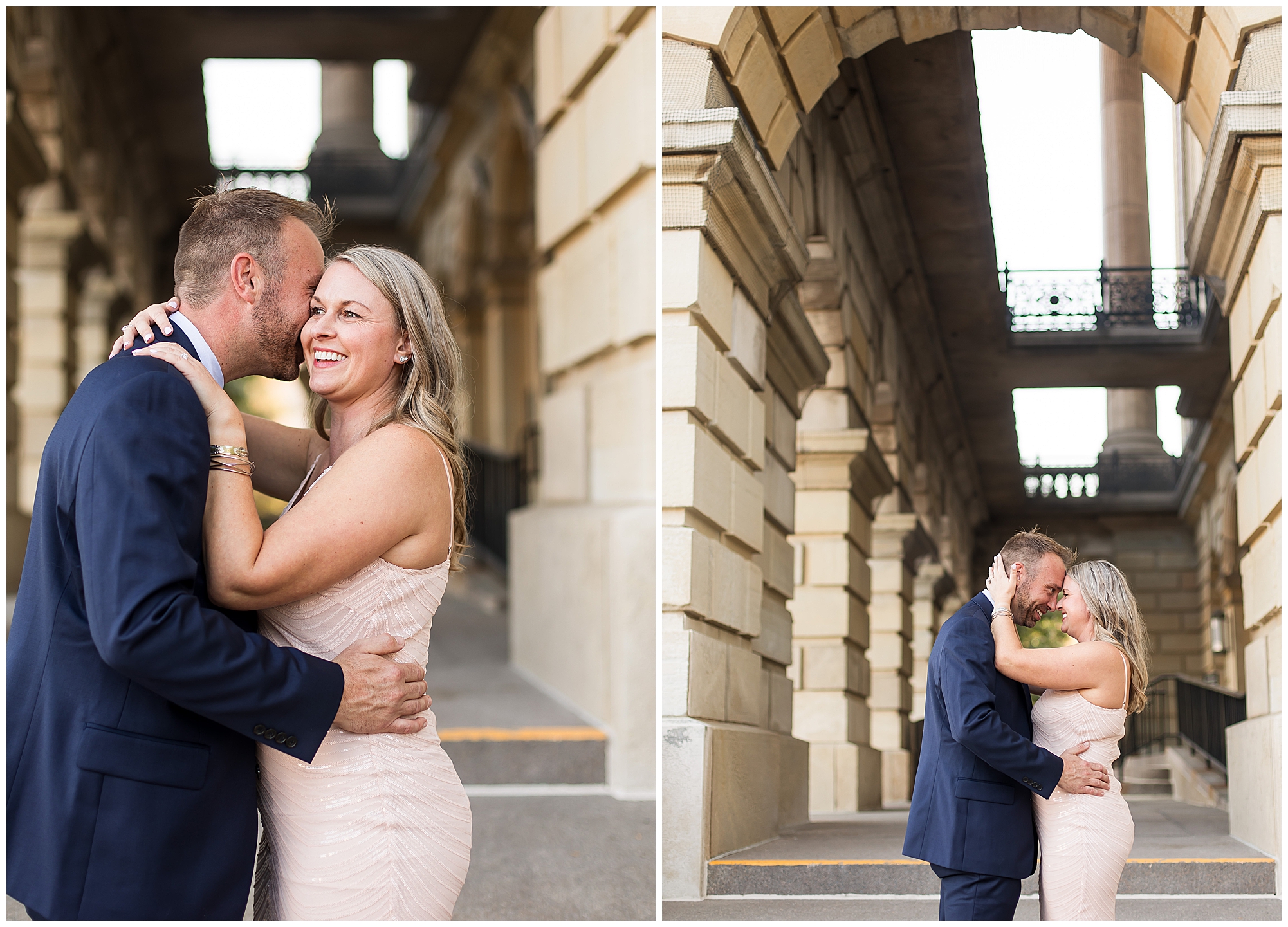 For their engagement session, Lisa and Greg had a few stops in mind other than the State Capitol. After we wandered around the capitol grounds with Lisa looking gorgeous in a pink dress with a few shimmering touches and Greg looking fancy in a navy suit, we headed over to a spot where they made their mark before they got engaged. In an alleyway outside of one of their favorite watering holes, J.P. Kelly’s, there is a heart mural where couples write their names to show off their love. Once we snagged a few photos there, we then made our way over to the Govenor’s Mansion for some fun with Lisa and Greg with the wrought iron fence and historic lamp posts. Greg is always looking out for Lisa, holding her hand as they walked to the next spot or making sure she safely makes it up the stairs. He even opens and closes the car door for her. Chivalry is not dead, people! We finished up together, at Washington Park to capture these two as the foliage was in the beginning stages of change. The light was glowy and Lisa and Greg dressed a bit more casual, but still took plenty of opportunities to snuggle in tight. I loved capturing this delightful couple before their nuptials next year! This is definitely one I’m super excited about!