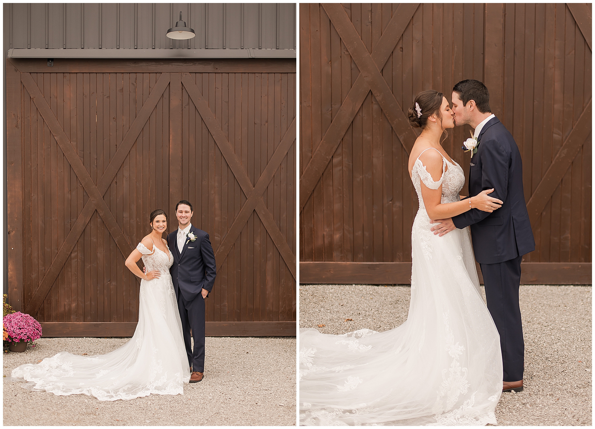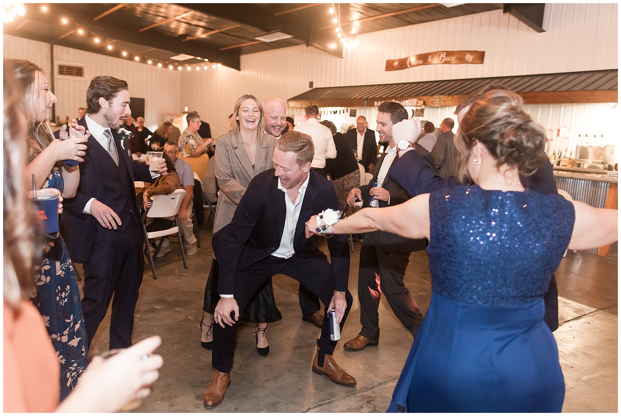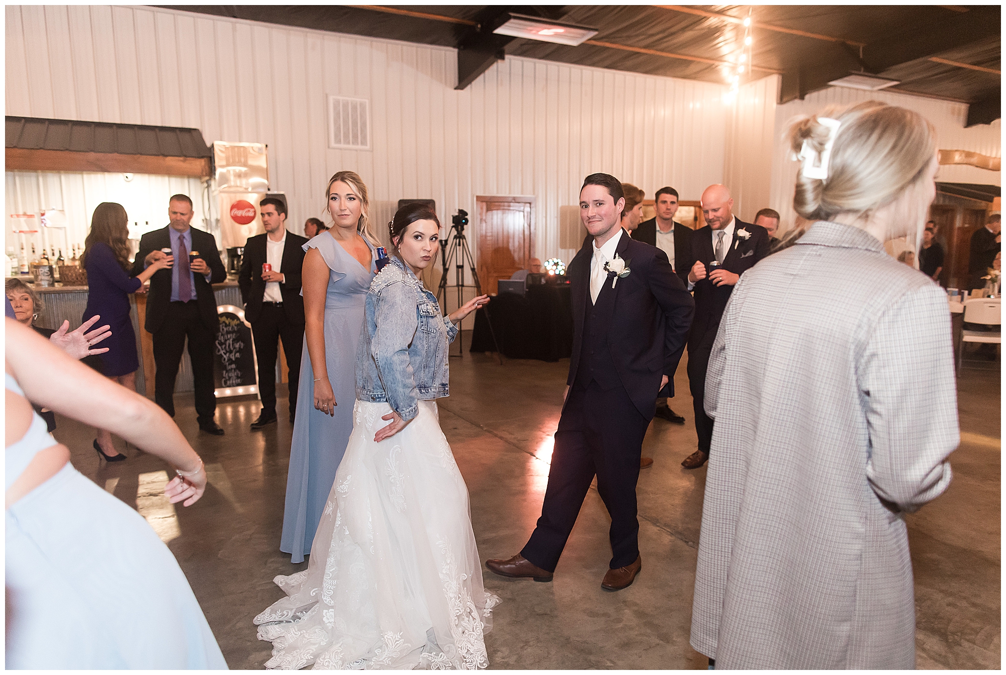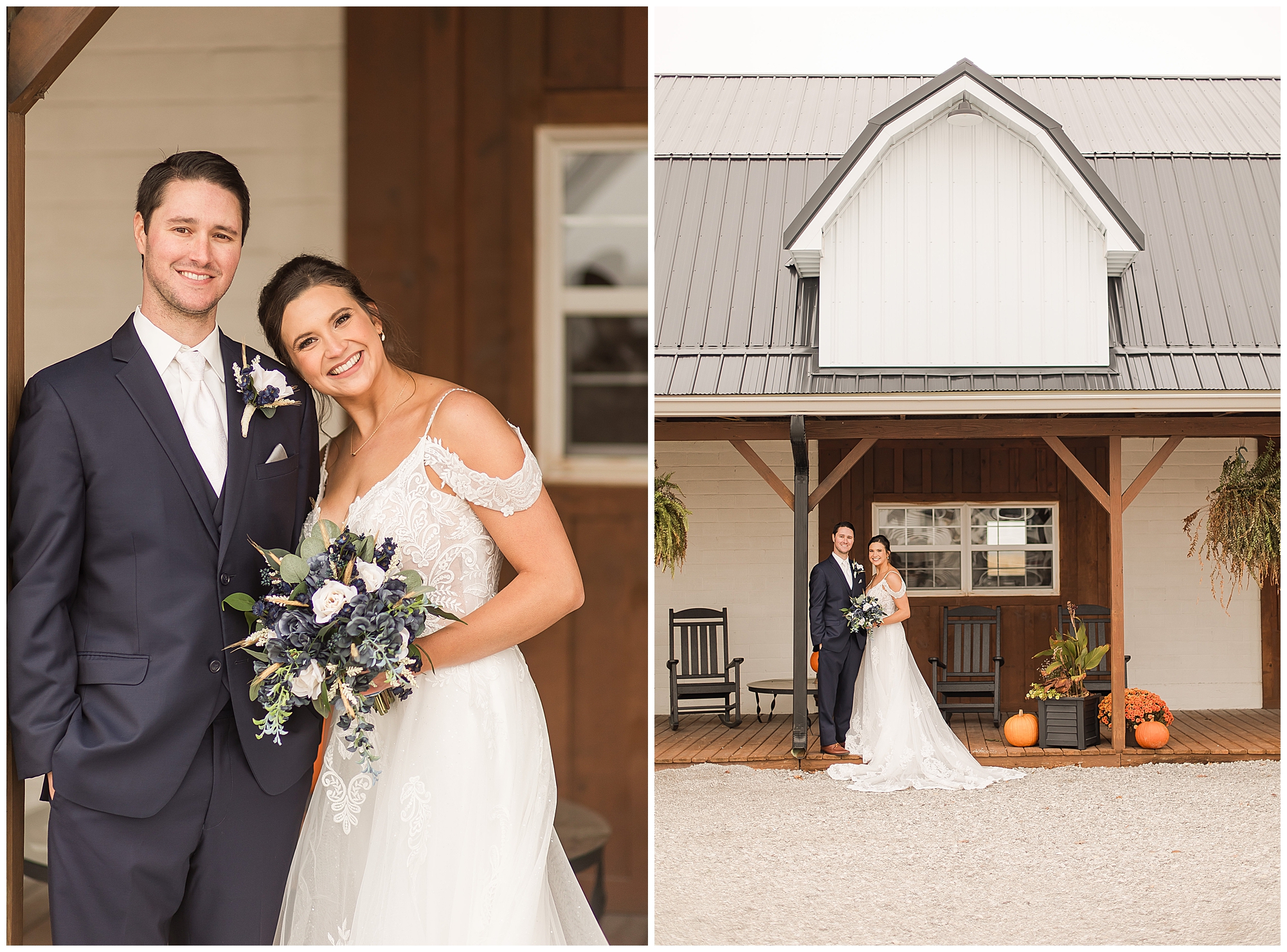 Now this crew of friends and family surrounding Morgan and Michael all day were incredible! They were helpful, attentive, and absolutely brought the energy! Plus, they did it all in pretty chilly temperatures! They were more than I could have asked for! I then had some time with this awesome couple for some photos, which didn’t disappoint! We wandered around the beautiful venue using the barn doors, long porch, and even found the one tree on the property that had some stunning fall colors left! Every moment I spent with this couple made my heart happy! Now, let’s get these two married!