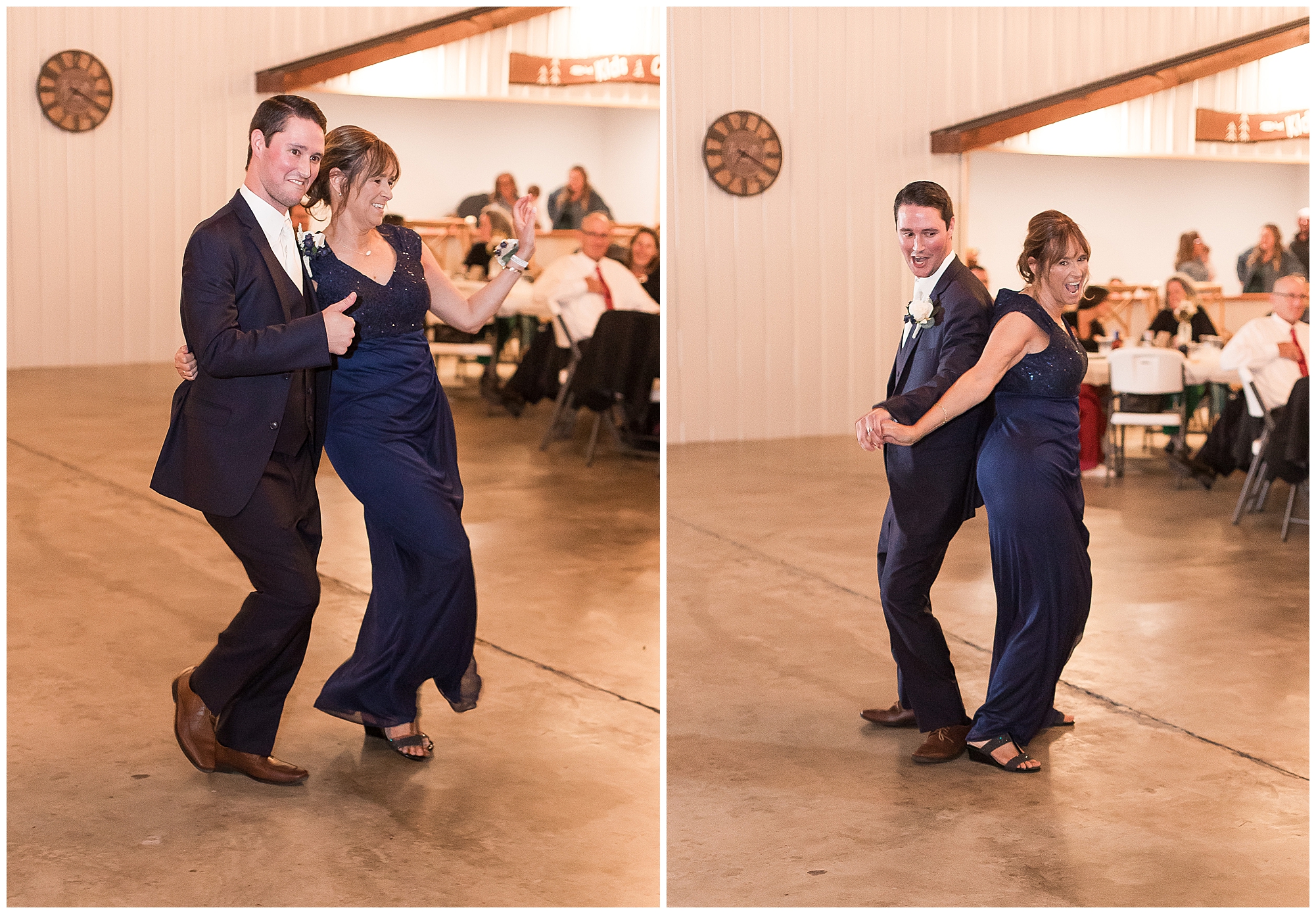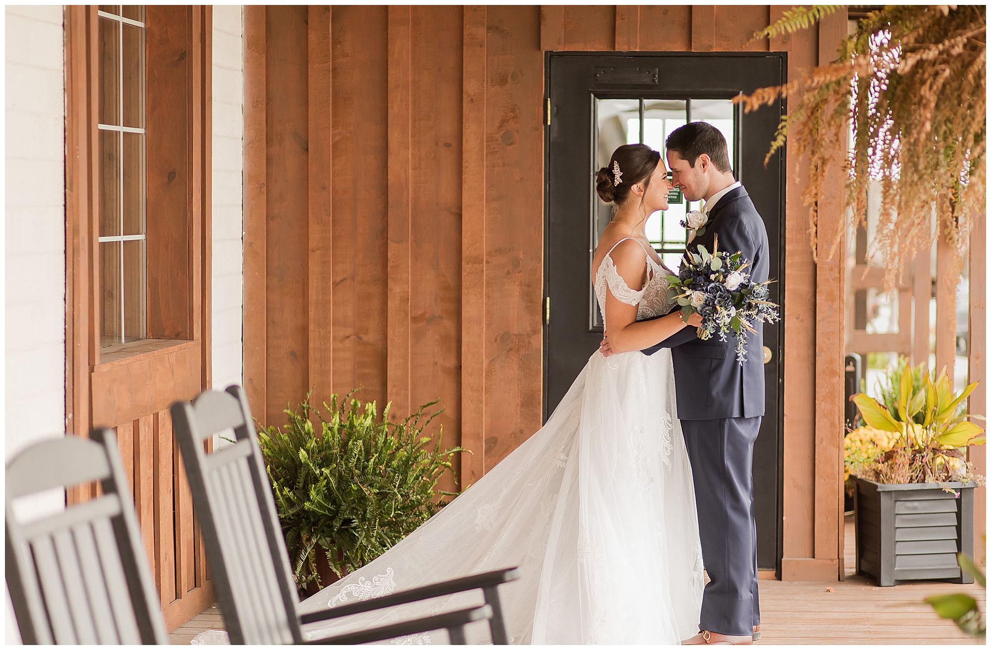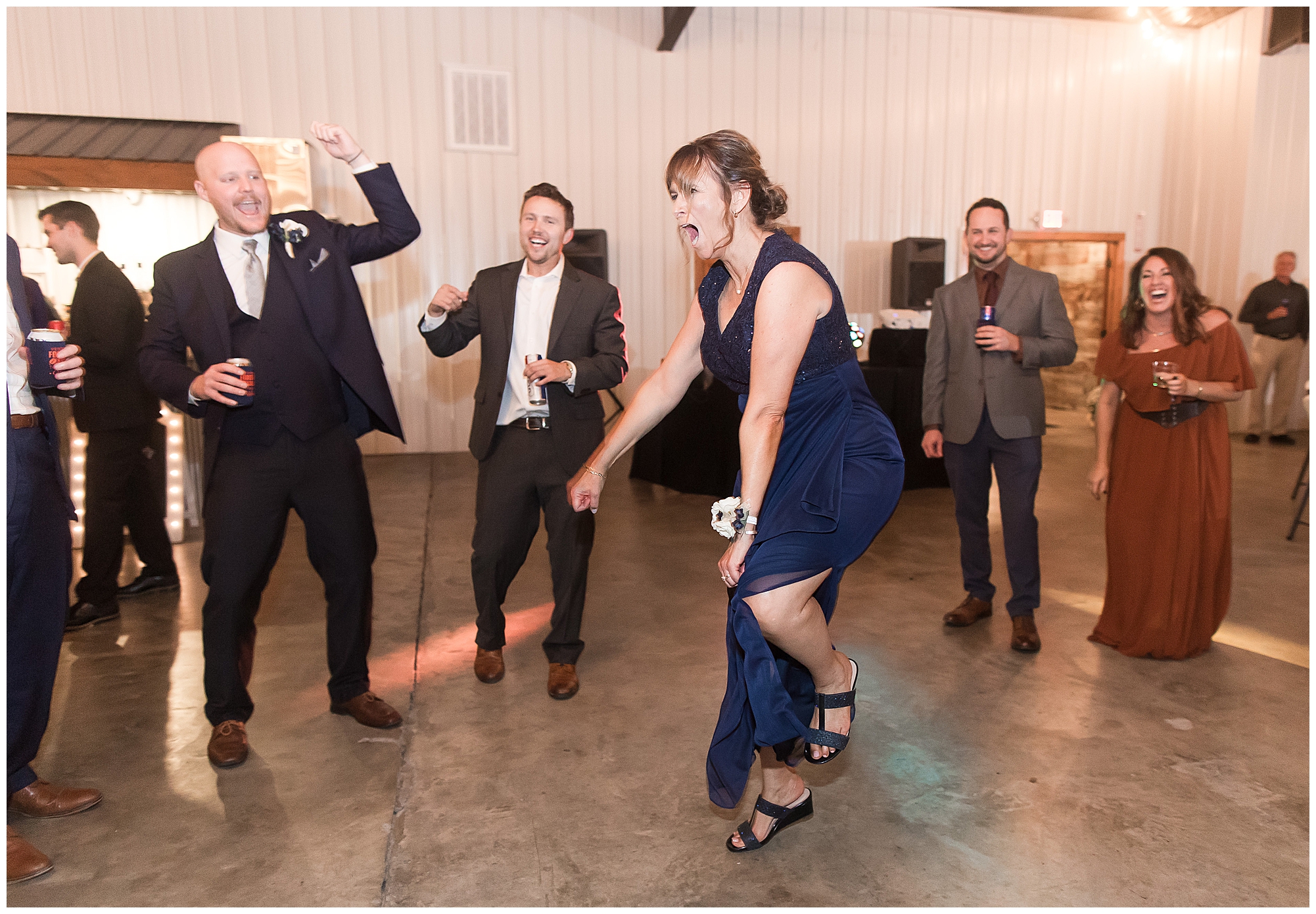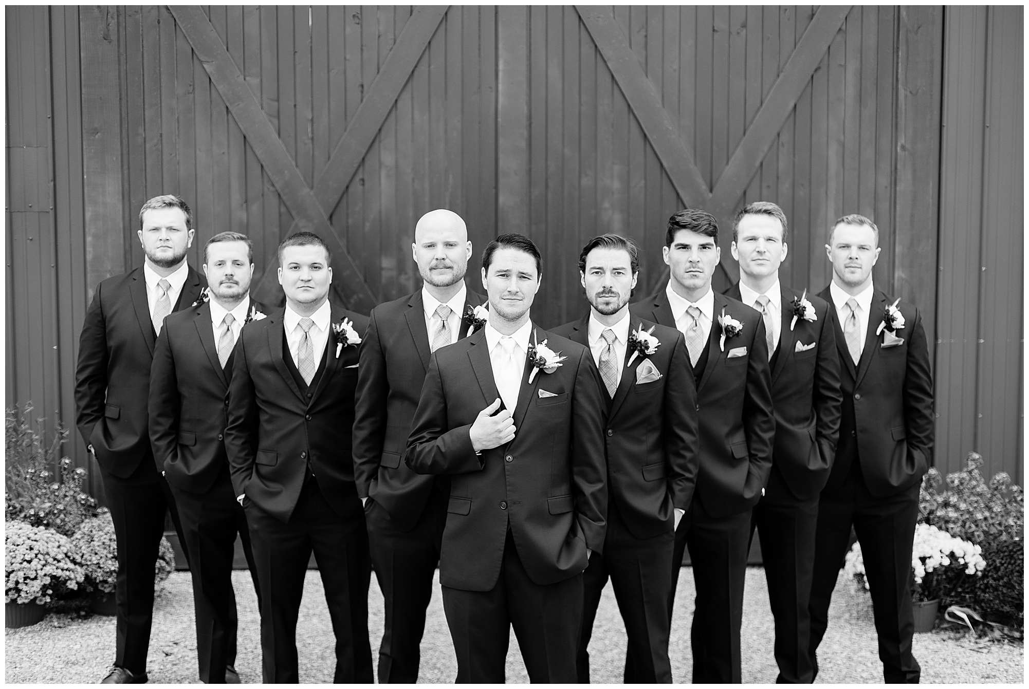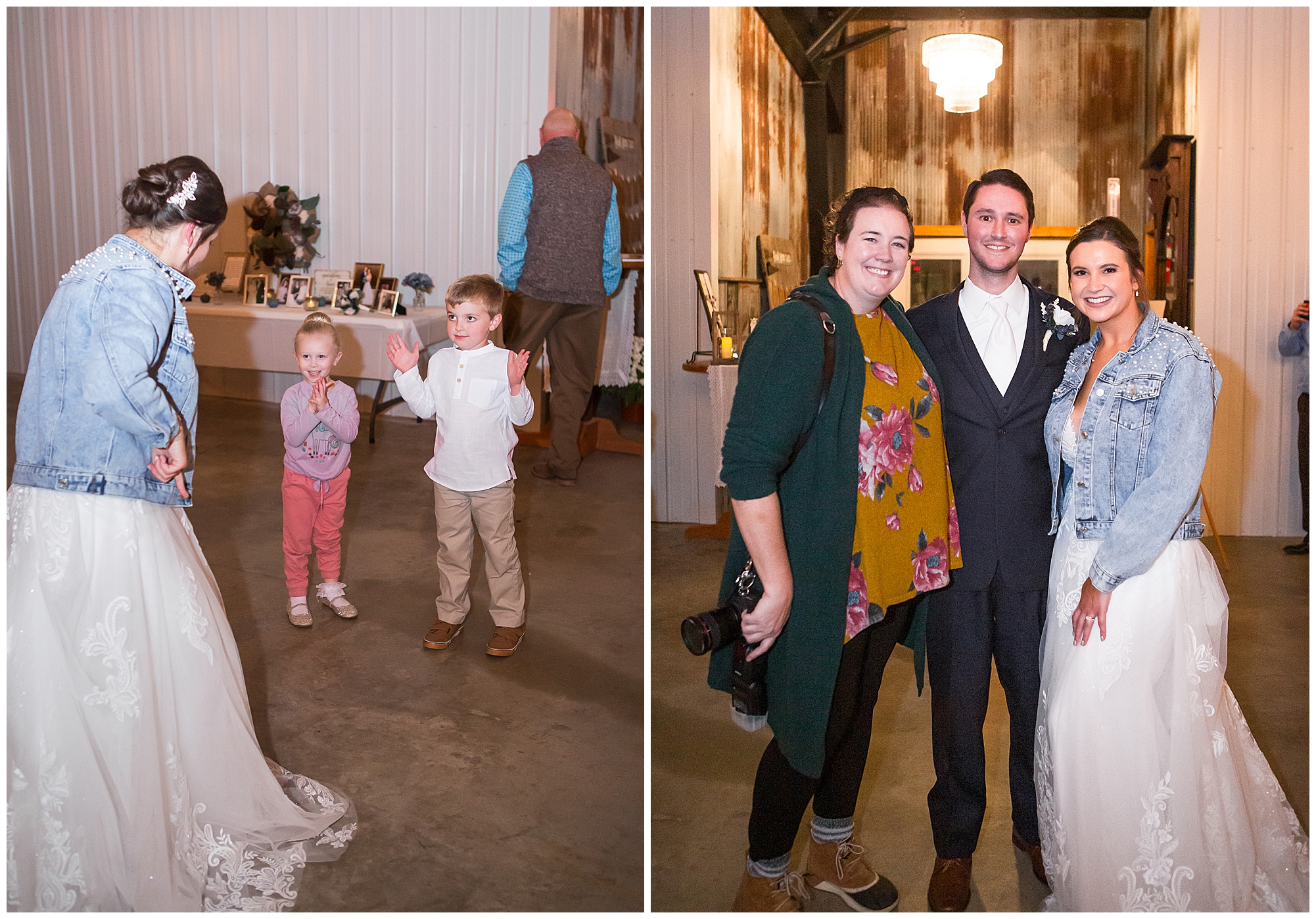 Now this crew of friends and family surrounding Morgan and Michael all day were incredible! They were helpful, attentive, and absolutely brought the energy! Plus, they did it all in pretty chilly temperatures! They were more than I could have asked for! I then had some time with this awesome couple for some photos, which didn’t disappoint! We wandered around the beautiful venue using the barn doors, long porch, and even found the one tree on the property that had some stunning fall colors left! Every moment I spent with this couple made my heart happy! Now, let’s get these two married!