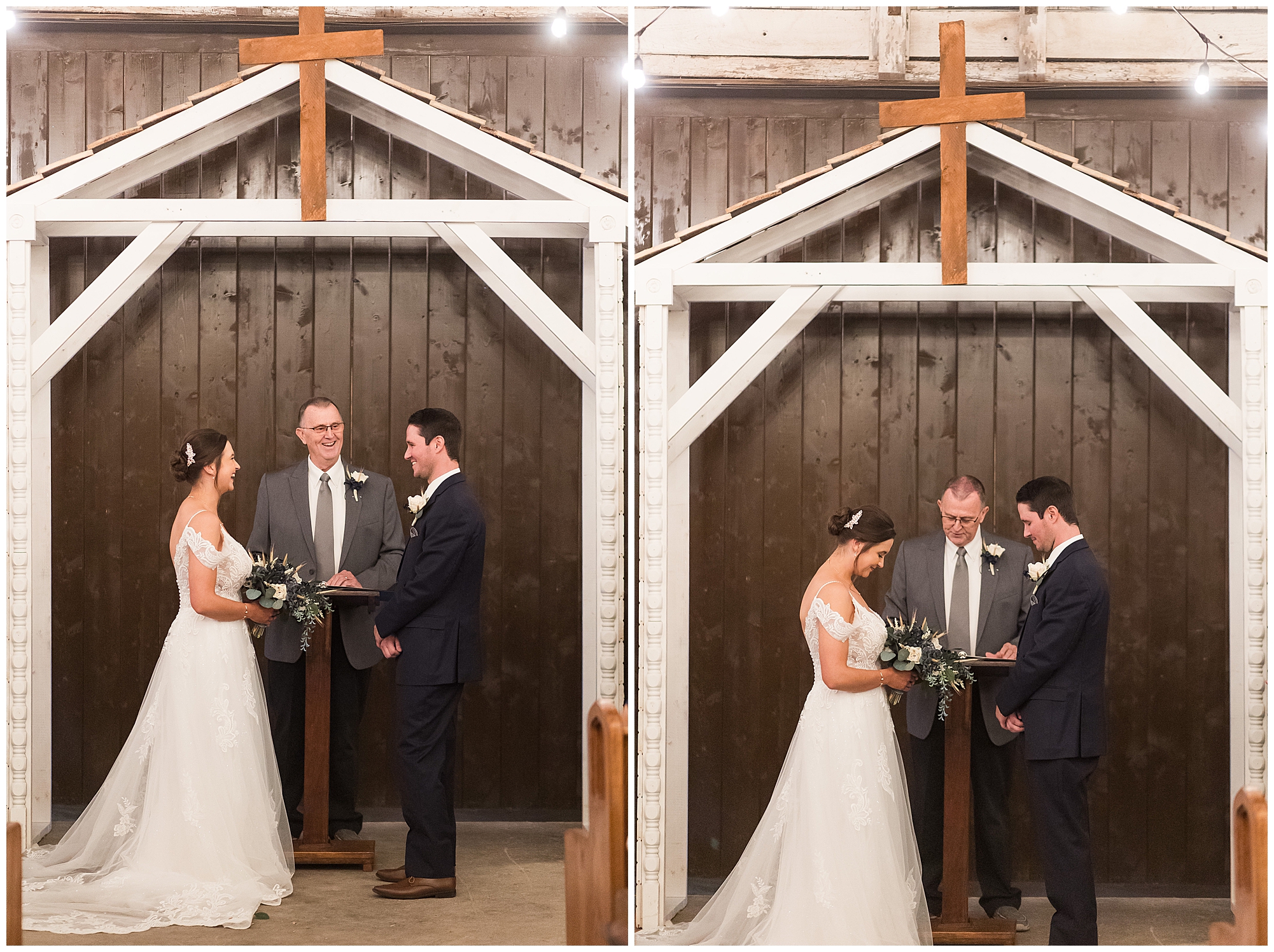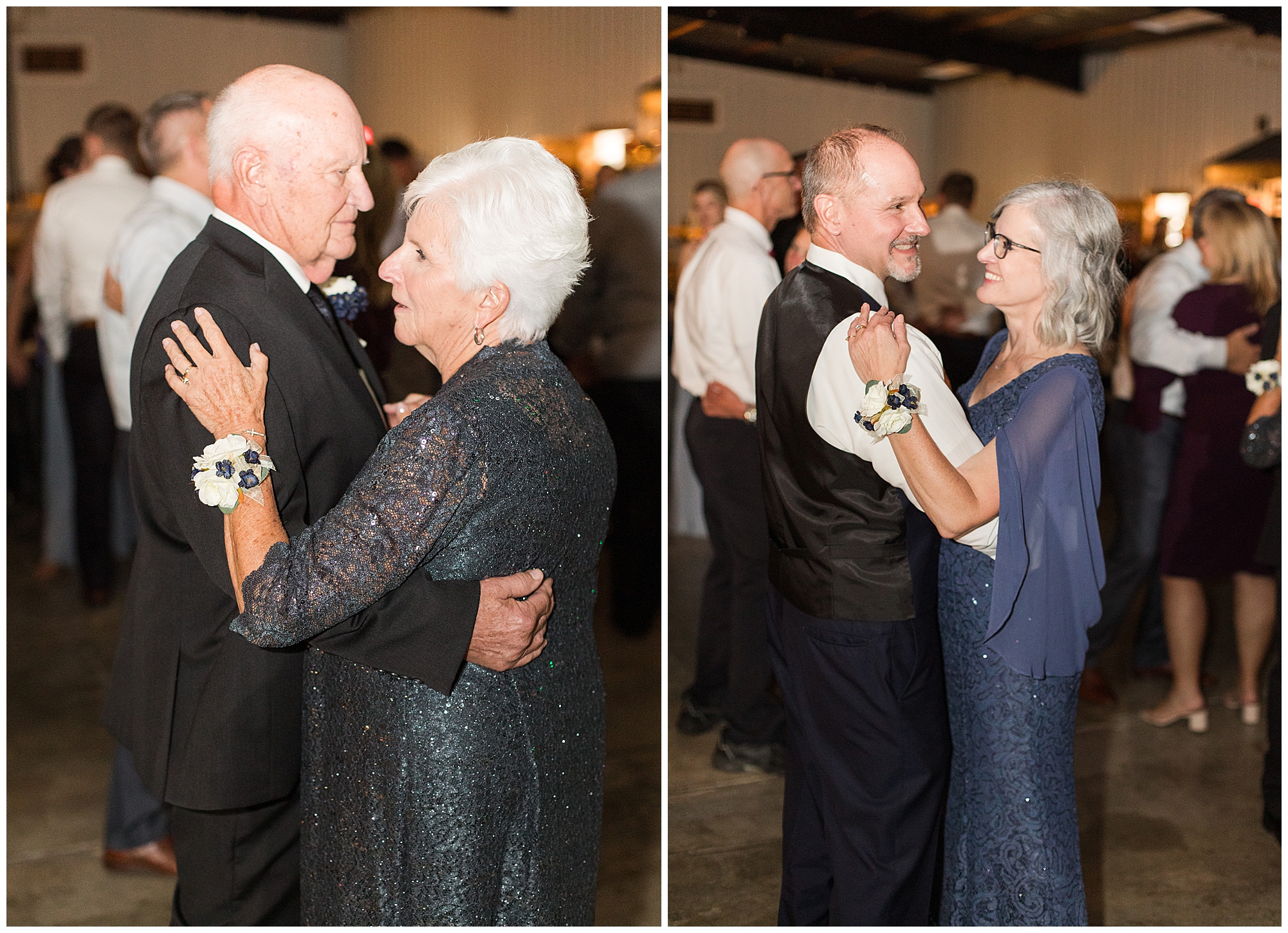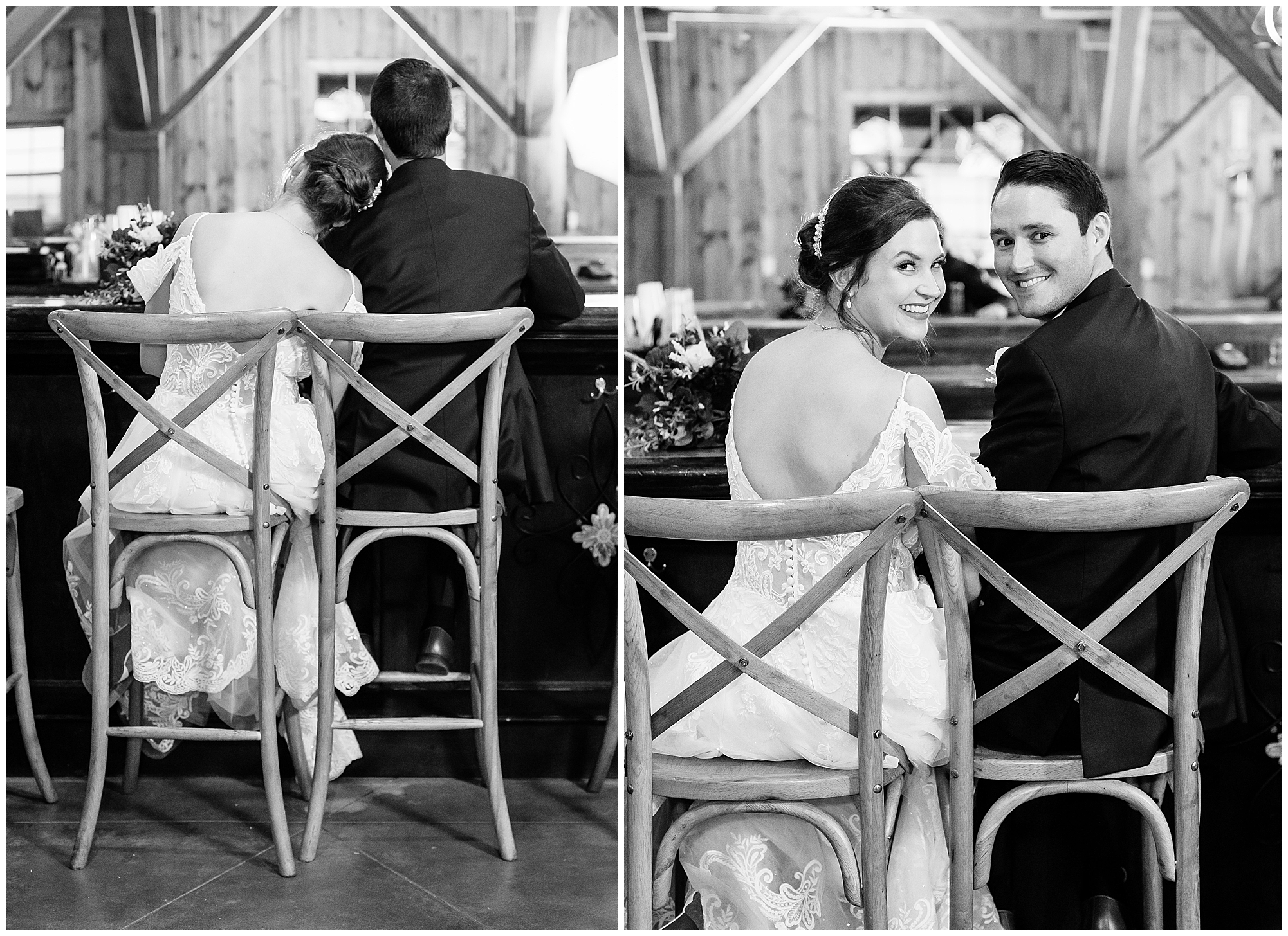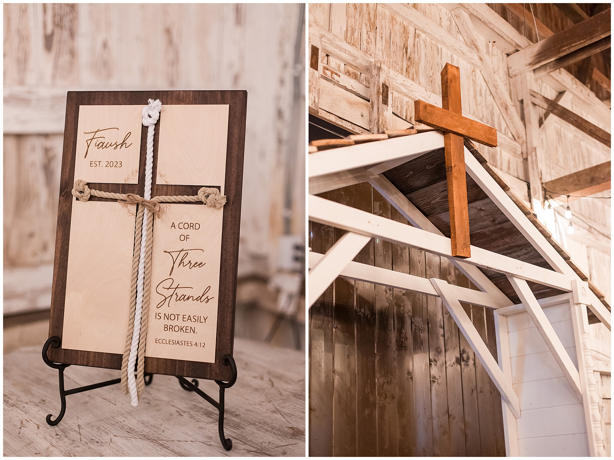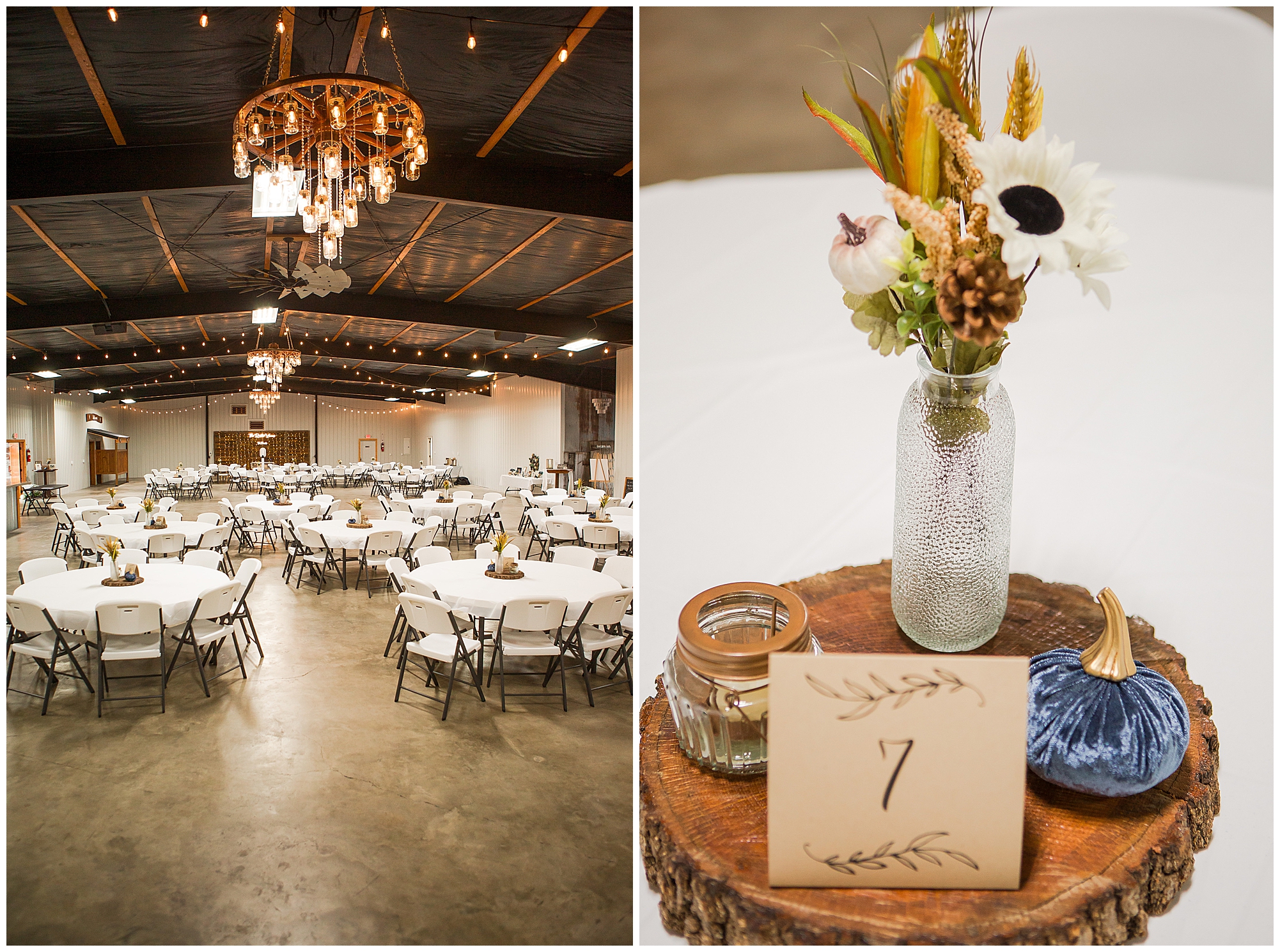 The nuptials were held in the barn on the property where the rustic charm continued. The beamed ceilings were draped with lights and a huge chandelier and church pews were set for guests to sit. The barn was filled with loved ones there to support Morgan and Michael as they began this new chapter in their lives. Cooper, the pup, lead the way for his mom to make her way down the aisle to Michael with her dad. And with a maiden name of “LOVE” as Morgan’s was, you know you are in for a sentimental ceremony! It was reveled by their officiant, who is a long time family friend of the Love’s, that they discovered that between both of their parents and grandparents, there is a combined number of 269 years of marriage! WOW! What an example for these newlyweds! Morgan and Michael exchanged rings and vows then sealed it all with a kiss! Congrats to the new Mr. & Mrs. Fiaush!