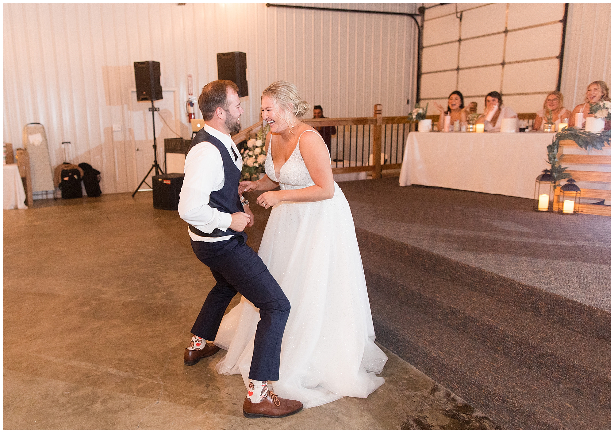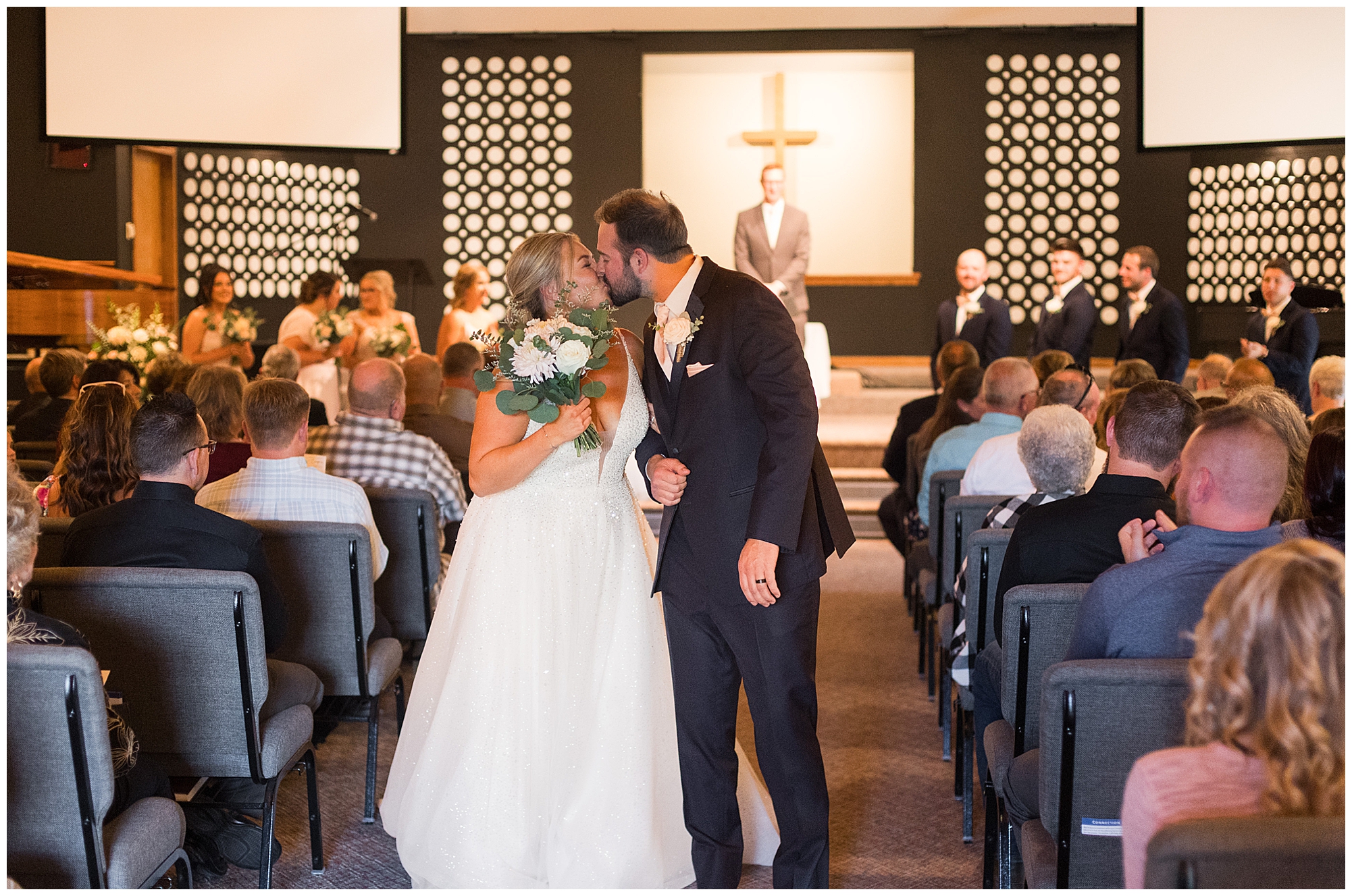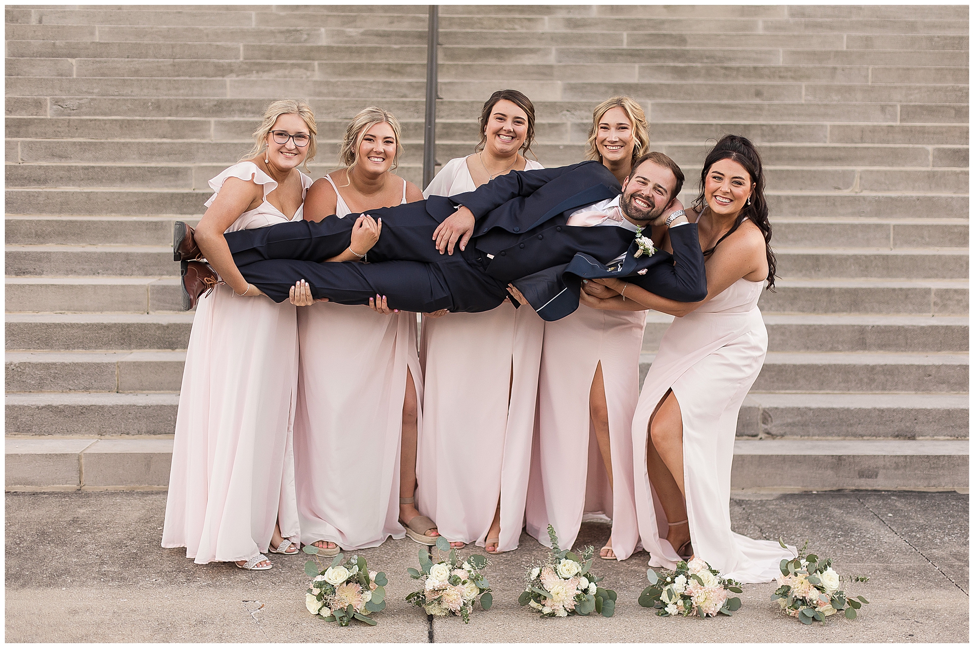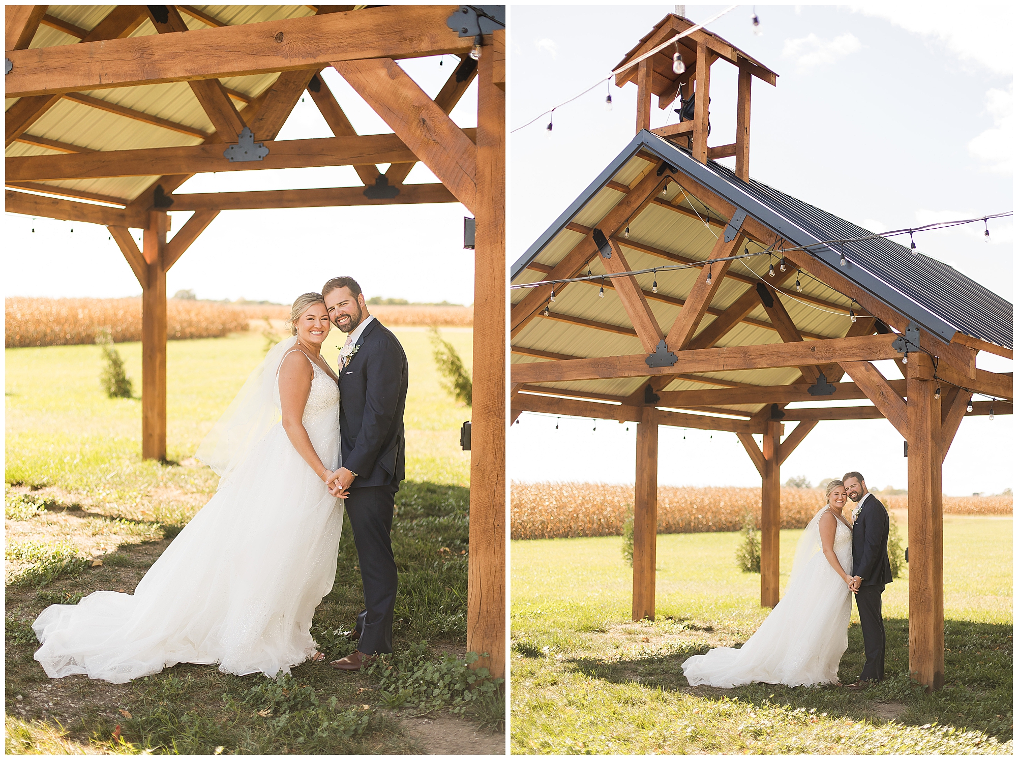 Next it was time for these two to say, “I Do!” For this part of the day, Tori and Cooper decided to head off property into nearby Carlinville to hold their nuptials. Their ceremony encompassed scripture, emotional vows, and the start of the rest of their lives together. After they sealed it all with a kiss, they were pronounced husband and wife! Following the ceremony, we took the newlyweds to the gorgeous Carlinville courthouse for a few more photos. I love how these turned out especially getting to see the new Mr. & Mrs. Etter showing off their style up against the columns, stairs, and impactful architecture! What a statement! Then it was time to head back to The Rustic Venues to get the party started!