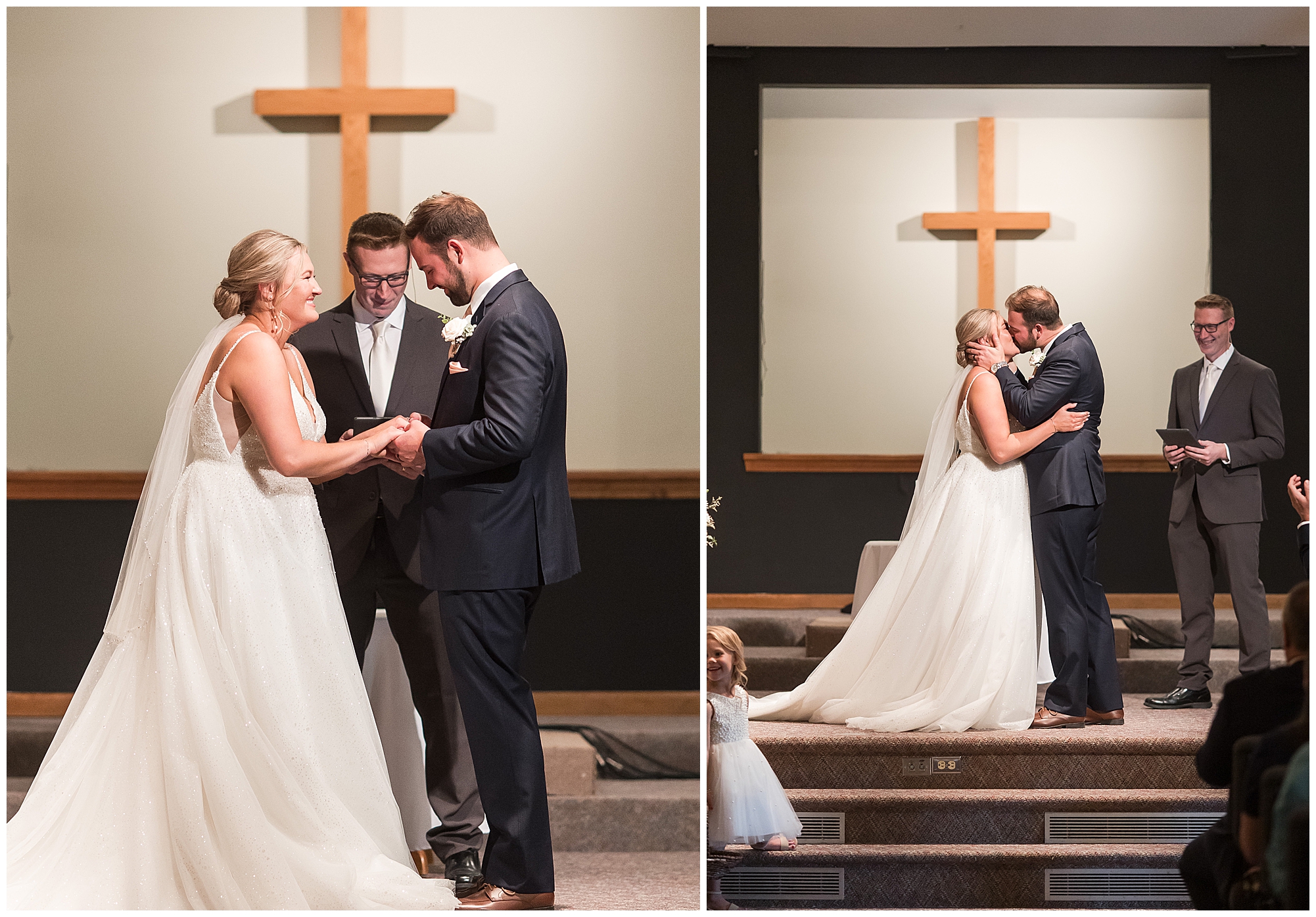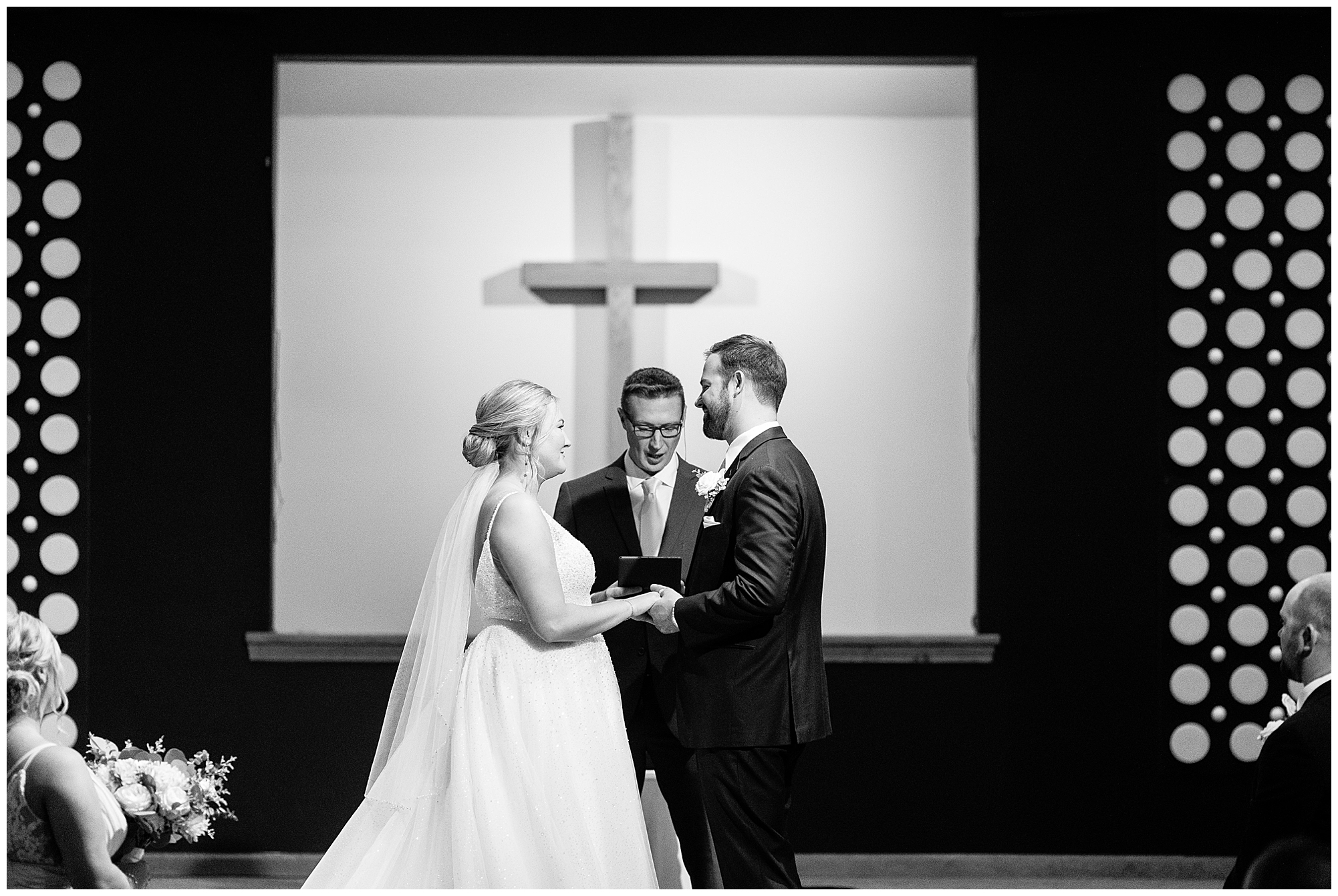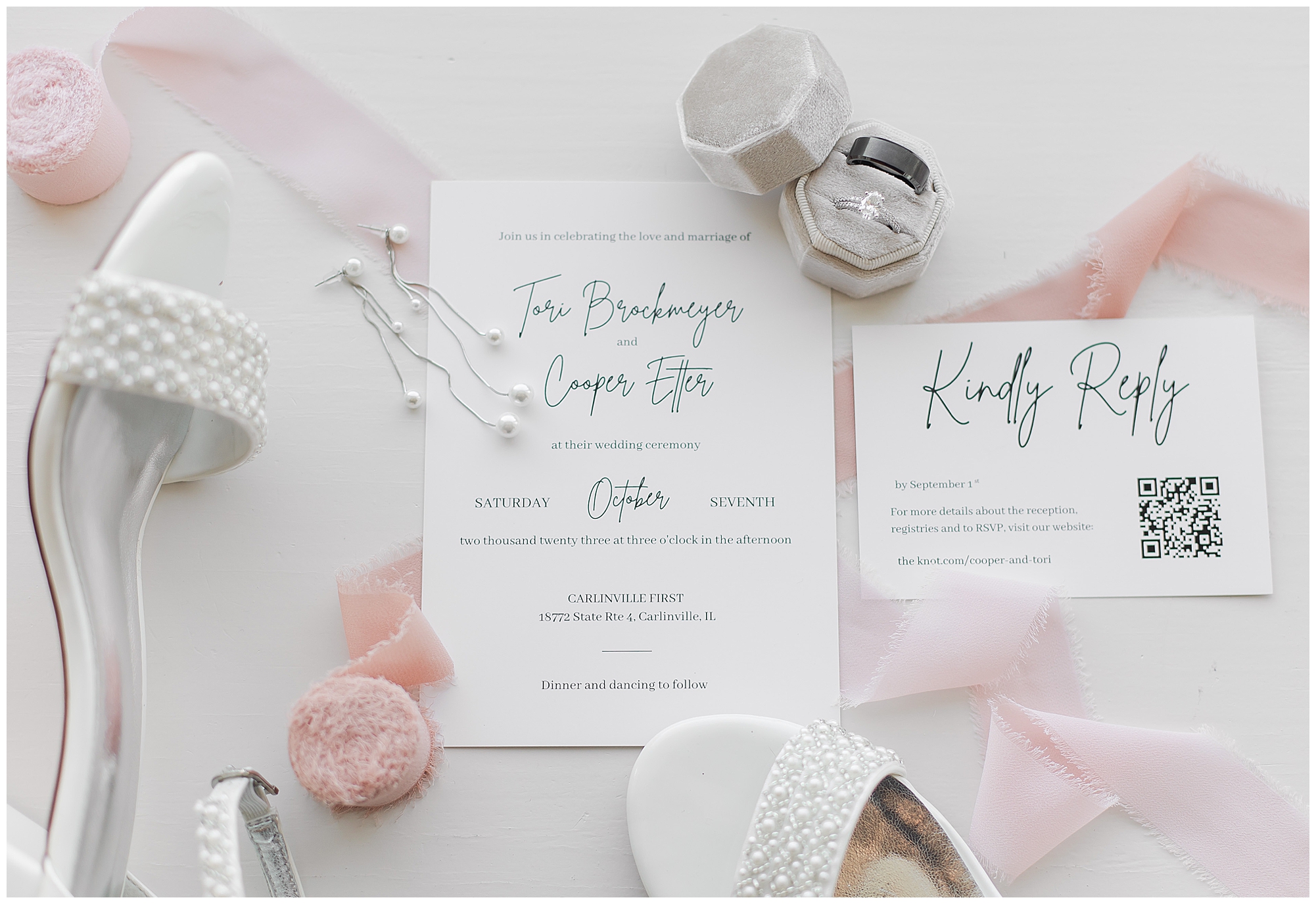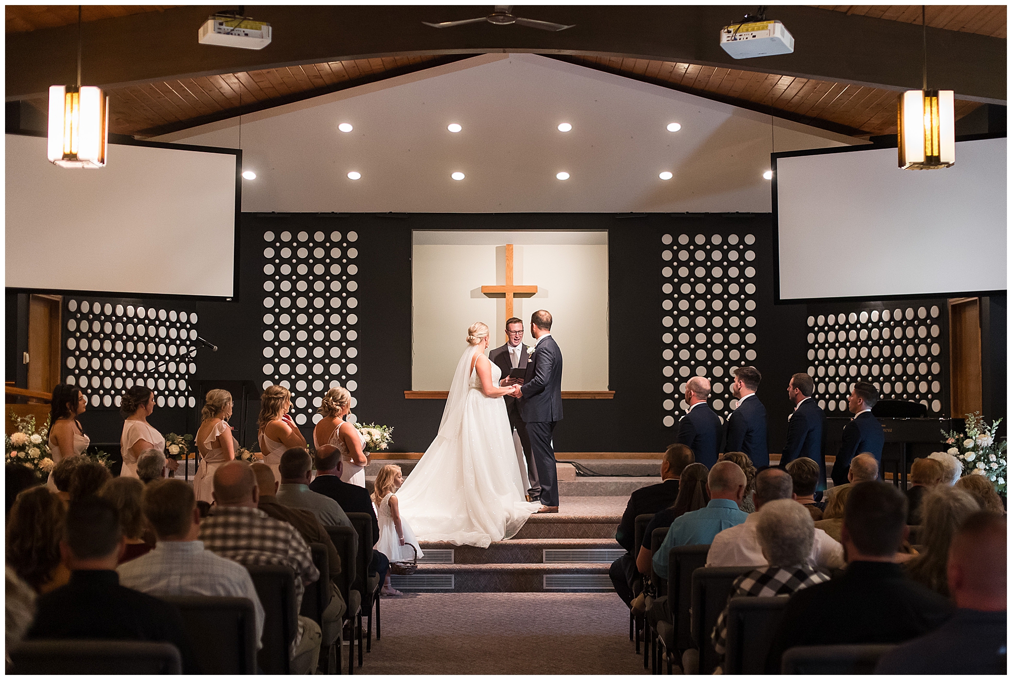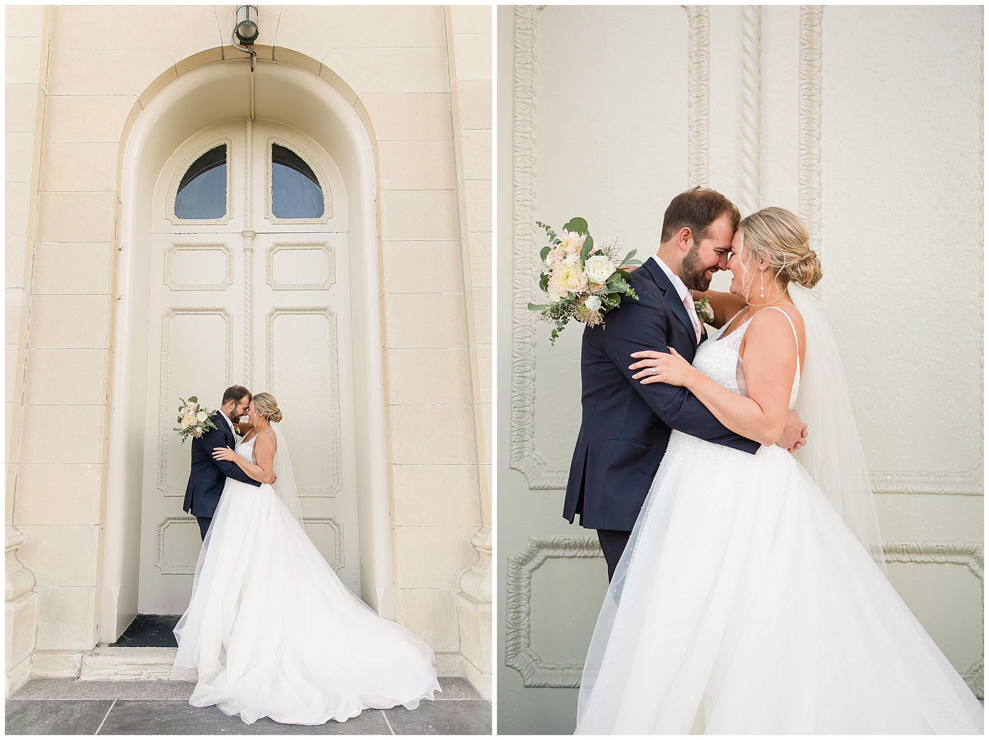 Next it was time for these two to say, “I Do!” For this part of the day, Tori and Cooper decided to head off property into nearby Carlinville to hold their nuptials. Their ceremony encompassed scripture, emotional vows, and the start of the rest of their lives together. After they sealed it all with a kiss, they were pronounced husband and wife! Following the ceremony, we took the newlyweds to the gorgeous Carlinville courthouse for a few more photos. I love how these turned out especially getting to see the new Mr. & Mrs. Etter showing off their style up against the columns, stairs, and impactful architecture! What a statement! Then it was time to head back to The Rustic Venues to get the party started!