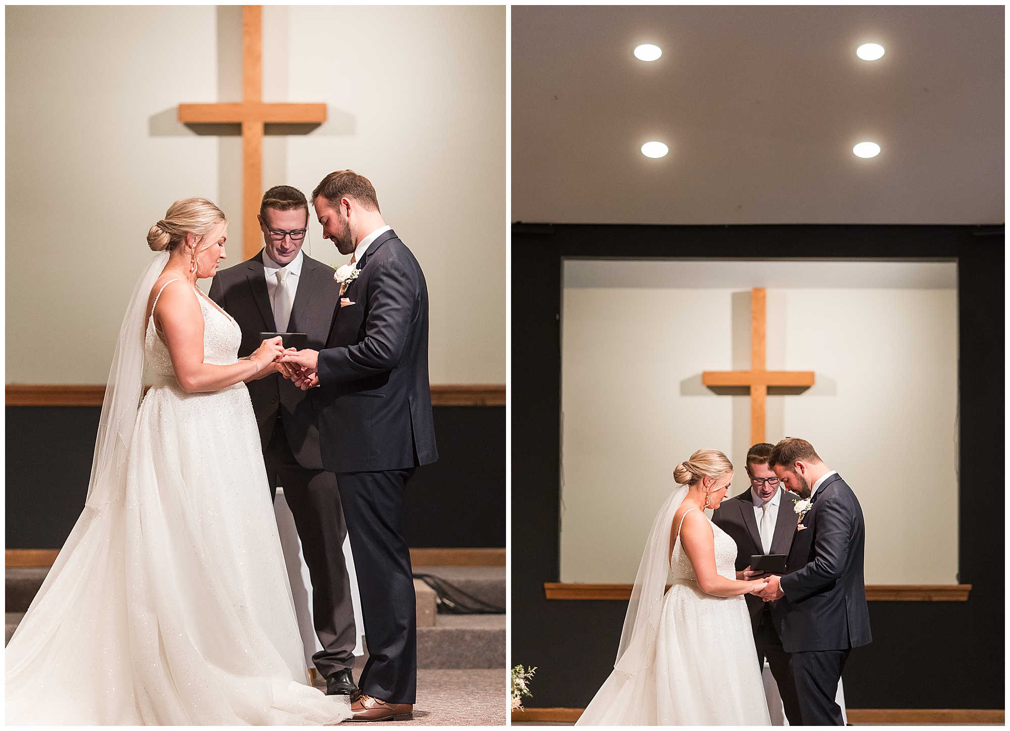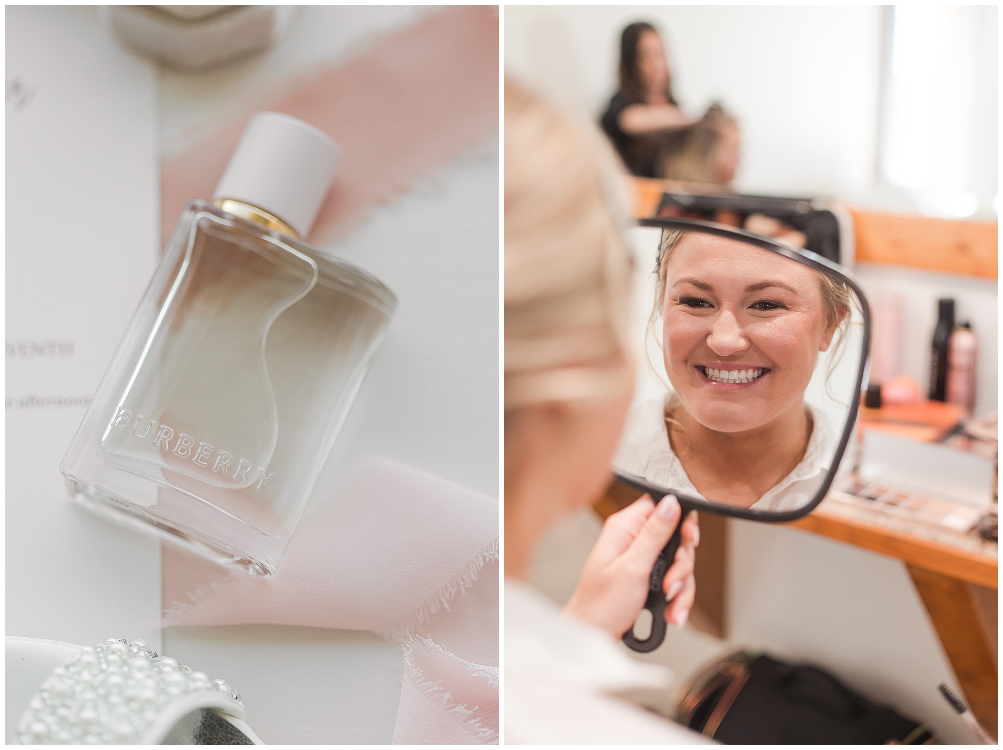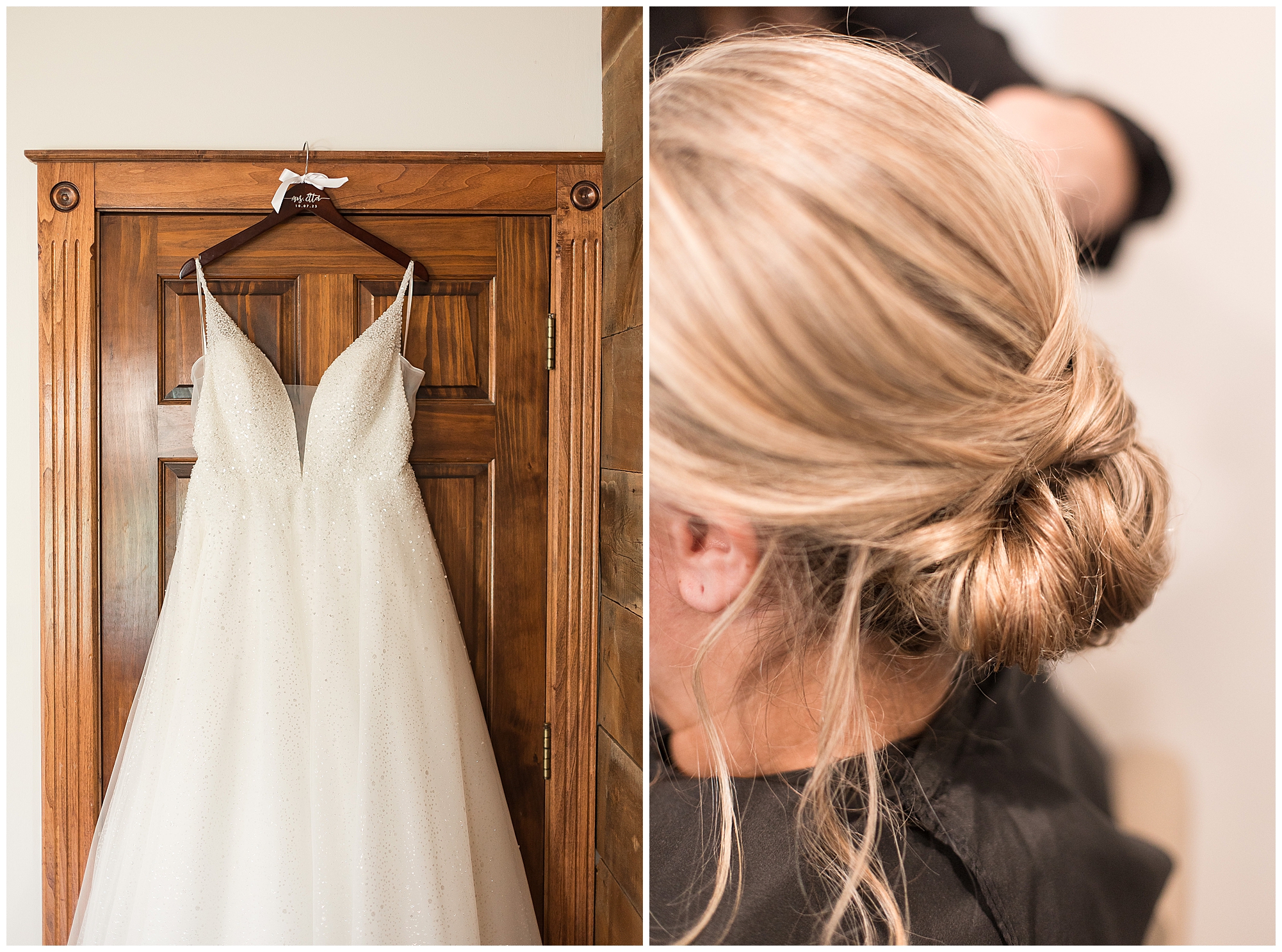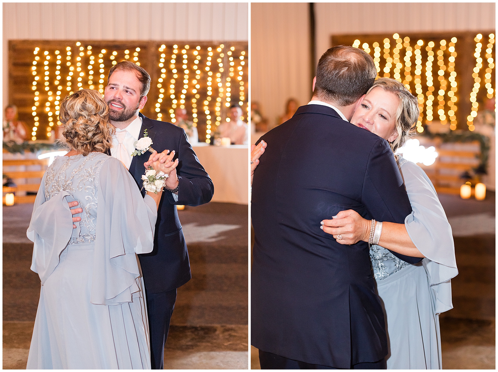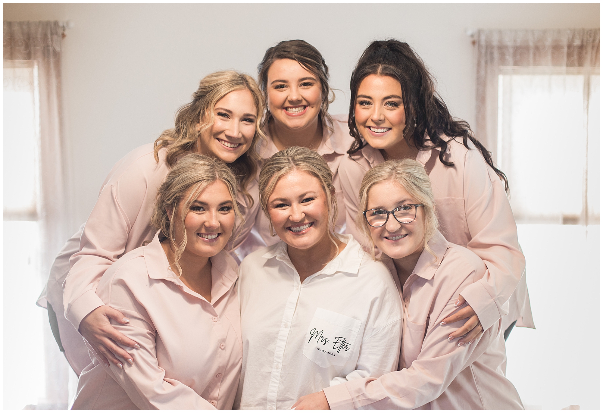 Tori and Cooper’s incredible fall wedding was simply put…Perfect! They chose to have the majority of their event at The Rustic Venues in Girard, Illinois, which is an amazing location spread out in the country surrounded by cornfields. This was my first time visiting this spot and it was a gorgeous place for this pair to celebrate their nuptials. Tori was the absolute epitome of chill bride! When I arrived, she was lounged back in the salon chair getting her hair done with a huge smile on her face! Her bridesmaids were helping prepare for the day in anyway they could and the atmosphere was full of positive energy. When it came time to get Tori dressed she was a stunner to say the least! She was sparkling in her chic gown that glided as she walked about. She was radiant for sure! Her besties were all dressed in blush pink dresses with various styles that fit each girl’s personality! I love this trend! Cooper and his gentlemen cleaned up nicely as well with navy suits and pops of pink with their accessories. Before Cooper got his first glance of his bride-to-be, he had to wait for Tori’s dad to have his chance. Within seconds of Tori and her dad seeing one another the tears started flowing. Such a sweet moment! Then when it was Cooper’s turn, he couldn’t hold back his emotions either. He said, “He didn’t think he would get emotional!” However, seeing his beautiful bride really got the feels going throughout the day.