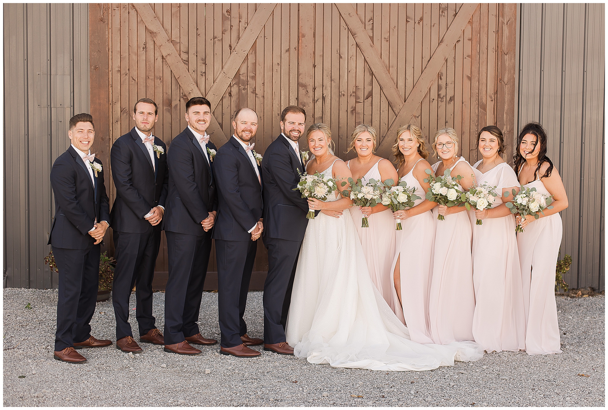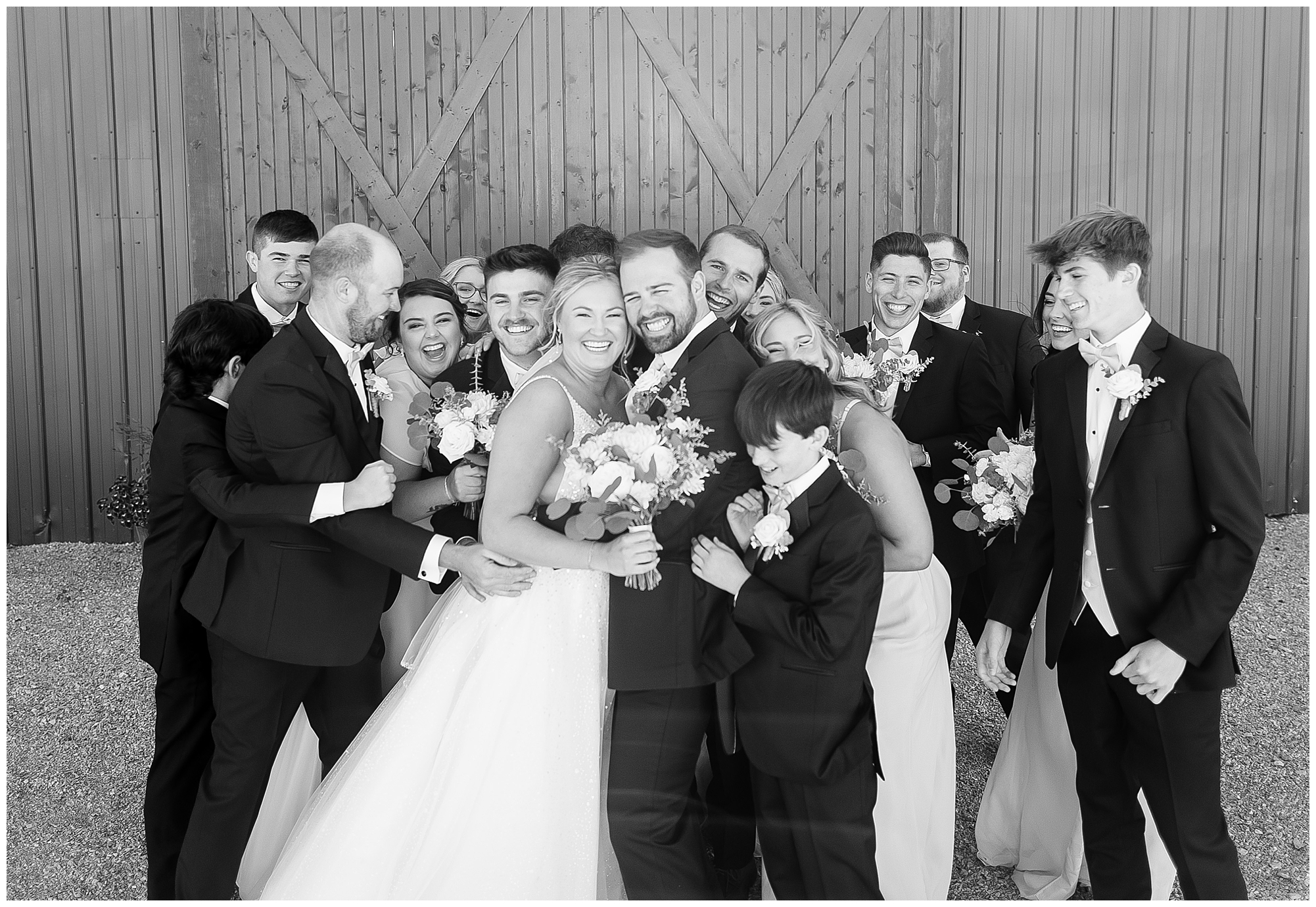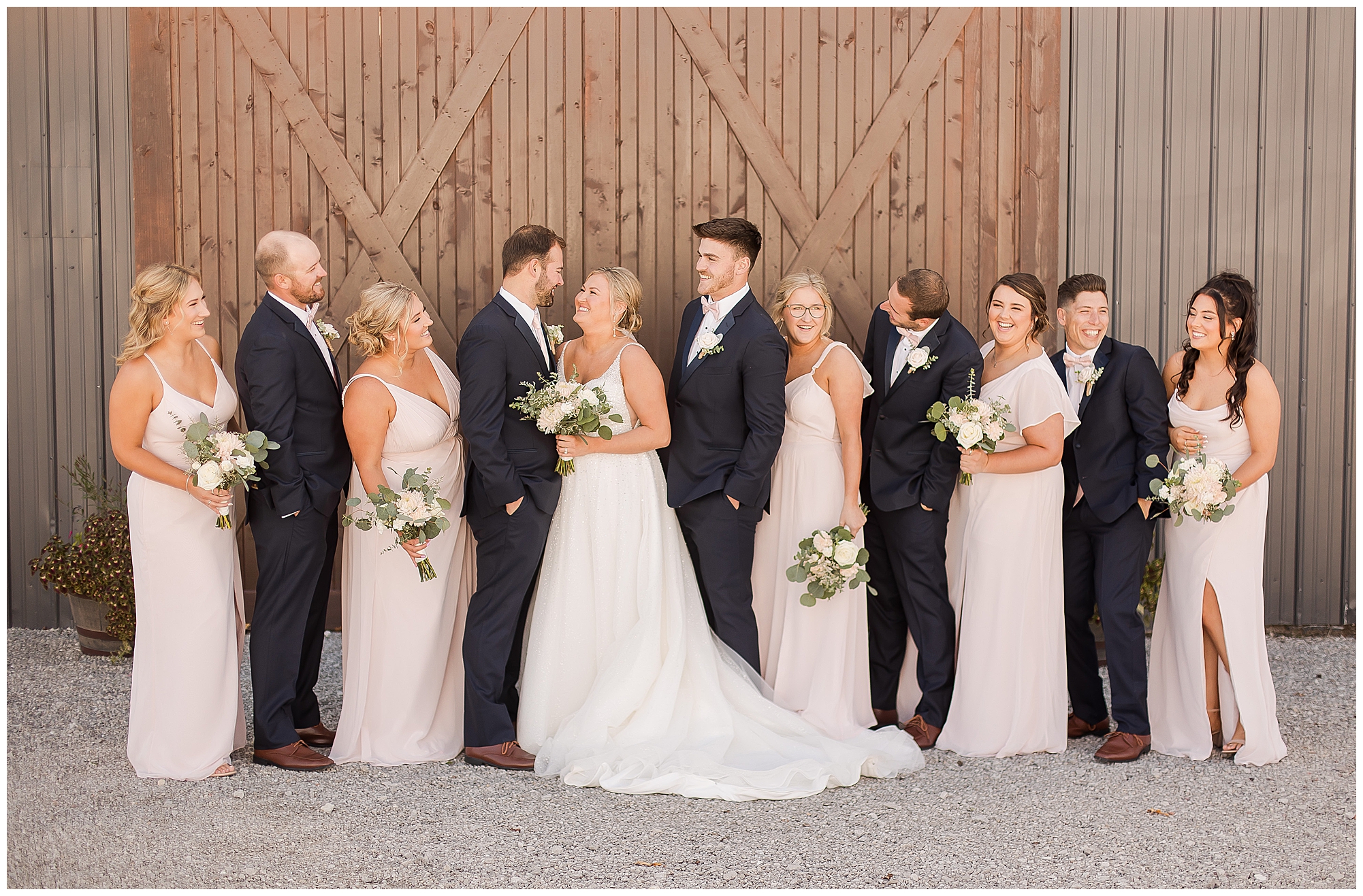 After the first looks, it was time to get this big bridal party together for some fun! This crew was full of good vibes all day and really showed Tori and Cooper the love! In front of the lovely rustic barn doors we captured all the excitement for this couple and this new chapter in their lives! Once bridal party photos were over, we continued with Tori and Cooper around the property and hanging with this couple was just a blast! They both have kind hearts and warm souls! Plus, capturing their laughing and love together was an amazing treat for me.