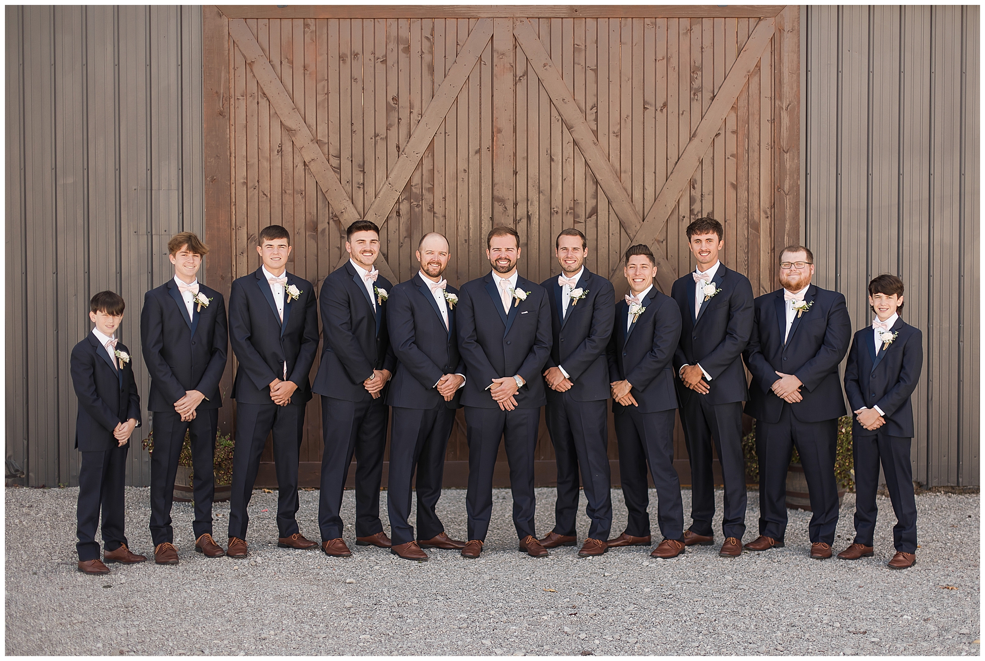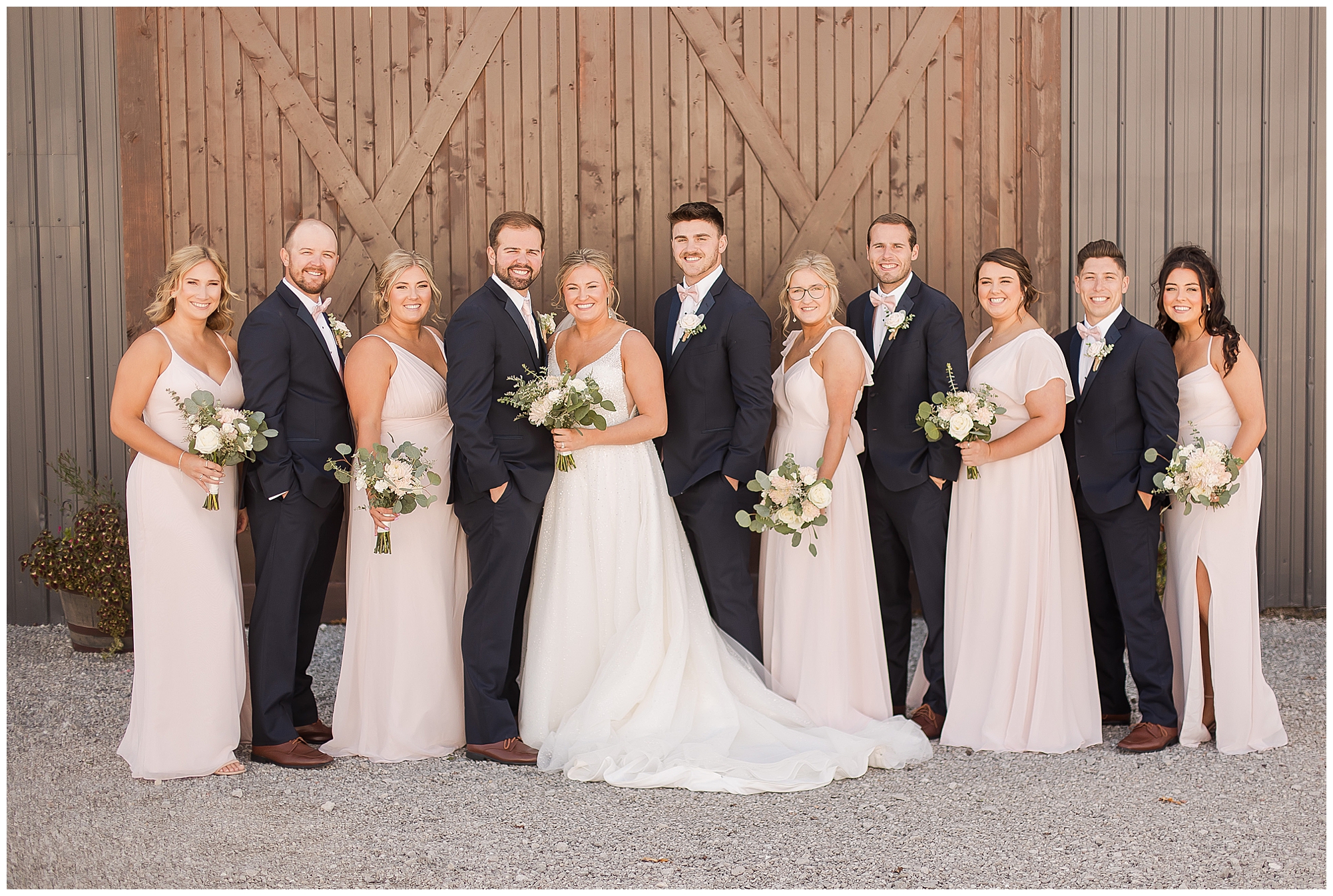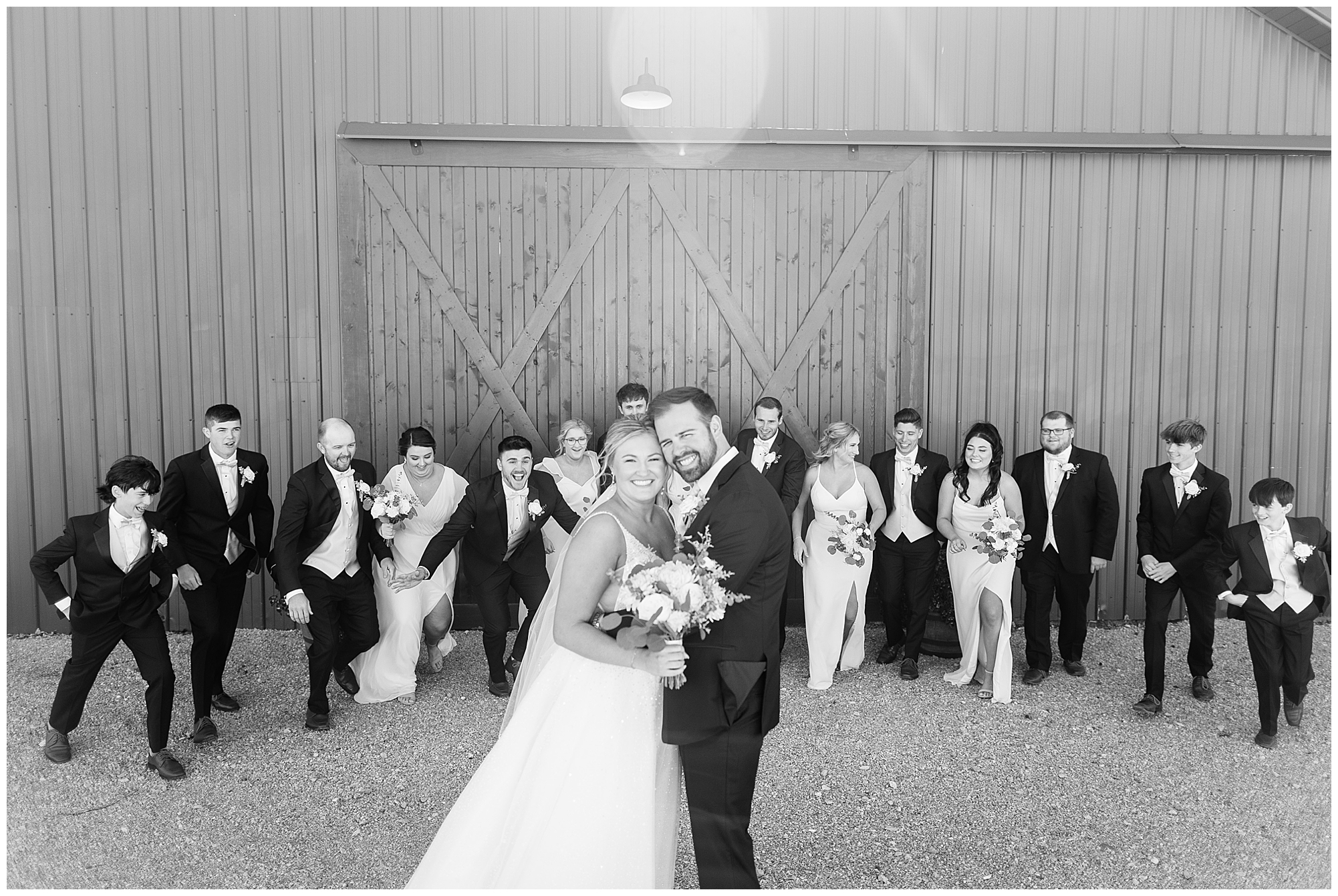 After the first looks, it was time to get this big bridal party together for some fun! This crew was full of good vibes all day and really showed Tori and Cooper the love! In front of the lovely rustic barn doors we captured all the excitement for this couple and this new chapter in their lives! Once bridal party photos were over, we continued with Tori and Cooper around the property and hanging with this couple was just a blast! They both have kind hearts and warm souls! Plus, capturing their laughing and love together was an amazing treat for me.