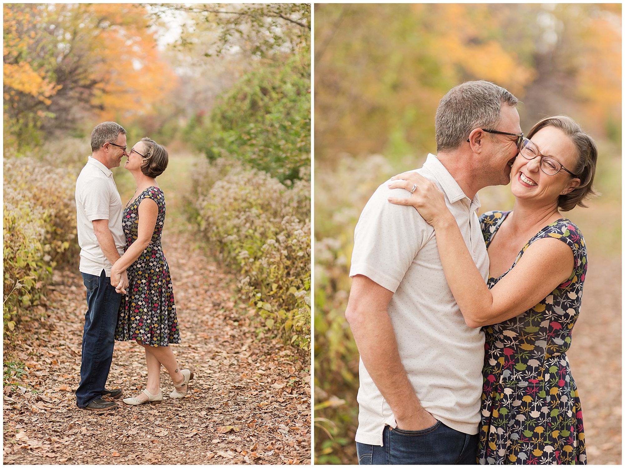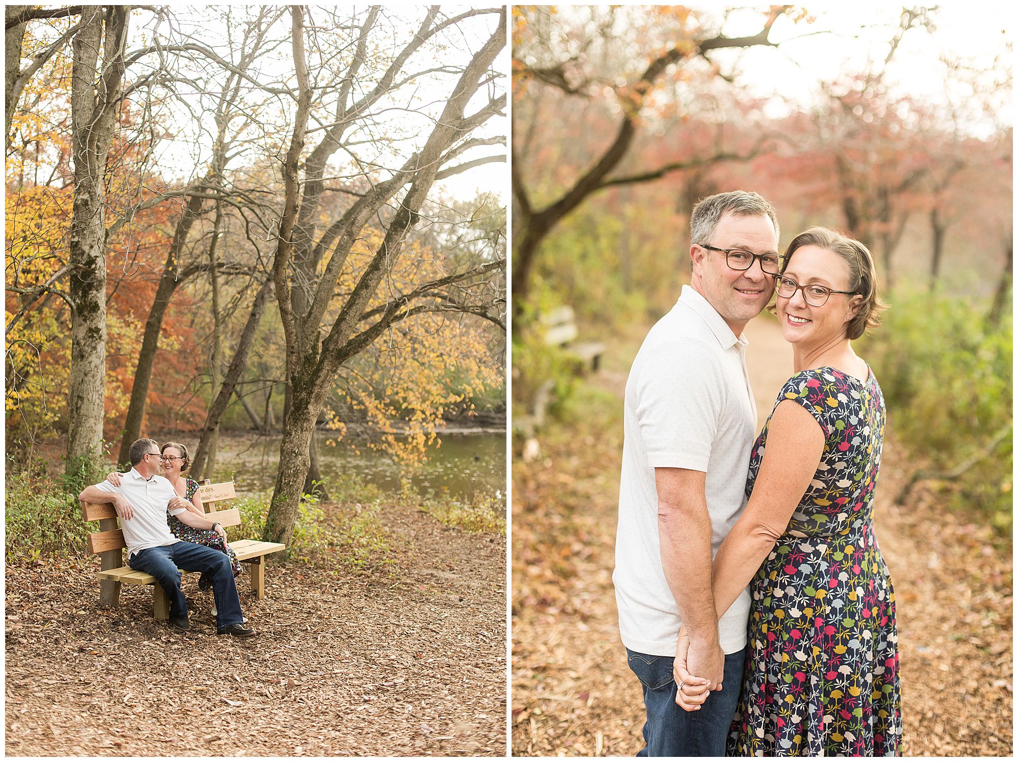 From the moment I met up with Ashlee and Jack at Lincoln Memorial Gardens in Springfield, Illinois during one of the best times to visit…Autumn…I already knew I was going to adore this couple! I had chatted on the phone with Ashlee prior to their engagement session and she was an absolute doll. She told me the amazing story of how she and Jack were blindly set up. Ashlee’s co-worker kept telling her she should go out on a date with her son. Ashlee was in NO WAY interested in this since she loved her co-worker and didn’t want anything to mess up that relationship. Plus the idea of a blind date wasn’t really her thing. So the co-worker (spoiler alert: Jack’s mom), slipped Ashlee’s number to Jack and put the ball in his court on if he wanted to reach out to her or not. Well, Jack went for the shot, and texted Ashlee introducing himself (“In Perfect Grammar”, Ashlee added) and they started to get to know one another. And the rest is history! Now we were meeting up for engagement photos ahead of their fall wedding, which I’m so excited about!