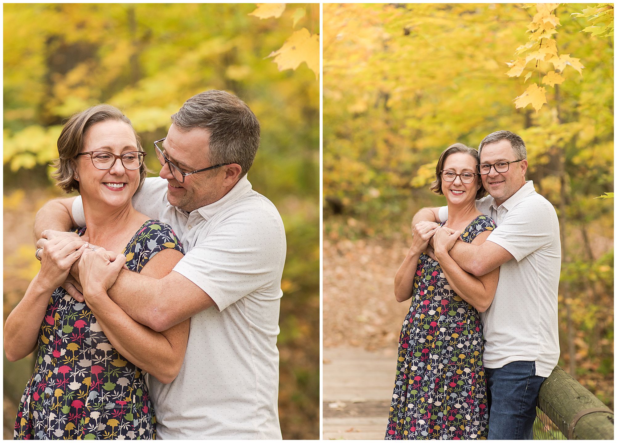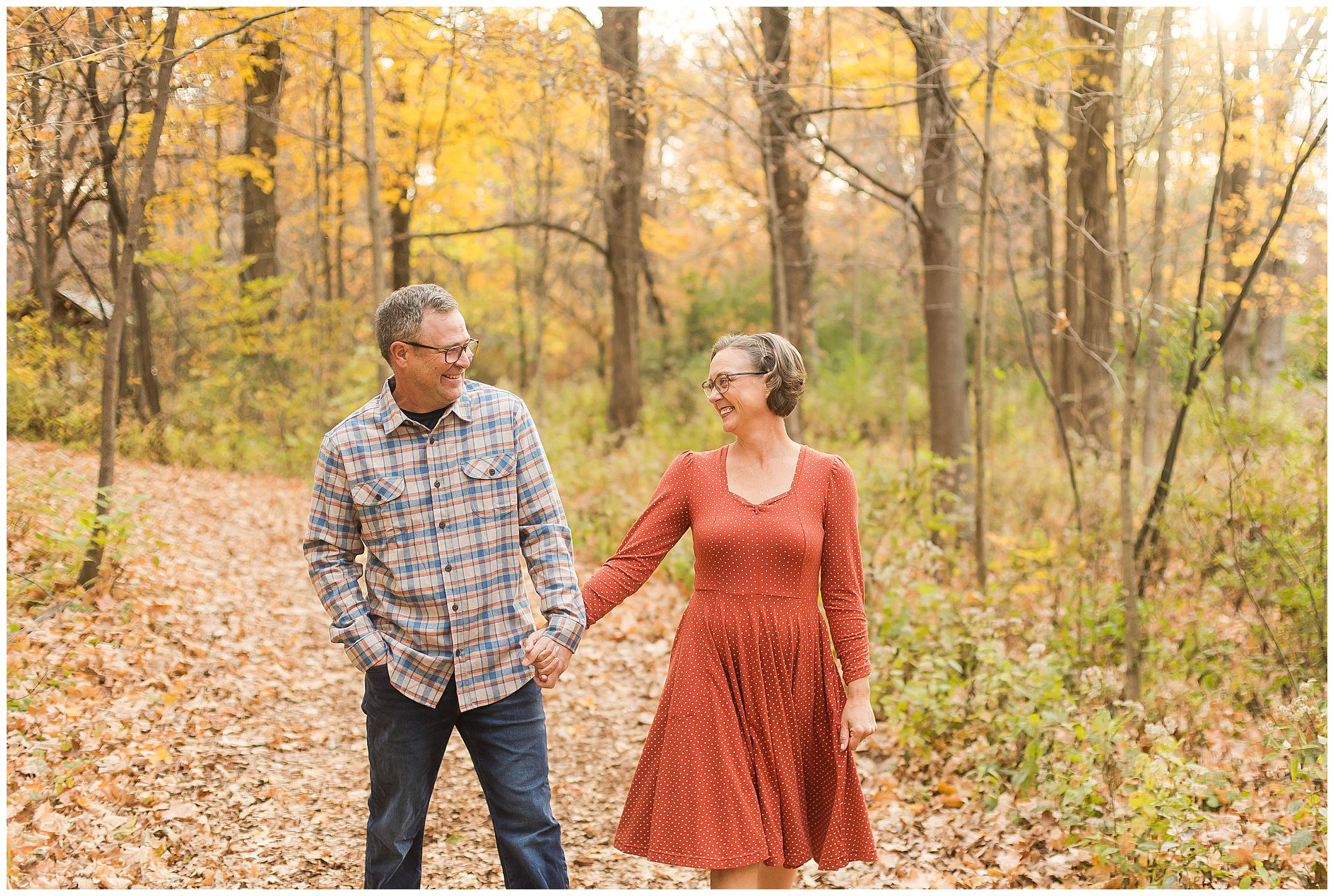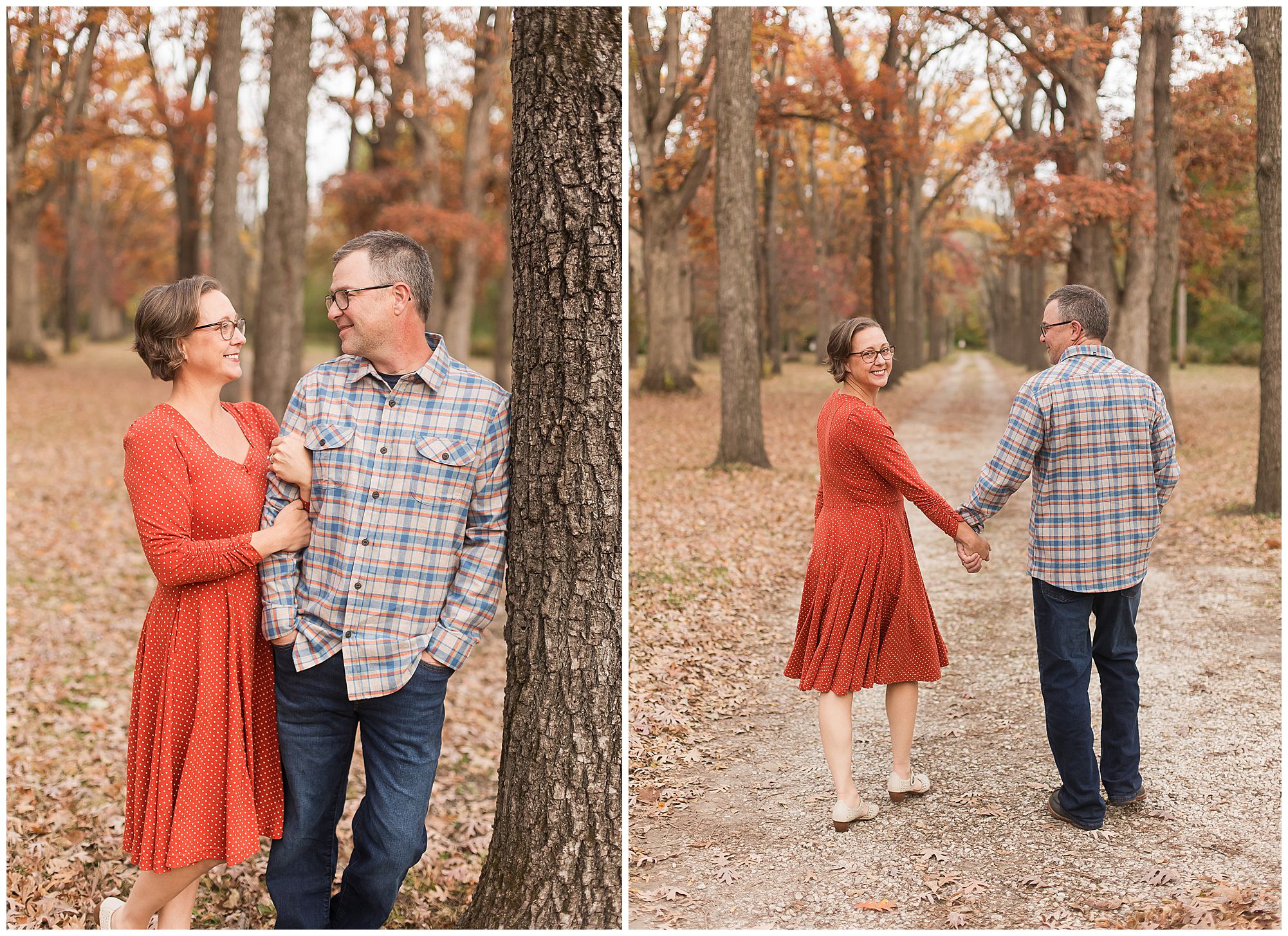 Ashlee and Jack are such an incredible match together! She is outgoing and up for whatever and he is more mellow and allows her to be the star of the moment. Ashlee’s style brought a vintage Hollywood vibe and I was loving every second of it! Her dress choices were perfection with the fall foliage and paired with her sweet Jack snuggled in close, these two looked amazing! We wandered around LMG finding so many wonderful spots as I got to know more about this light-hearted, caring duo. Ashlee and Jack were up for simply enjoying themselves and being in the moment as their lives are busy, especially with wedding planning. We ended with lots of giggles down a long path of tall trees as the sun was setting. I couldn’t think of a better way to finish up the evening! Ashlee and Jack’s fall wedding will be one I’m definitely looking forward to!