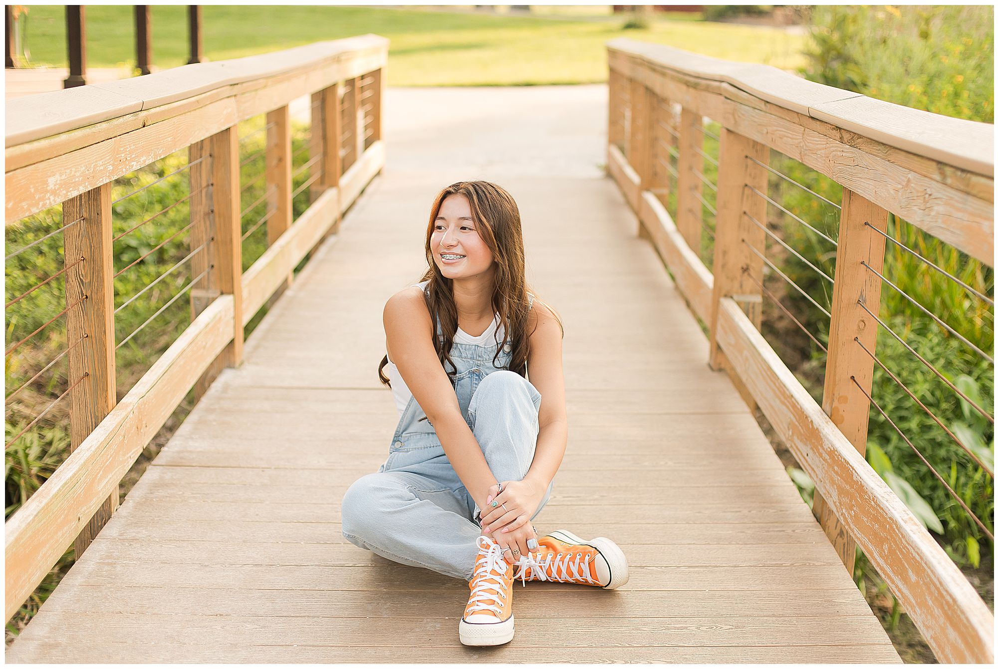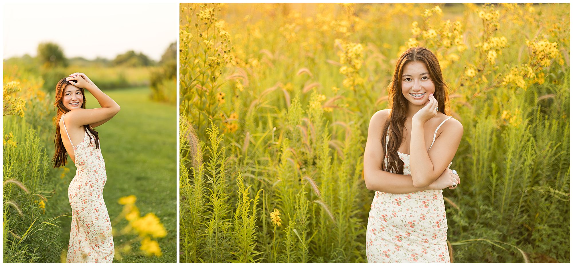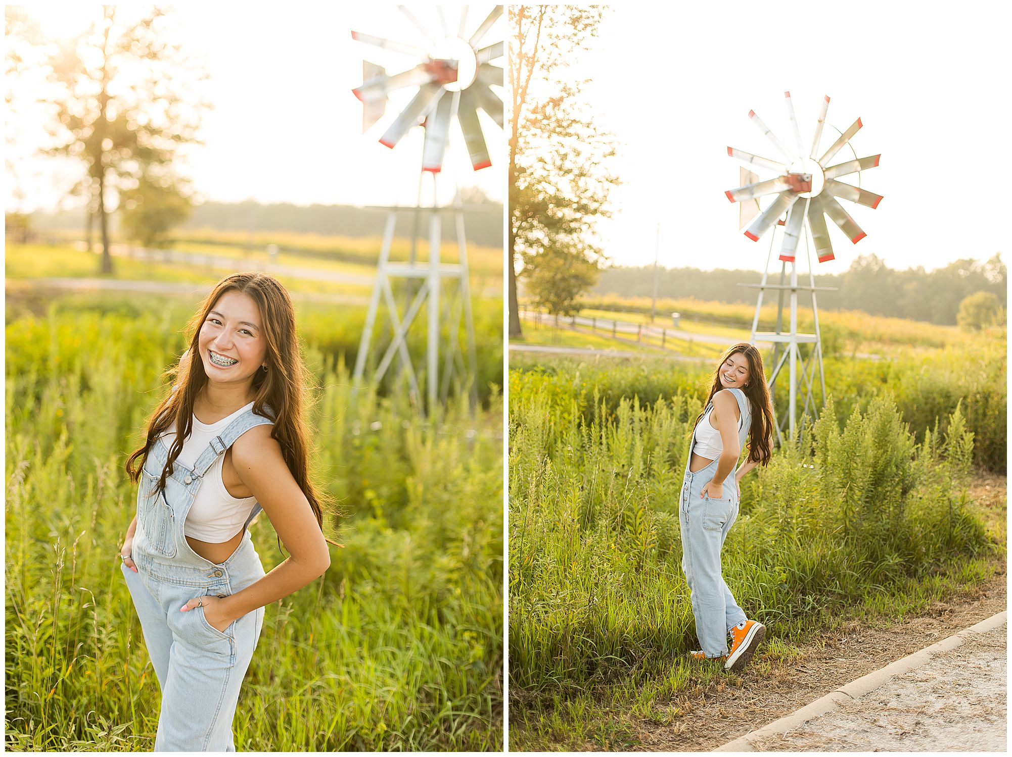 Miss Dakota is a bright shining energy, which is why I knew she would be amazing as a LWP Senior Spokesmodel for the Class of 2024! Over the summer, I met up with Dakota for her individual senior session and this beauty brought all the fun with her on a hot, but lovely evening. She started out in her casual outfit, with jean overalls, a white tank, and her favorite color high top shoes. This girl loves her some orange anything and made sure to incorporate it into her photos! She even brought along a bouquet of flowers for us to play with, which had pops of orange blooms throughout. Love this idea! We found so many incredible yellow fields of flowers during Dakota’s session it was amazing and it really highlighted her bold and fun-loving personality!