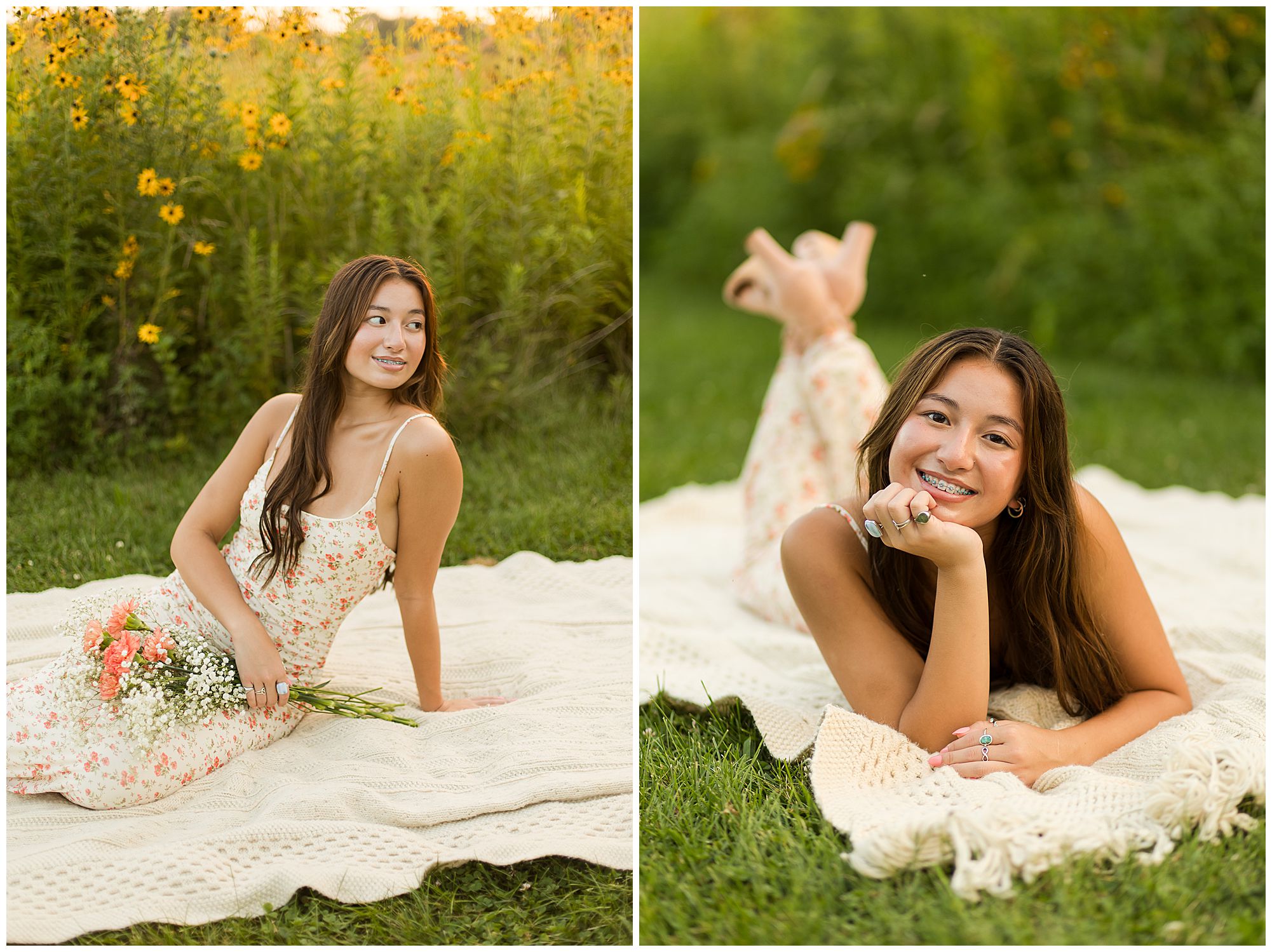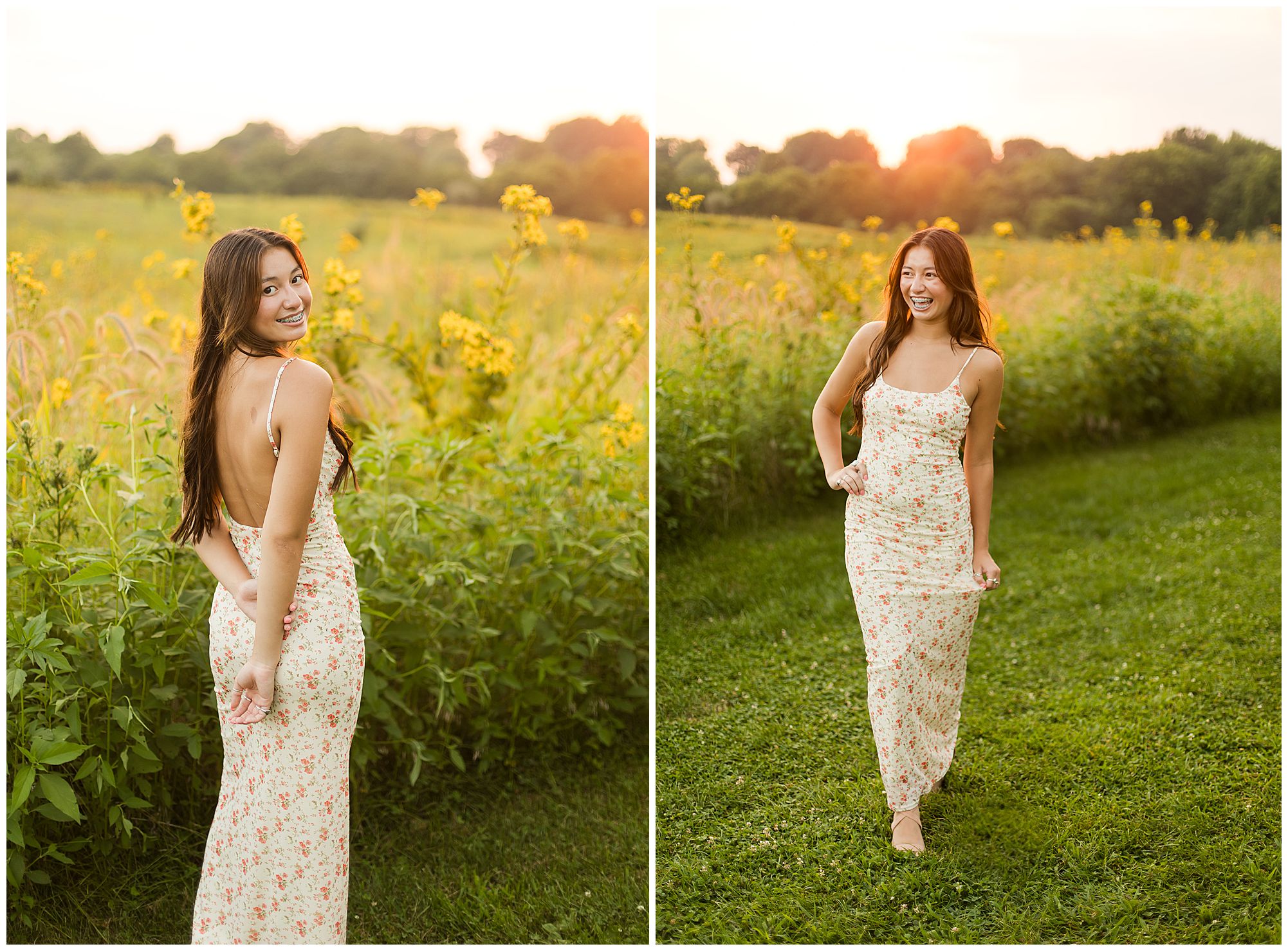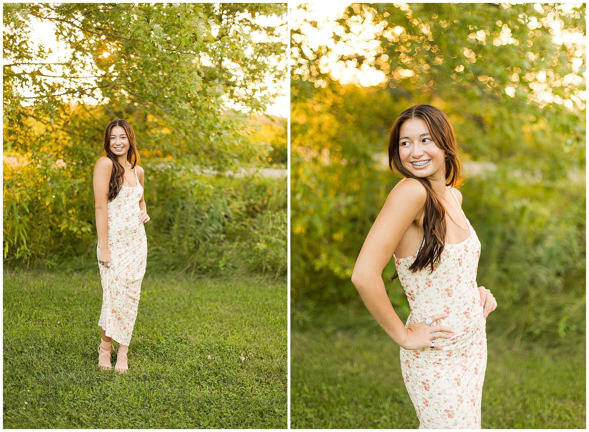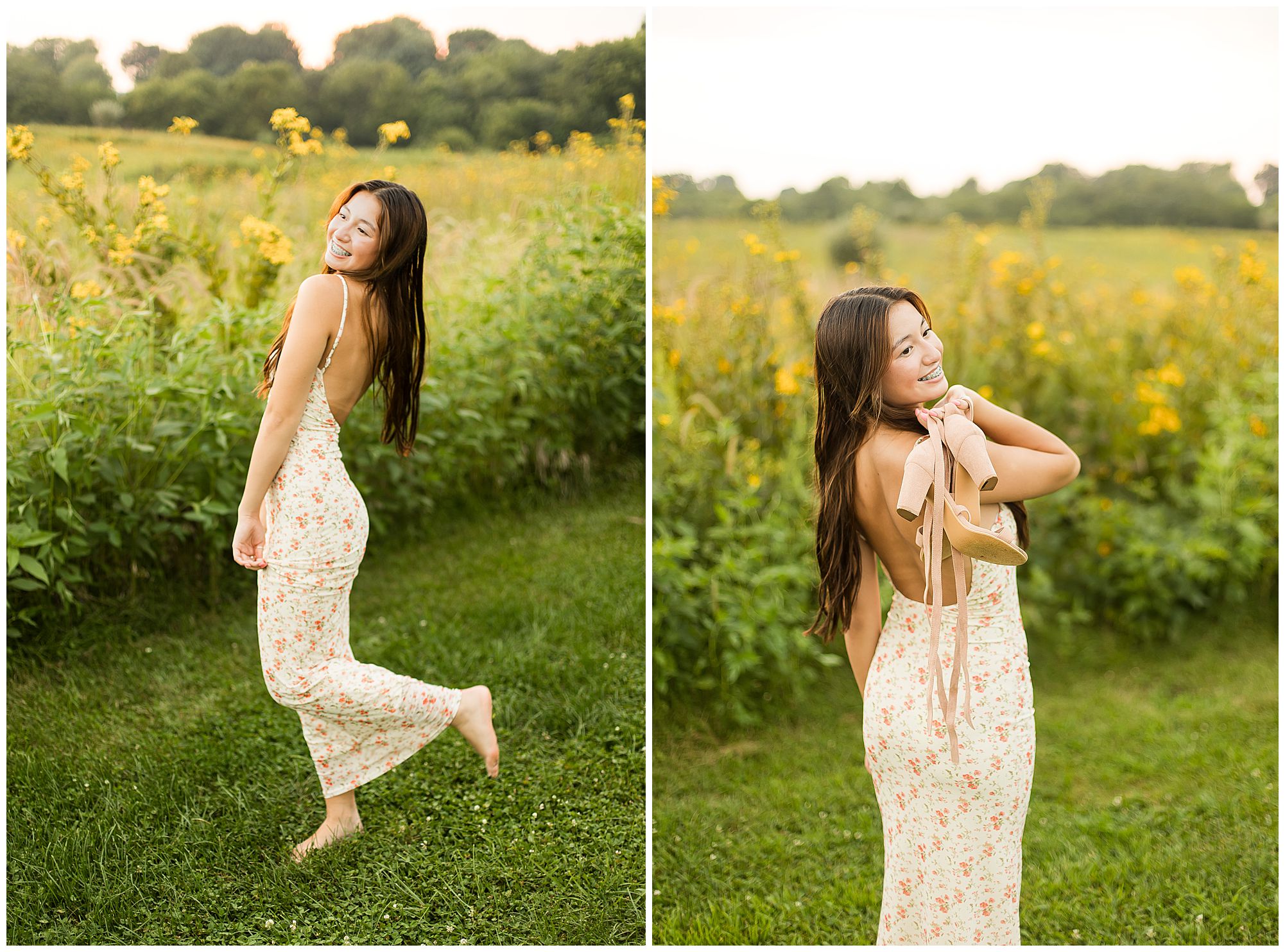 Miss Dakota is a bright shining energy, which is why I knew she would be amazing as a LWP Senior Spokesmodel for the Class of 2024! Over the summer, I met up with Dakota for her individual senior session and this beauty brought all the fun with her on a hot, but lovely evening. She started out in her casual outfit, with jean overalls, a white tank, and her favorite color high top shoes. This girl loves her some orange anything and made sure to incorporate it into her photos! She even brought along a bouquet of flowers for us to play with, which had pops of orange blooms throughout. Love this idea! We found so many incredible yellow fields of flowers during Dakota’s session it was amazing and it really highlighted her bold and fun-loving personality!